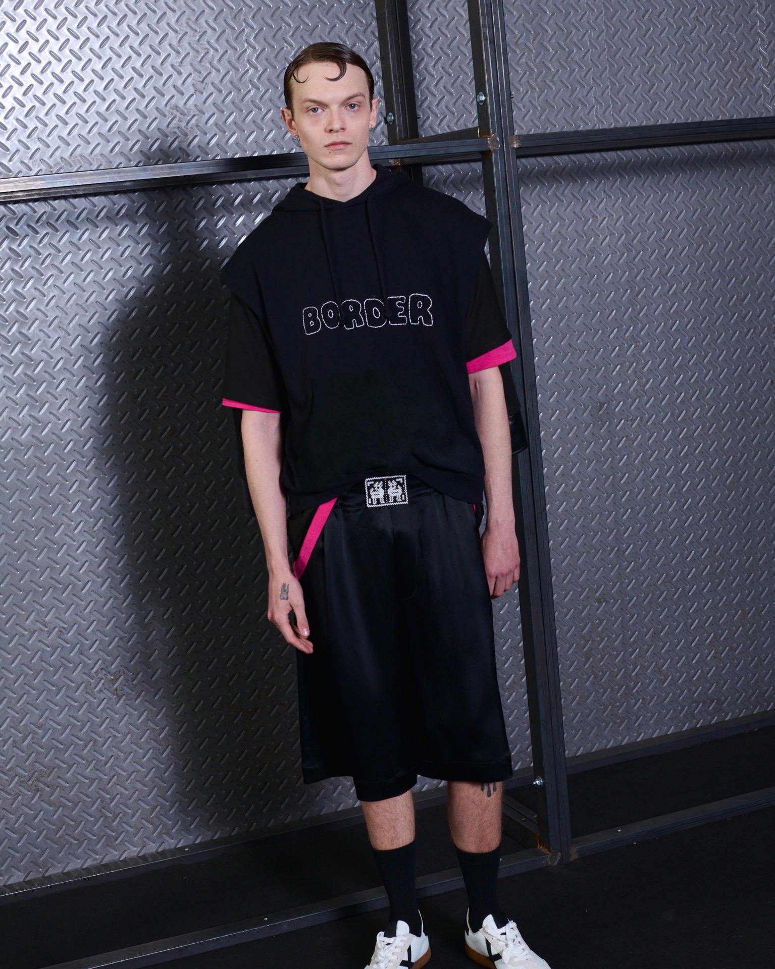 Part d’aquesta inspiració neix també del diàleg amb l’obra BORDERS de Mónica Lozano, les imatges de la qual habiten diverses peces, aportant una dimensió conceptual que amplifica el discurs visual de la col·lecció.