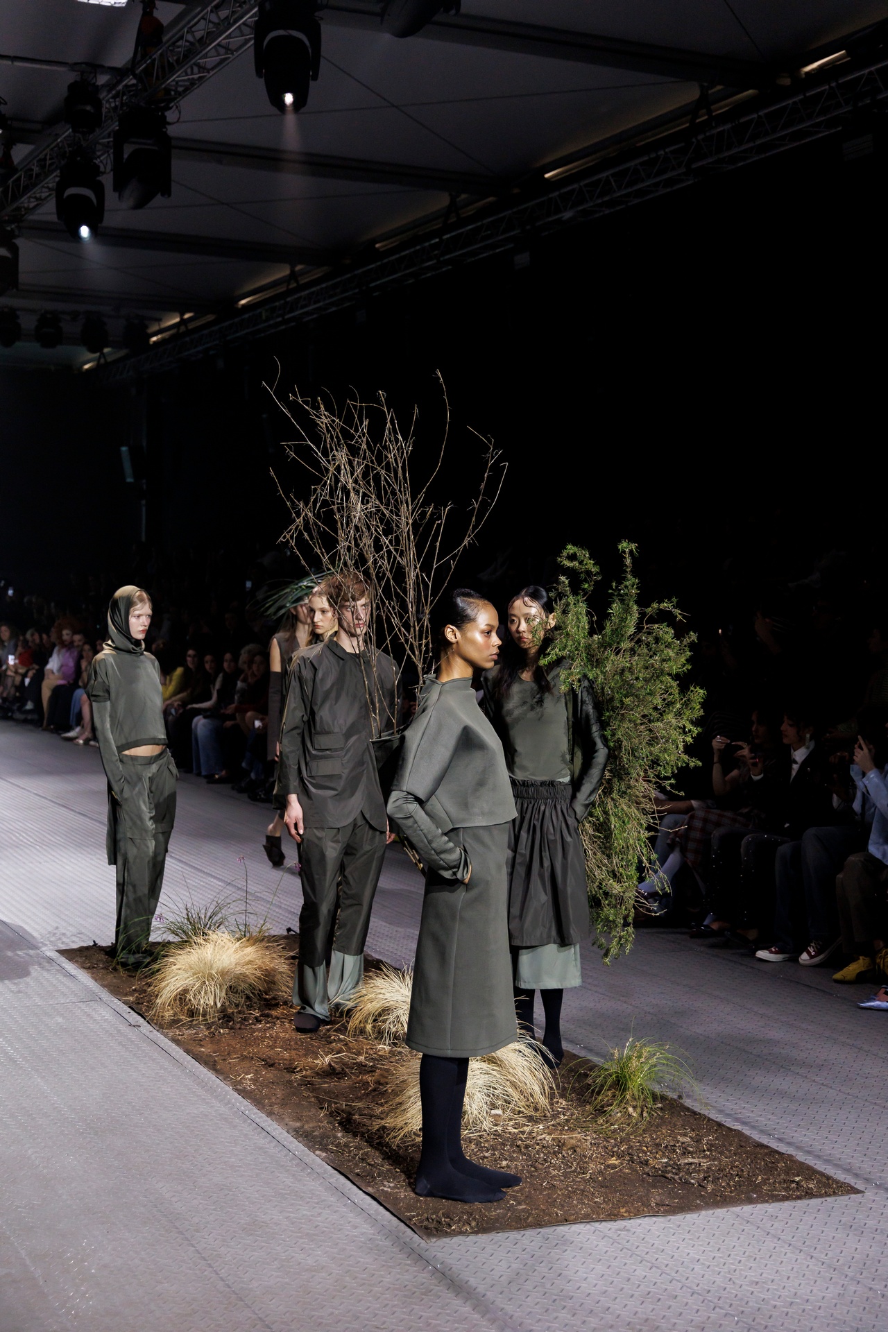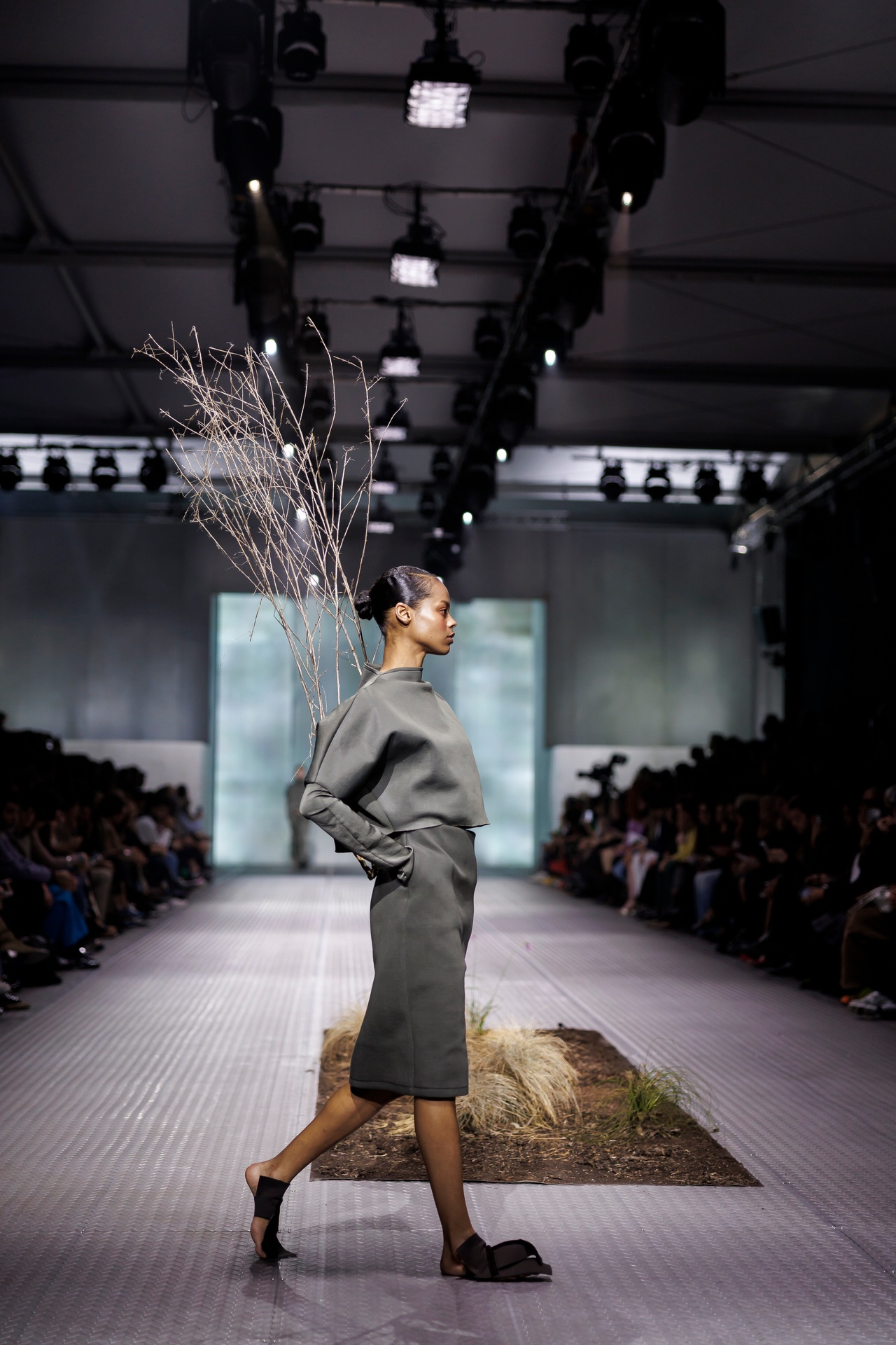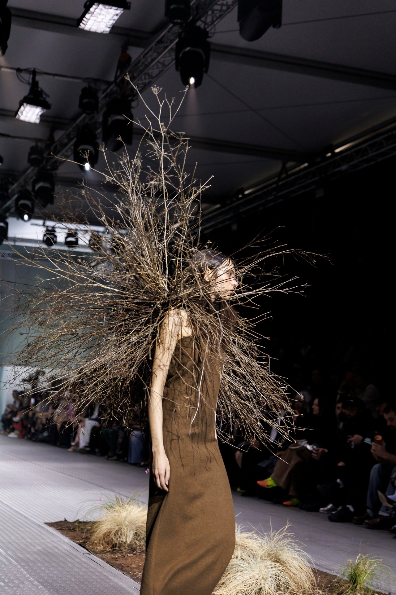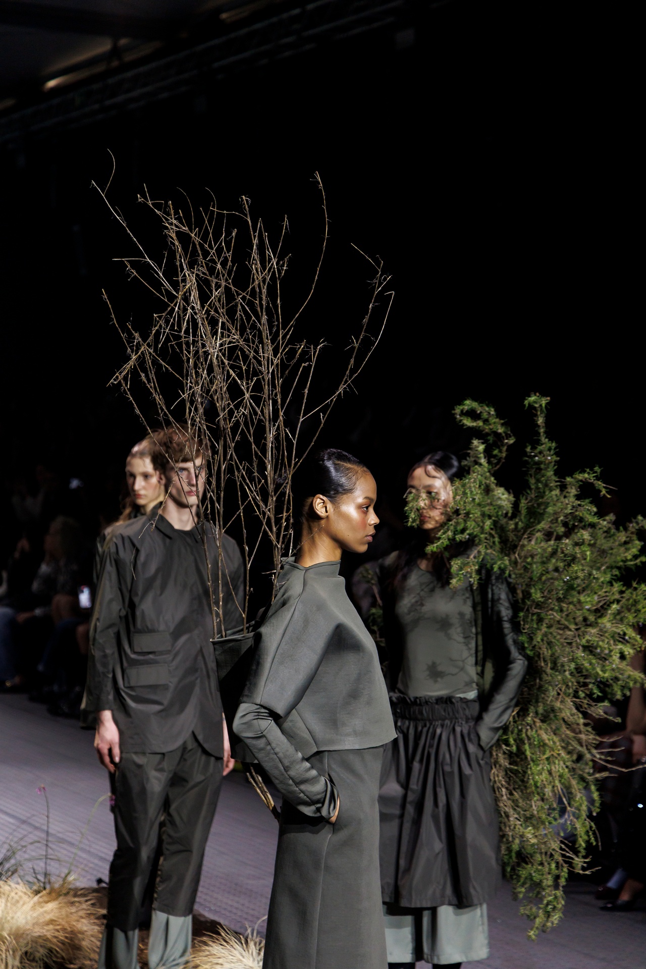 Això traslladat a la col·lecció es manifesta en una paleta de colors contraposada entre els blancs purs , els metal·litzats i grisos -gris pedra, gris cendra, gris fumat- i els colors de la terra i el bosc -fang, escorça, marfil brut i verd esmorteït-.