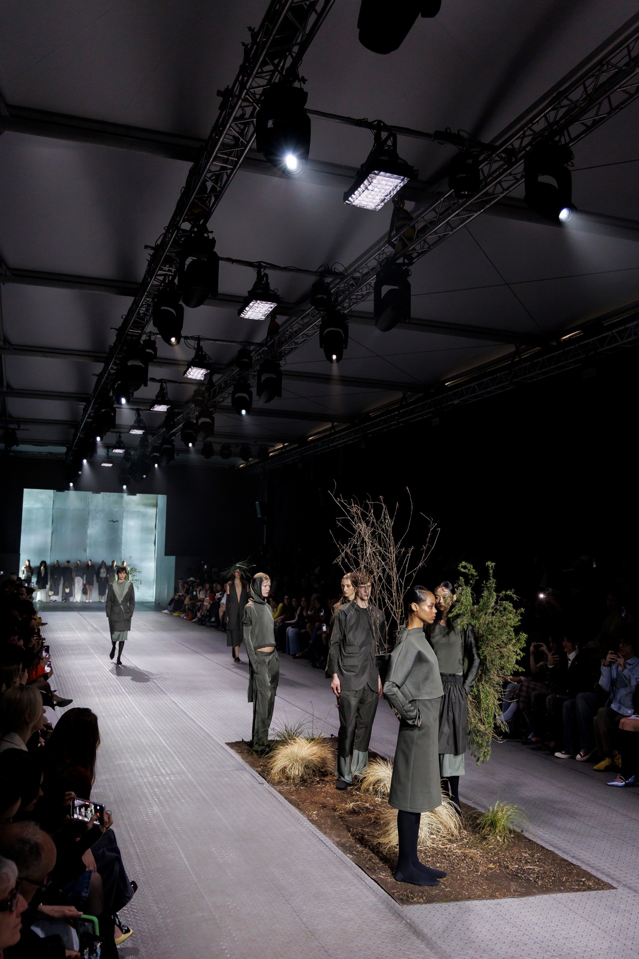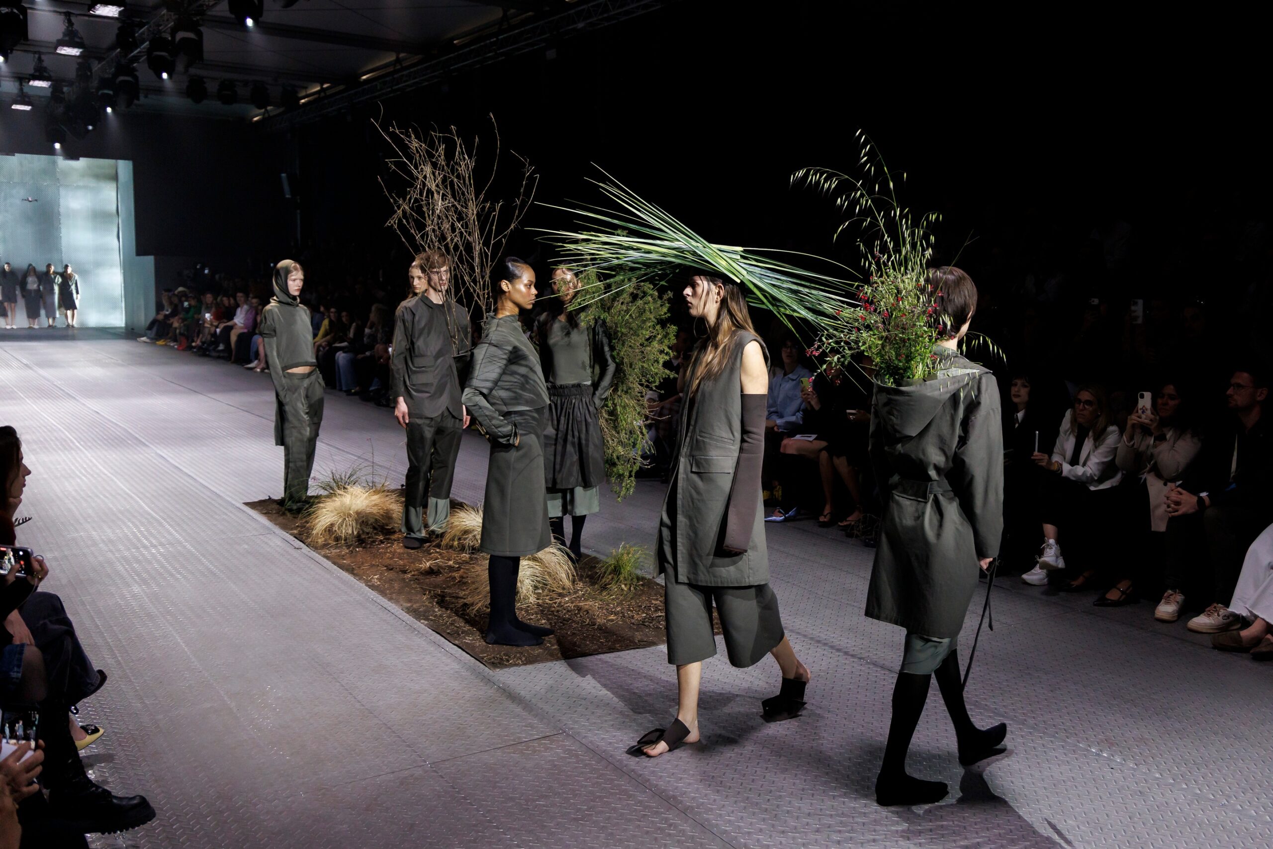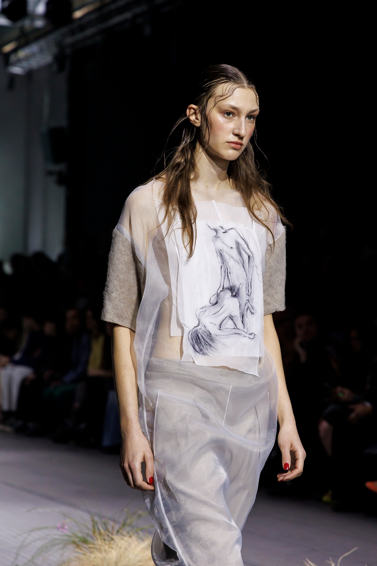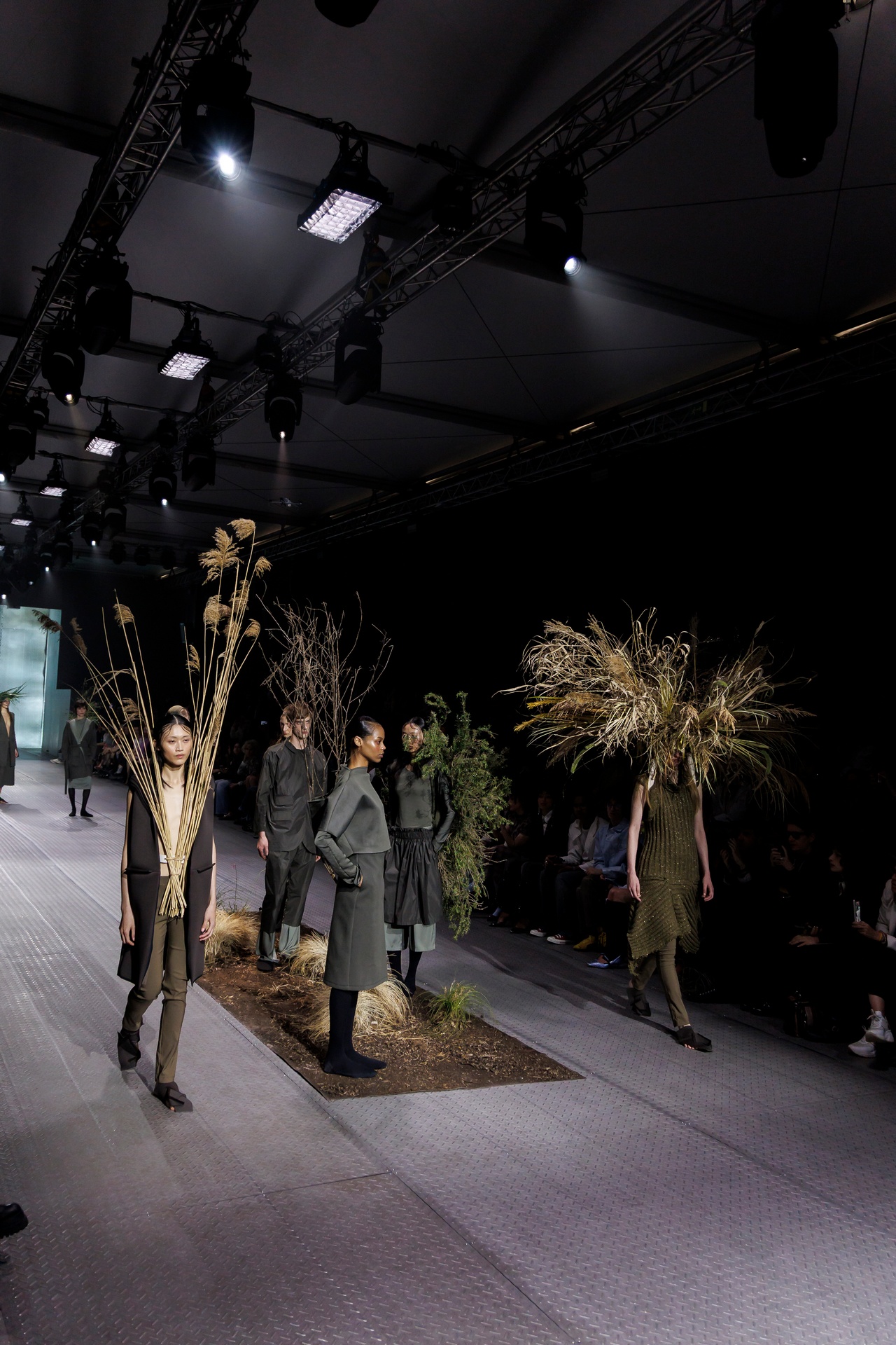 Això traslladat a la col·lecció es manifesta en una paleta de colors contraposada entre els blancs purs , els metal·litzats i grisos -gris pedra, gris cendra, gris fumat- i els colors de la terra i el bosc -fang, escorça, marfil brut i verd esmorteït-.