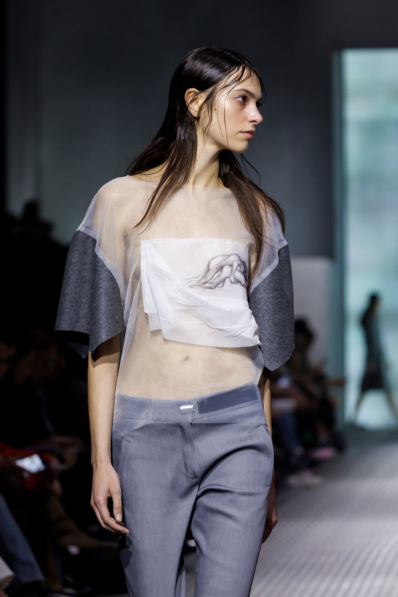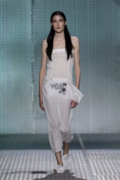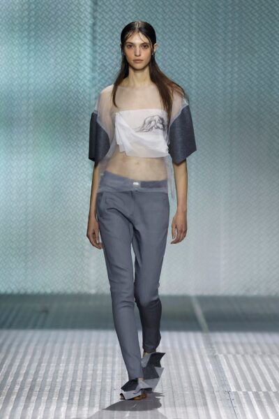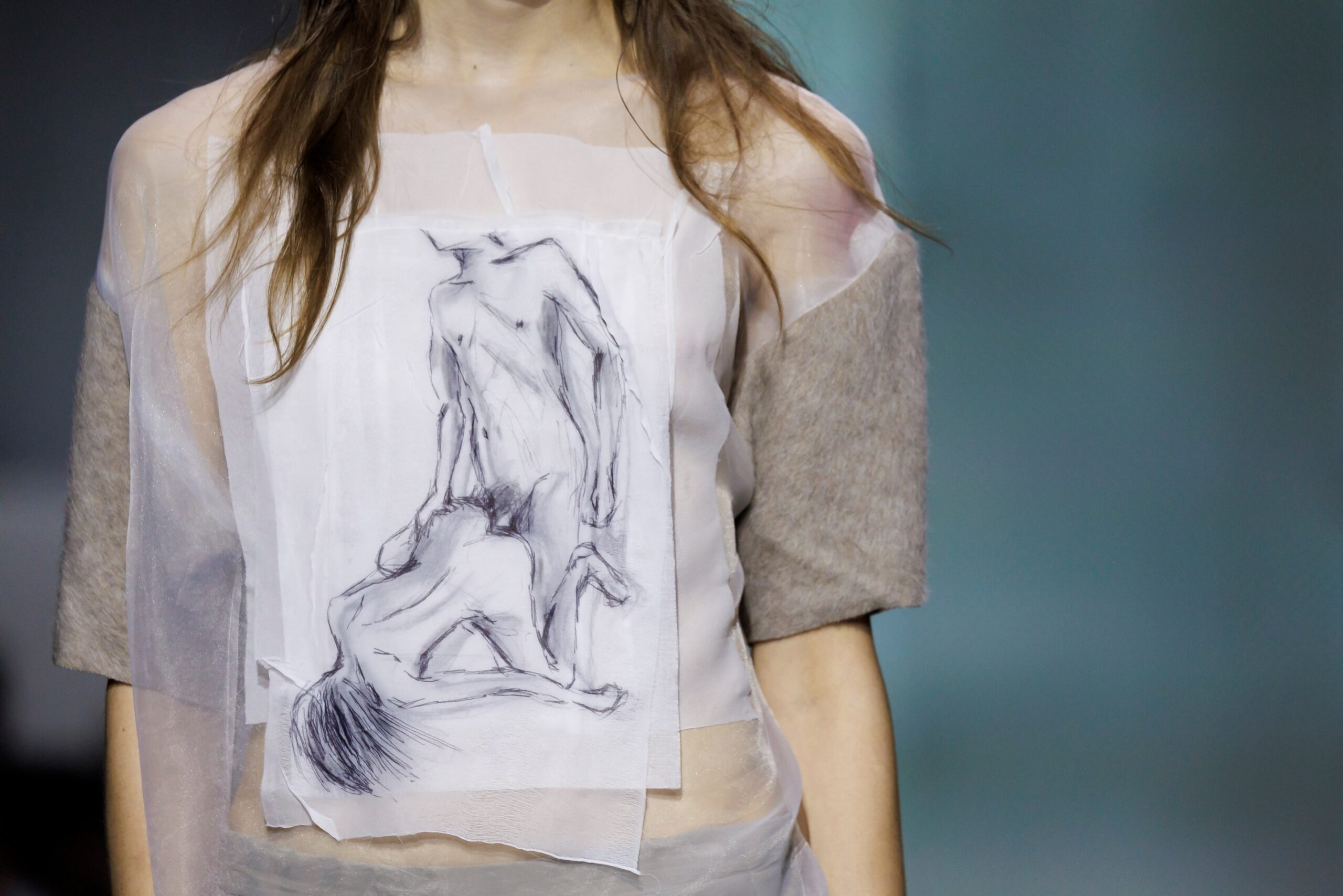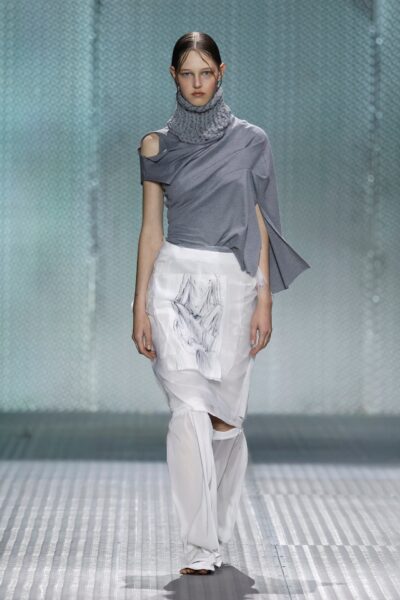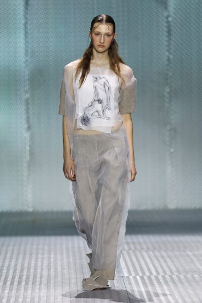 La formació de Txell Miras en arts plàstiques confereix a les seves creacions un tret diferencial, del que destaca el seu interès per l’art conceptual que es manifesta amb el treball de la forma i del concepte. Els seus dissenys desestructuren la silueta i juguen amb les capes i els volums, amb una paleta limitada en què destaquen els colors blanc i negre. Amb aquestes desconstruccions i superposicions posa en qüestió el patronatge de la sastreria europea, motiu pel qual se l’ha relacionat amb la moda japonesa dels anys vuitanta i la belga dels noranta. Miras confessa que s’identifica amb la dissenyadora japonesa Rei Kawakubo i amb els belgues Maison Martin Margiela i Ann Demeulemeester. [Descorsetant] En les seves presentacions juga amb la fotografia, el cinema, la literatura i la música, i els empra per articular un discurs crític amb les elits. [Framing]