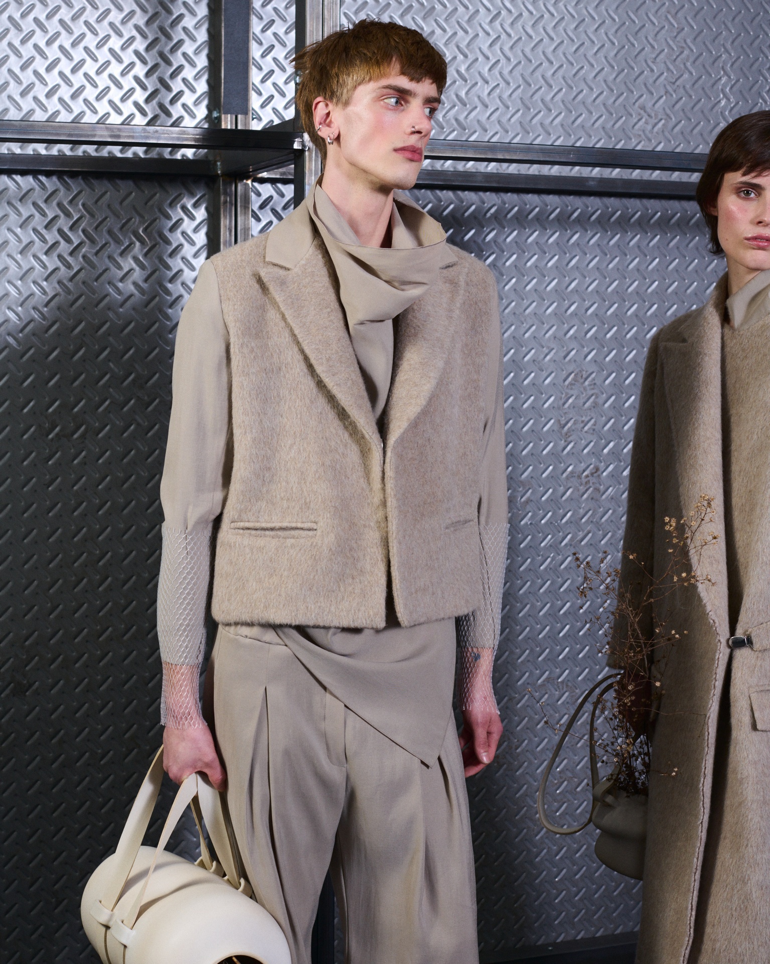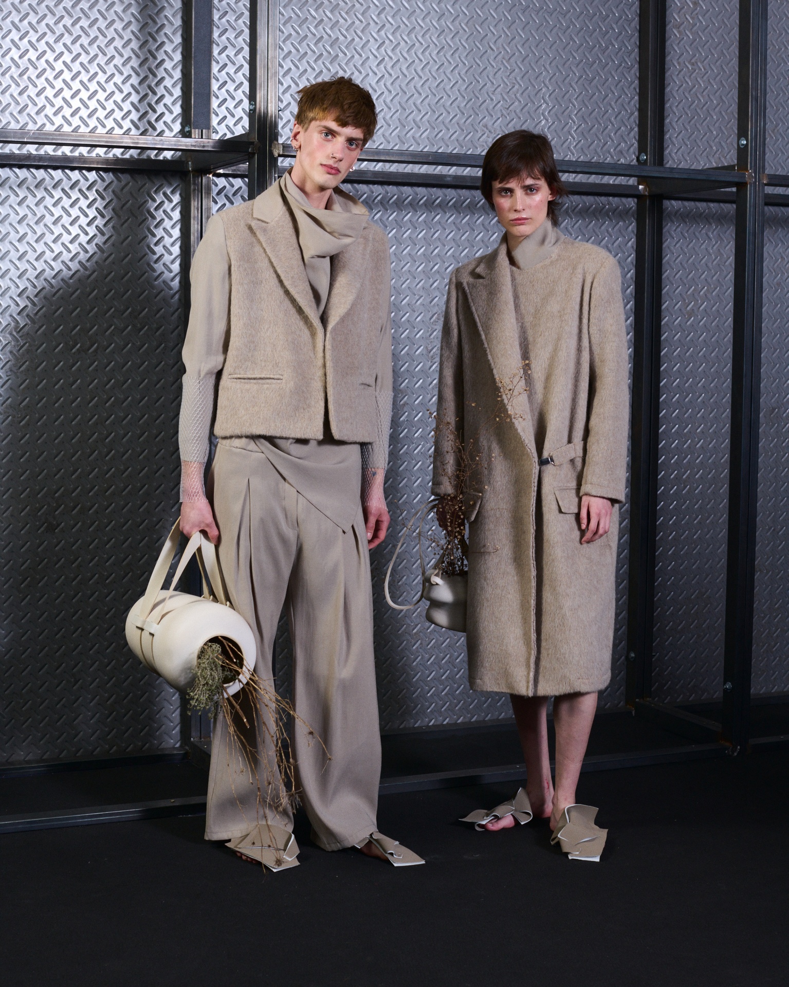Les siluetes minimalistes i austeres, barregen varietat de textures en el seus materials: