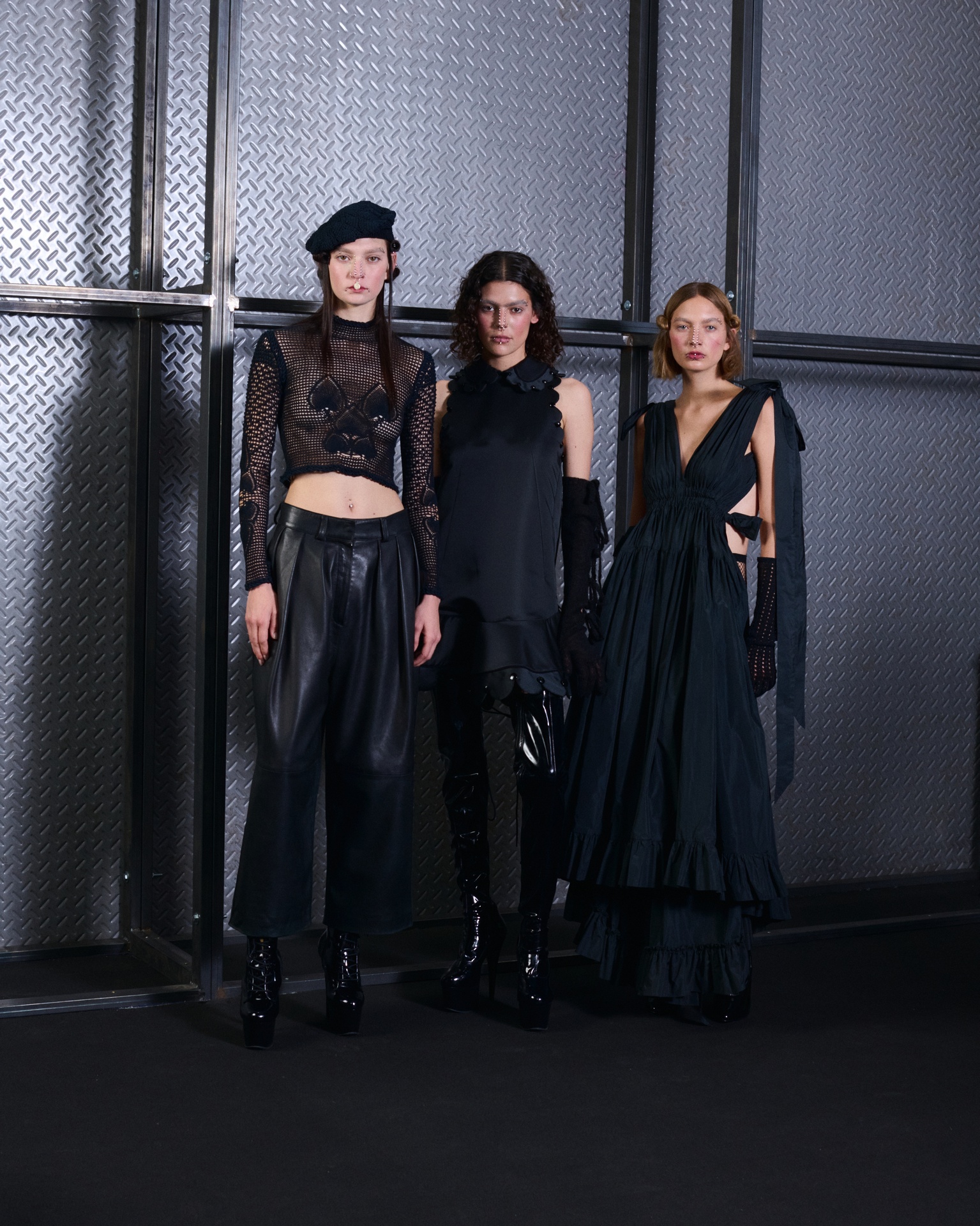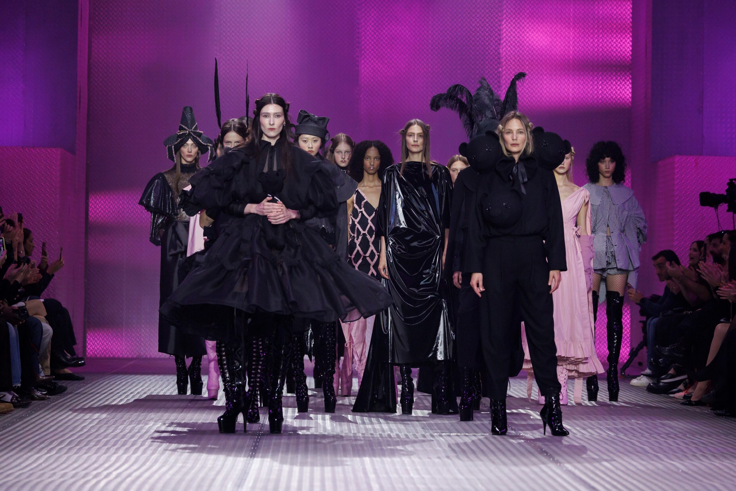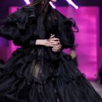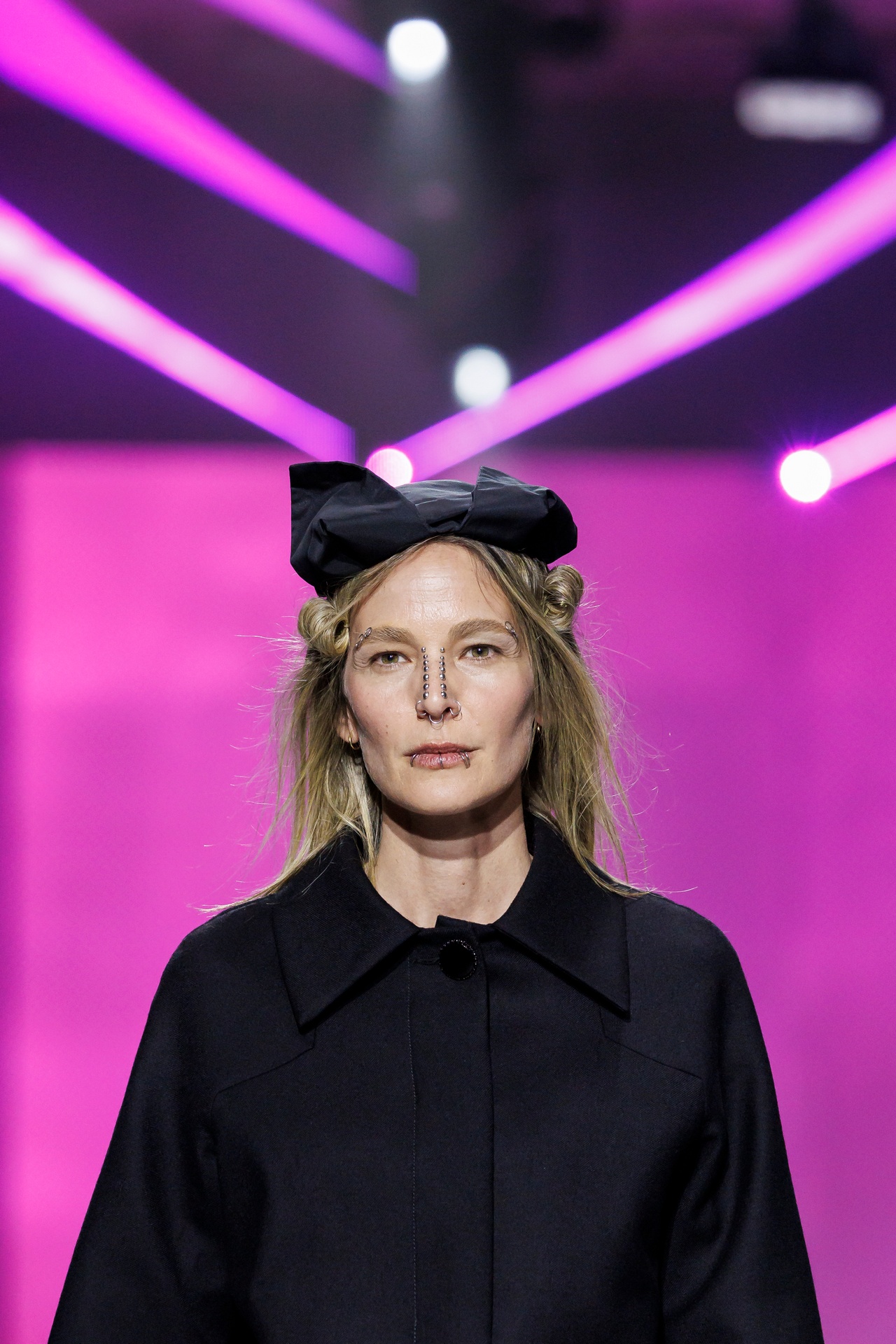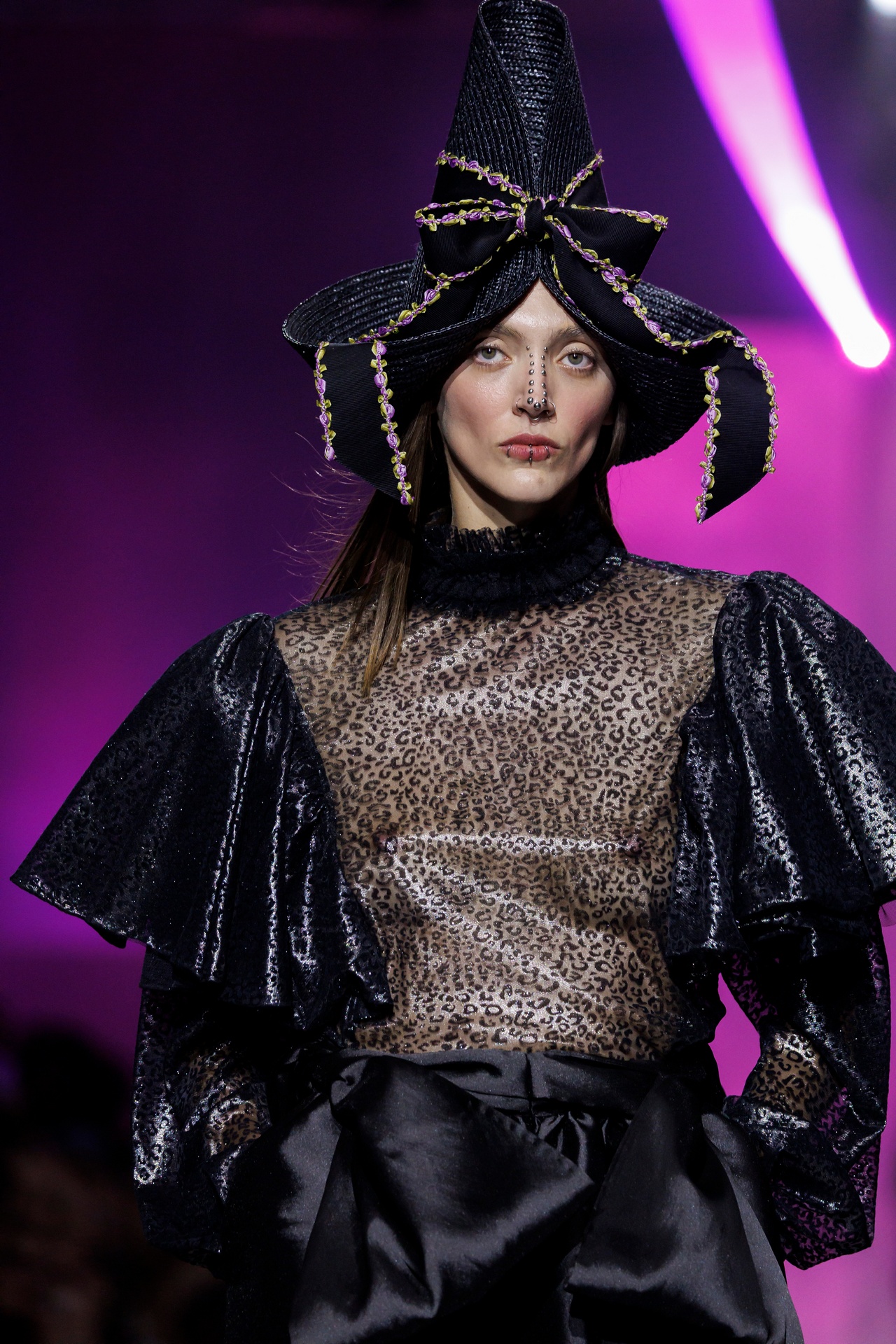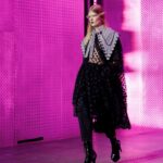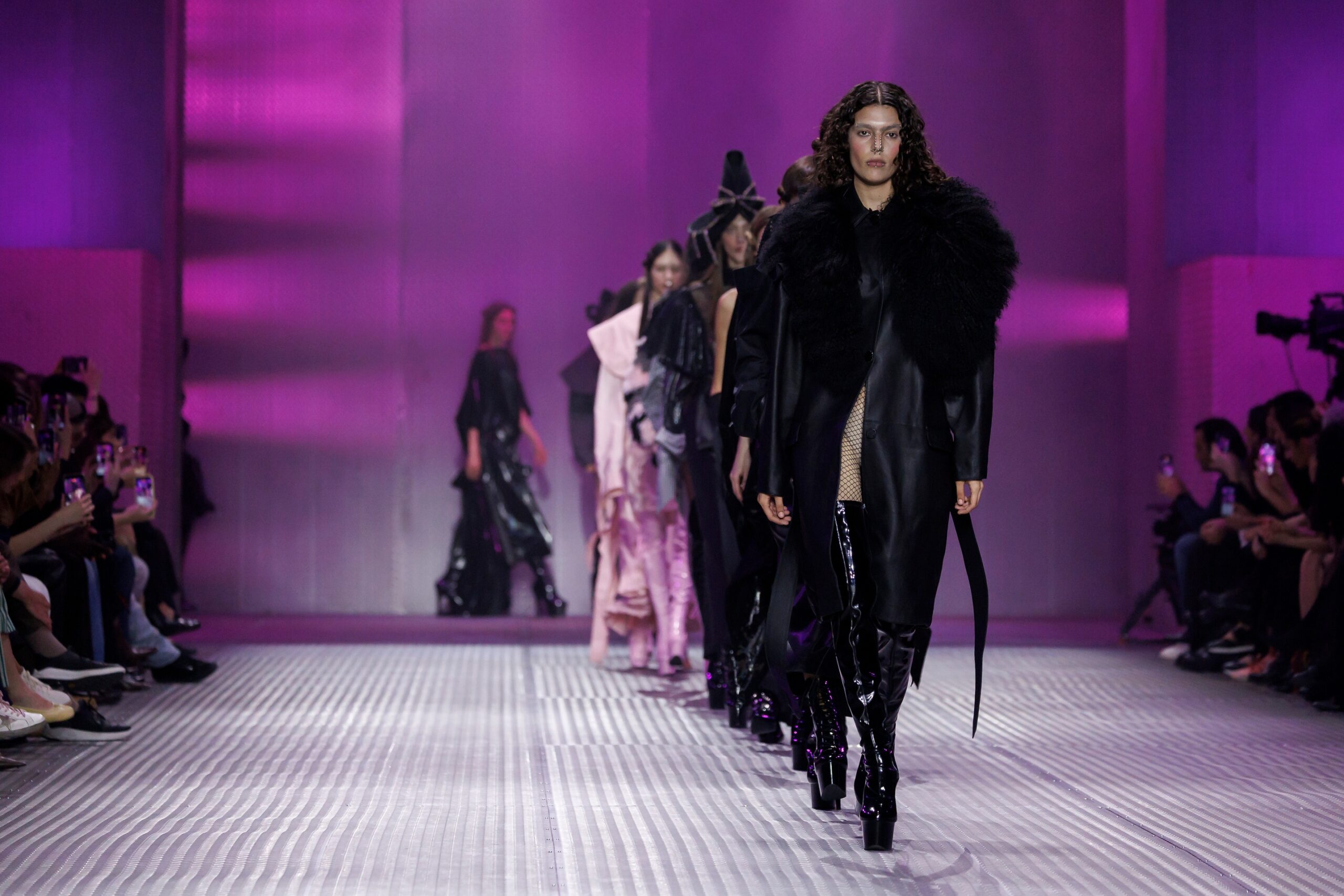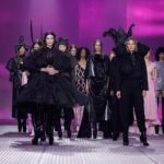 The collection inhabits the romanticism of the 19th century and the refined echoes of haute couture from the 1950s and 1960s. Naïve and kitsch coexist, as well as the melancholic tenderness of the sad clown, theatrical gestures, and historical evocations. Like a curtain slowly rising, cinema and music from all eras appear, alongside the immortal shadow of Anna Maria Mazzini, weaving a universe where dreams and memory walk hand in hand.
