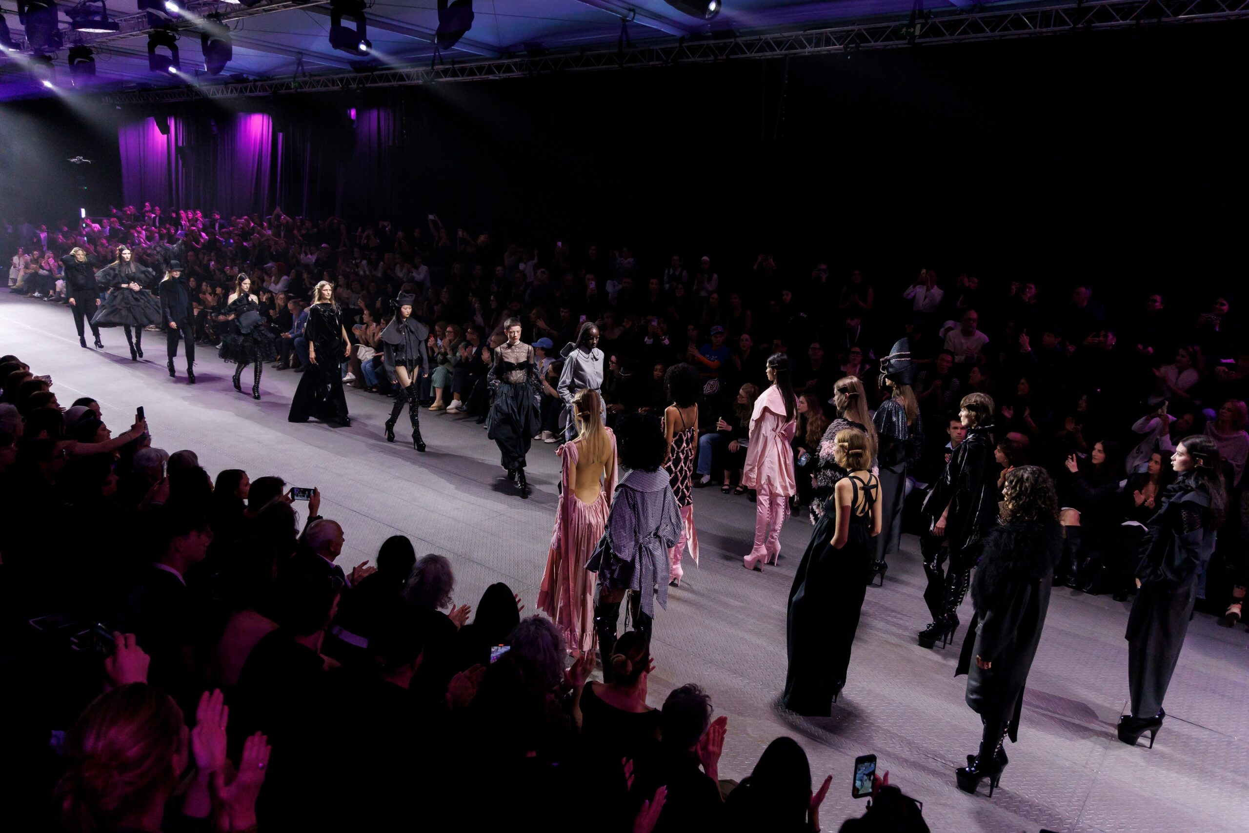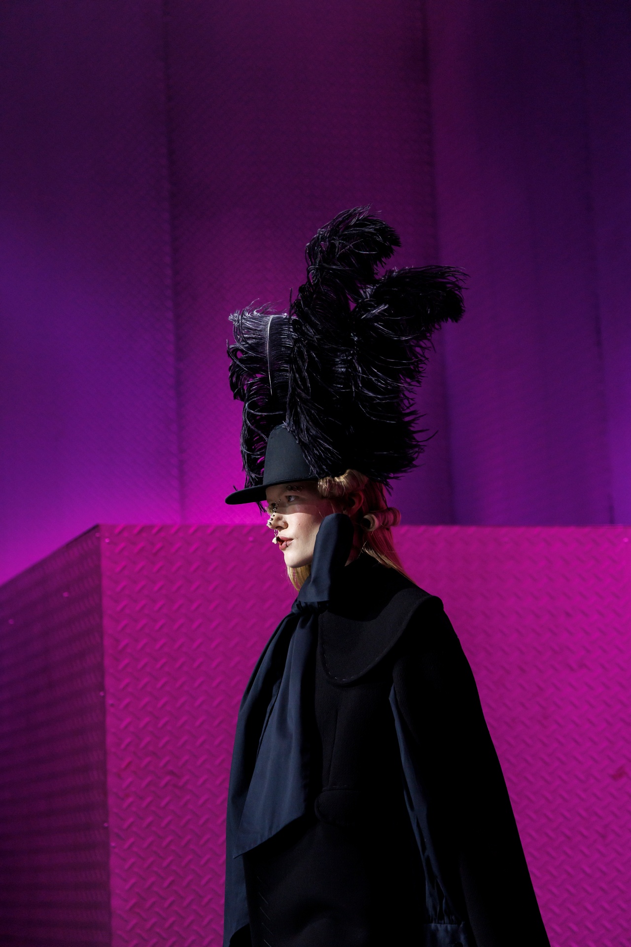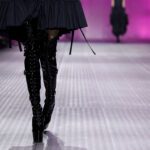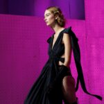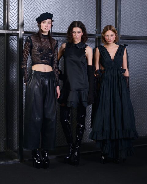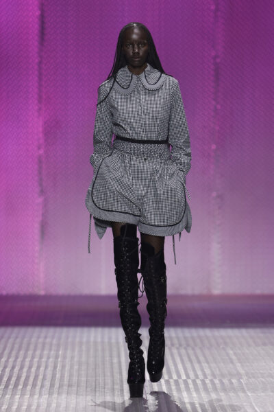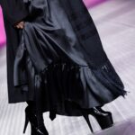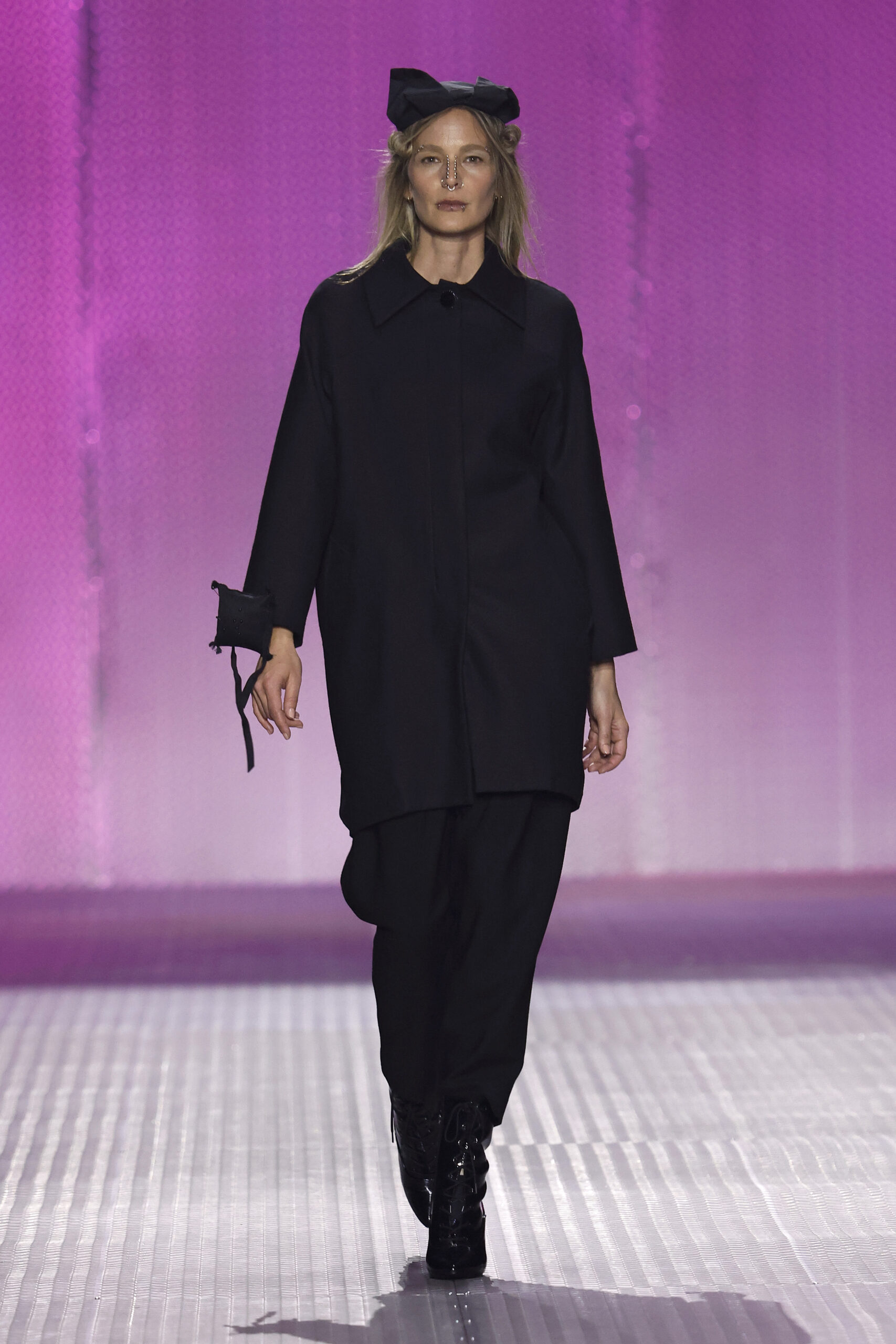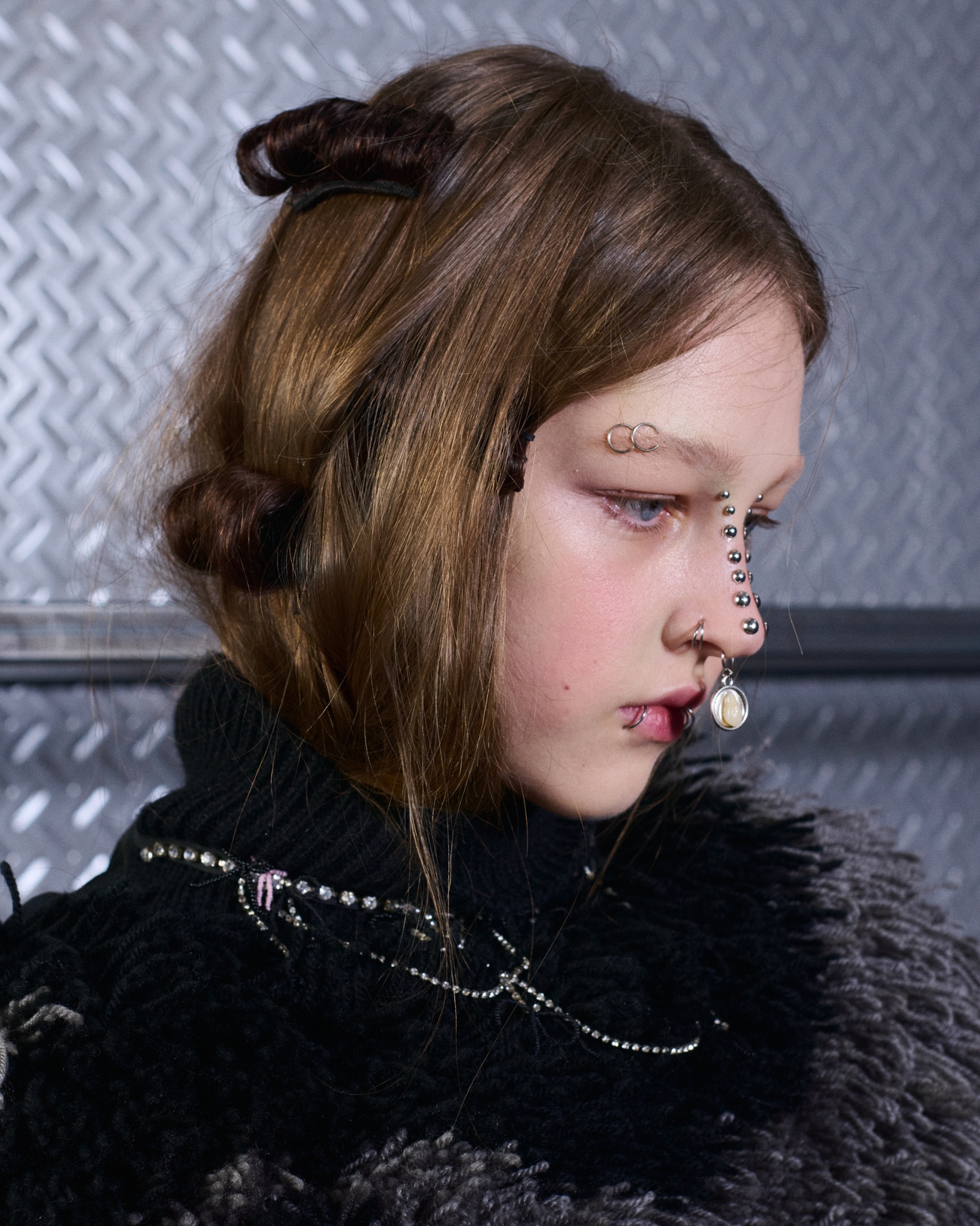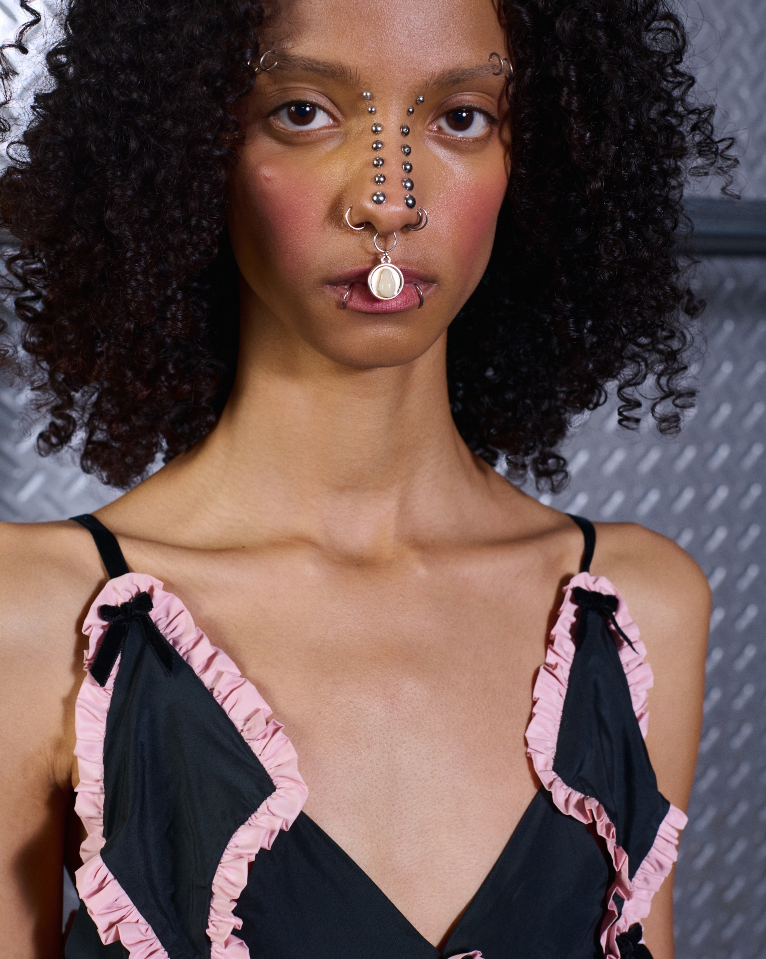 The collection inhabits the romanticism of the 19th century and the refined echoes of haute couture from the 1950s and 1960s. Naïve and kitsch coexist, as well as the melancholic tenderness of the sad clown, theatrical gestures, and historical evocations. Like a curtain slowly rising, cinema and music from all eras appear, alongside the immortal shadow of Anna Maria Mazzini, weaving a universe where dreams and memory walk hand in hand.