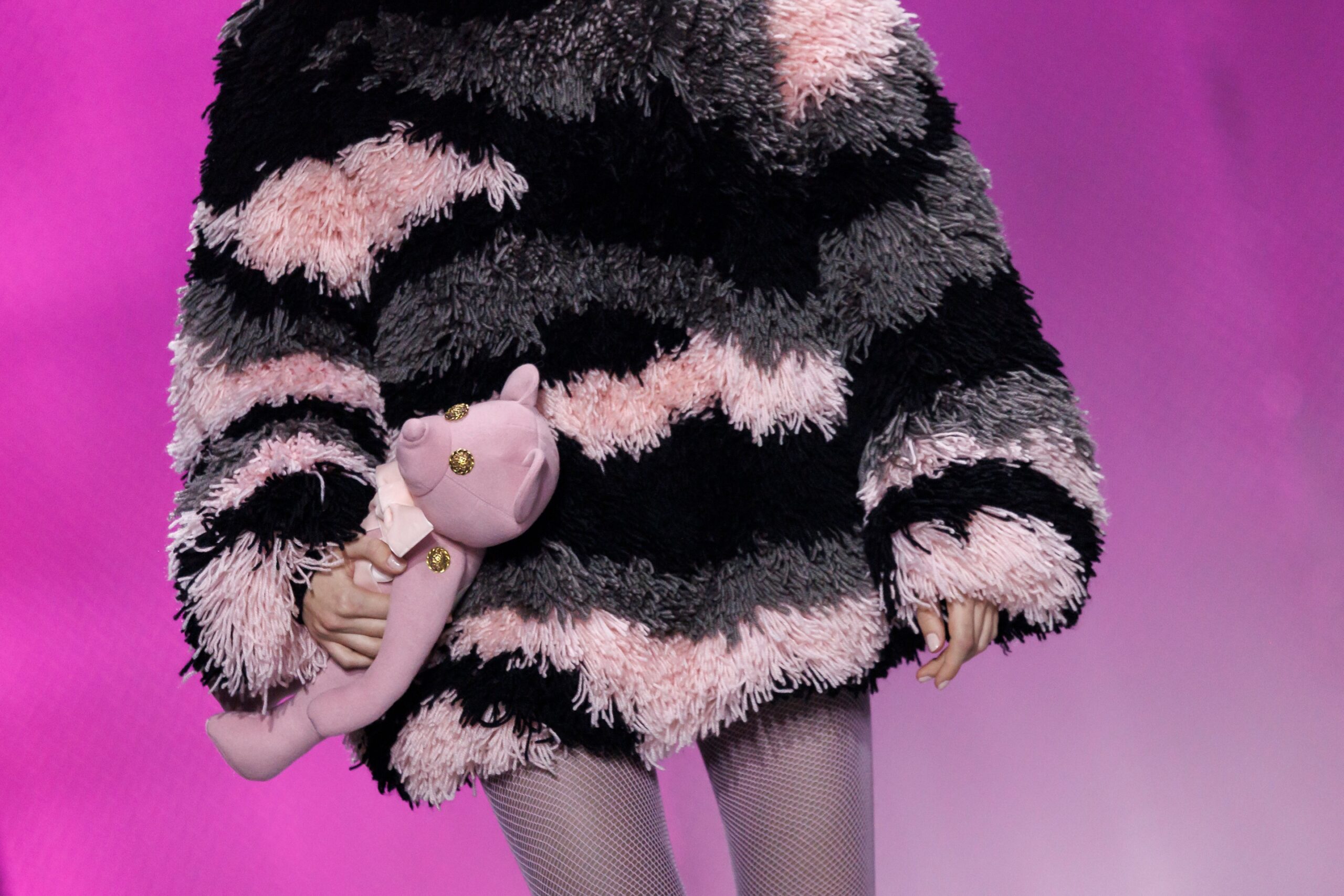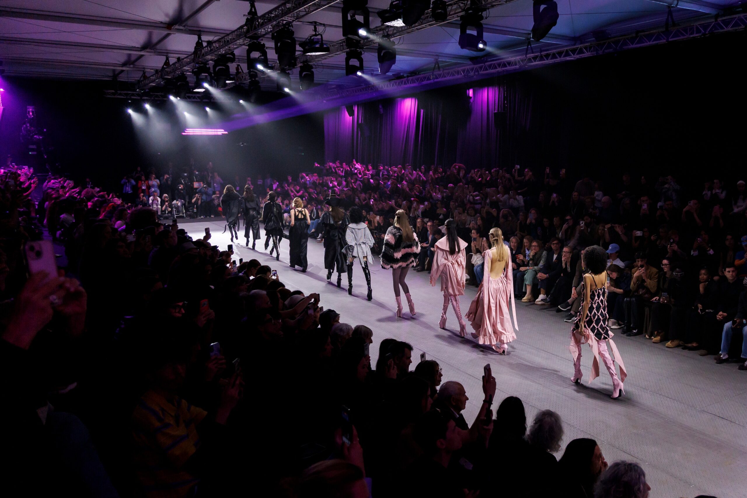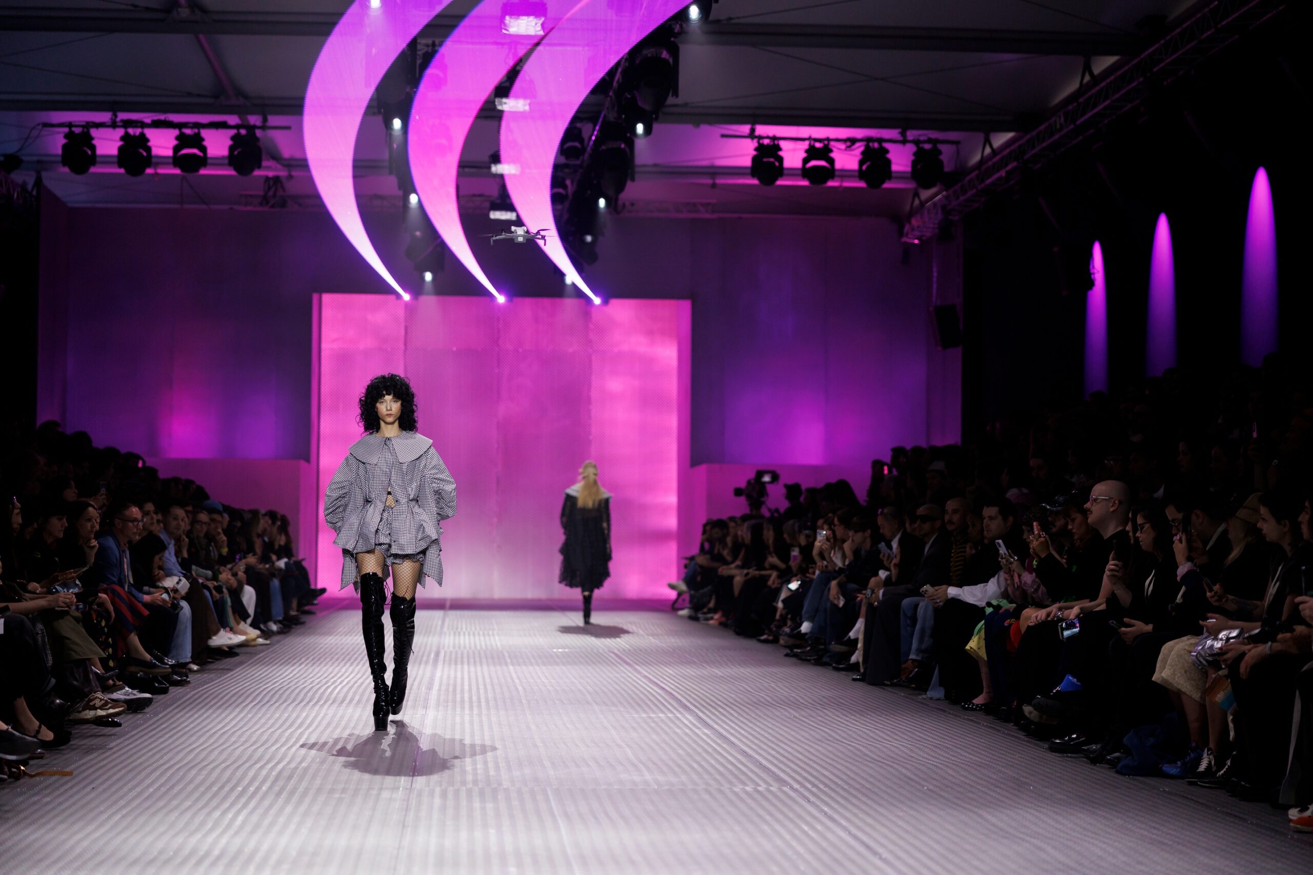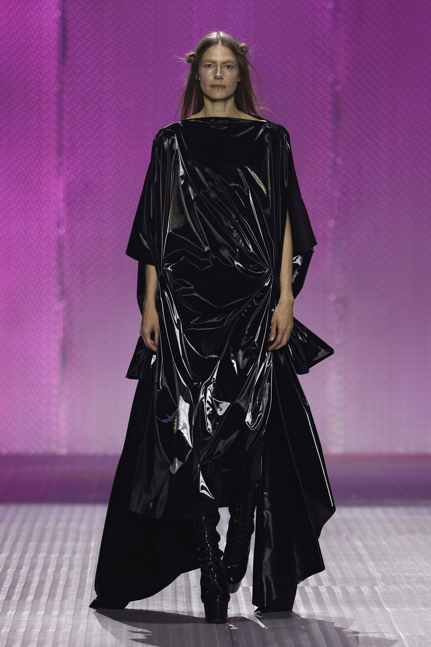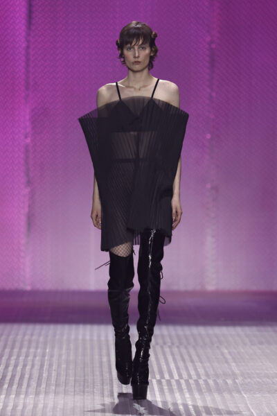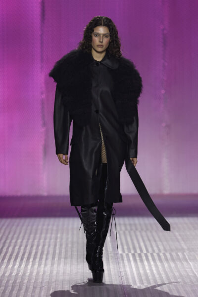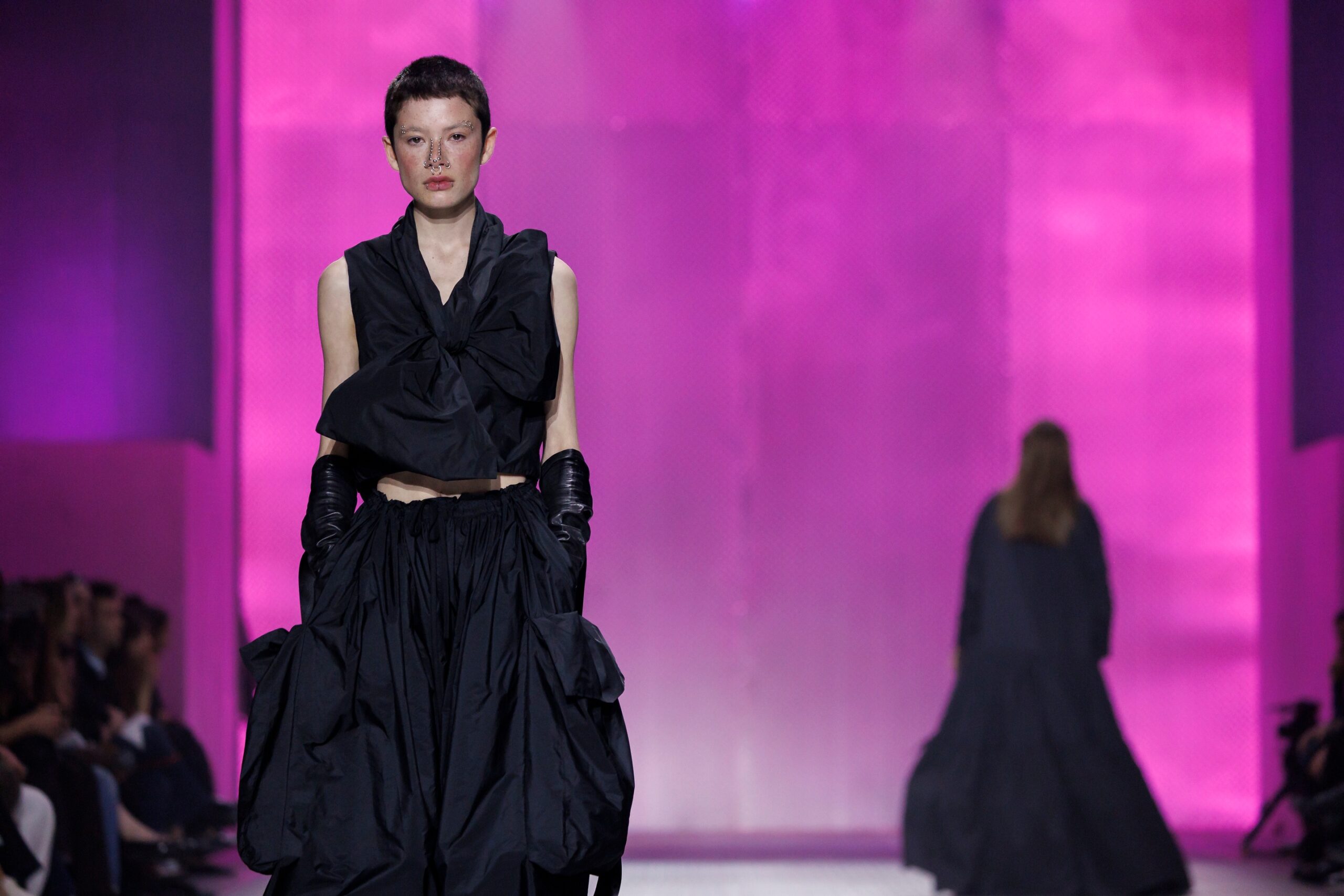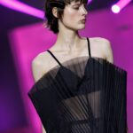 The collection inhabits the romanticism of the 19th century and the refined echoes of haute couture from the 1950s and 1960s. Naïve and kitsch coexist, as well as the melancholic tenderness of the sad clown, theatrical gestures, and historical evocations. Like a curtain slowly rising, cinema and music from all eras appear, alongside the immortal shadow of Anna Maria Mazzini, weaving a universe where dreams and memory walk hand in hand.