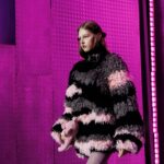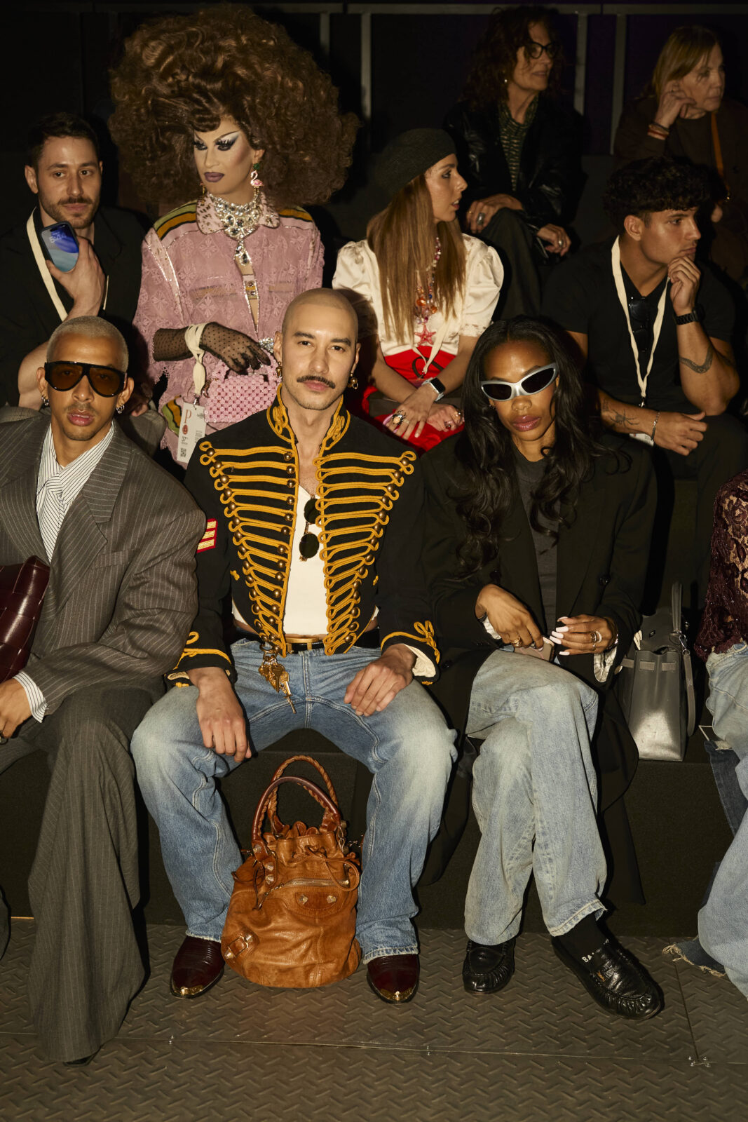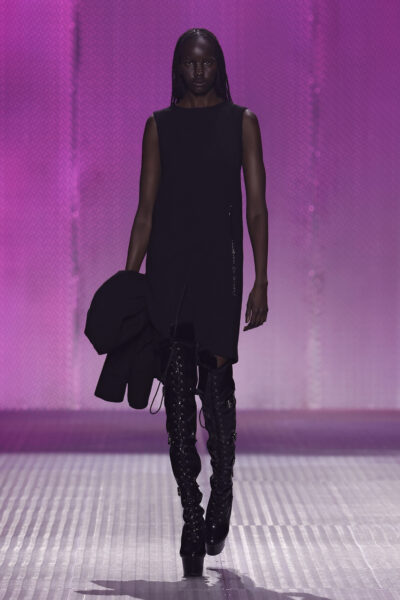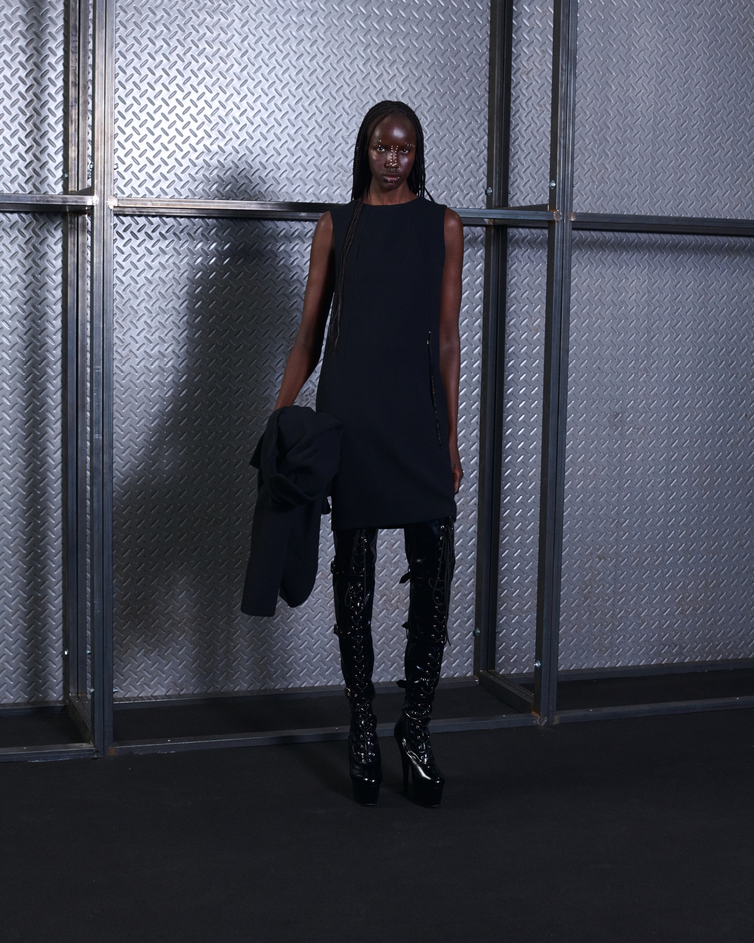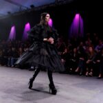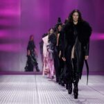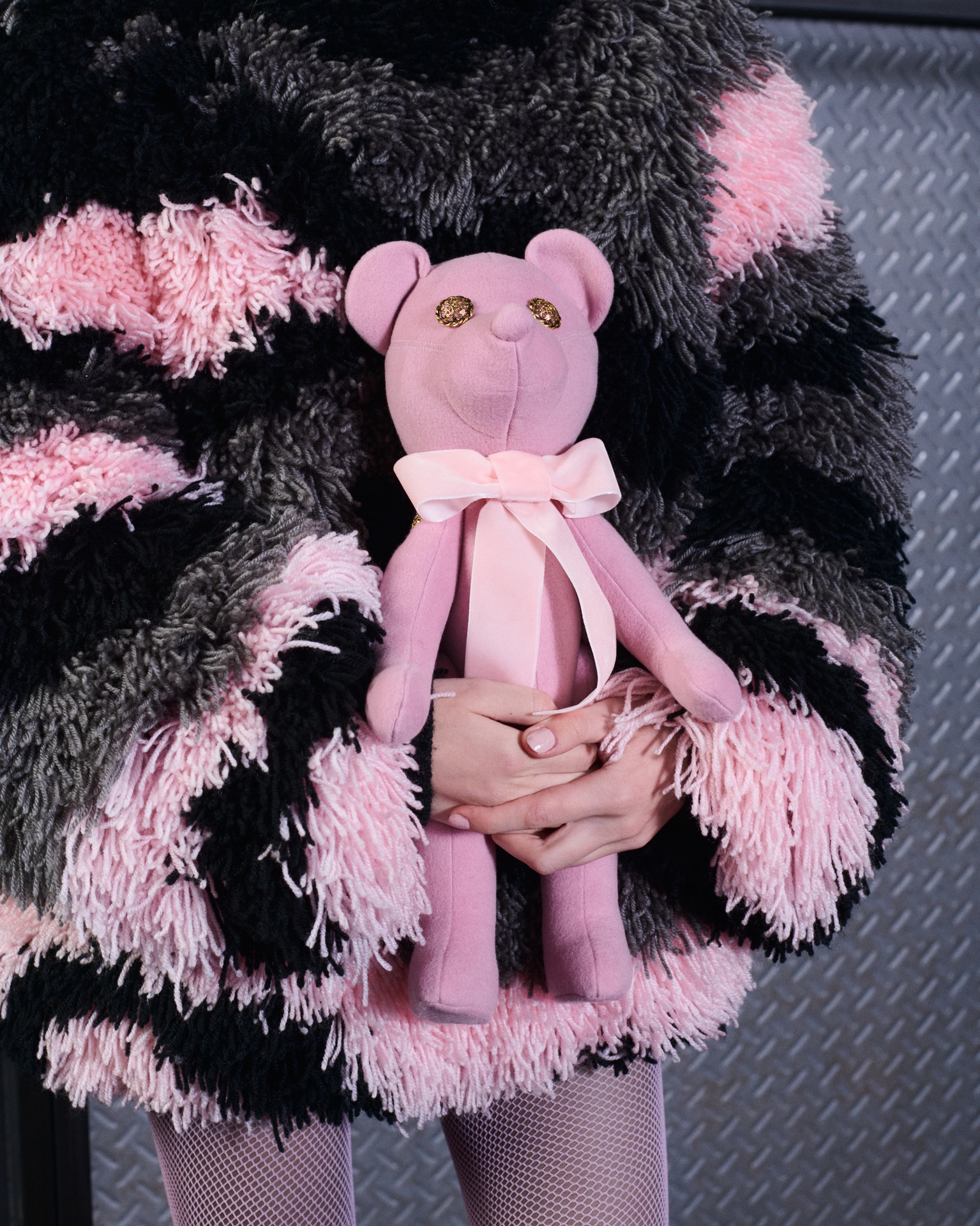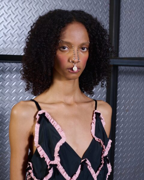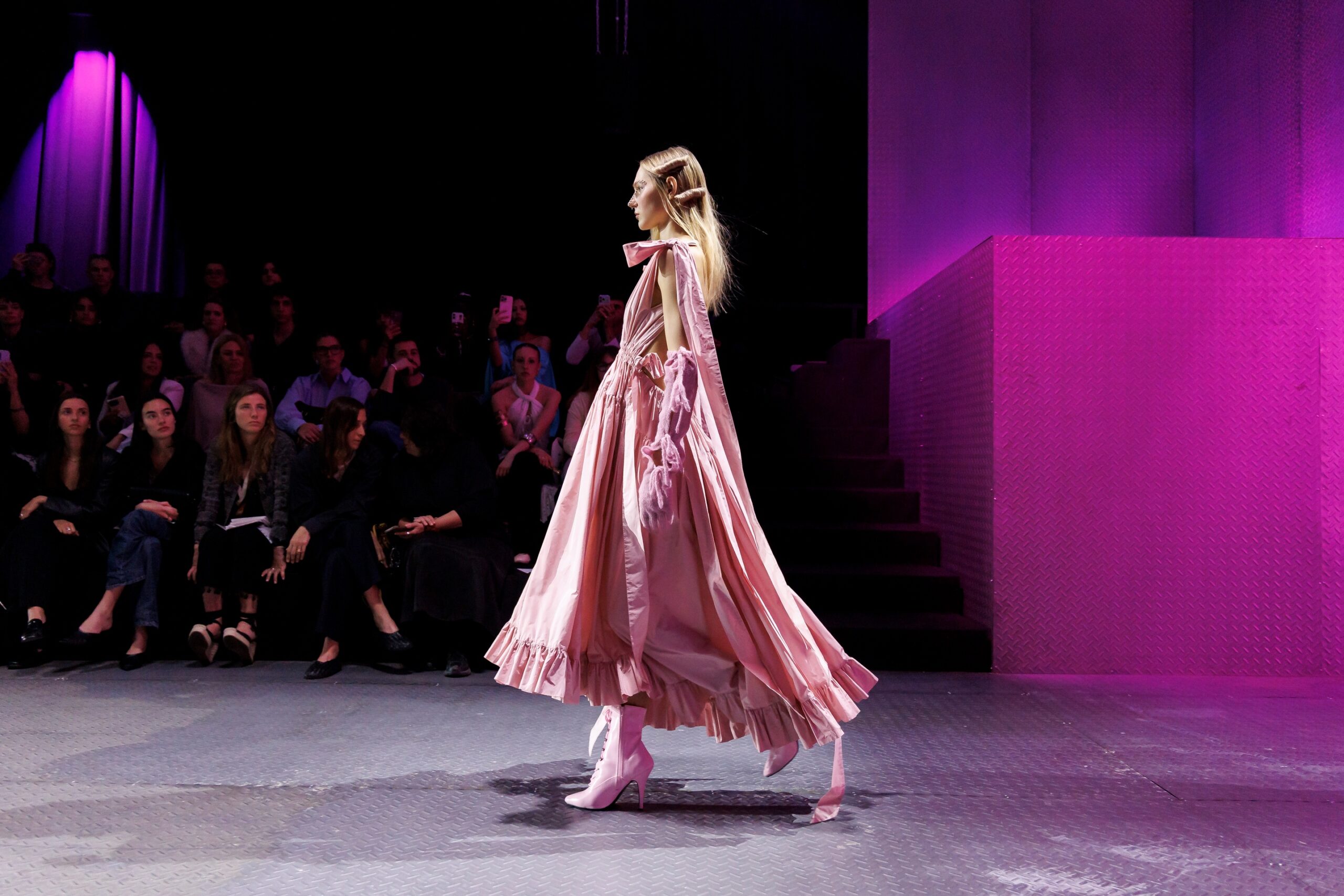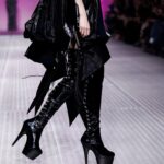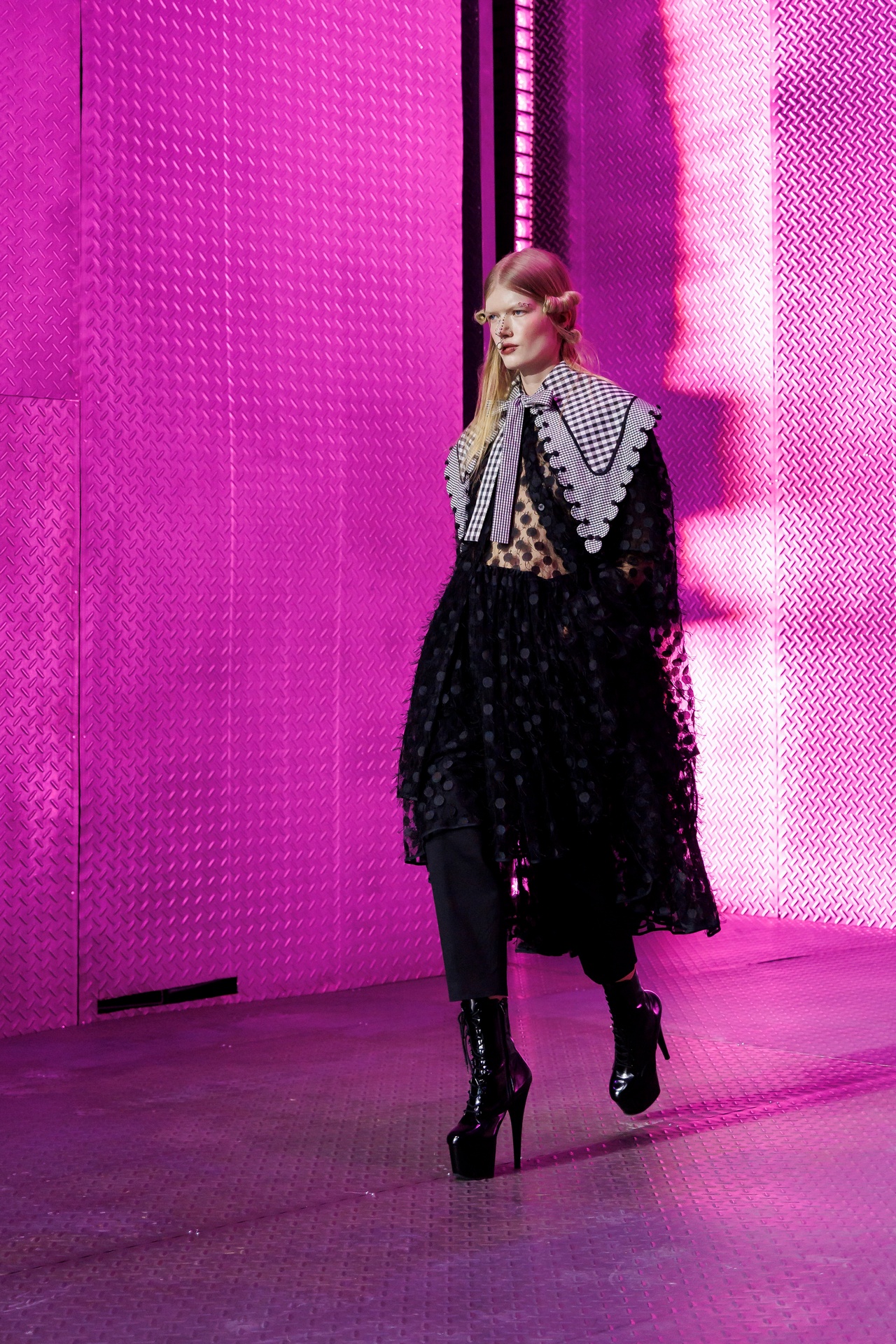 The collection inhabits the romanticism of the 19th century and the refined echoes of haute couture from the 1950s and 1960s. Naïve and kitsch coexist, as well as the melancholic tenderness of the sad clown, theatrical gestures, and historical evocations. Like a curtain slowly rising, cinema and music from all eras appear, alongside the immortal shadow of Anna Maria Mazzini, weaving a universe where dreams and memory walk hand in hand.
