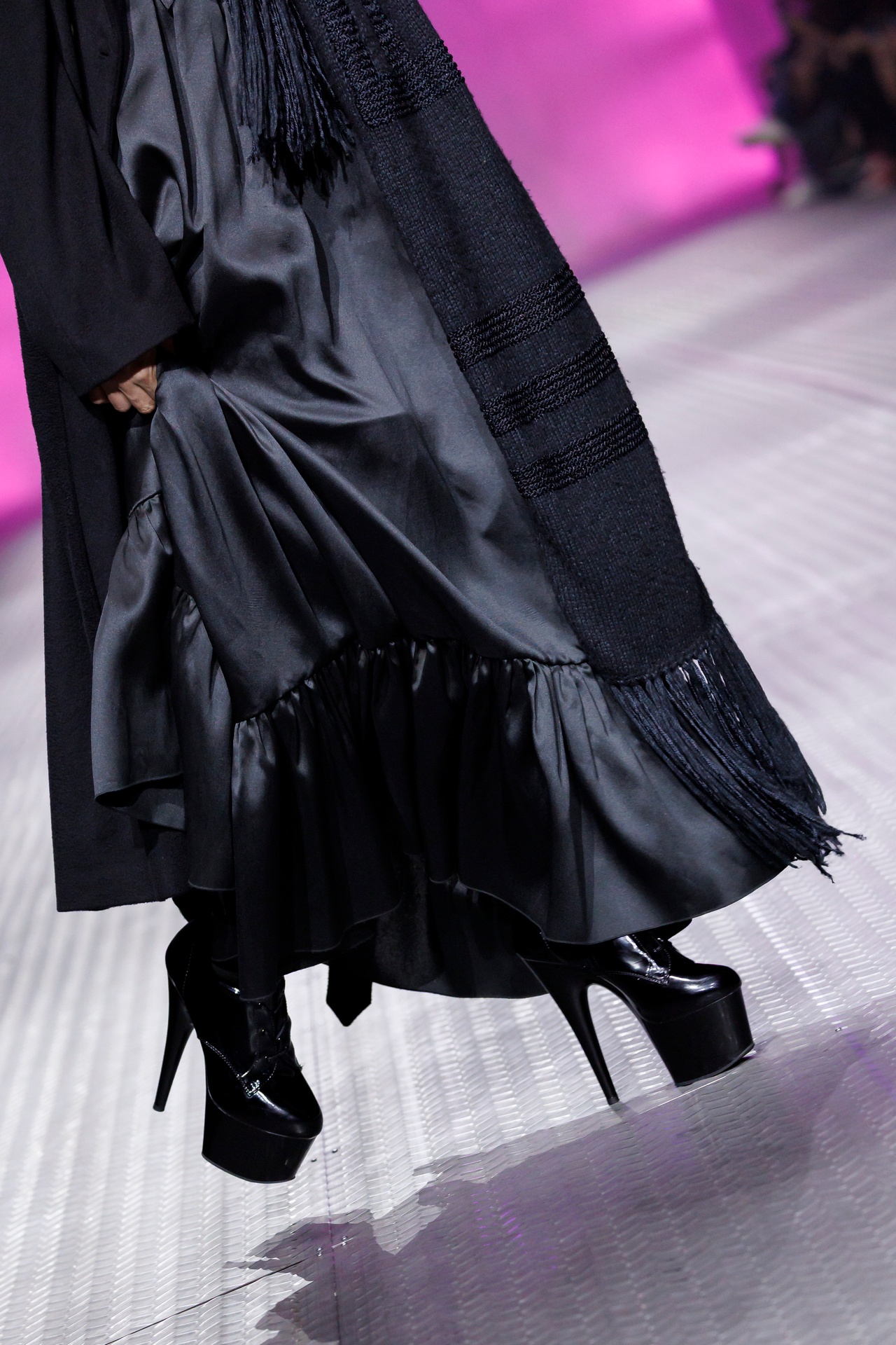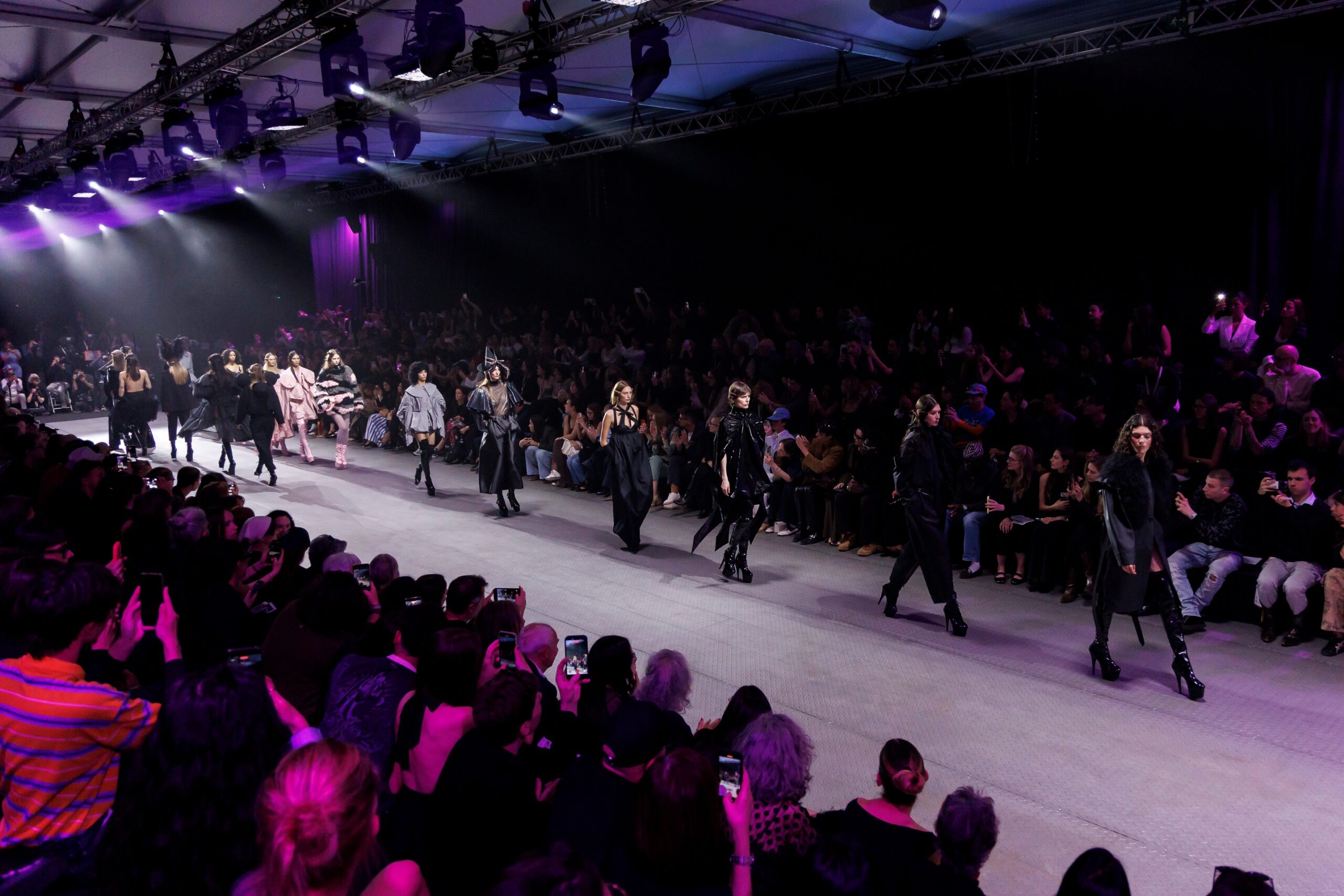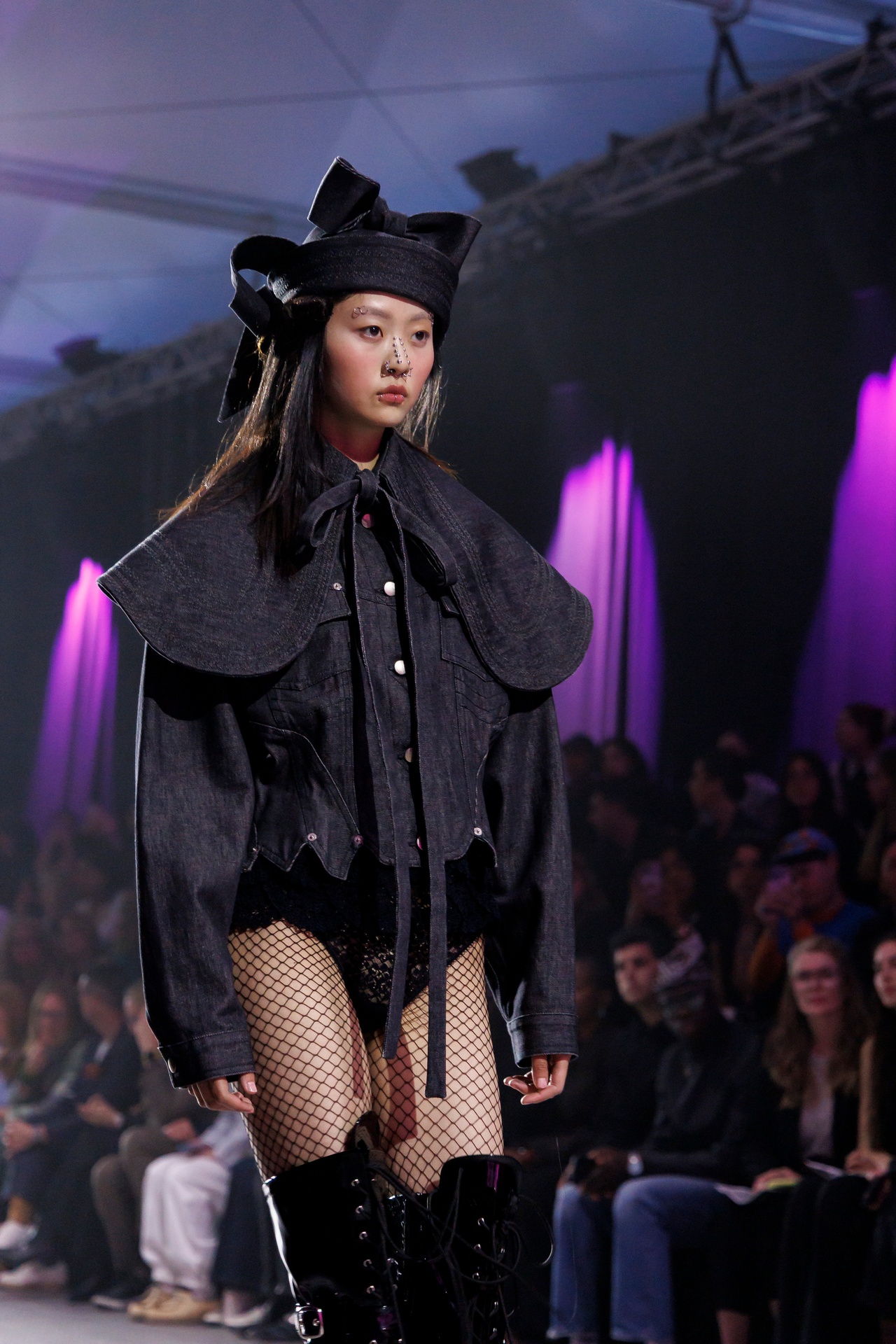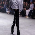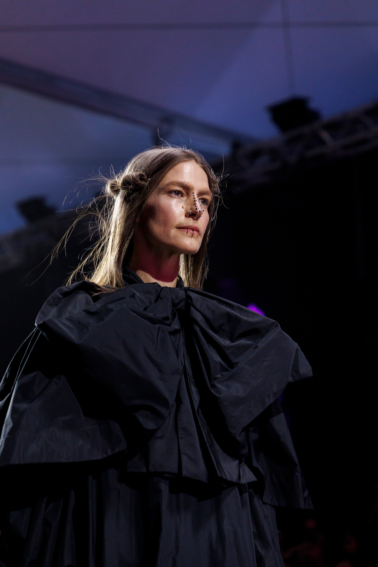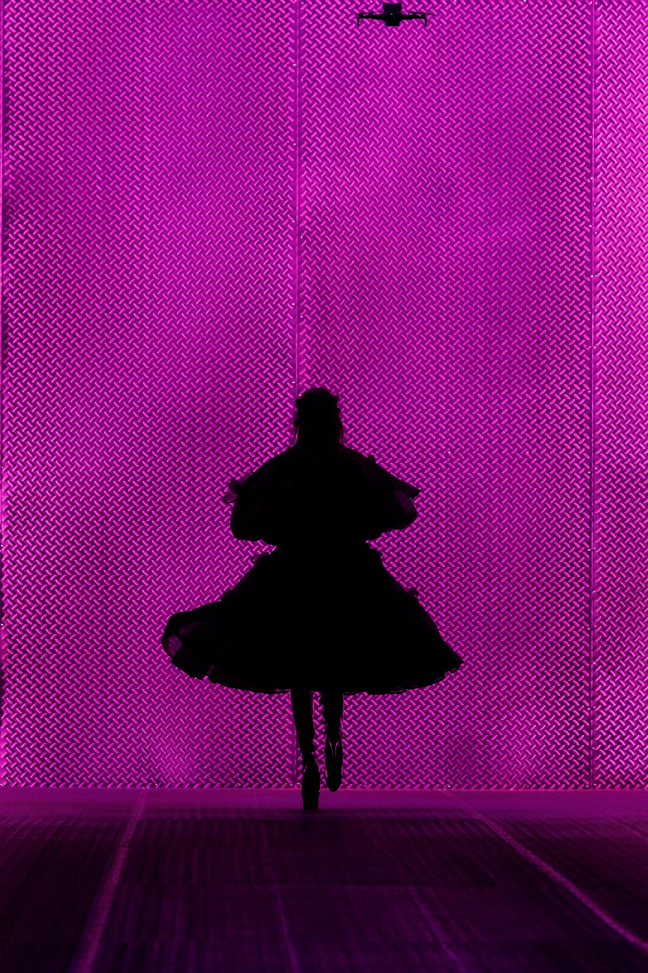 The collection inhabits the romanticism of the 19th century and the refined echoes of haute couture from the 1950s and 1960s. Naïve and kitsch coexist, as well as the melancholic tenderness of the sad clown, theatrical gestures, and historical evocations. Like a curtain slowly rising, cinema and music from all eras appear, alongside the immortal shadow of Anna Maria Mazzini, weaving a universe where dreams and memory walk hand in hand.