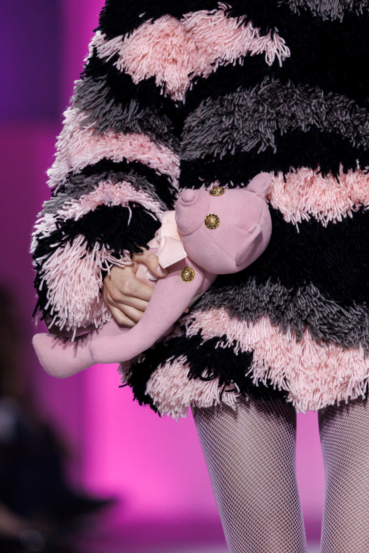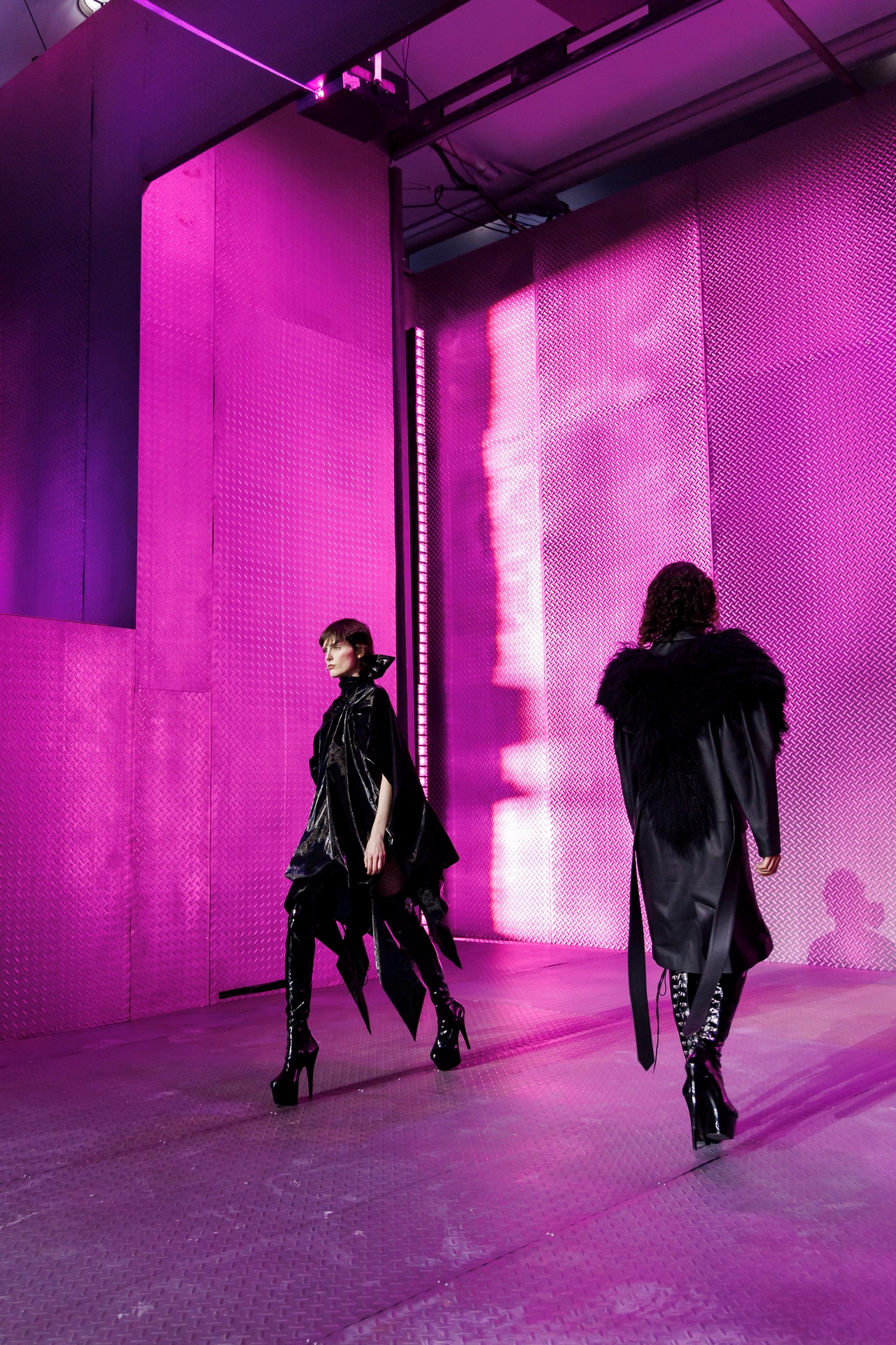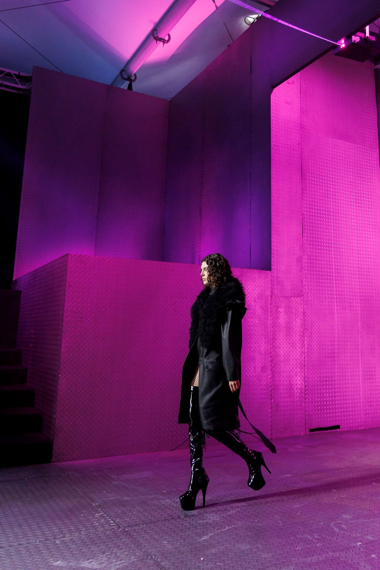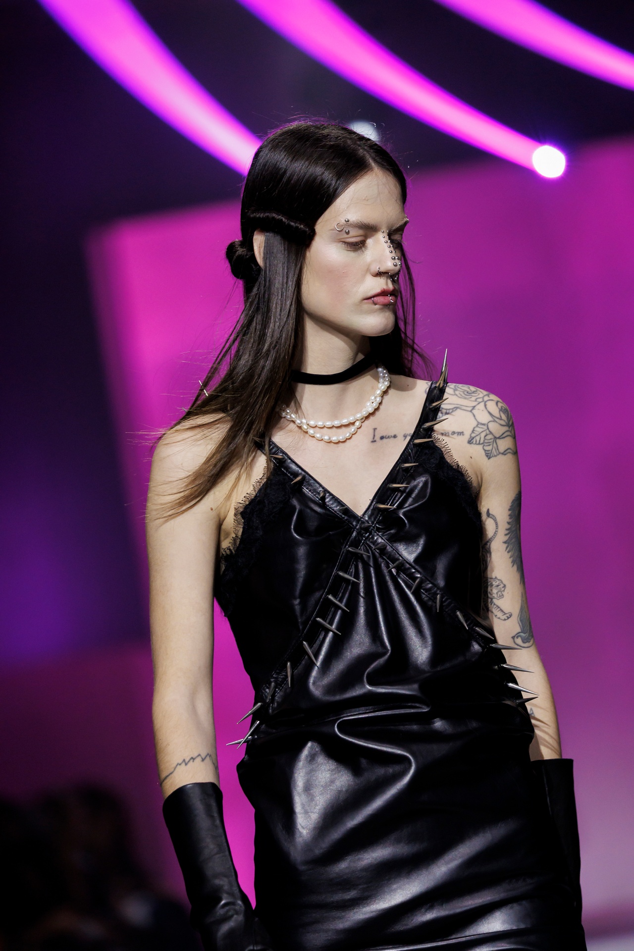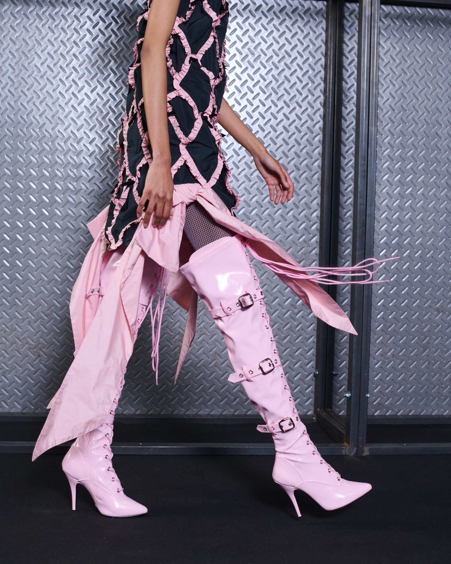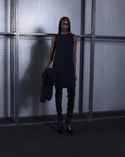 The collection inhabits the romanticism of the 19th century and the refined echoes of haute couture from the 1950s and 1960s. Naïve and kitsch coexist, as well as the melancholic tenderness of the sad clown, theatrical gestures, and historical evocations. Like a curtain slowly rising, cinema and music from all eras appear, alongside the immortal shadow of Anna Maria Mazzini, weaving a universe where dreams and memory walk hand in hand.