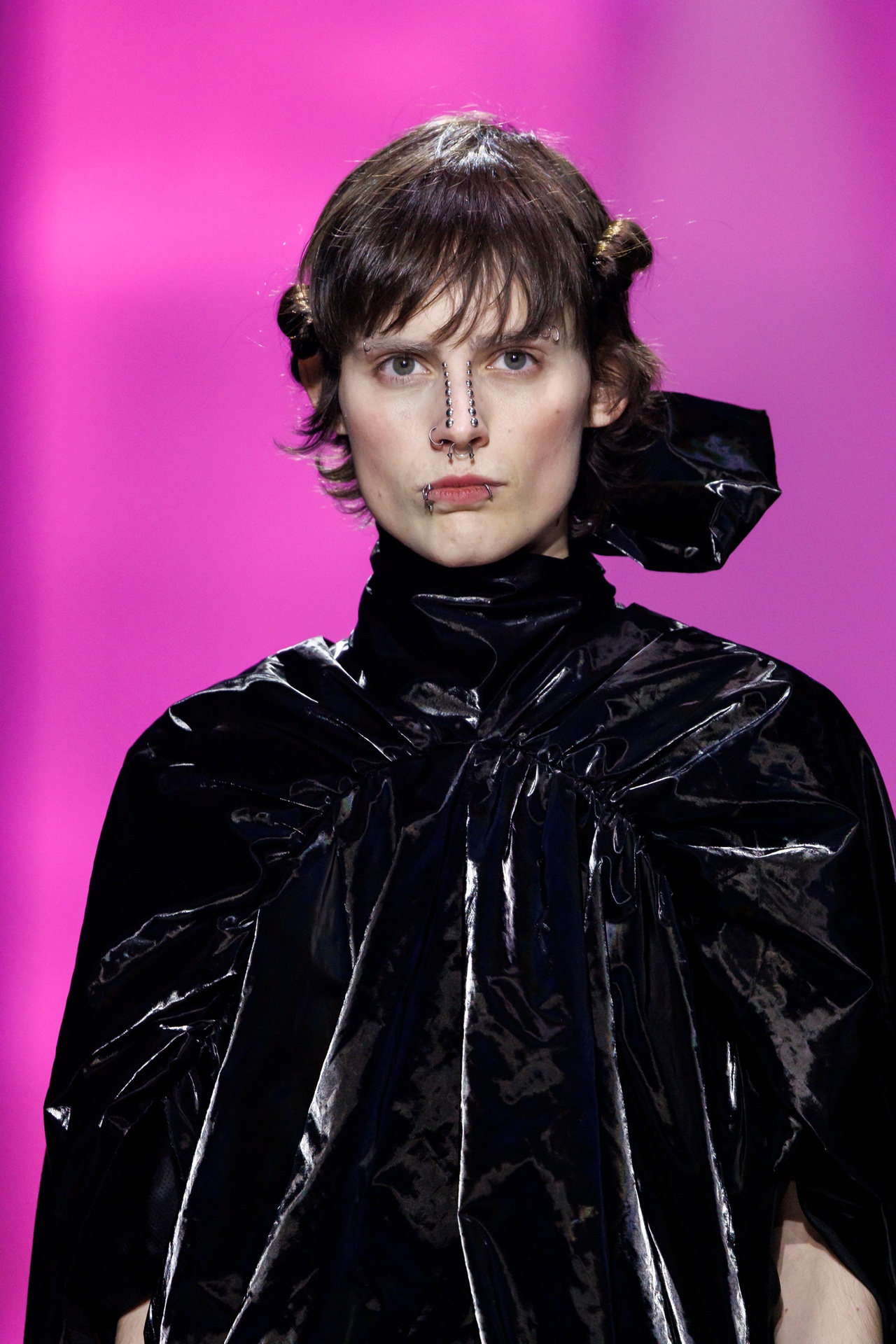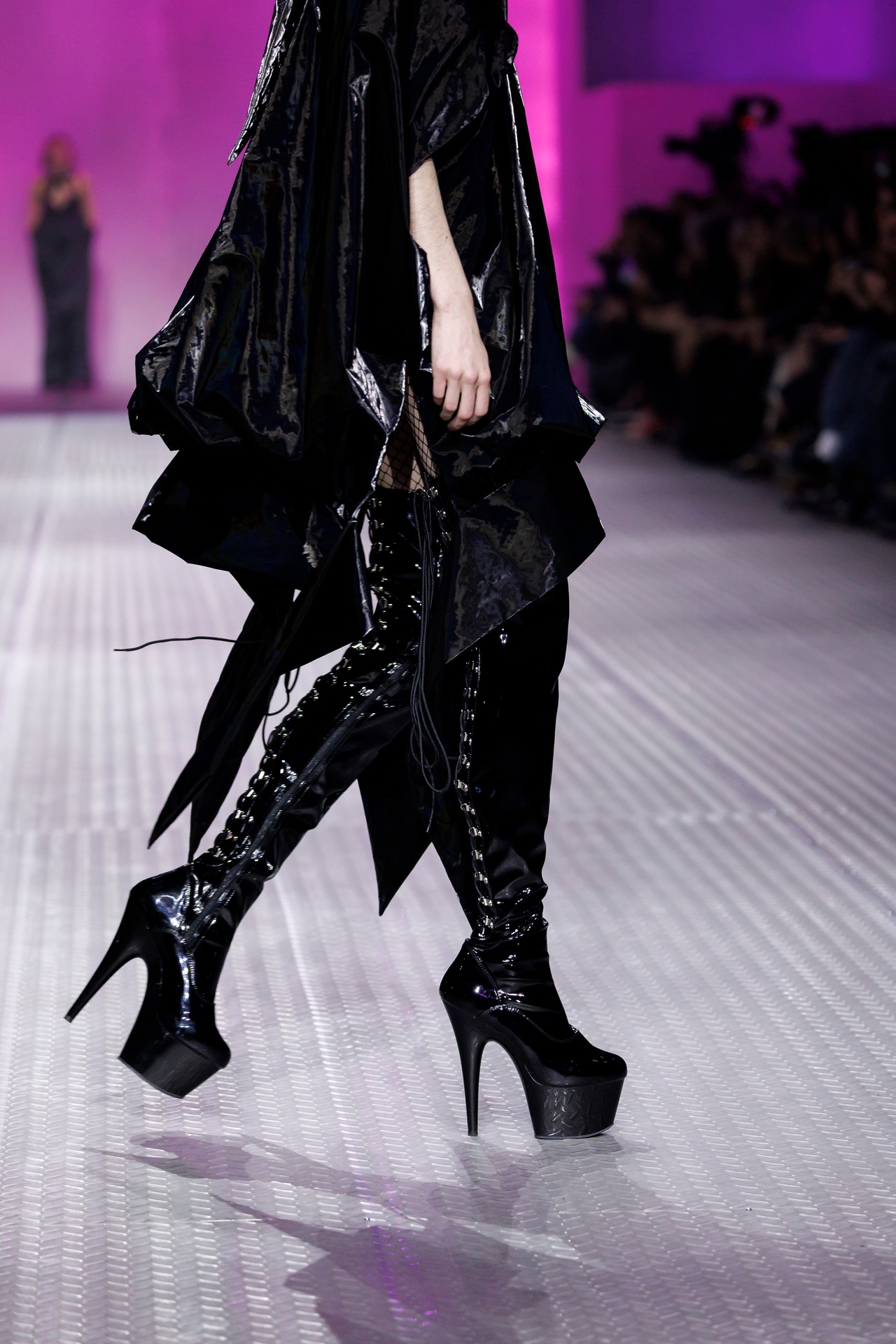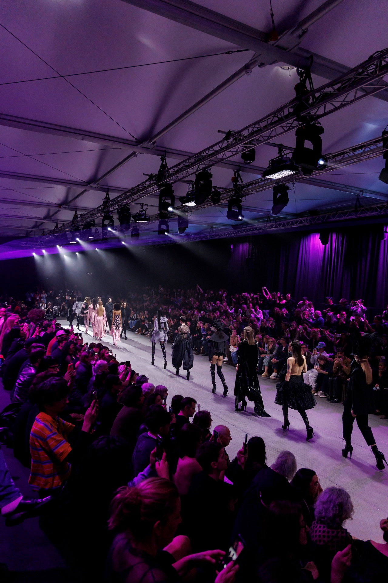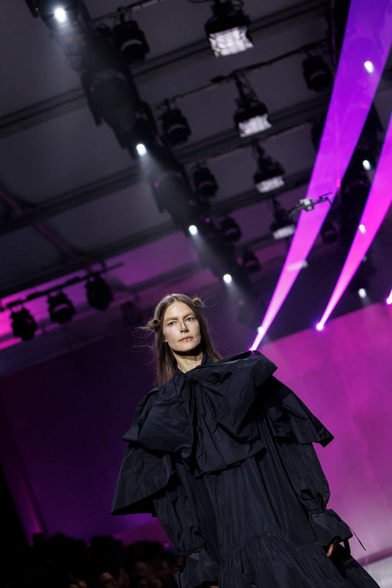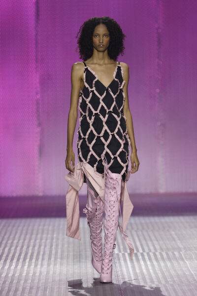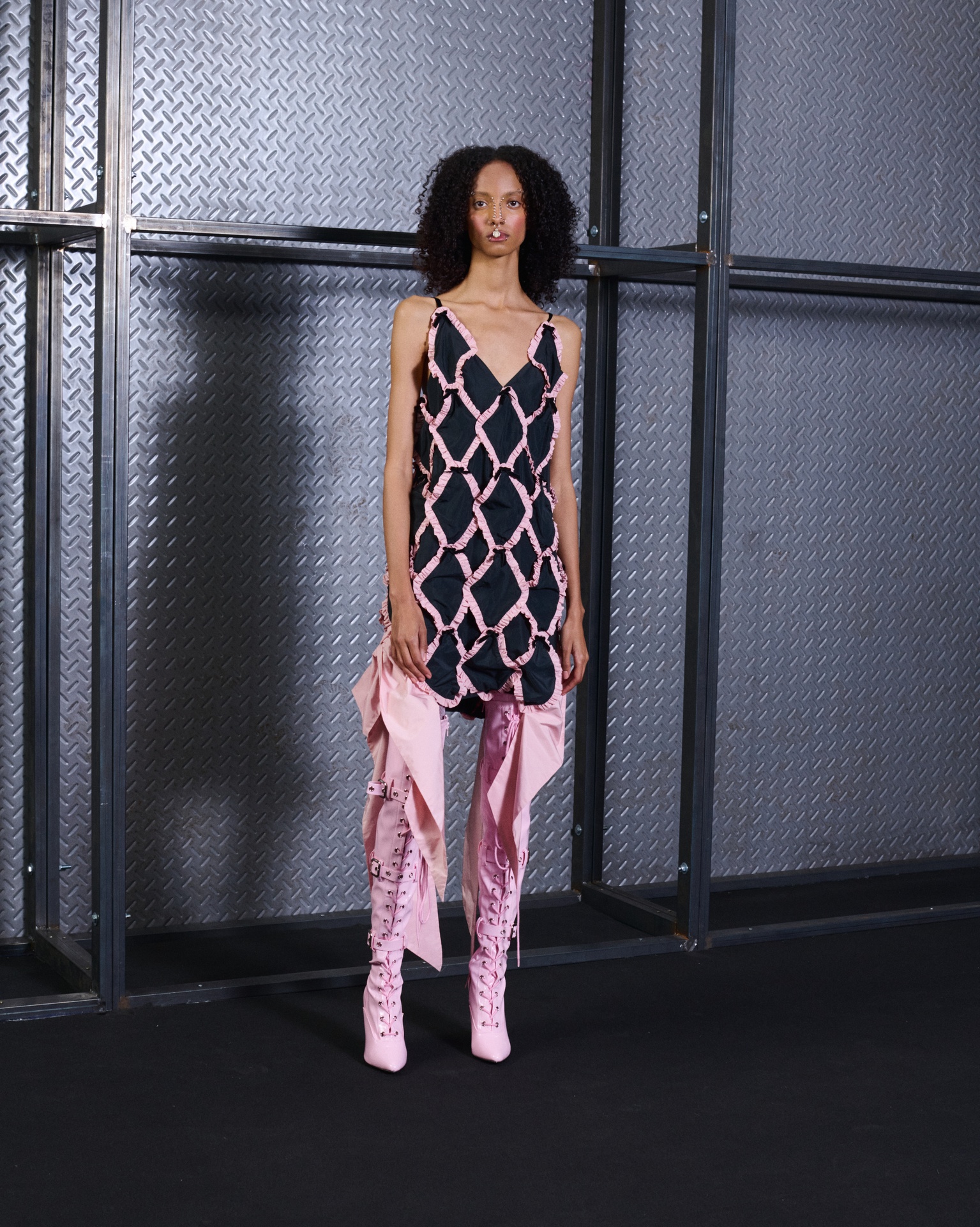 The collection inhabits the romanticism of the 19th century and the refined echoes of haute couture from the 1950s and 1960s. Naïve and kitsch coexist, as well as the melancholic tenderness of the sad clown, theatrical gestures, and historical evocations. Like a curtain slowly rising, cinema and music from all eras appear, alongside the immortal shadow of Anna Maria Mazzini, weaving a universe where dreams and memory walk hand in hand.