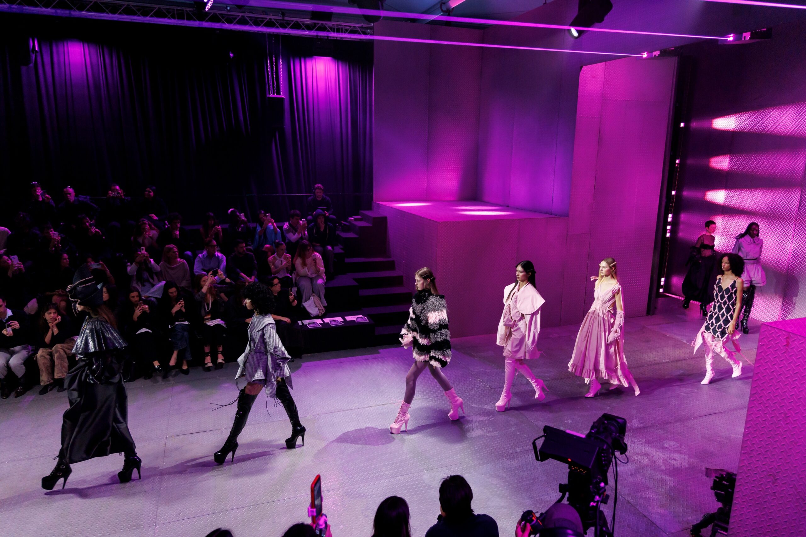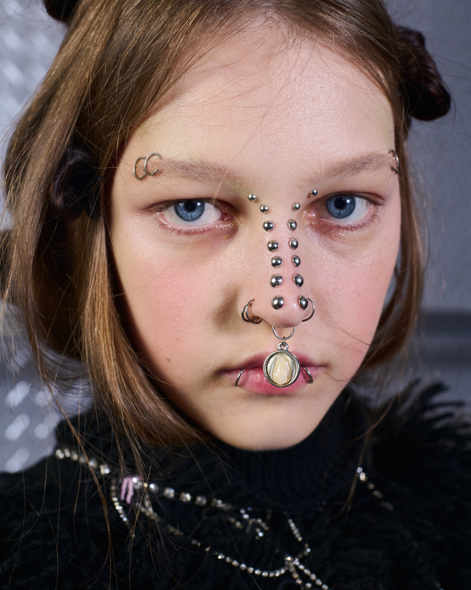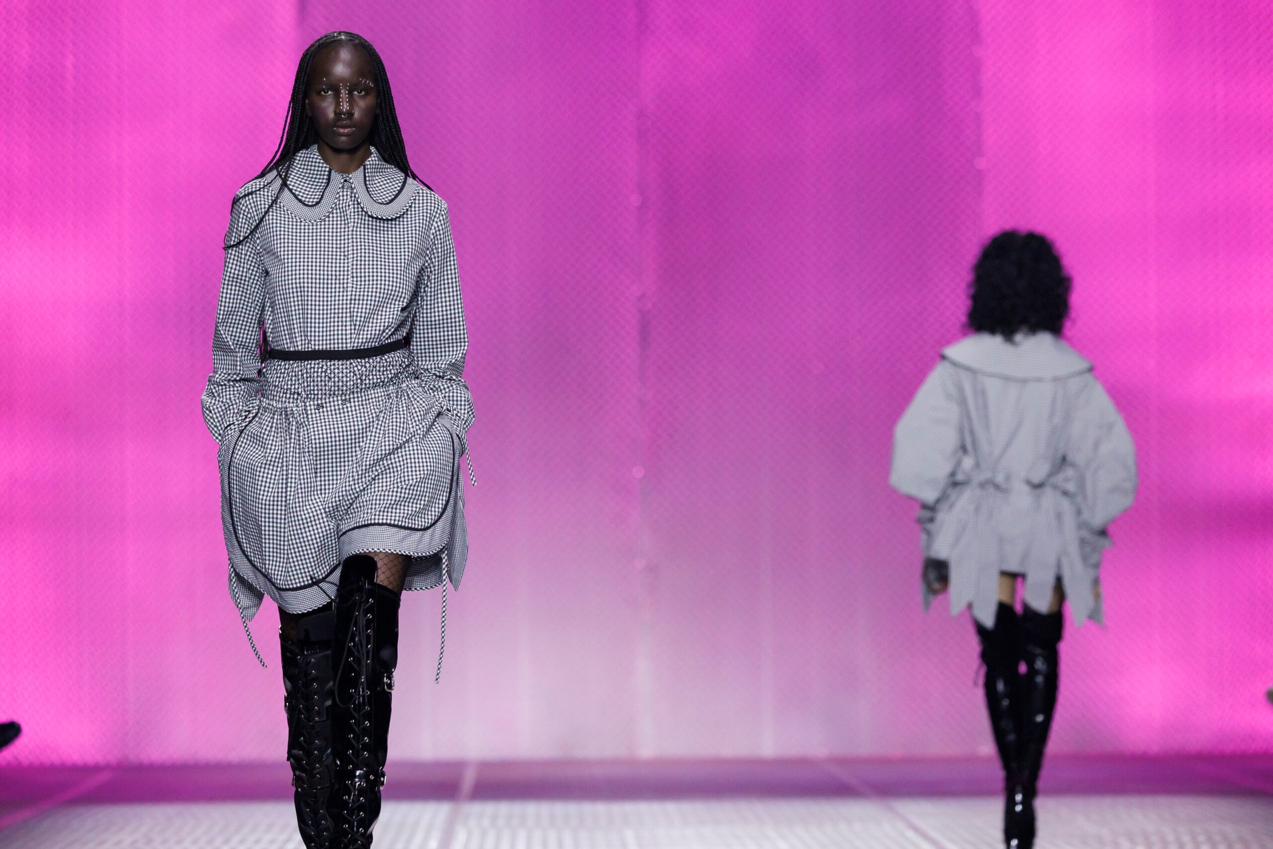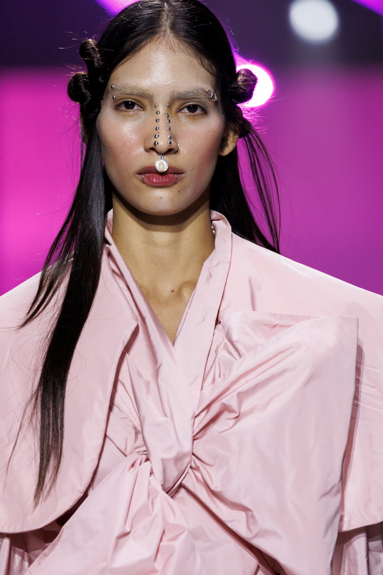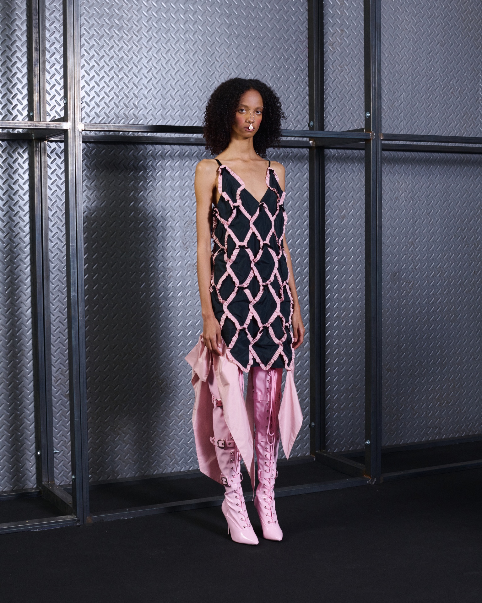 The collection inhabits the romanticism of the 19th century and the refined echoes of haute couture from the 1950s and 1960s. Naïve and kitsch coexist, as well as the melancholic tenderness of the sad clown, theatrical gestures, and historical evocations. Like a curtain slowly rising, cinema and music from all eras appear, alongside the immortal shadow of Anna Maria Mazzini, weaving a universe where dreams and memory walk hand in hand.