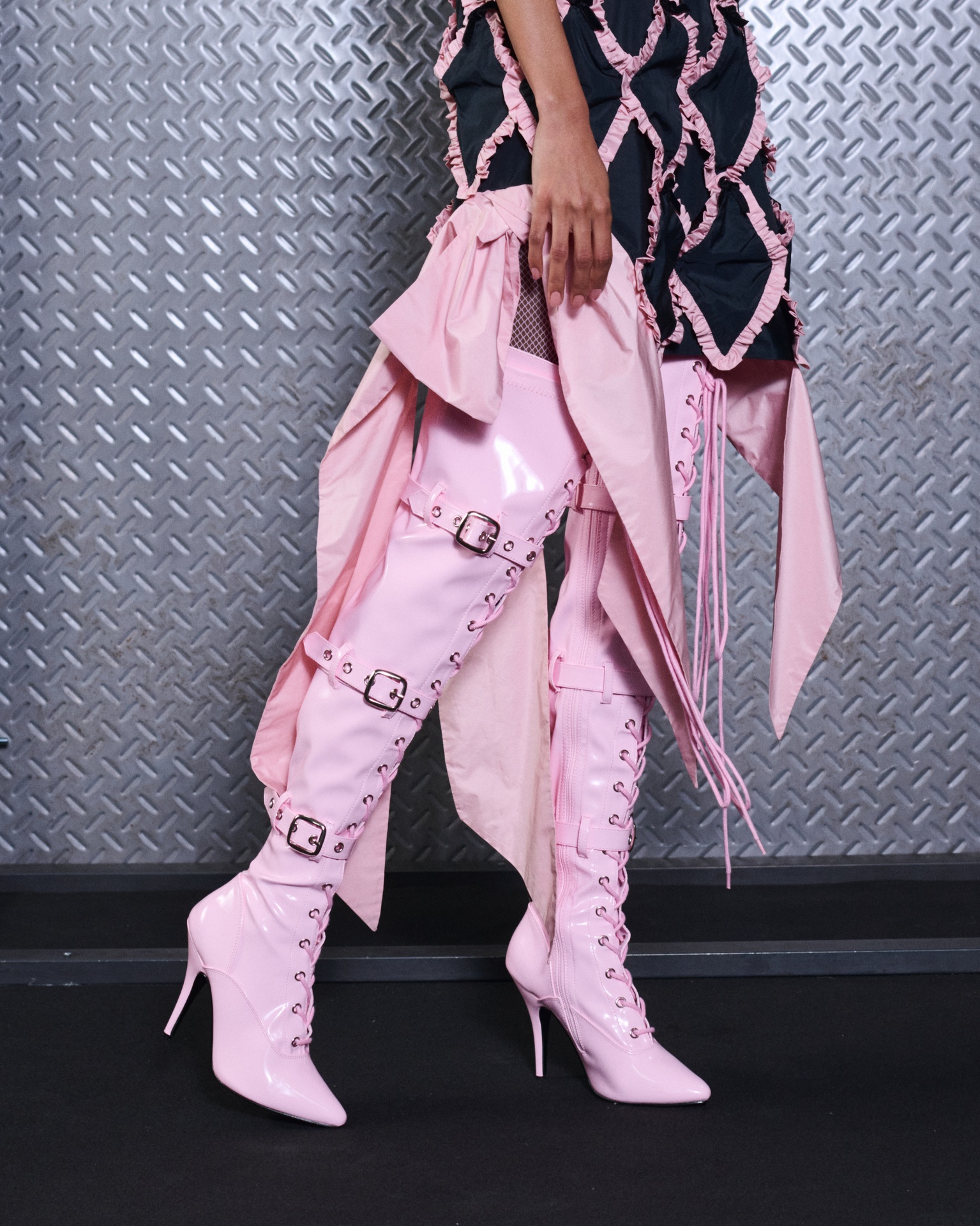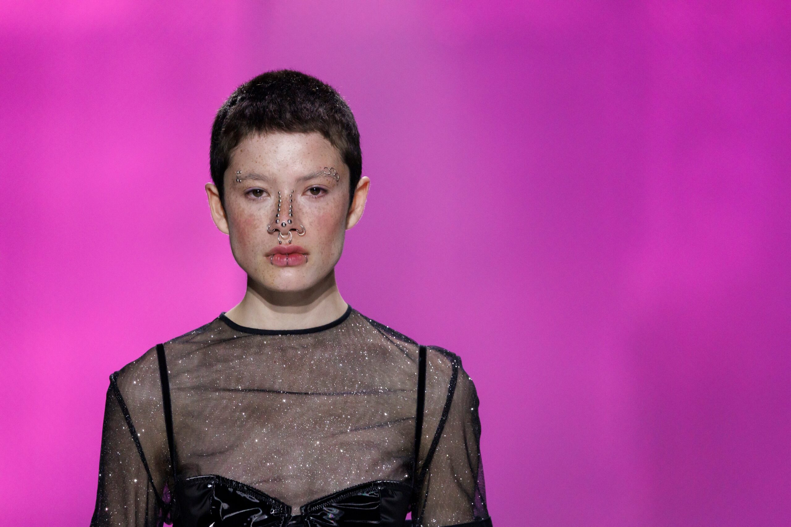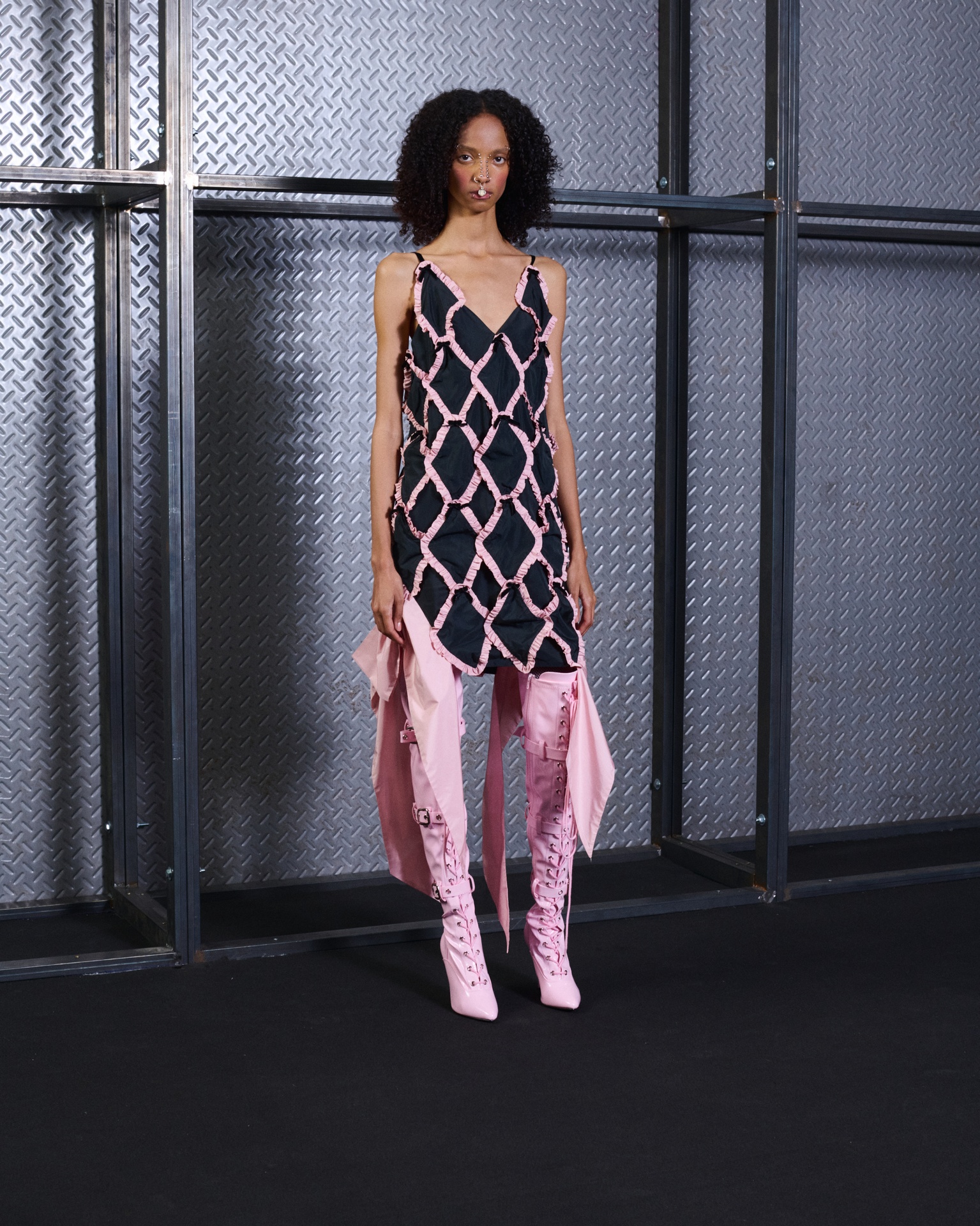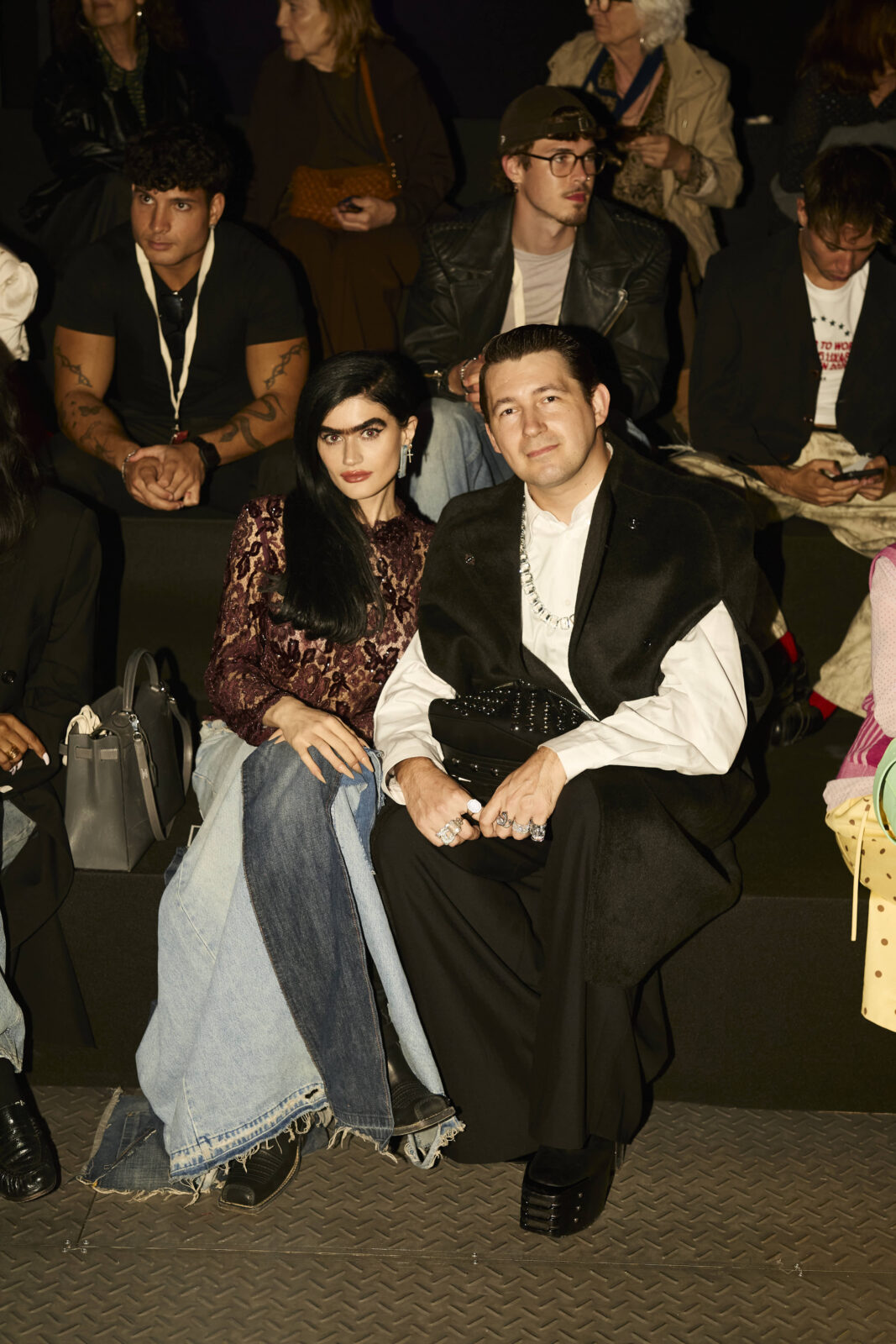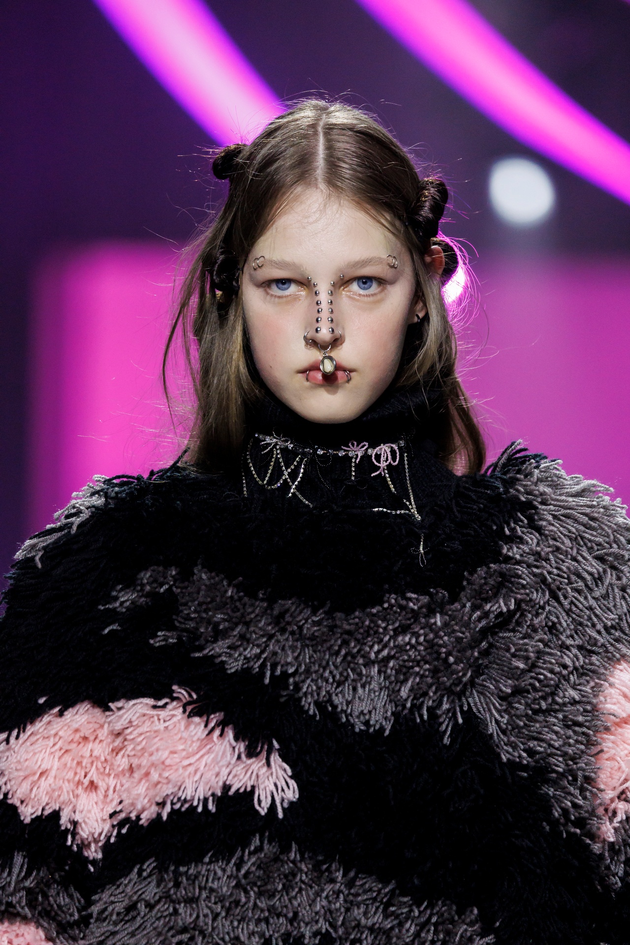 The collection inhabits the romanticism of the 19th century and the refined echoes of haute couture from the 1950s and 1960s. Naïve and kitsch coexist, as well as the melancholic tenderness of the sad clown, theatrical gestures, and historical evocations. Like a curtain slowly rising, cinema and music from all eras appear, alongside the immortal shadow of Anna Maria Mazzini, weaving a universe where dreams and memory walk hand in hand.