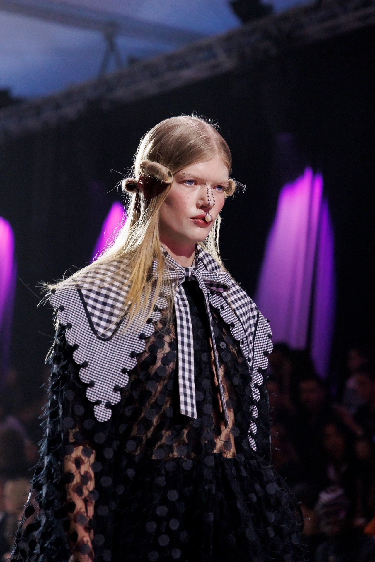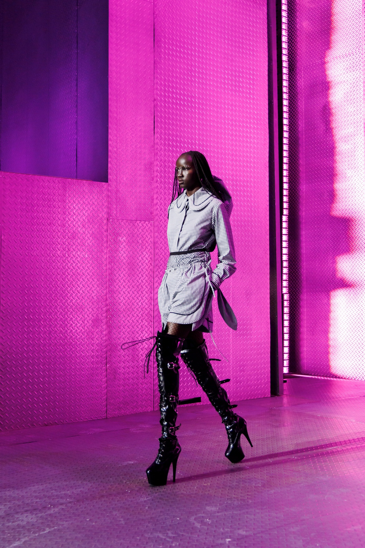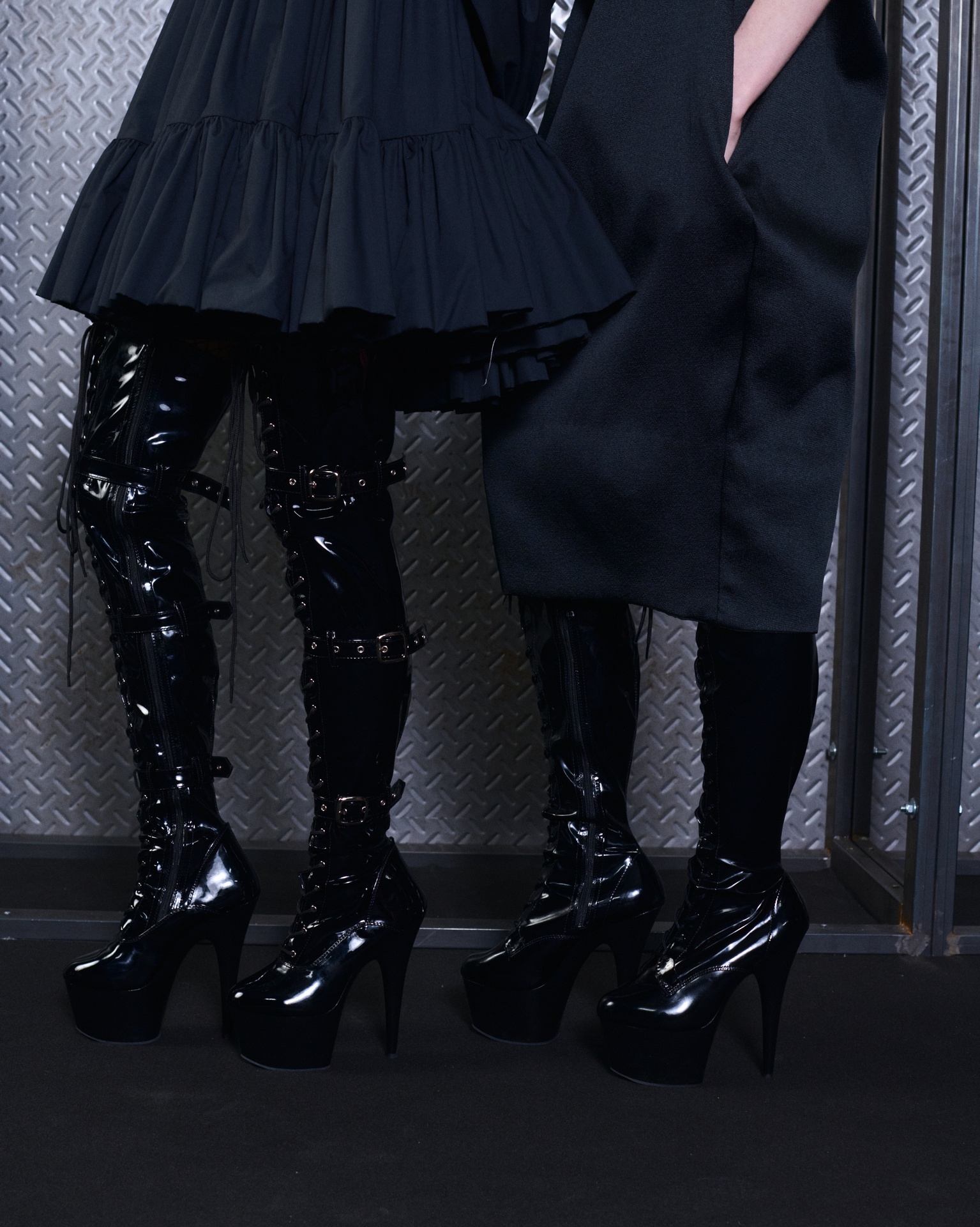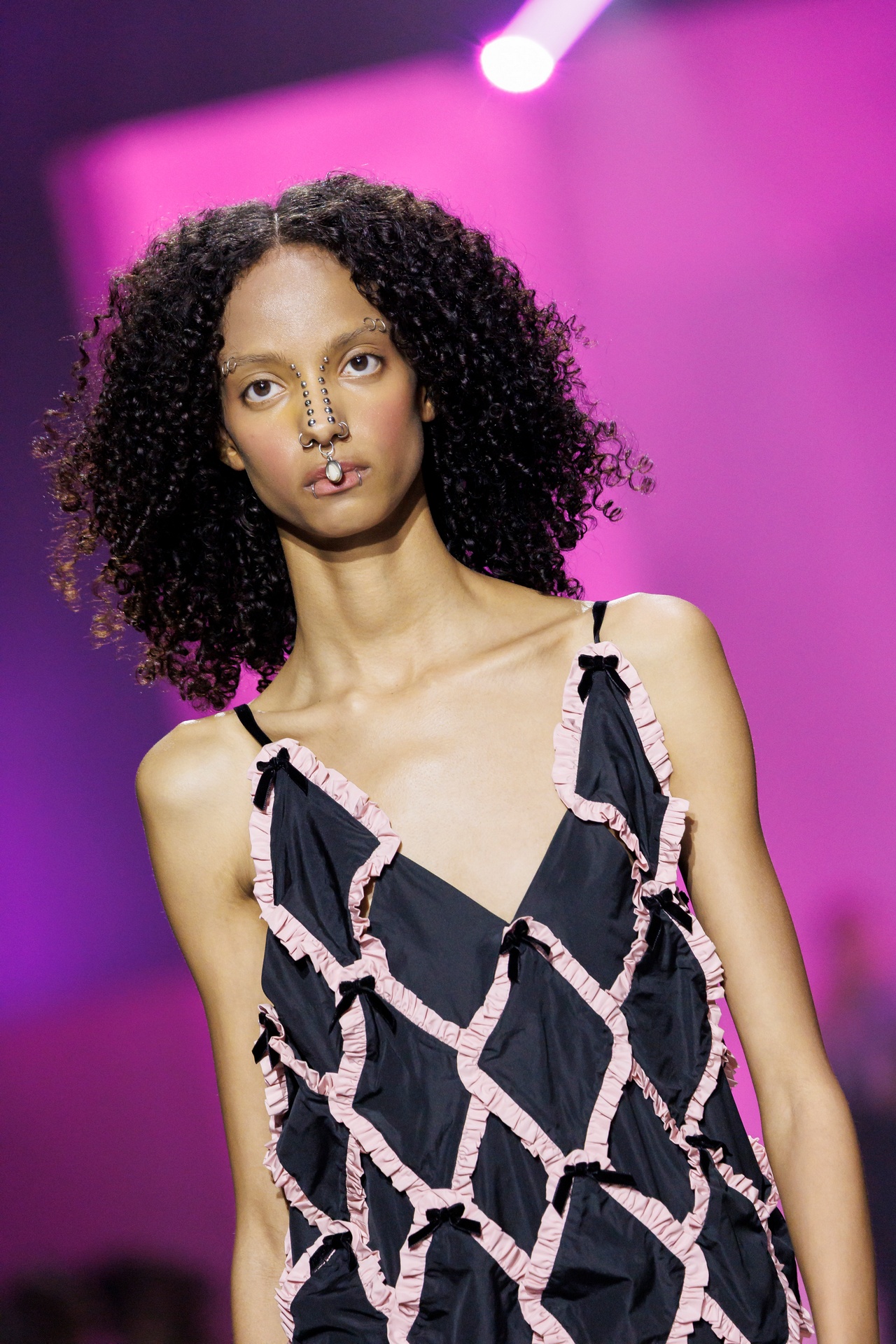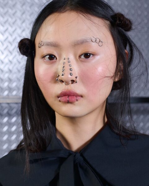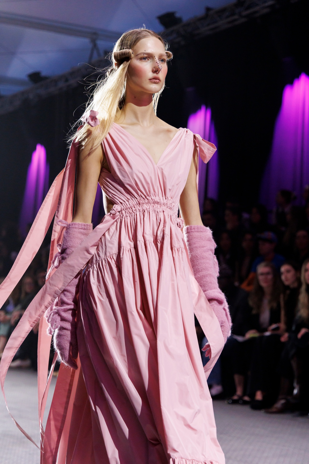 The collection inhabits the romanticism of the 19th century and the refined echoes of haute couture from the 1950s and 1960s. Naïve and kitsch coexist, as well as the melancholic tenderness of the sad clown, theatrical gestures, and historical evocations. Like a curtain slowly rising, cinema and music from all eras appear, alongside the immortal shadow of Anna Maria Mazzini, weaving a universe where dreams and memory walk hand in hand.