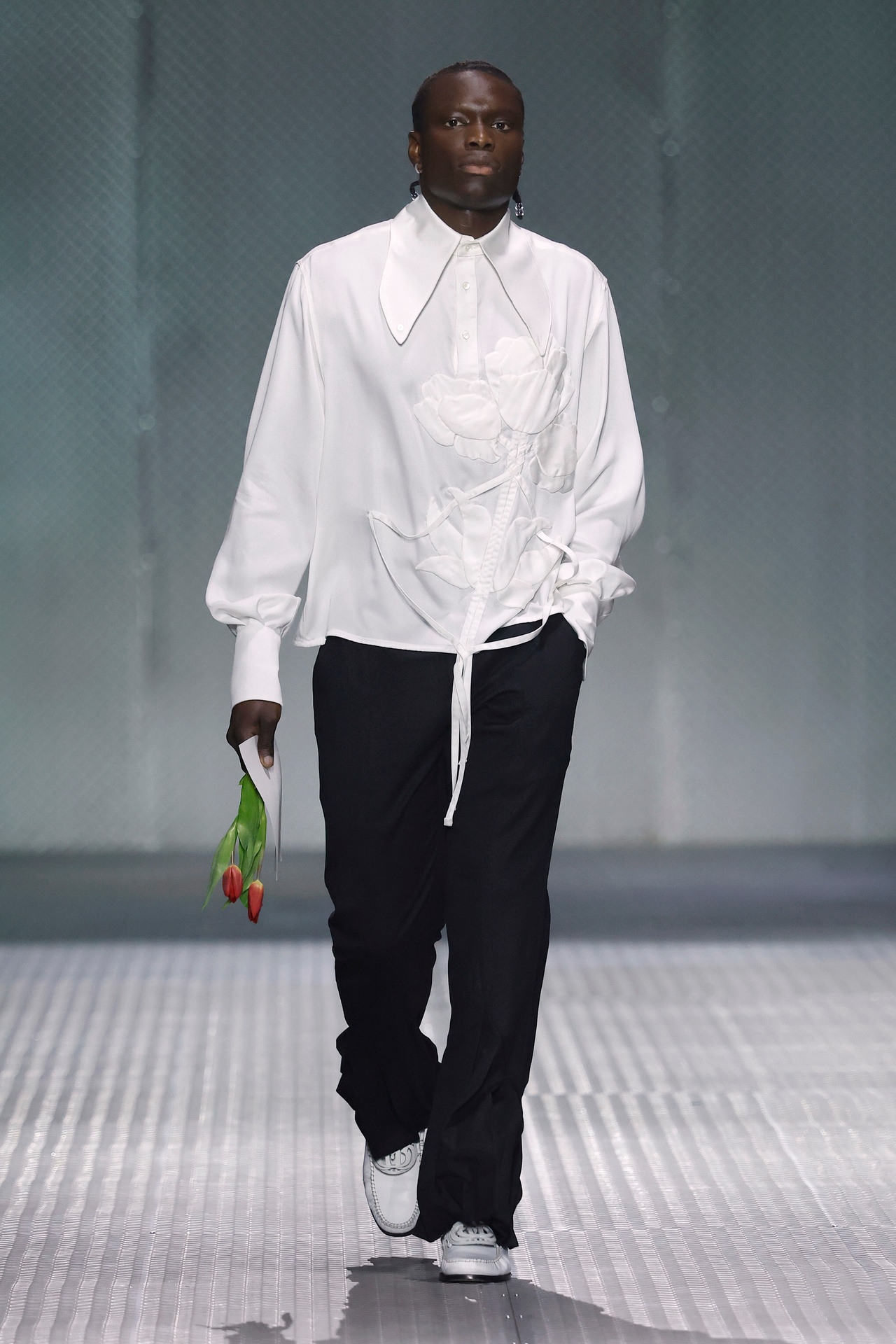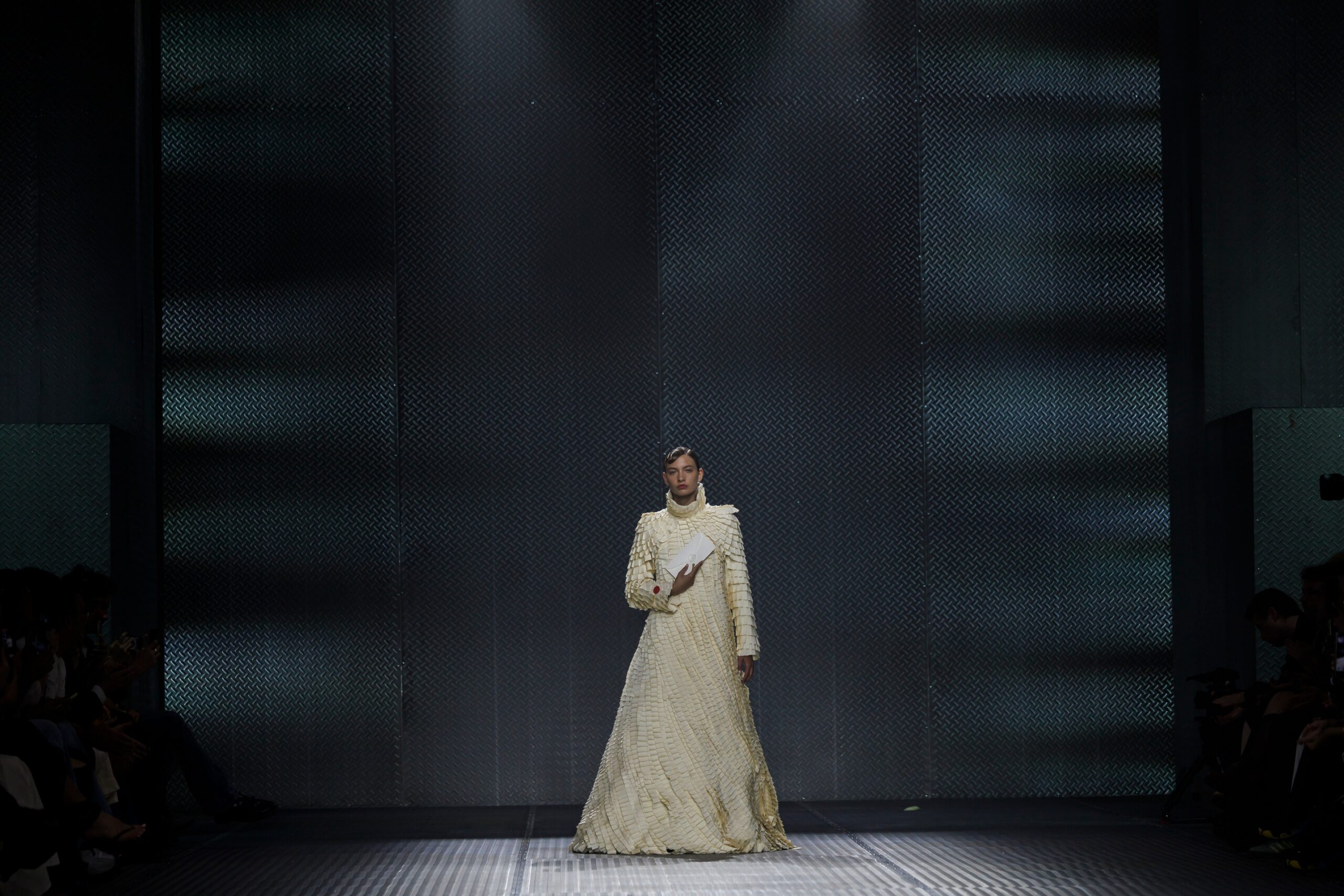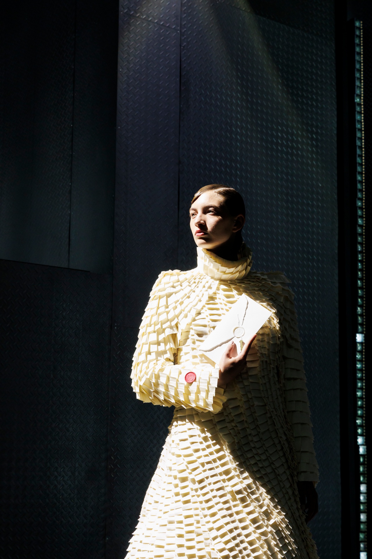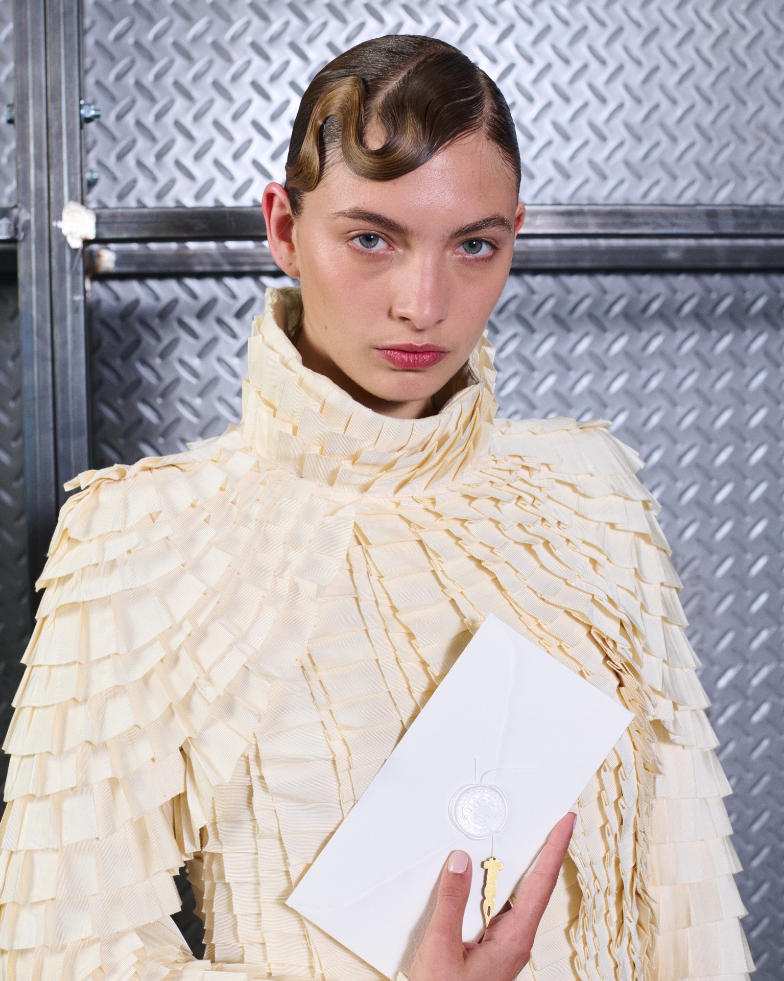 With Kind Regards is the first runway proposal presented by Ugo Boulard. Conceived as a letter of introduction in three chapters, the collection is structured around the epistolary universe: writing, paper, calligraphy, wax seals, and the letter understood as an intimate object, a symbol of memory and timelessness.