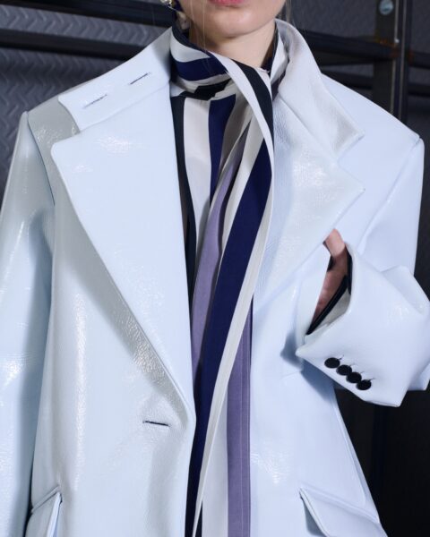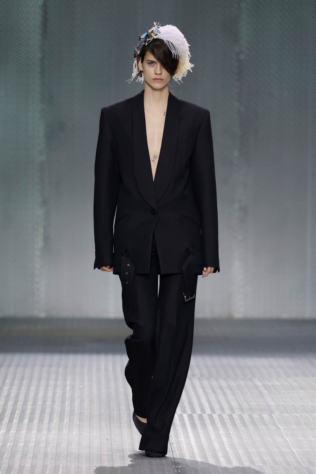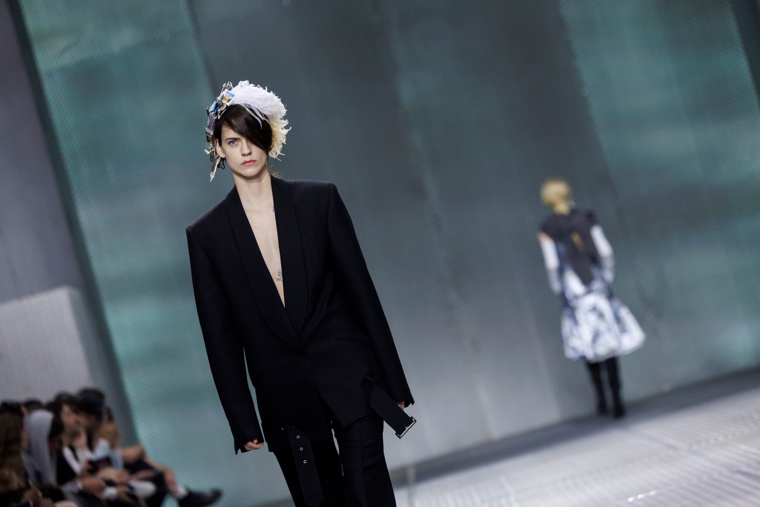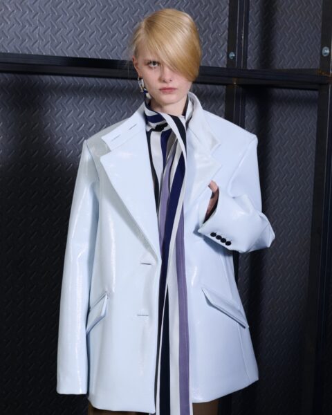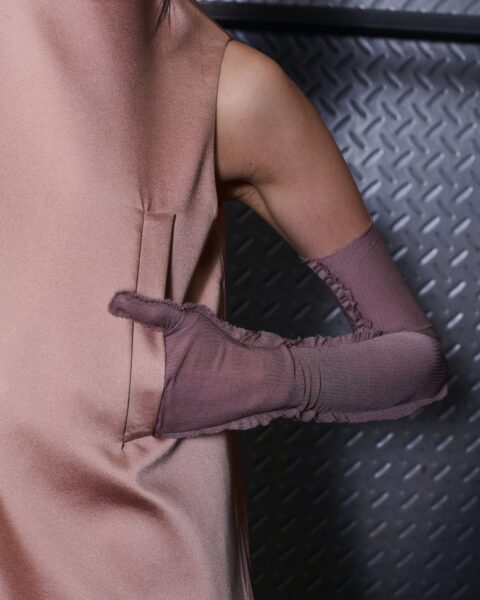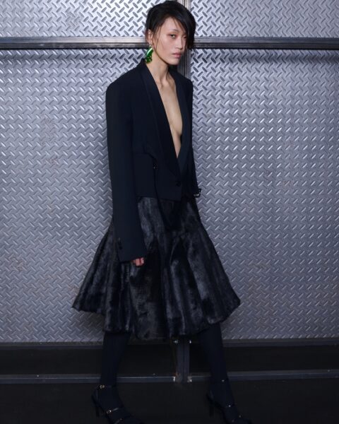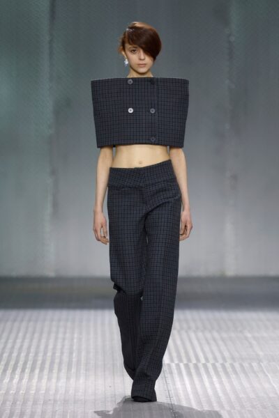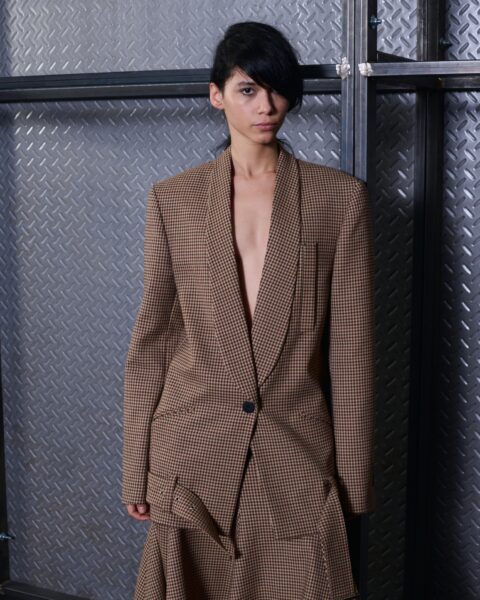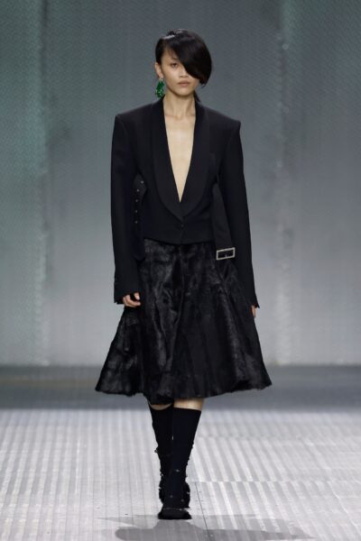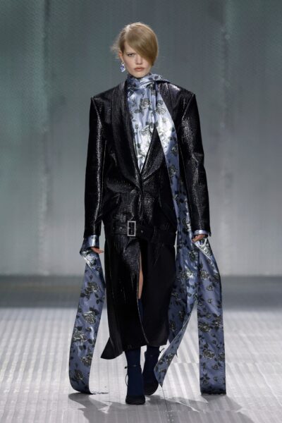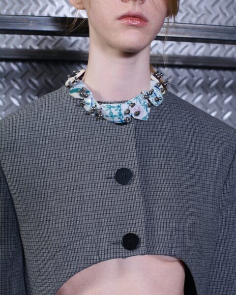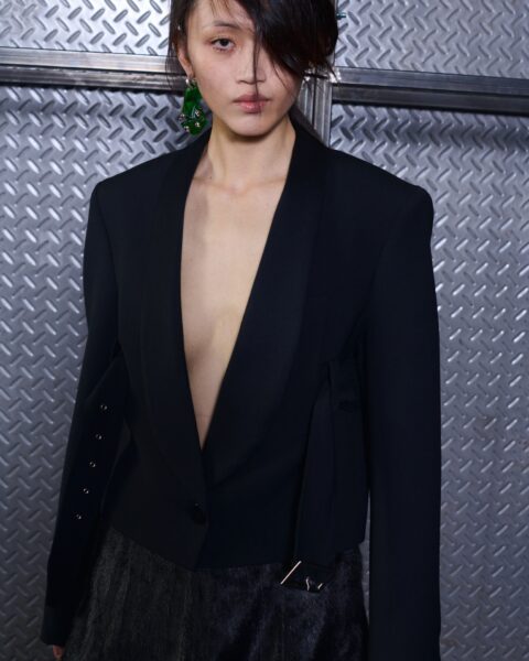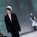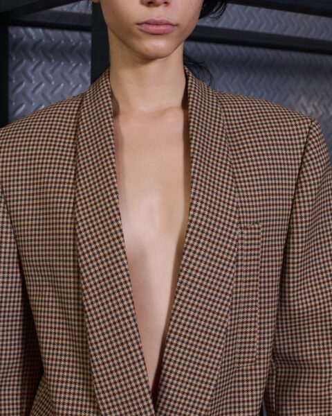 The formal intersects with the unfinished; solidity coexists with vulnerability. In this context, the tuxedo becomes a key element: it sheds its traditional solemnity and integrates into a contemporary language where formality softens and becomes expression. A subtle nod to the 1960s introduces refined silhouettes and a restrained femininity, reinterpreted from a present perspective, free from nostalgia. Collapse does not seek to resolve contradiction, but to inhabit it and turn it into its essence.