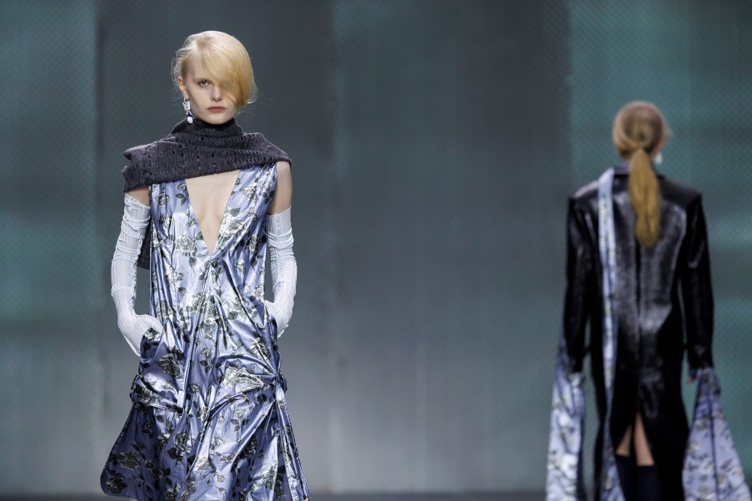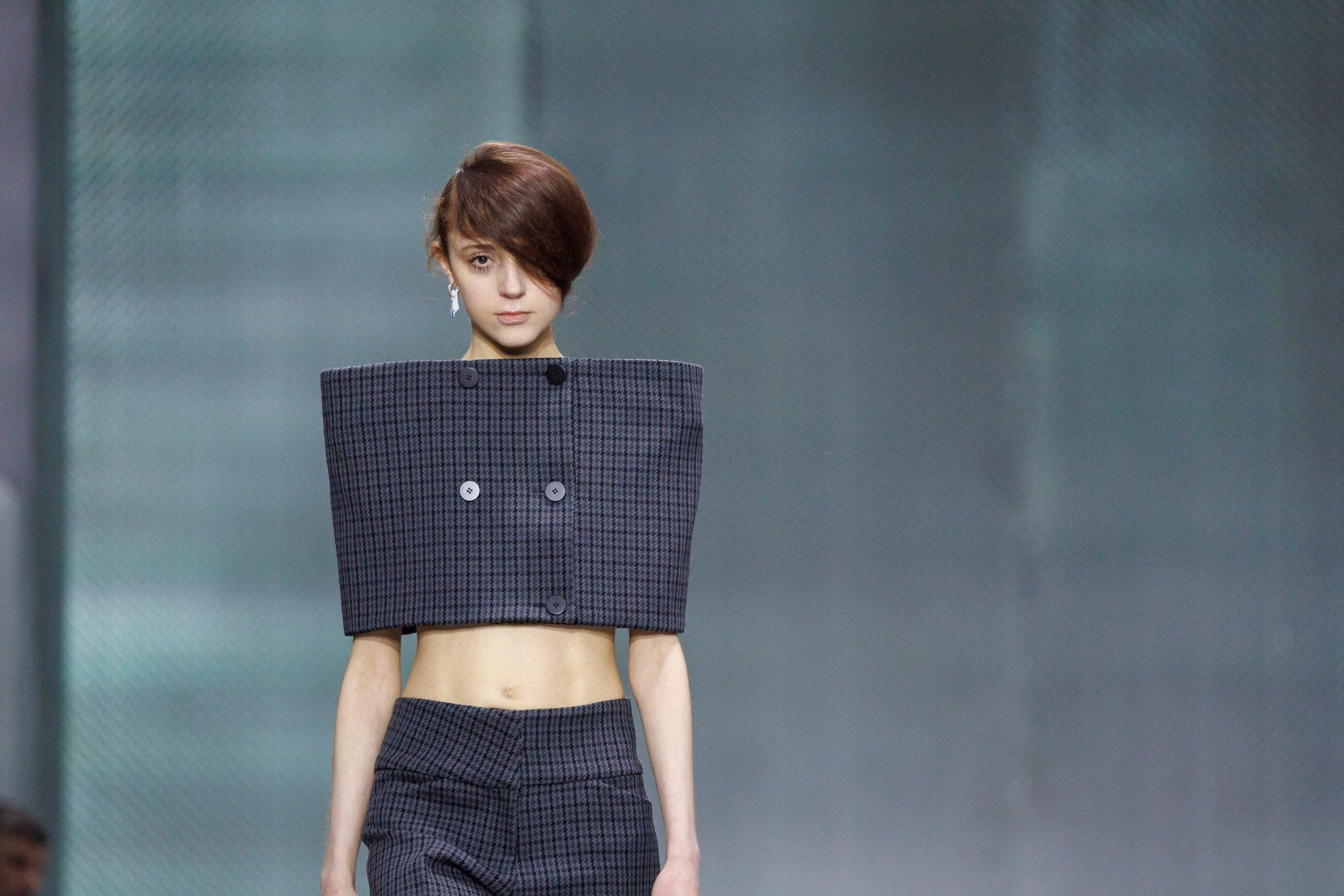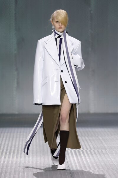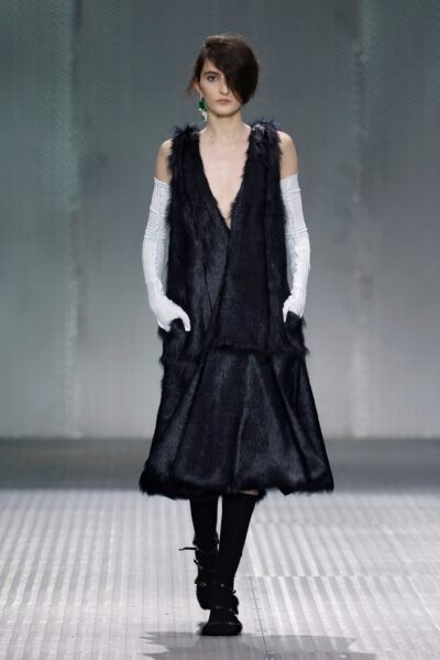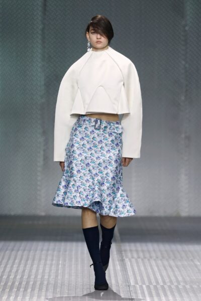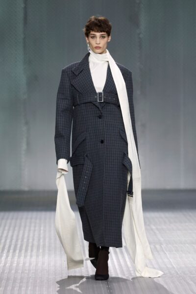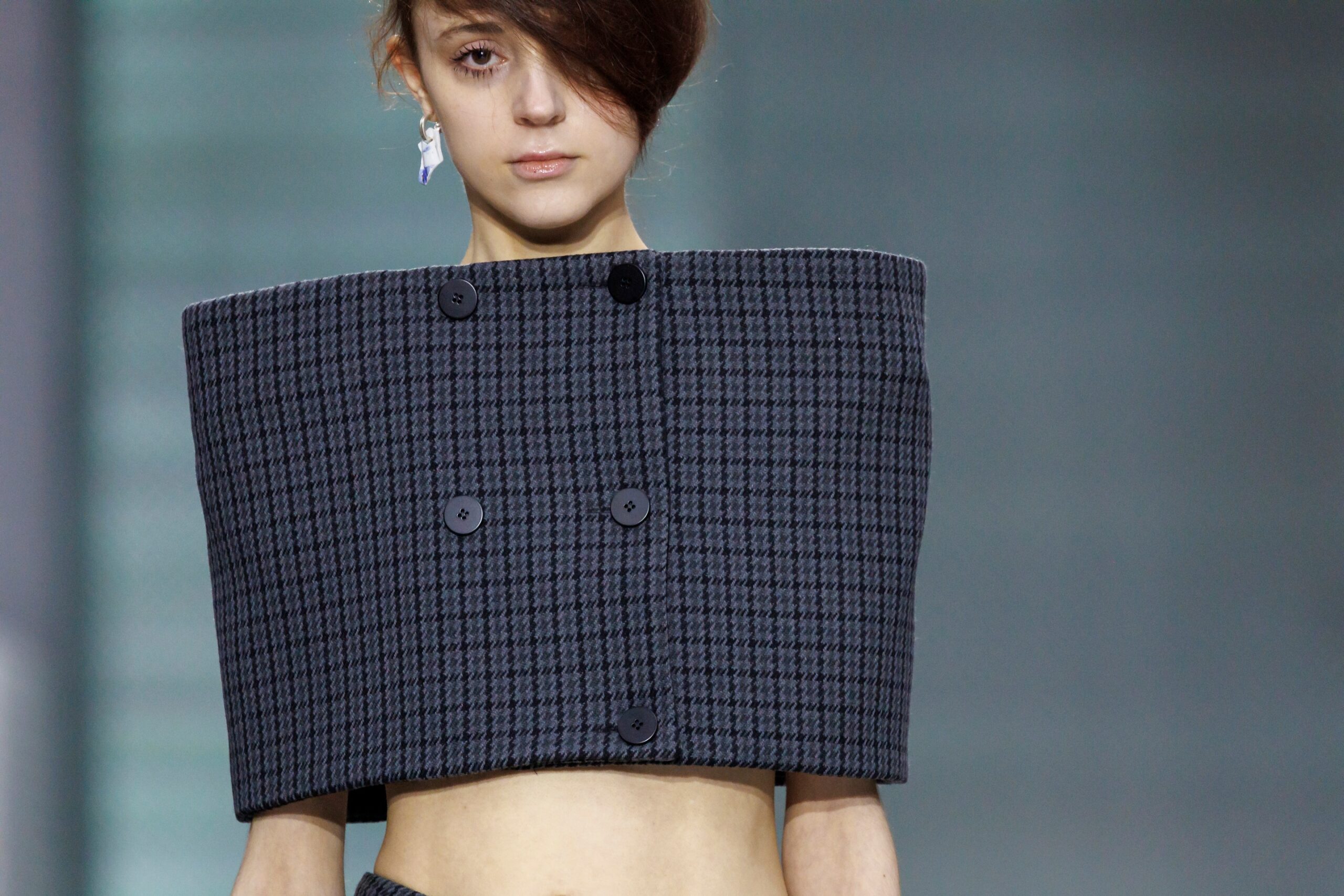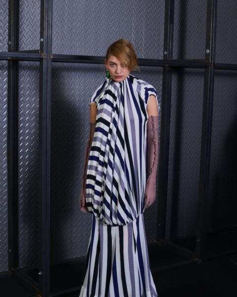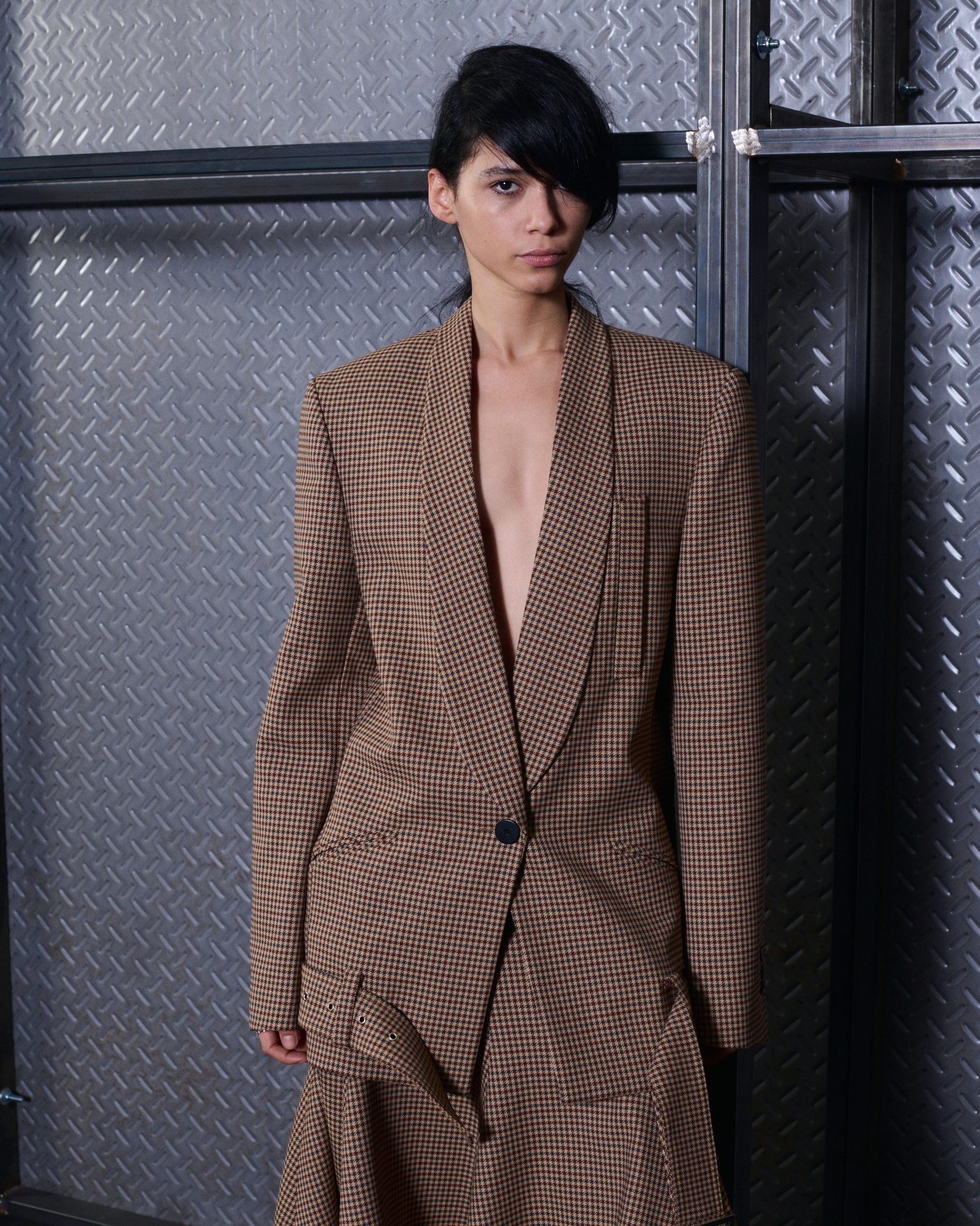 The formal intersects with the unfinished; solidity coexists with vulnerability. In this context, the tuxedo becomes a key element: it sheds its traditional solemnity and integrates into a contemporary language where formality softens and becomes expression. A subtle nod to the 1960s introduces refined silhouettes and a restrained femininity, reinterpreted from a present perspective, free from nostalgia. Collapse does not seek to resolve contradiction, but to inhabit it and turn it into its essence.