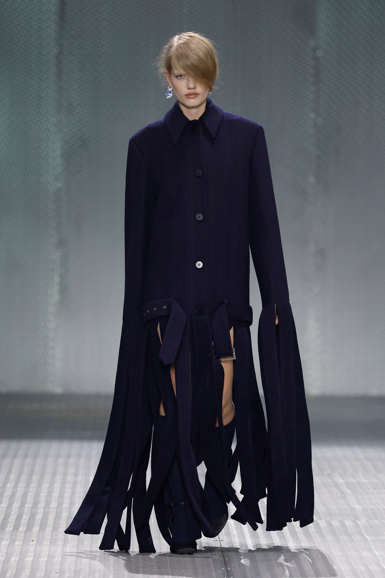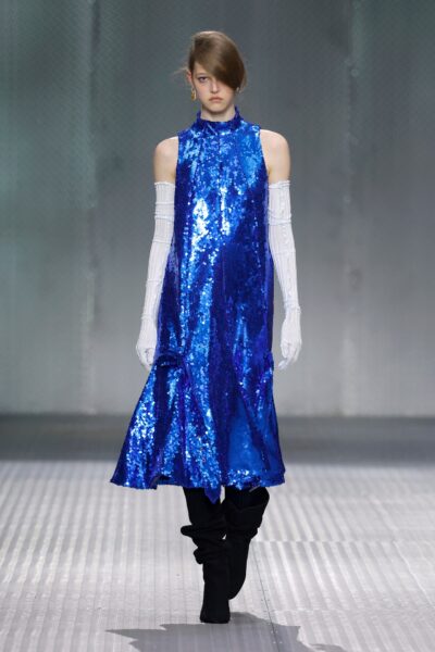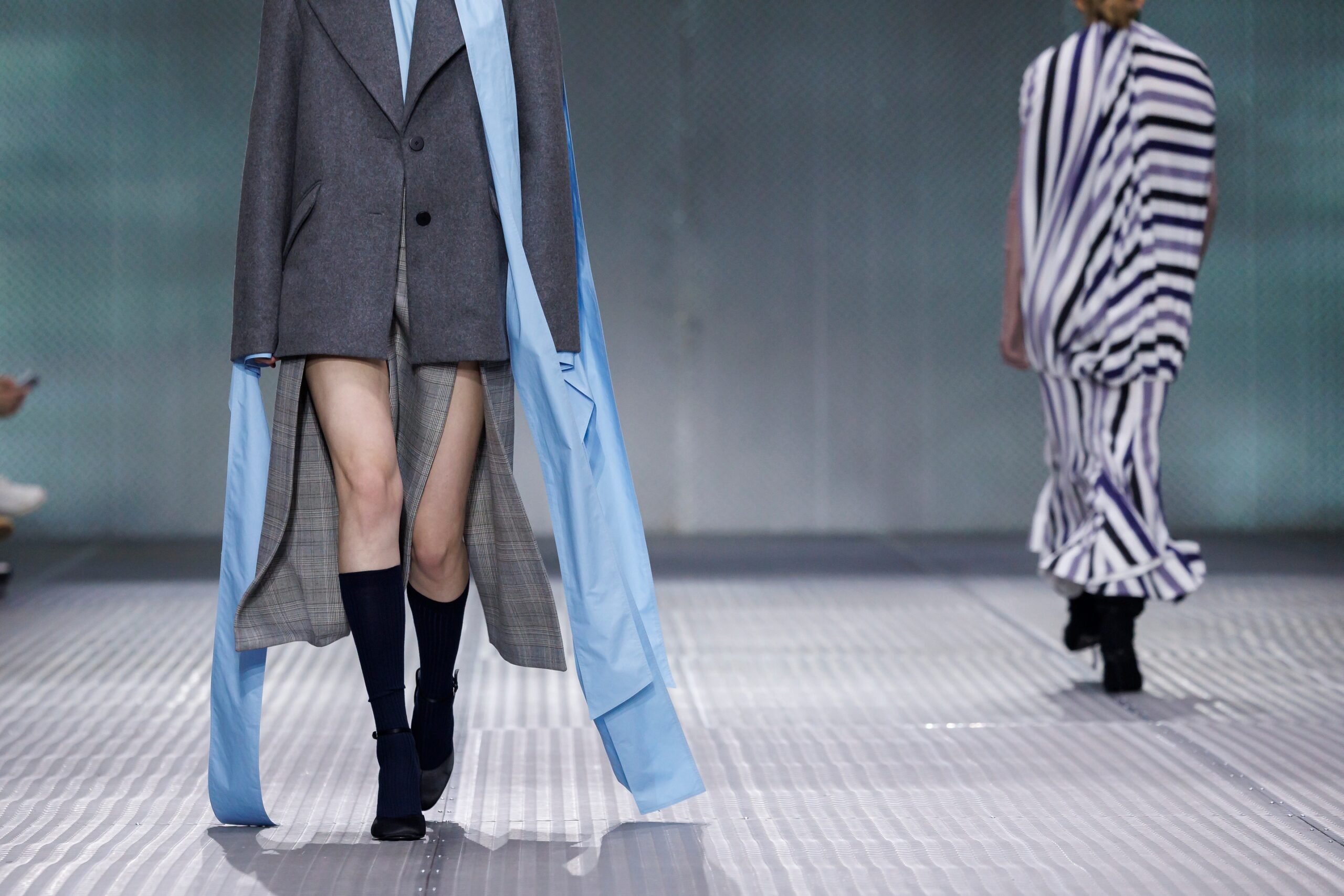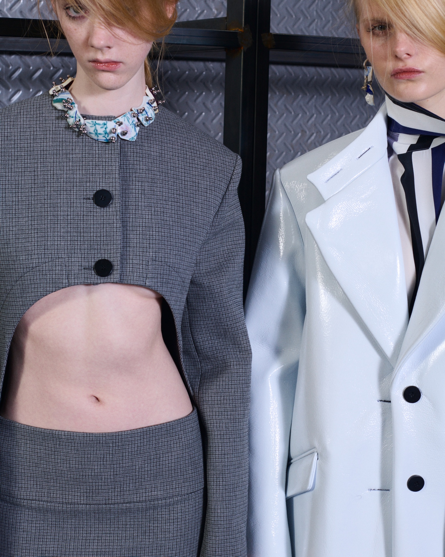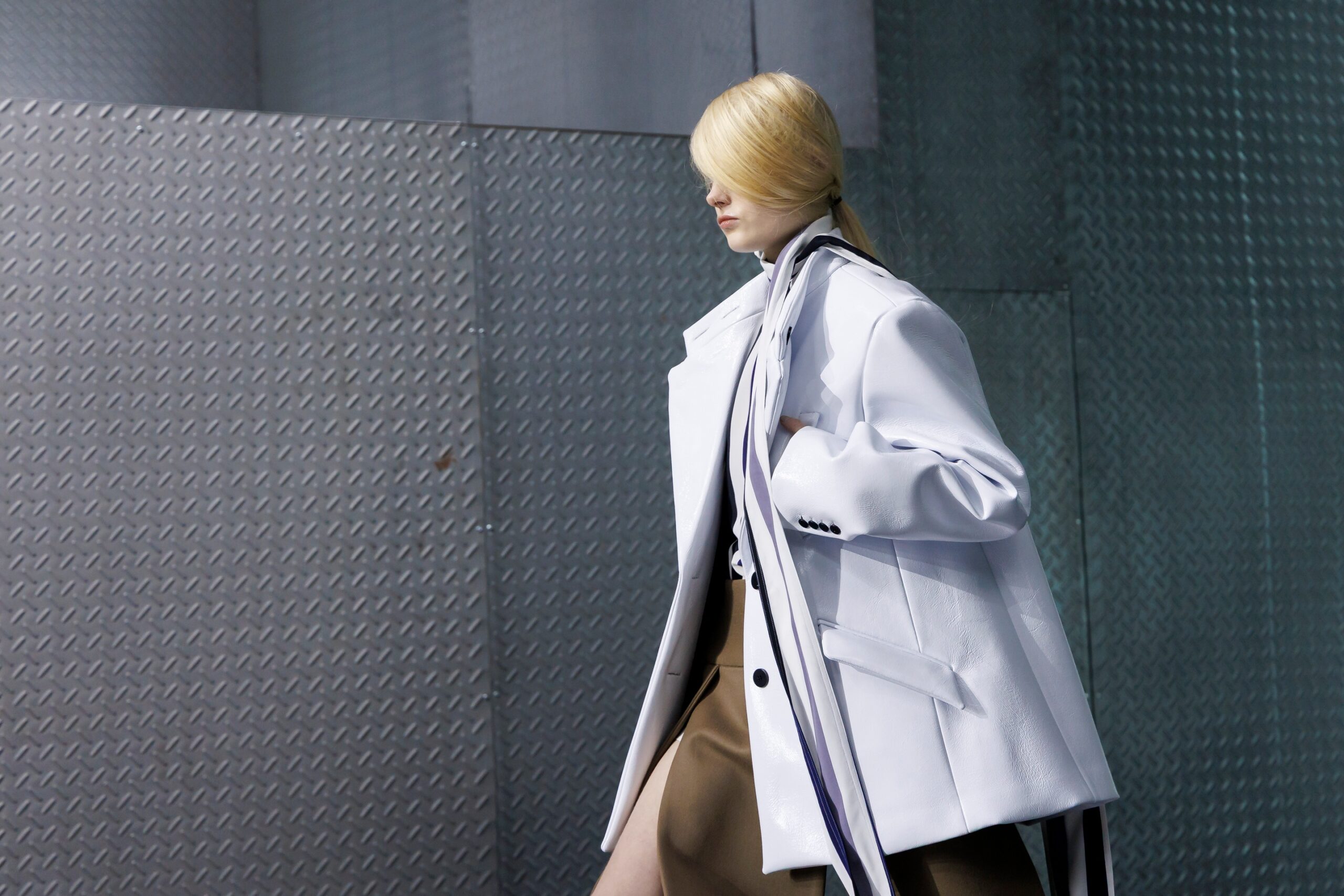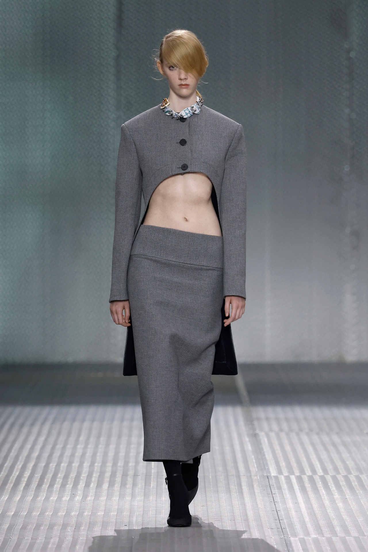 The formal intersects with the unfinished; solidity coexists with vulnerability. In this context, the tuxedo becomes a key element: it sheds its traditional solemnity and integrates into a contemporary language where formality softens and becomes expression. A subtle nod to the 1960s introduces refined silhouettes and a restrained femininity, reinterpreted from a present perspective, free from nostalgia. Collapse does not seek to resolve contradiction, but to inhabit it and turn it into its essence.
