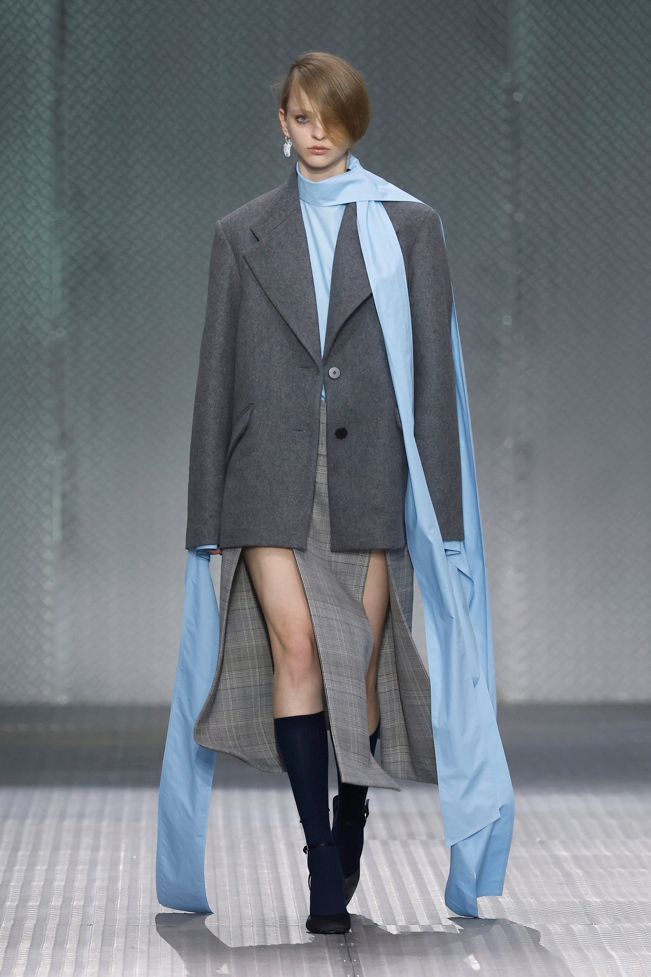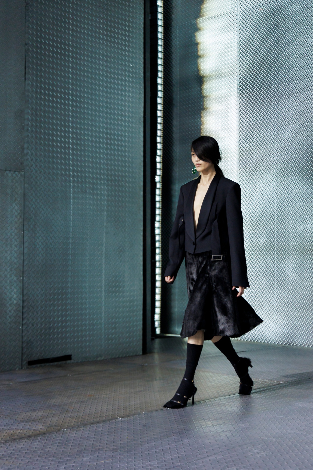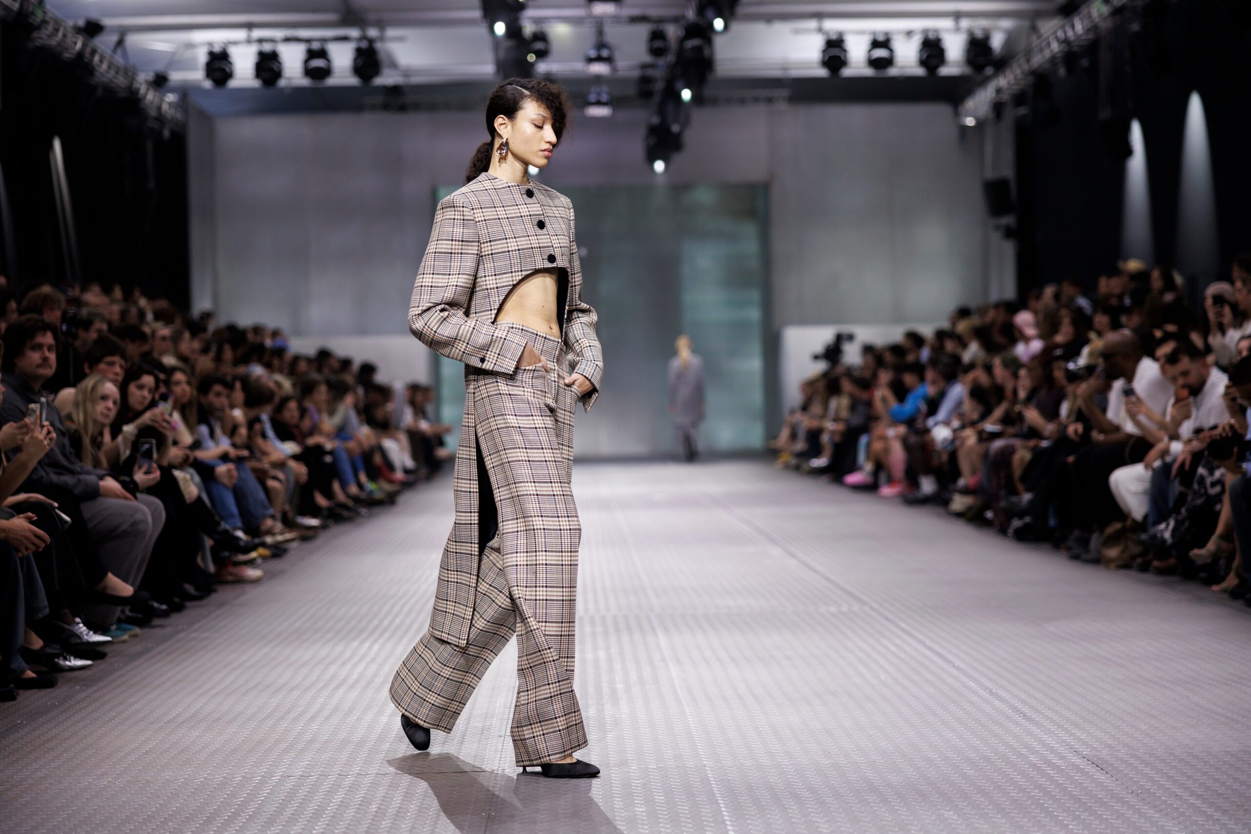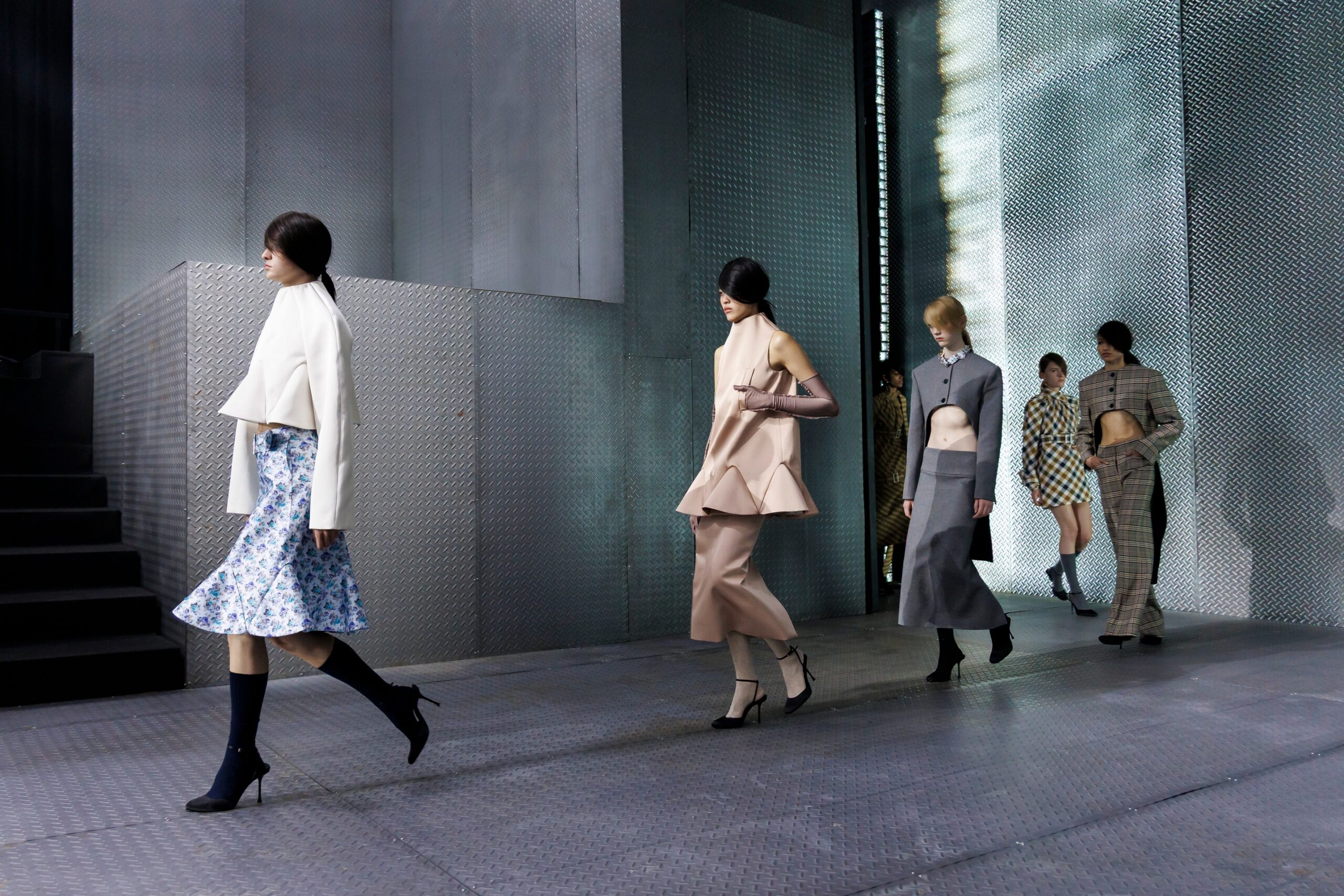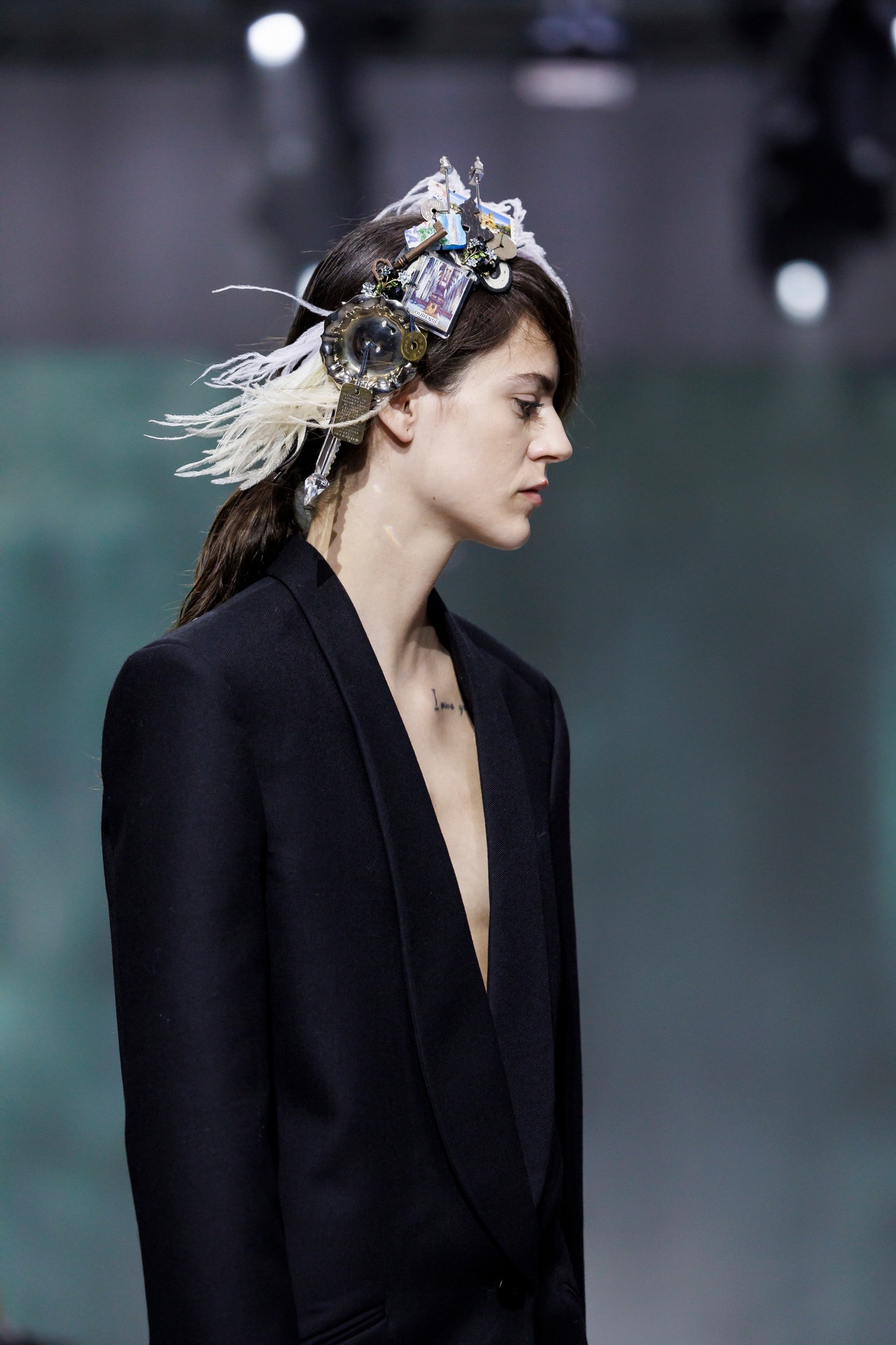 The formal intersects with the unfinished; solidity coexists with vulnerability. In this context, the tuxedo becomes a key element: it sheds its traditional solemnity and integrates into a contemporary language where formality softens and becomes expression. A subtle nod to the 1960s introduces refined silhouettes and a restrained femininity, reinterpreted from a present perspective, free from nostalgia. Collapse does not seek to resolve contradiction, but to inhabit it and turn it into its essence.