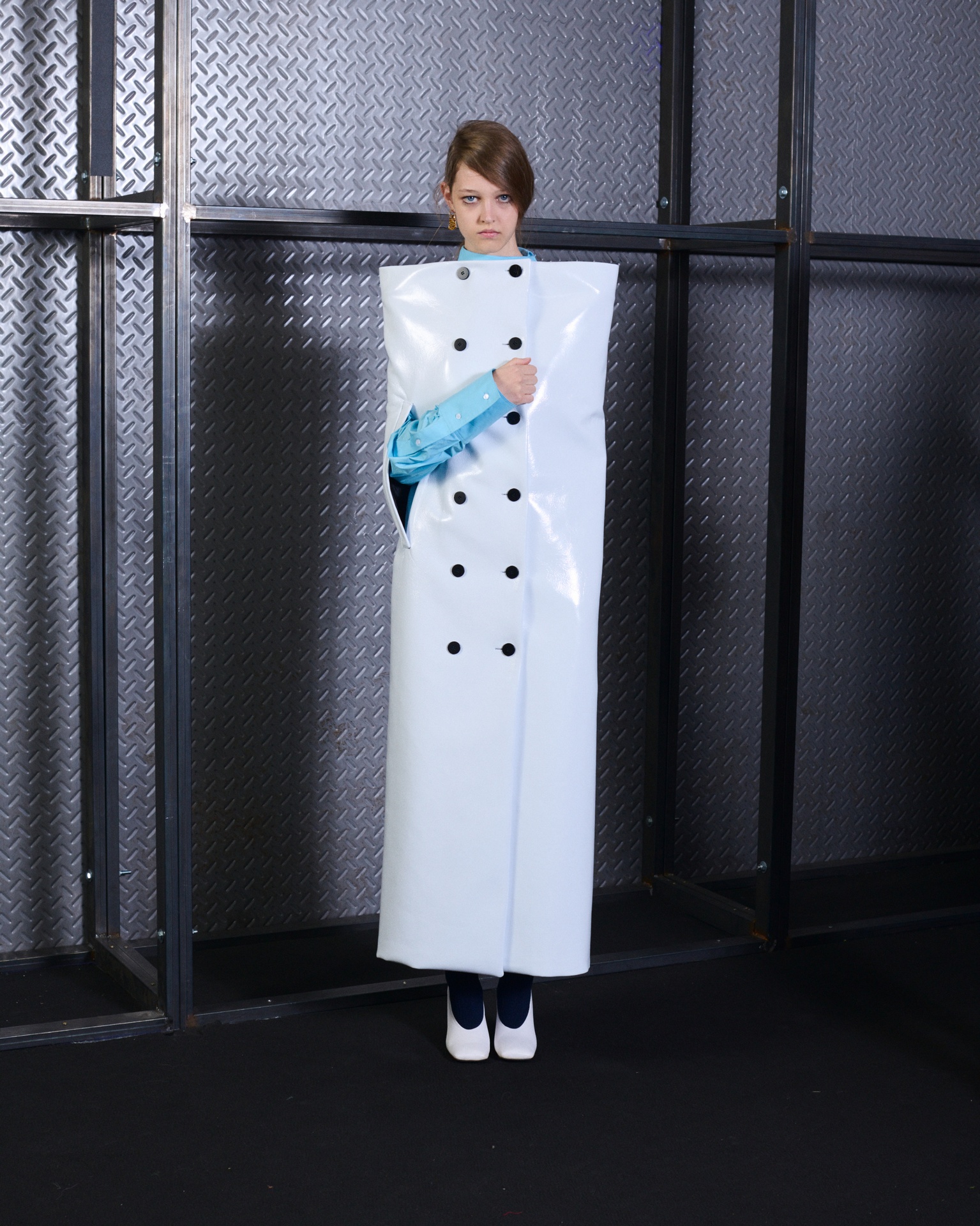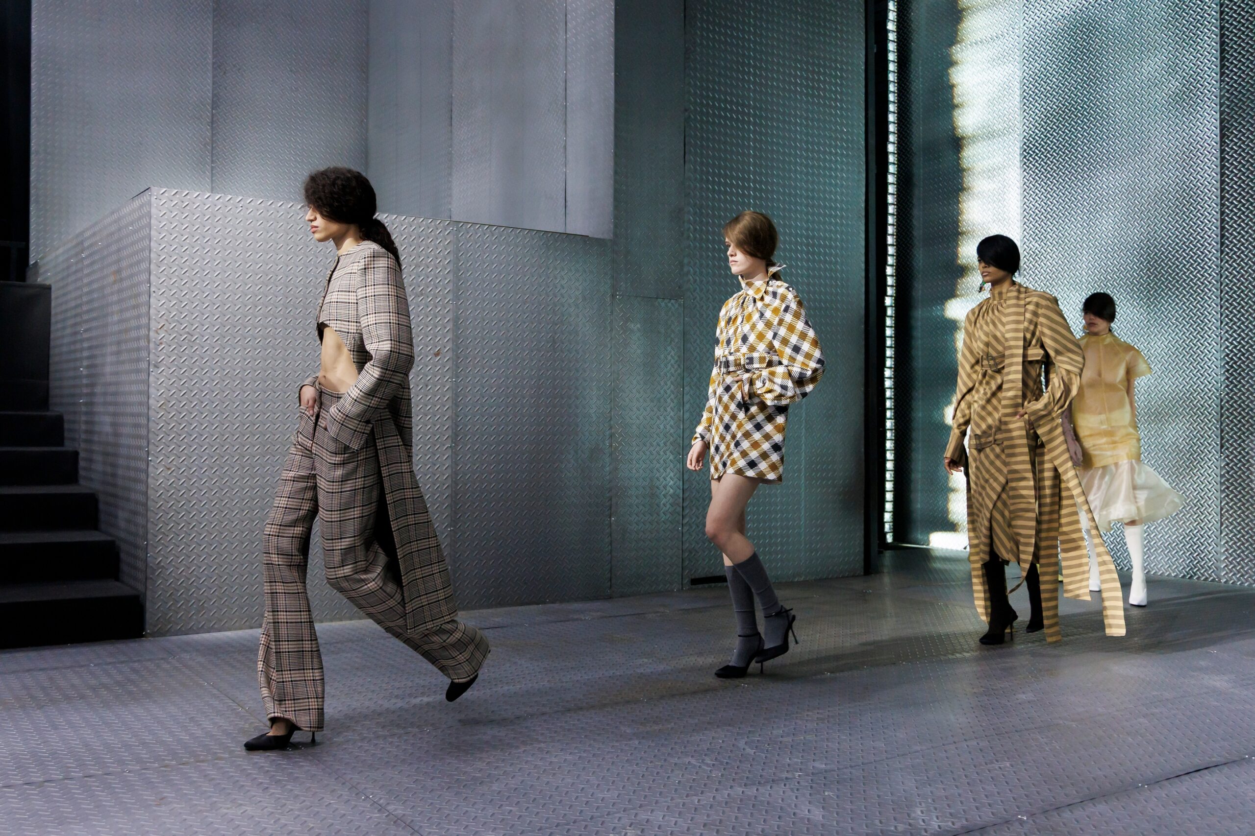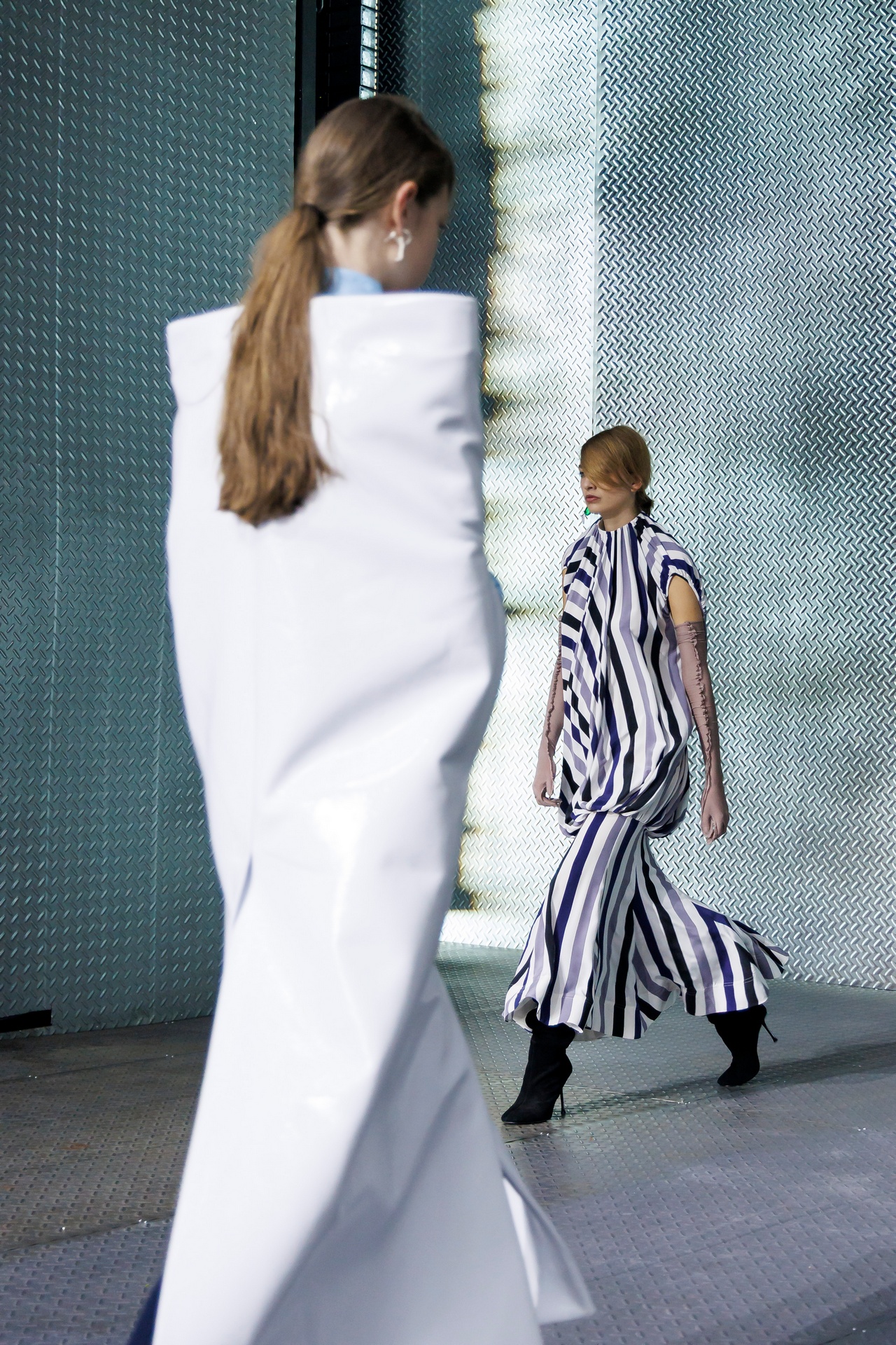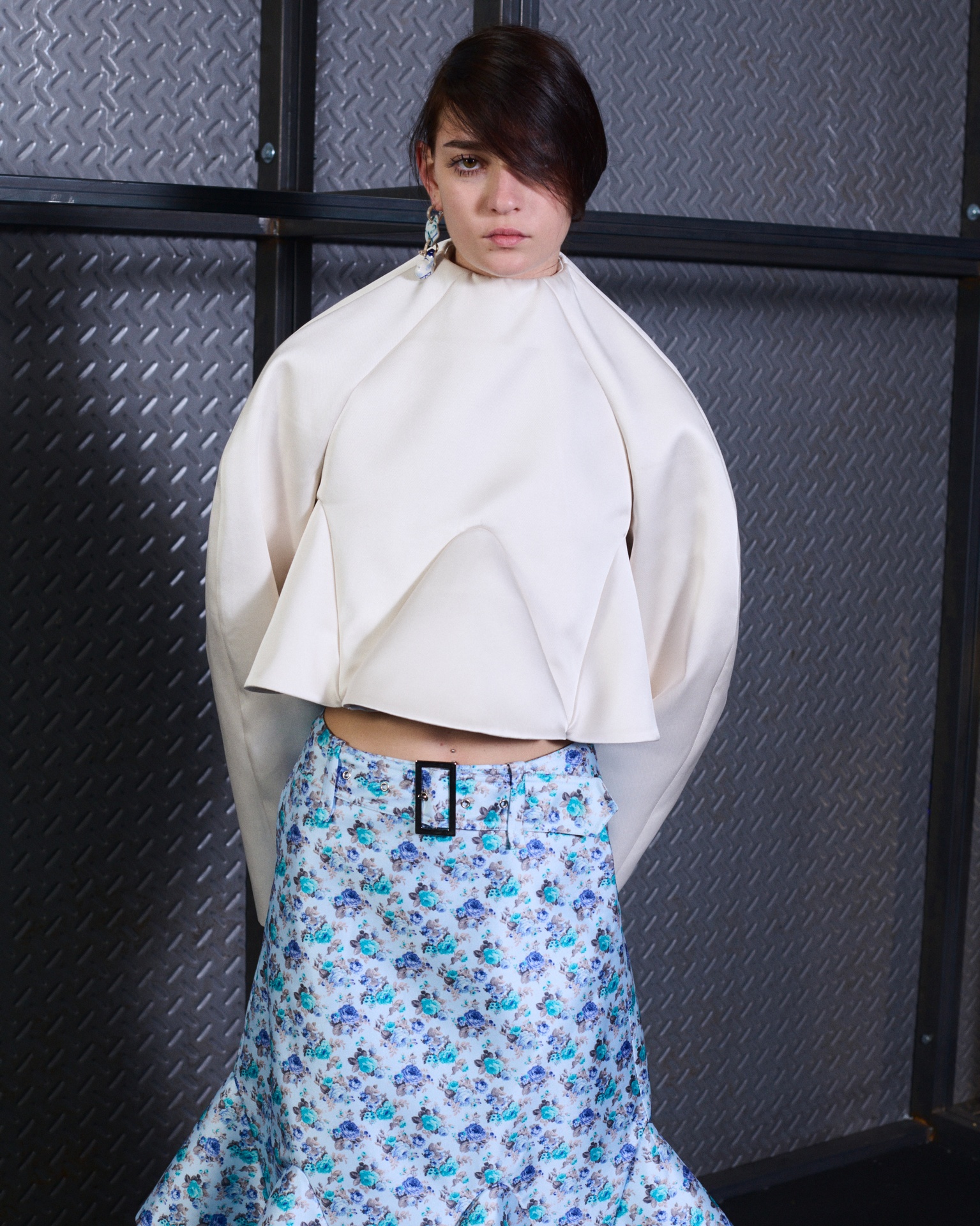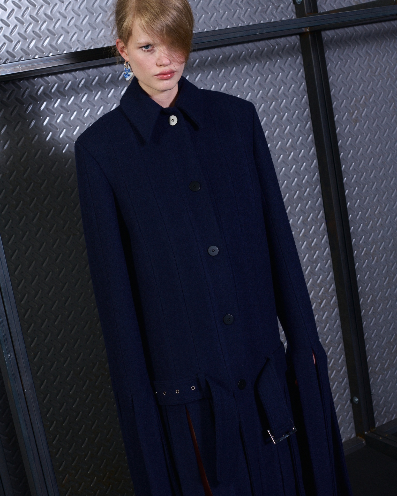 The formal intersects with the unfinished; solidity coexists with vulnerability. In this context, the tuxedo becomes a key element: it sheds its traditional solemnity and integrates into a contemporary language where formality softens and becomes expression. A subtle nod to the 1960s introduces refined silhouettes and a restrained femininity, reinterpreted from a present perspective, free from nostalgia. Collapse does not seek to resolve contradiction, but to inhabit it and turn it into its essence.