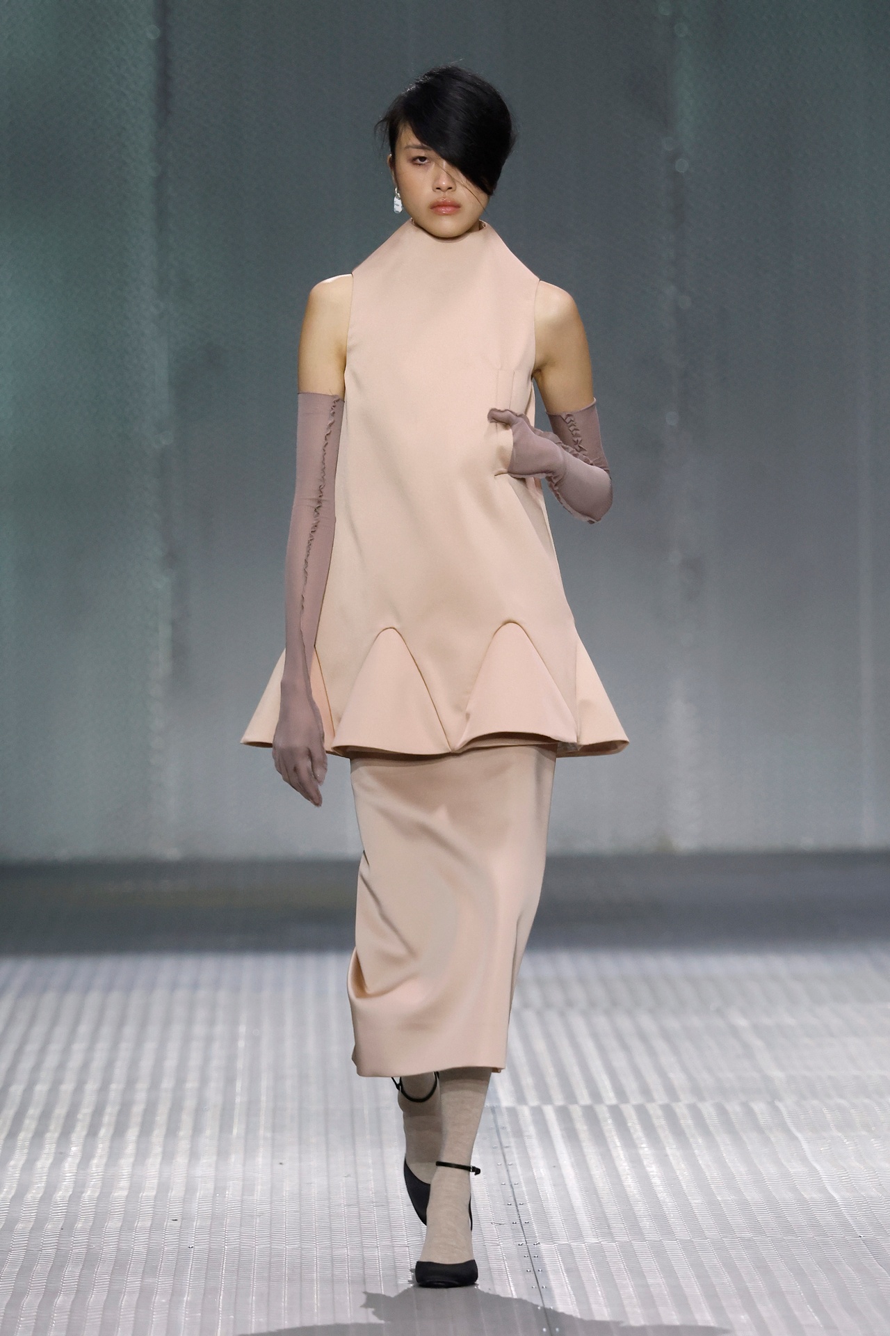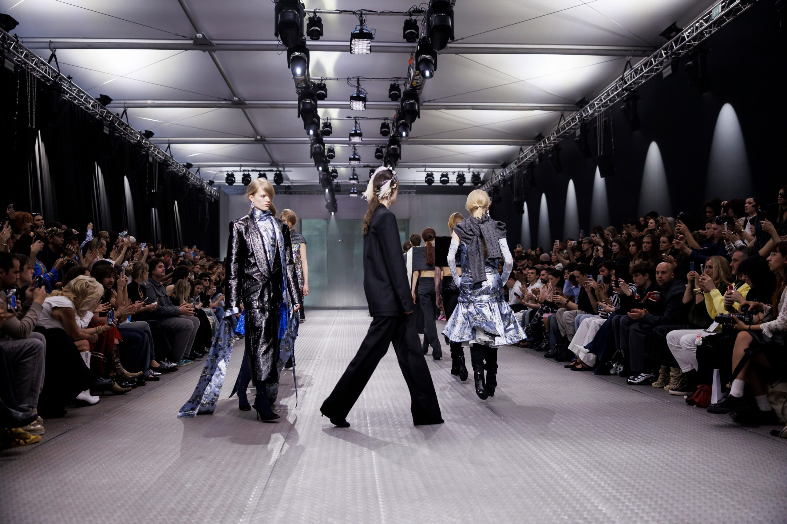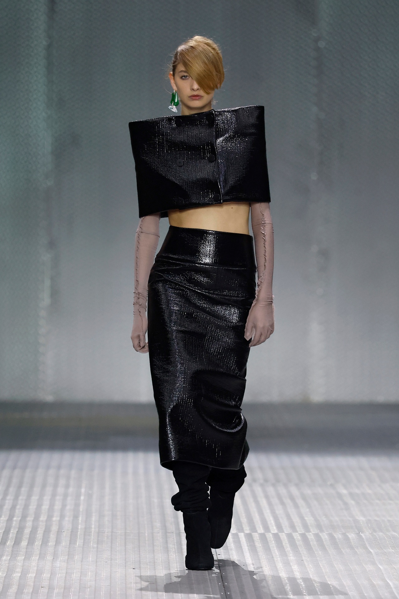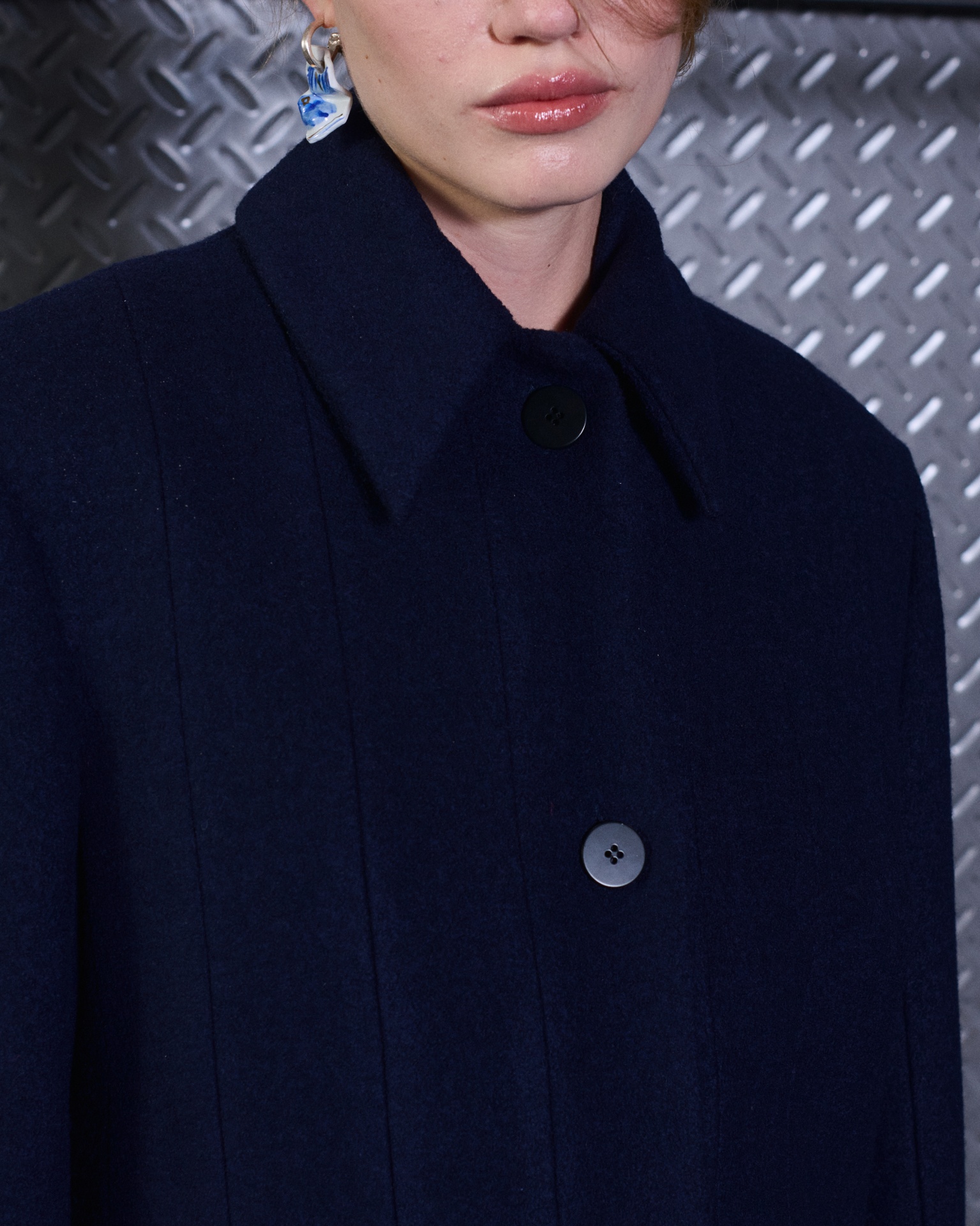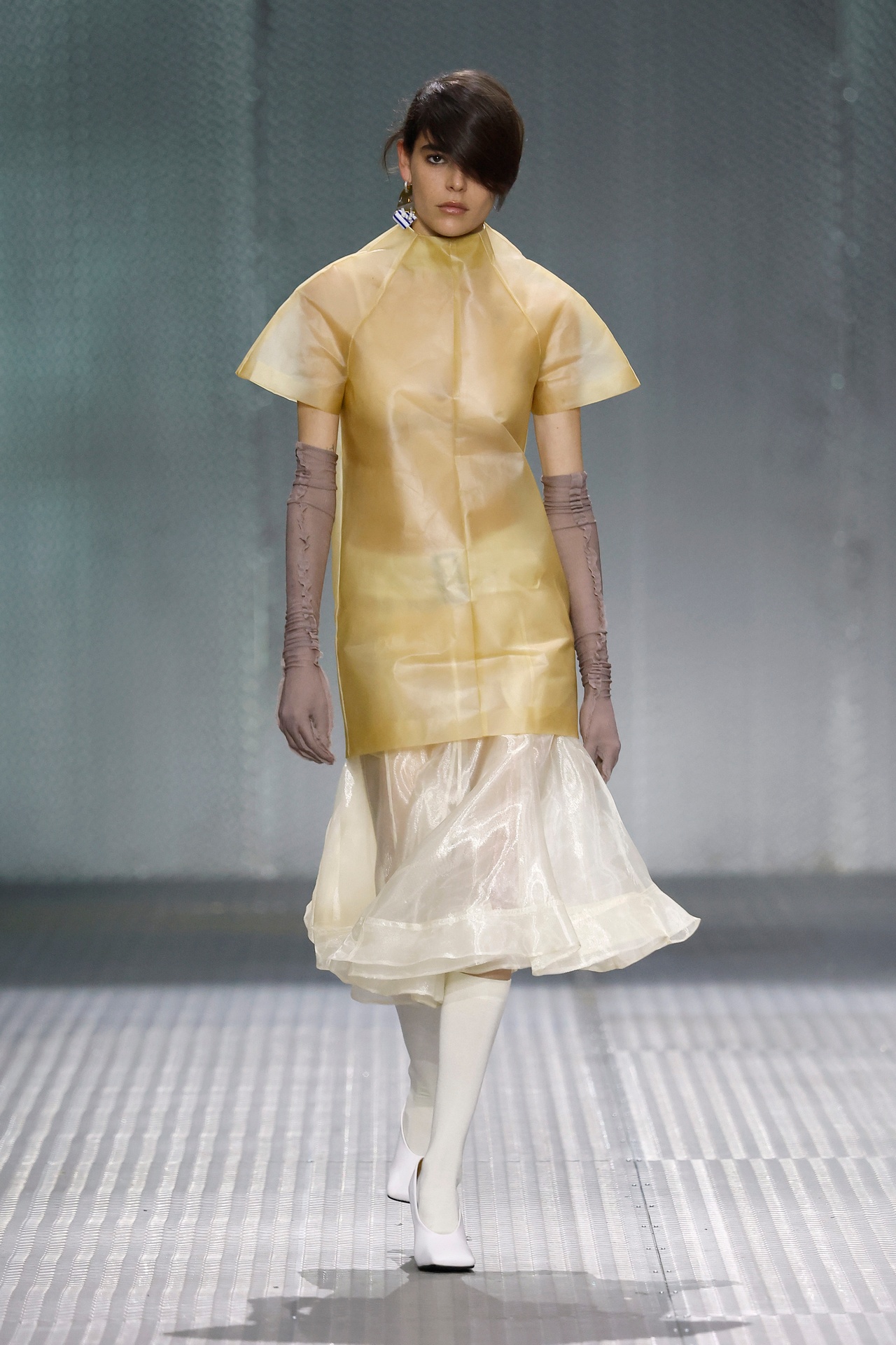 The formal intersects with the unfinished; solidity coexists with vulnerability. In this context, the tuxedo becomes a key element: it sheds its traditional solemnity and integrates into a contemporary language where formality softens and becomes expression. A subtle nod to the 1960s introduces refined silhouettes and a restrained femininity, reinterpreted from a present perspective, free from nostalgia. Collapse does not seek to resolve contradiction, but to inhabit it and turn it into its essence.