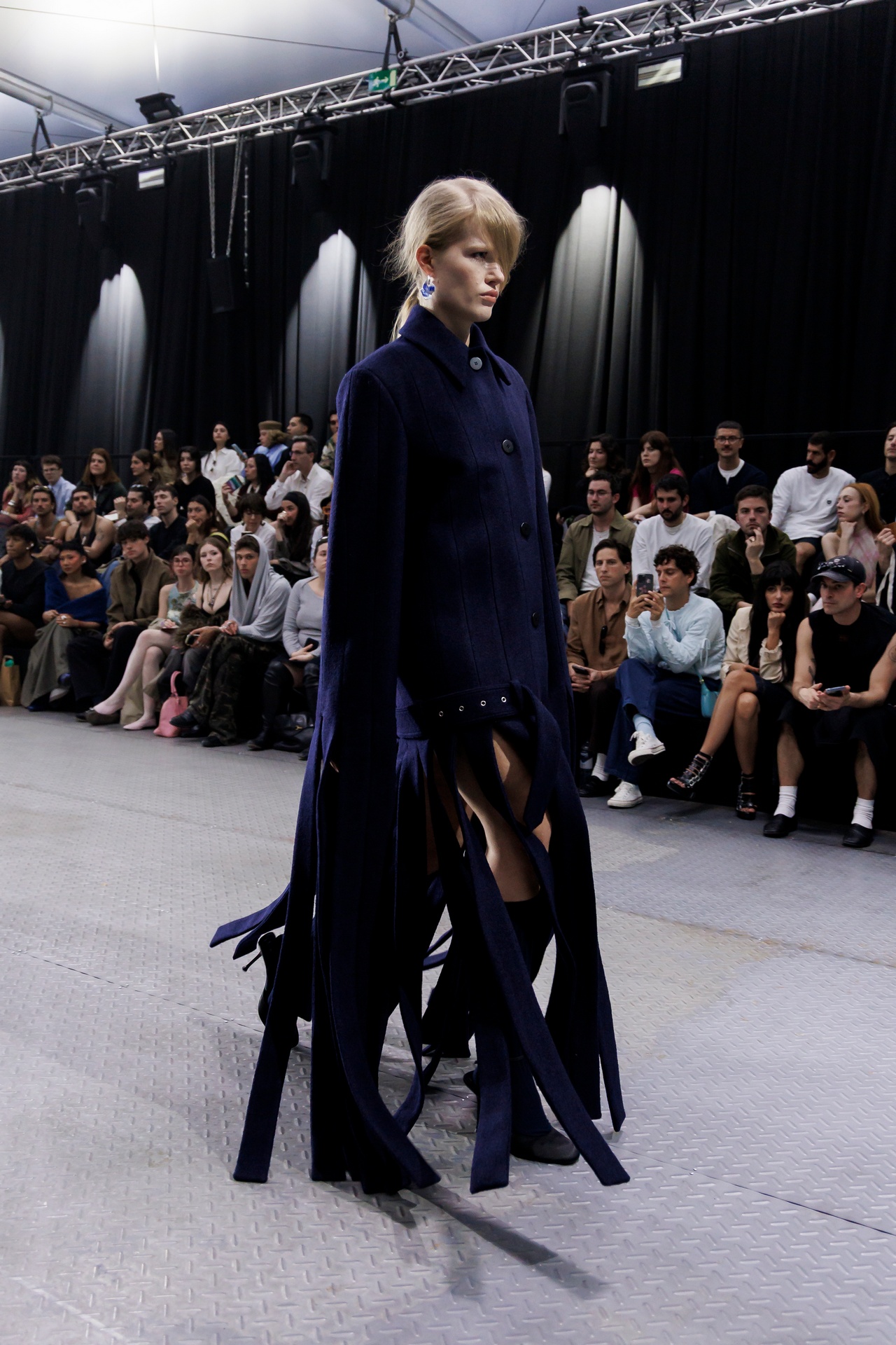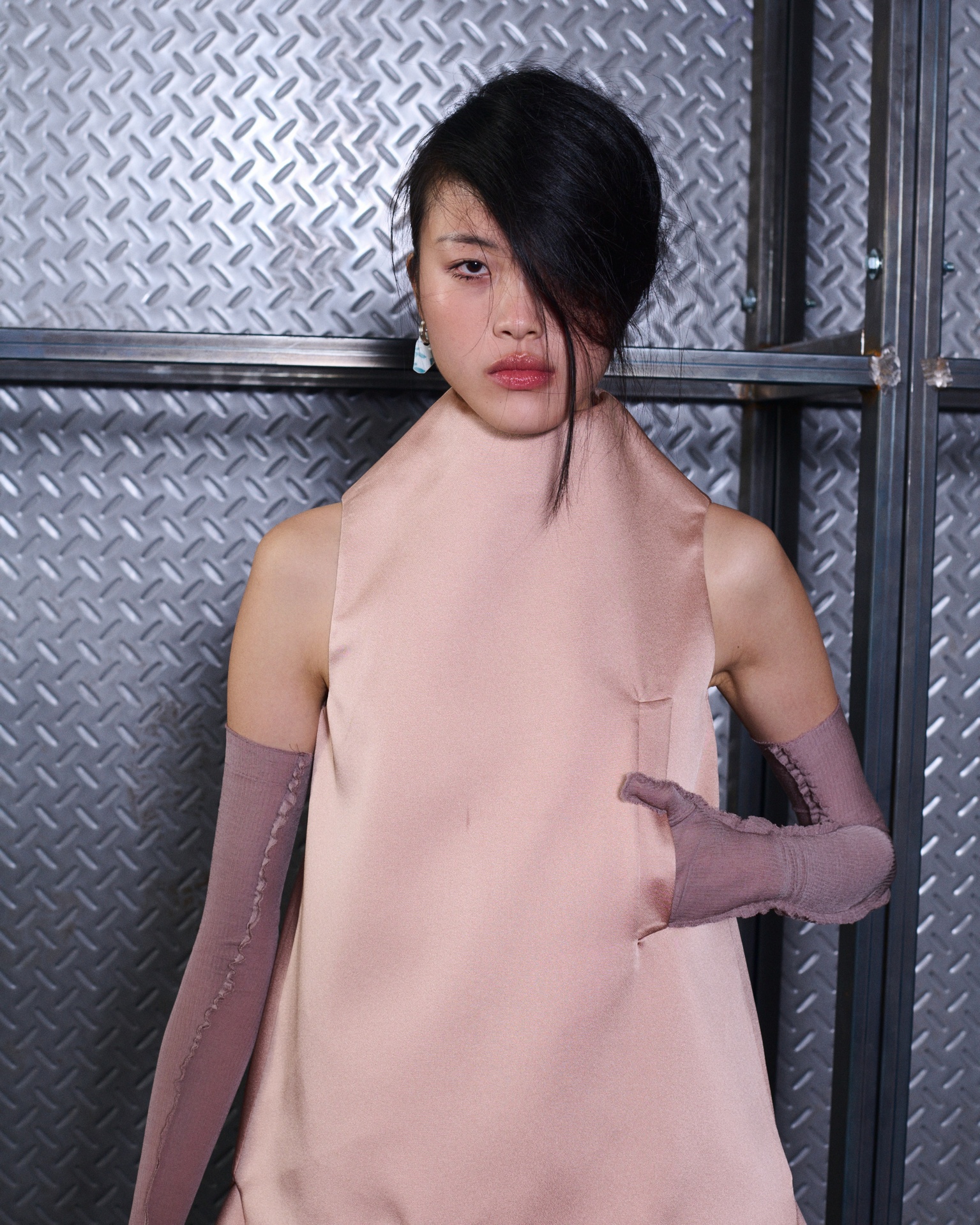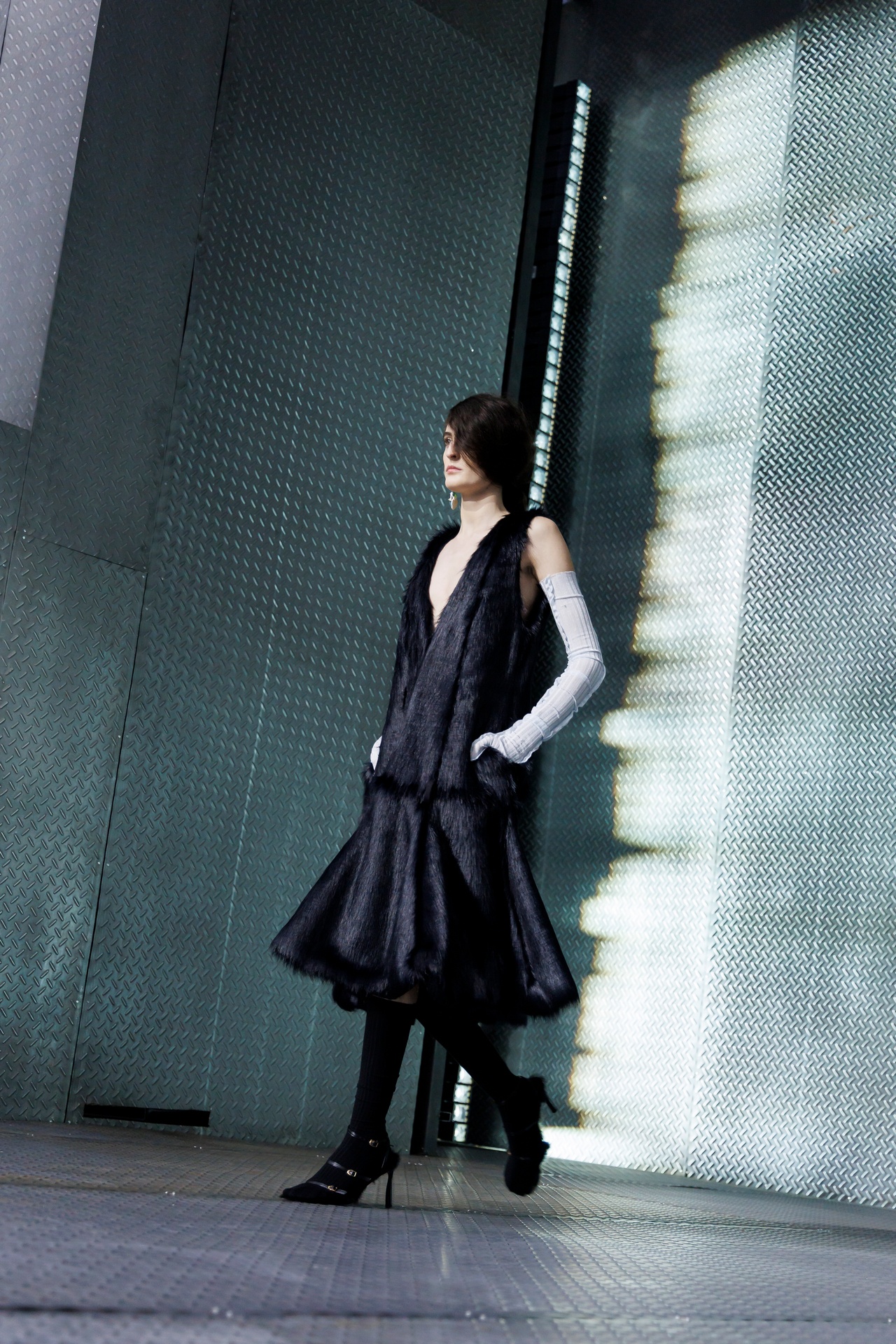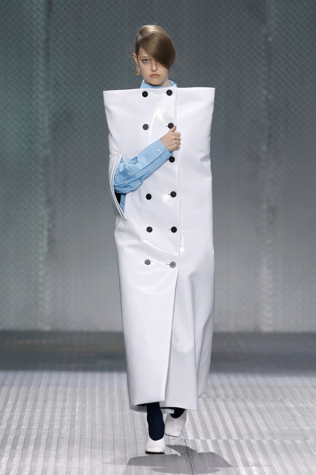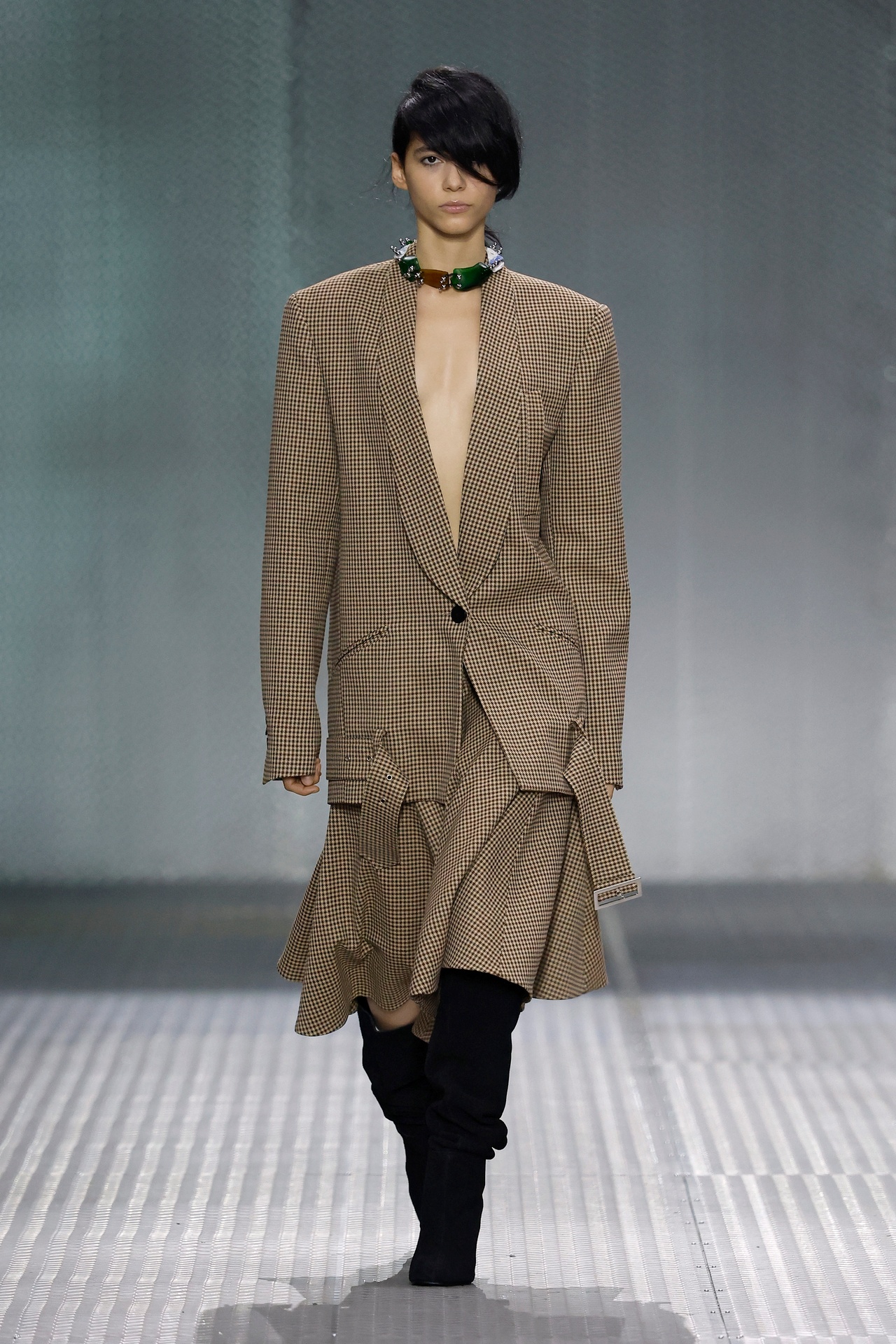 The formal intersects with the unfinished; solidity coexists with vulnerability. In this context, the tuxedo becomes a key element: it sheds its traditional solemnity and integrates into a contemporary language where formality softens and becomes expression. A subtle nod to the 1960s introduces refined silhouettes and a restrained femininity, reinterpreted from a present perspective, free from nostalgia. Collapse does not seek to resolve contradiction, but to inhabit it and turn it into its essence.