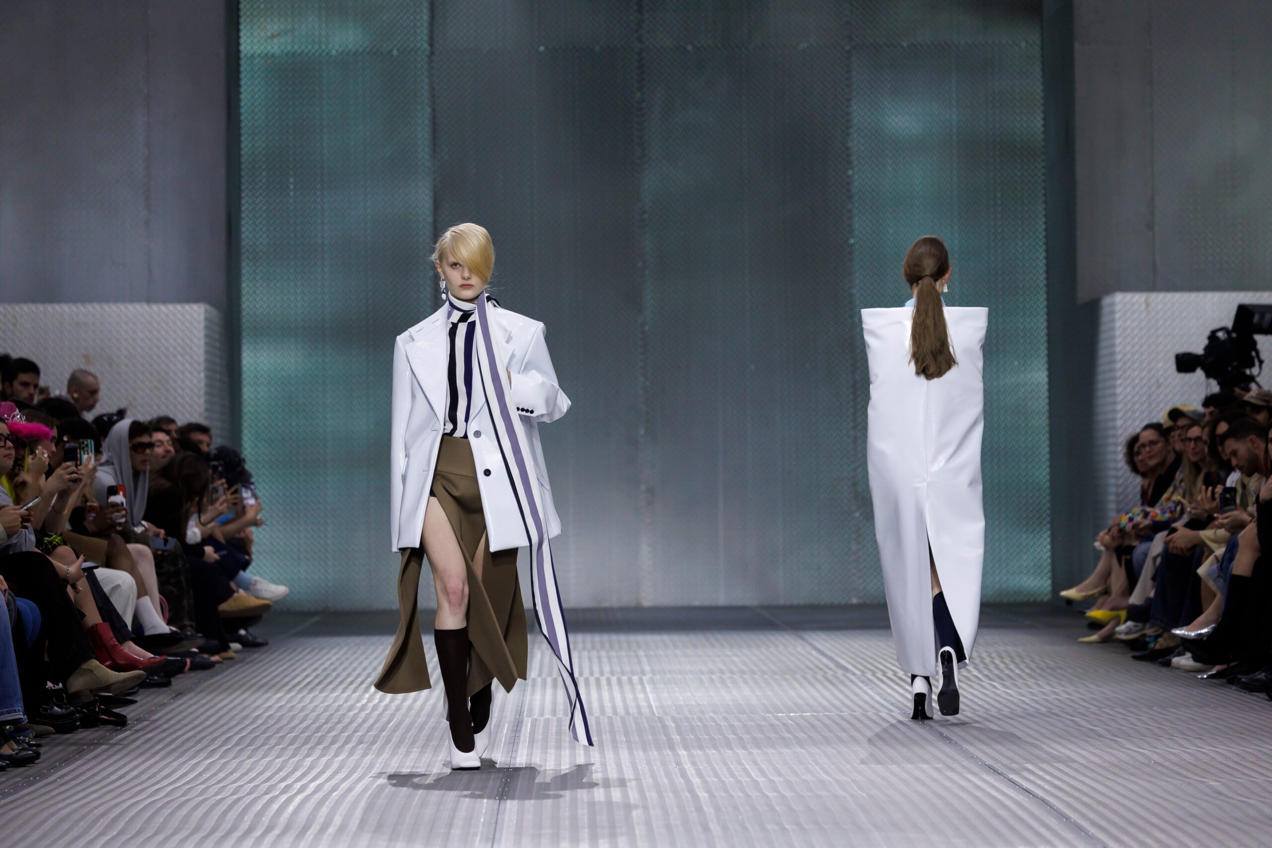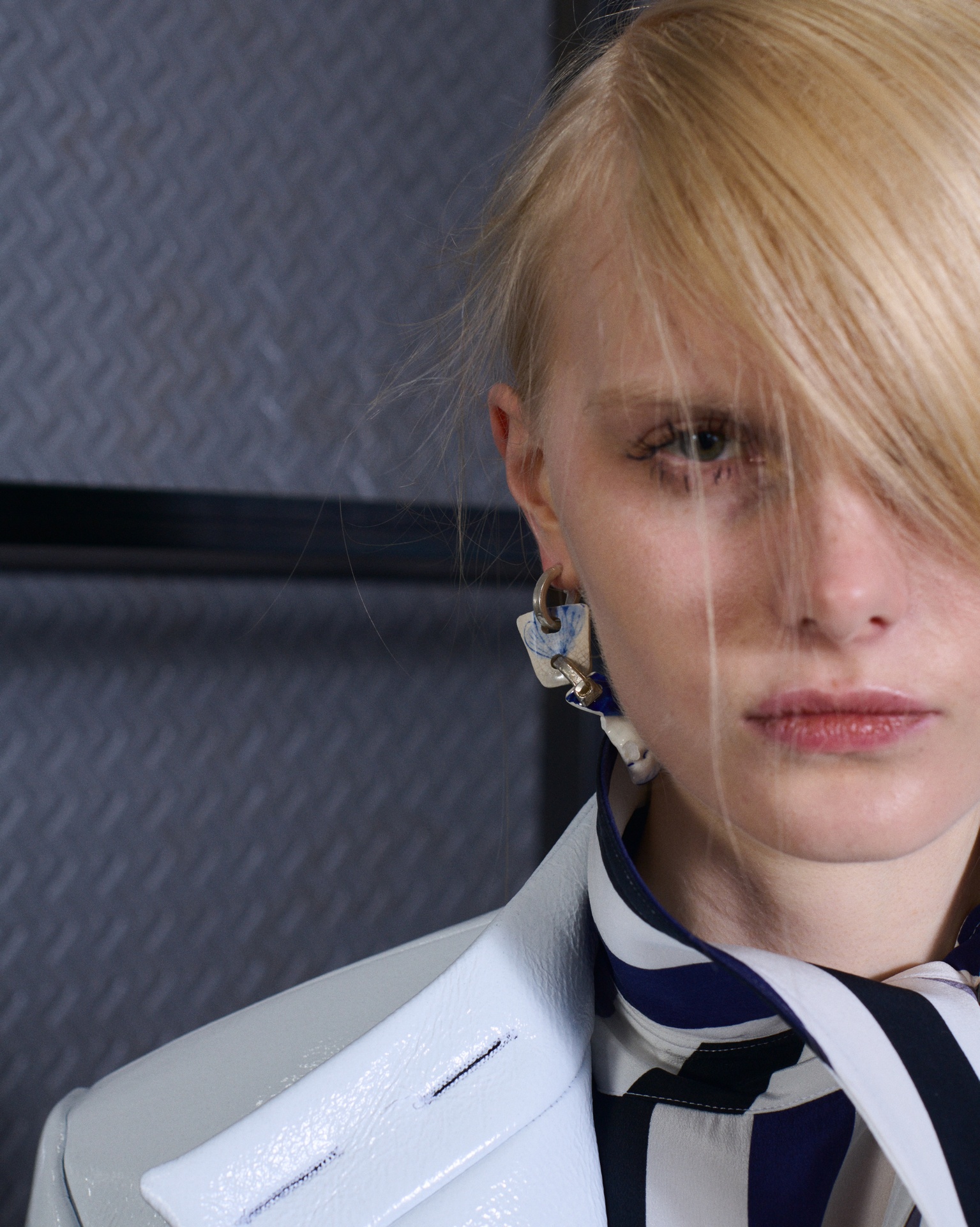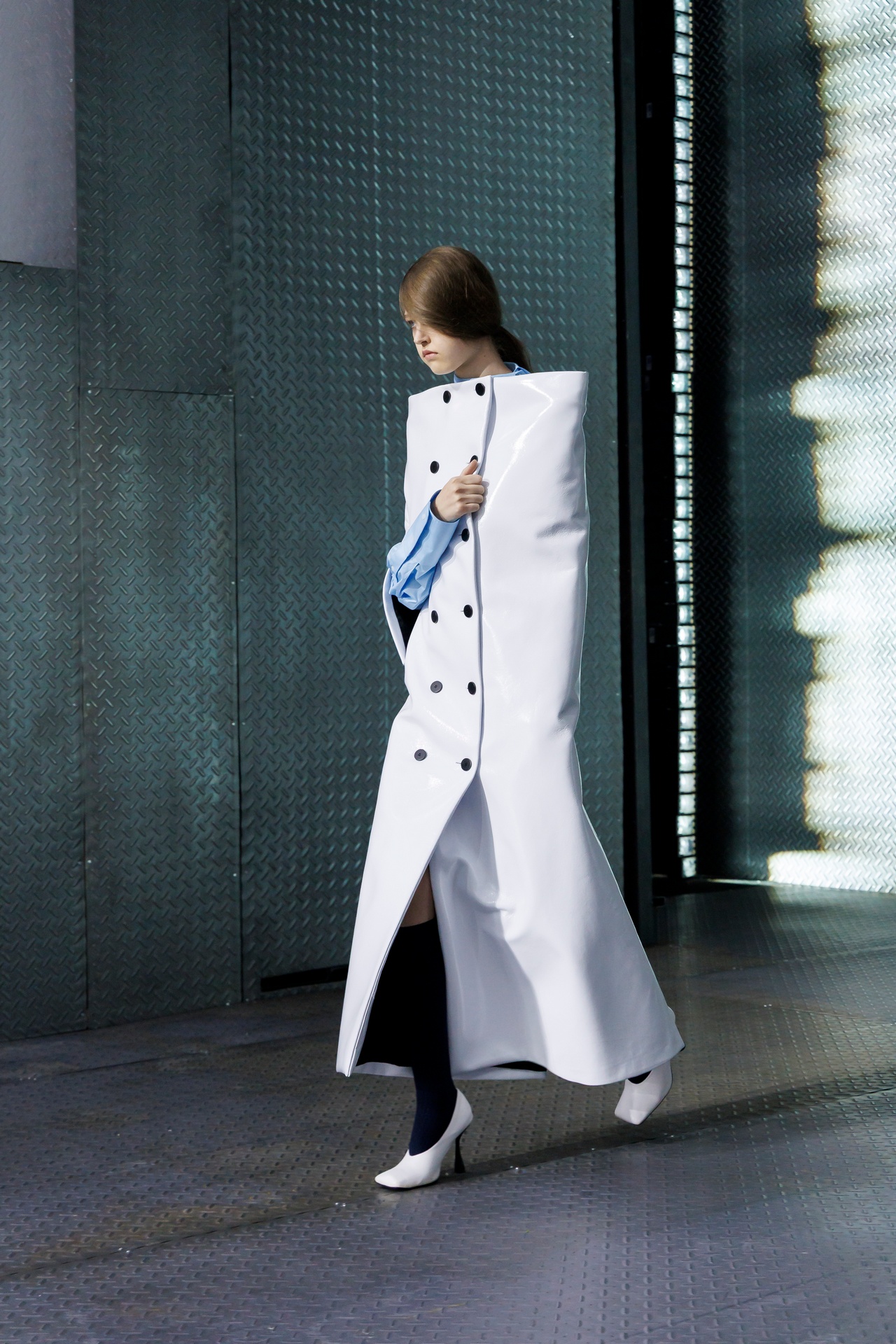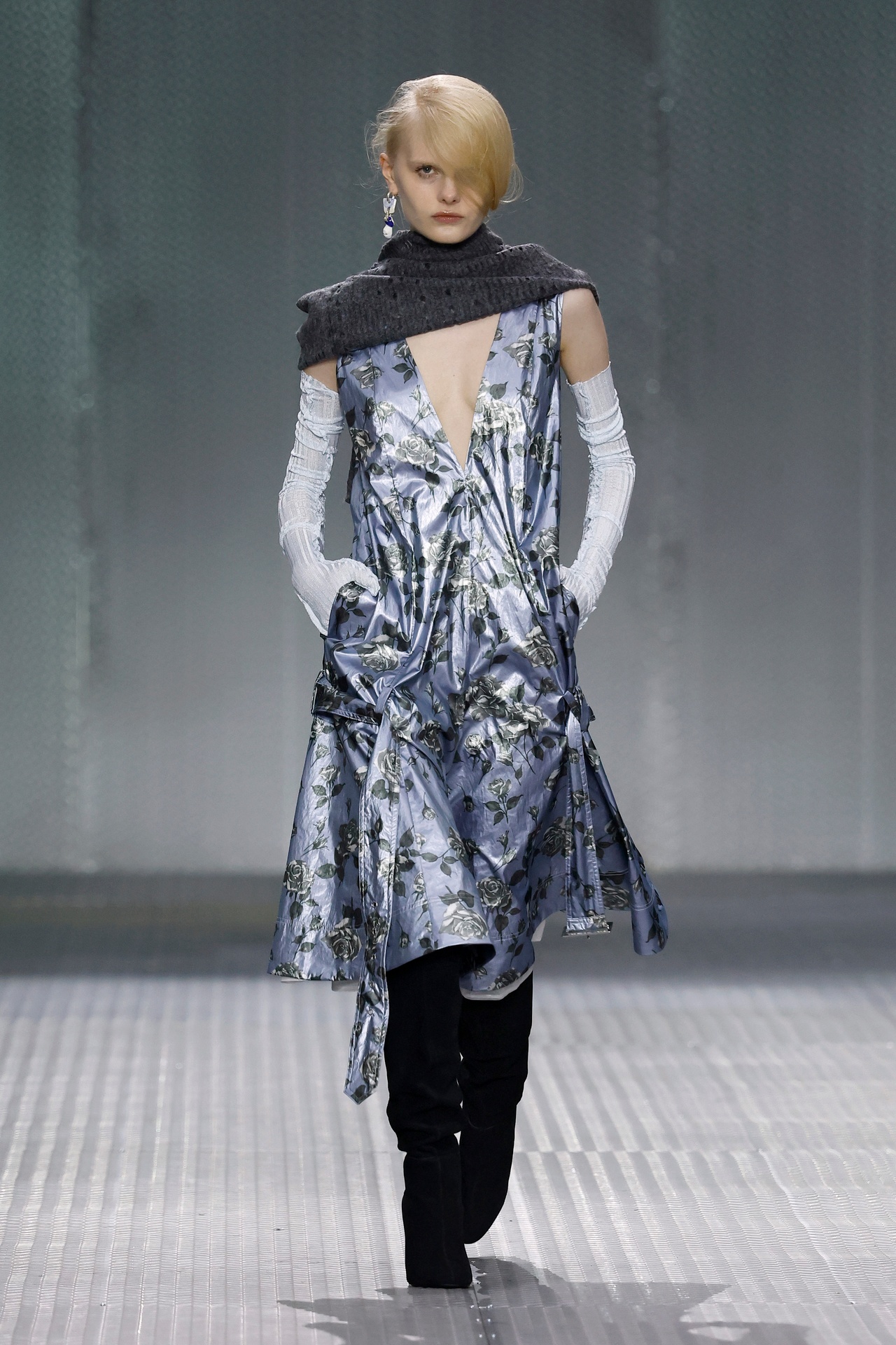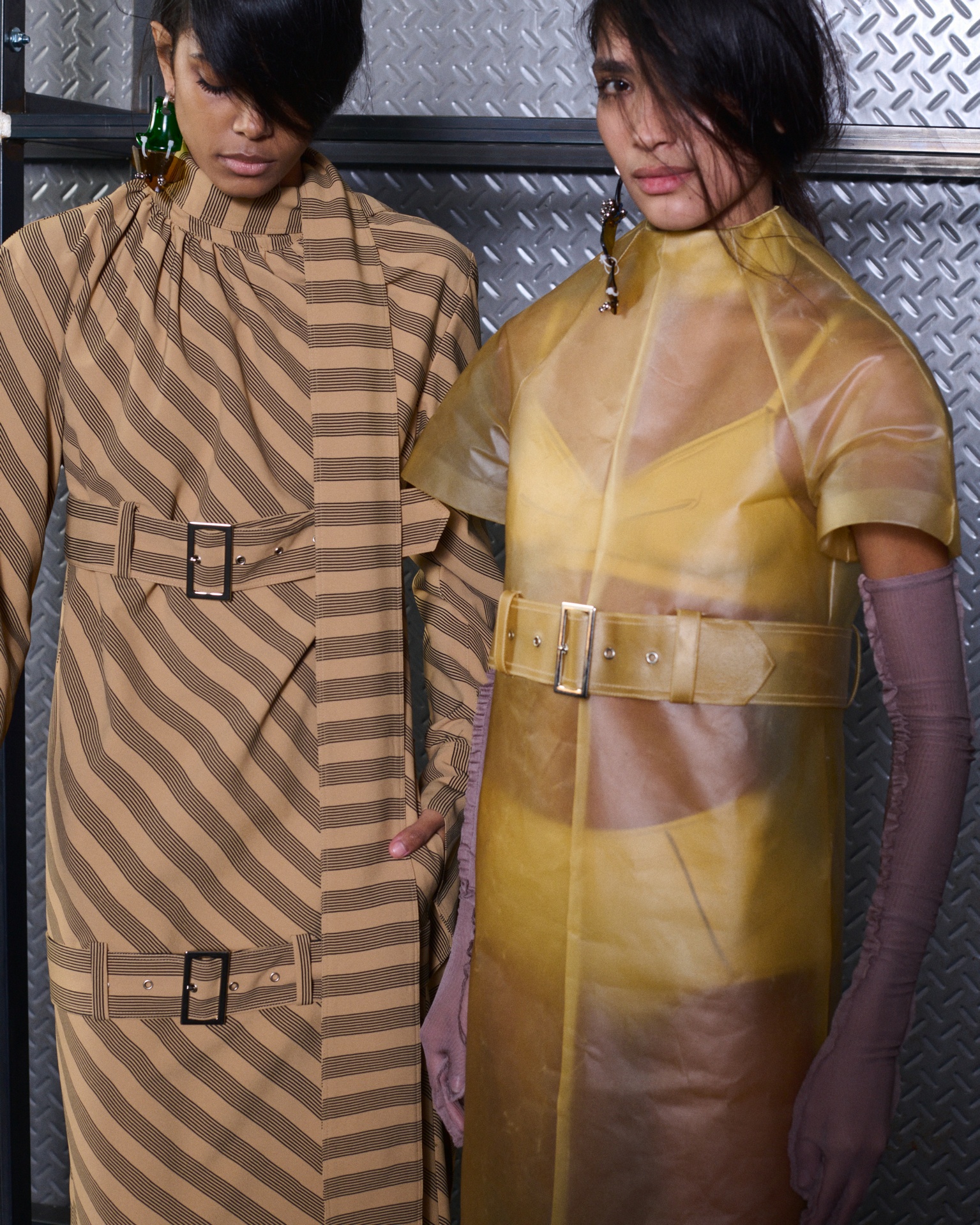 The formal intersects with the unfinished; solidity coexists with vulnerability. In this context, the tuxedo becomes a key element: it sheds its traditional solemnity and integrates into a contemporary language where formality softens and becomes expression. A subtle nod to the 1960s introduces refined silhouettes and a restrained femininity, reinterpreted from a present perspective, free from nostalgia. Collapse does not seek to resolve contradiction, but to inhabit it and turn it into its essence.