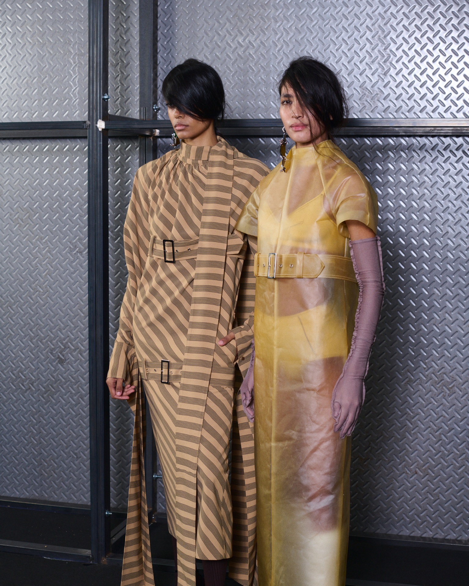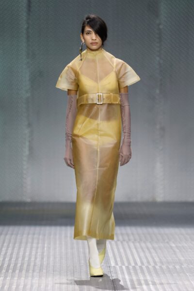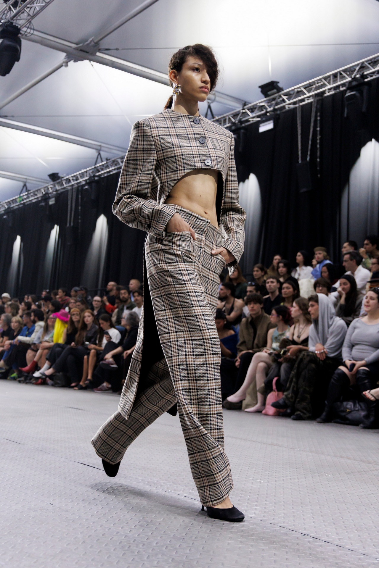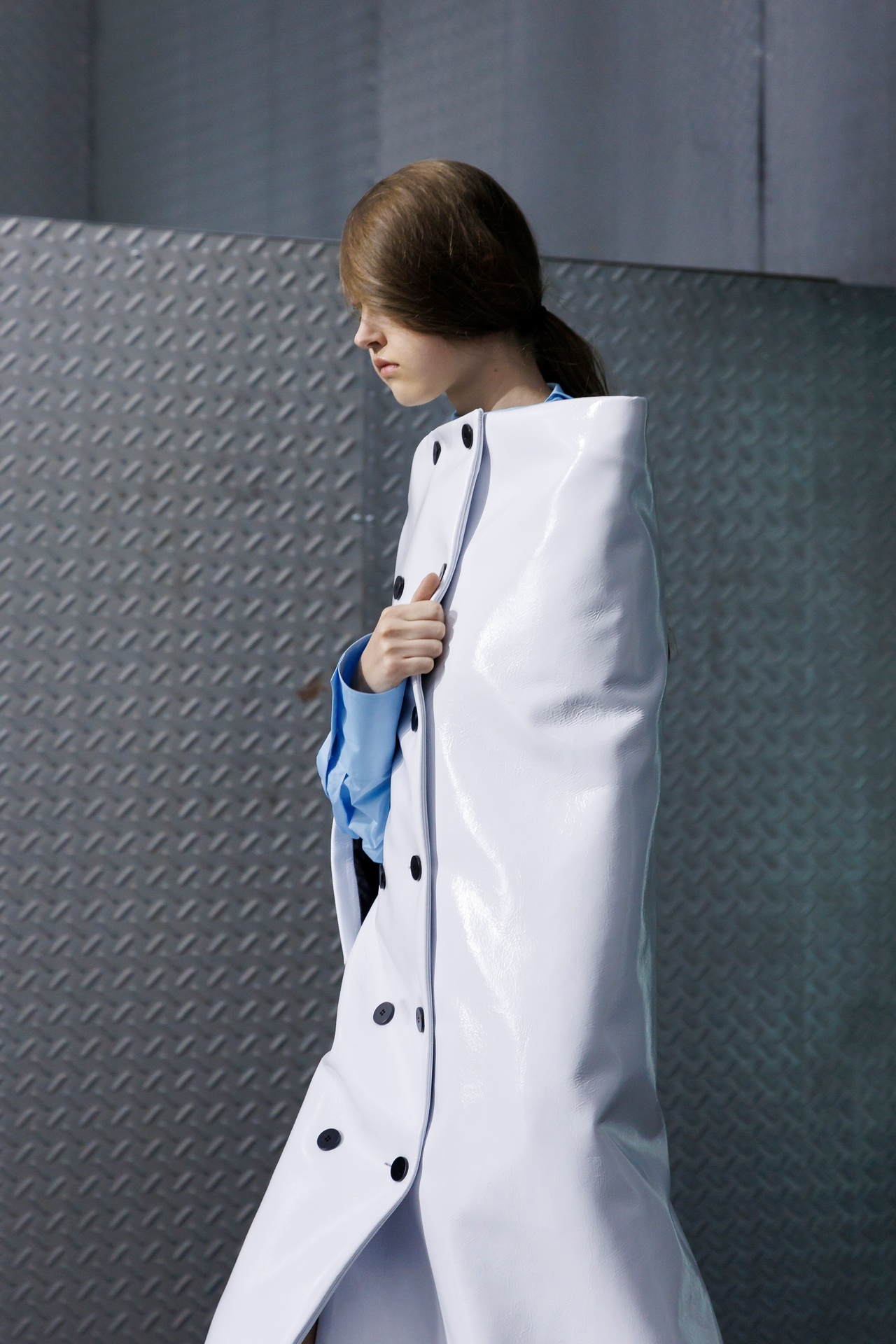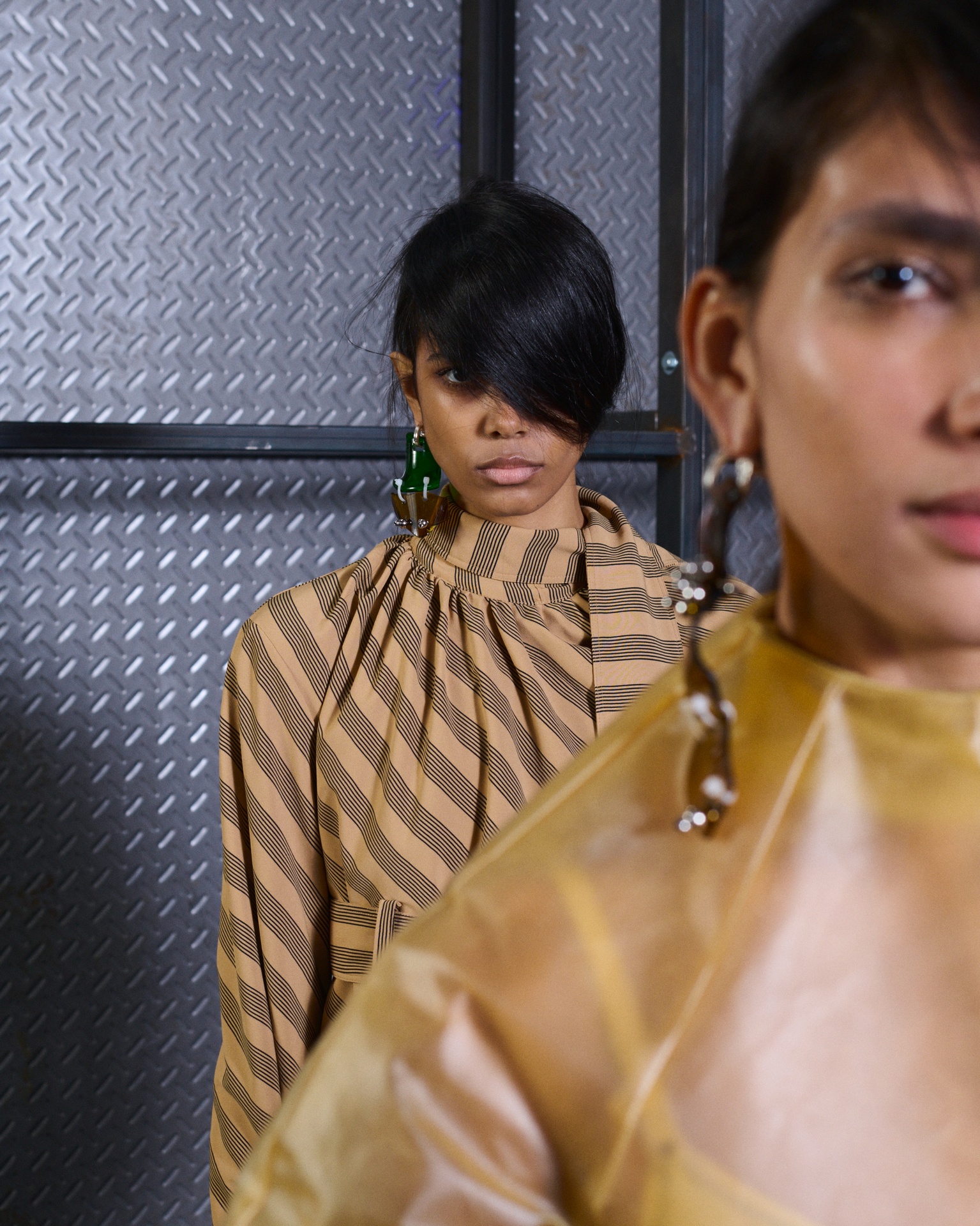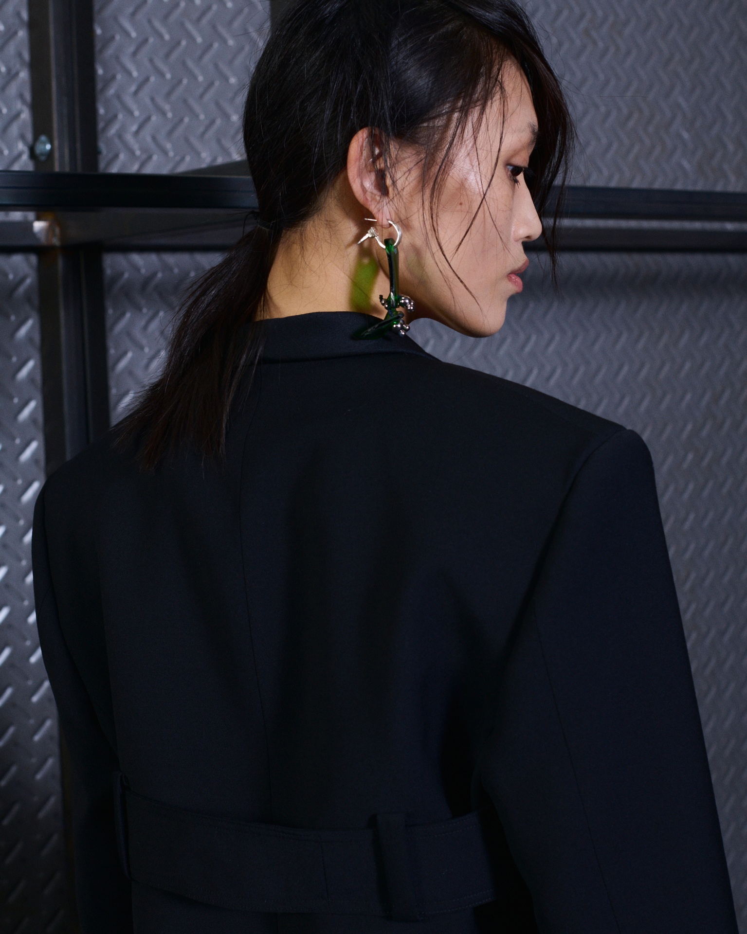 The formal intersects with the unfinished; solidity coexists with vulnerability. In this context, the tuxedo becomes a key element: it sheds its traditional solemnity and integrates into a contemporary language where formality softens and becomes expression. A subtle nod to the 1960s introduces refined silhouettes and a restrained femininity, reinterpreted from a present perspective, free from nostalgia. Collapse does not seek to resolve contradiction, but to inhabit it and turn it into its essence.