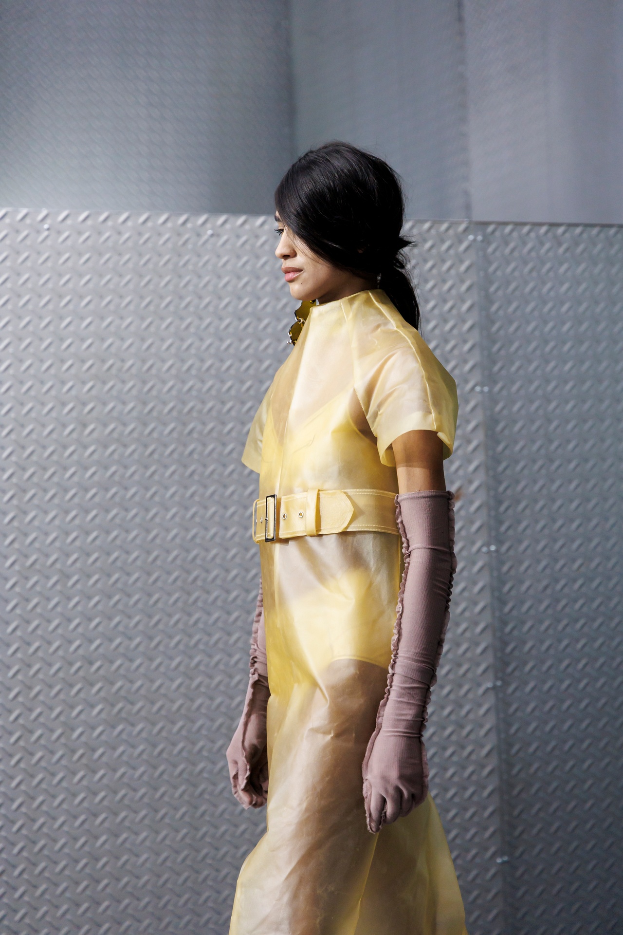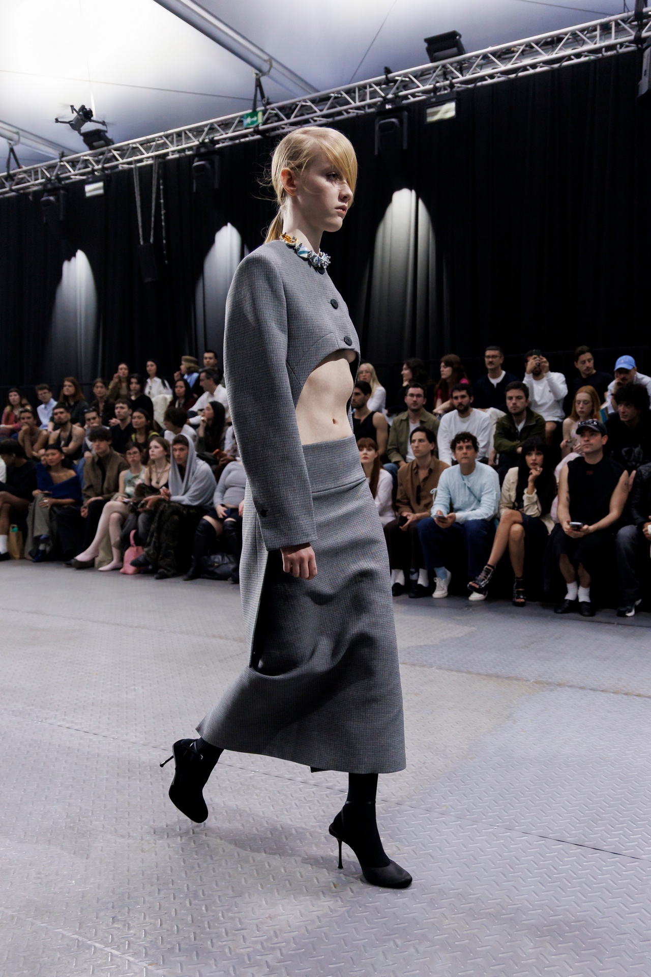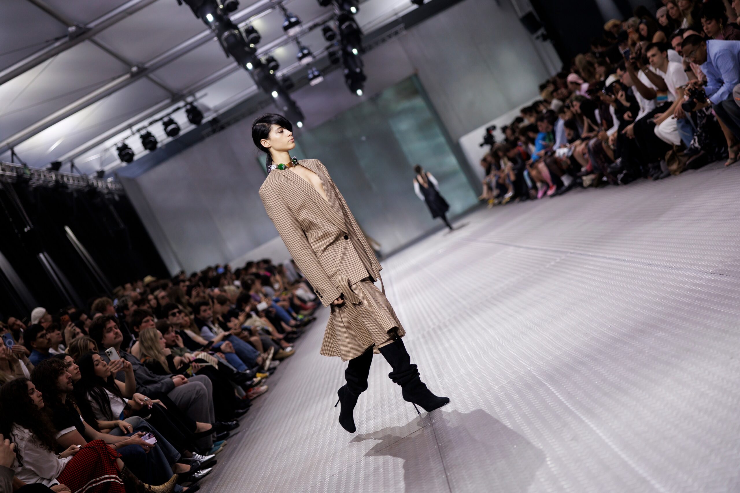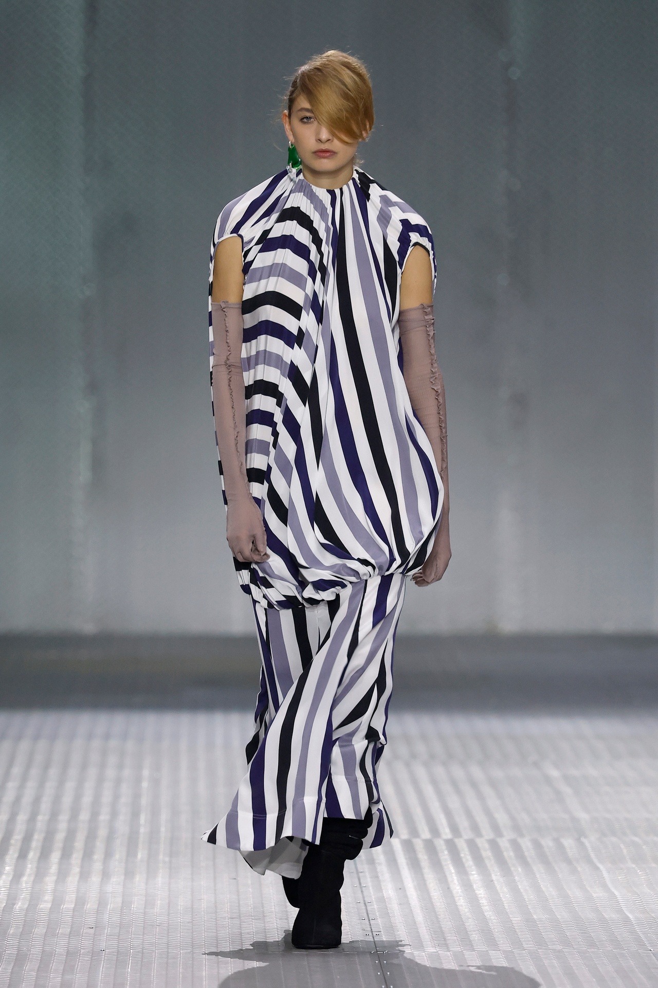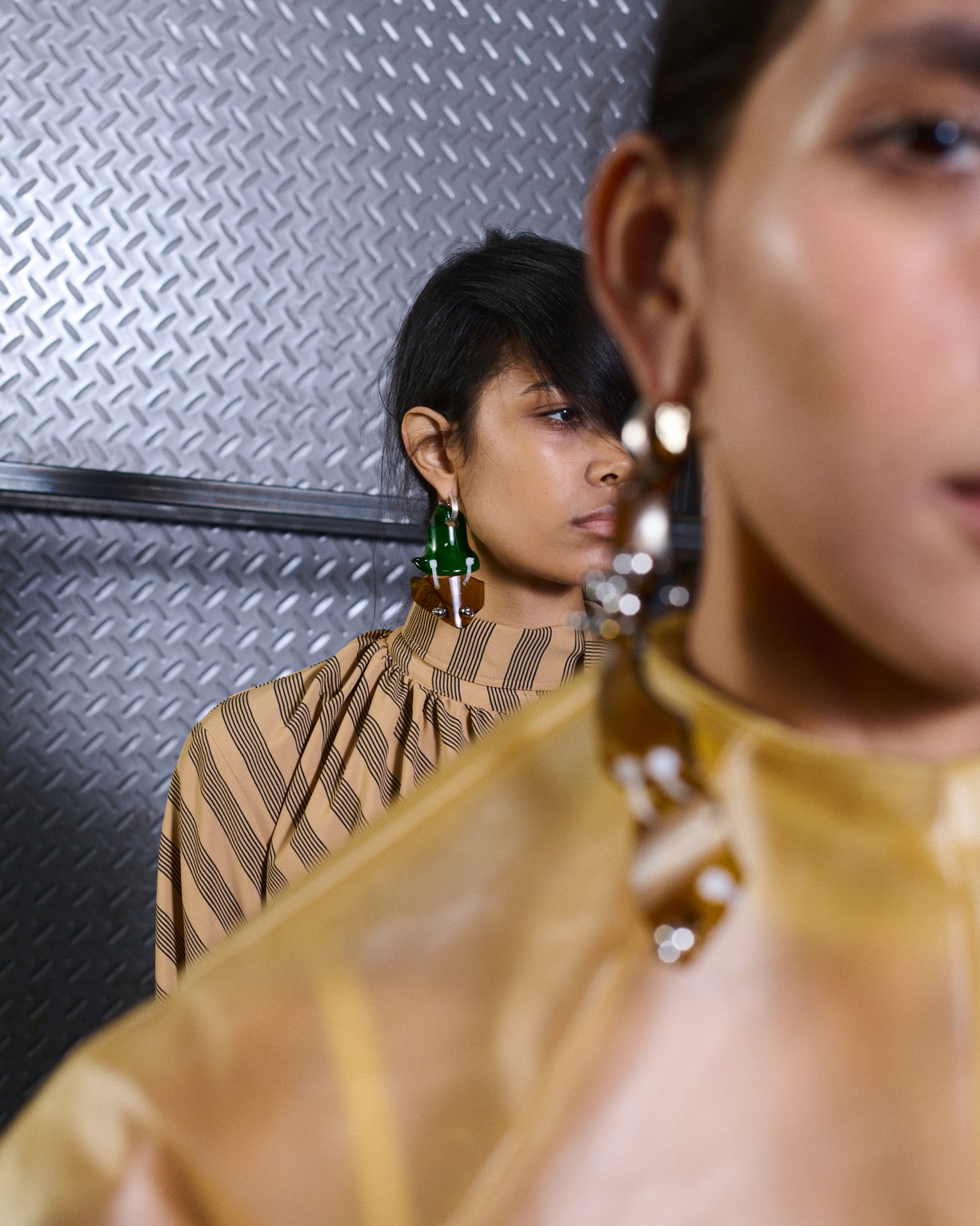 The formal intersects with the unfinished; solidity coexists with vulnerability. In this context, the tuxedo becomes a key element: it sheds its traditional solemnity and integrates into a contemporary language where formality softens and becomes expression. A subtle nod to the 1960s introduces refined silhouettes and a restrained femininity, reinterpreted from a present perspective, free from nostalgia. Collapse does not seek to resolve contradiction, but to inhabit it and turn it into its essence.