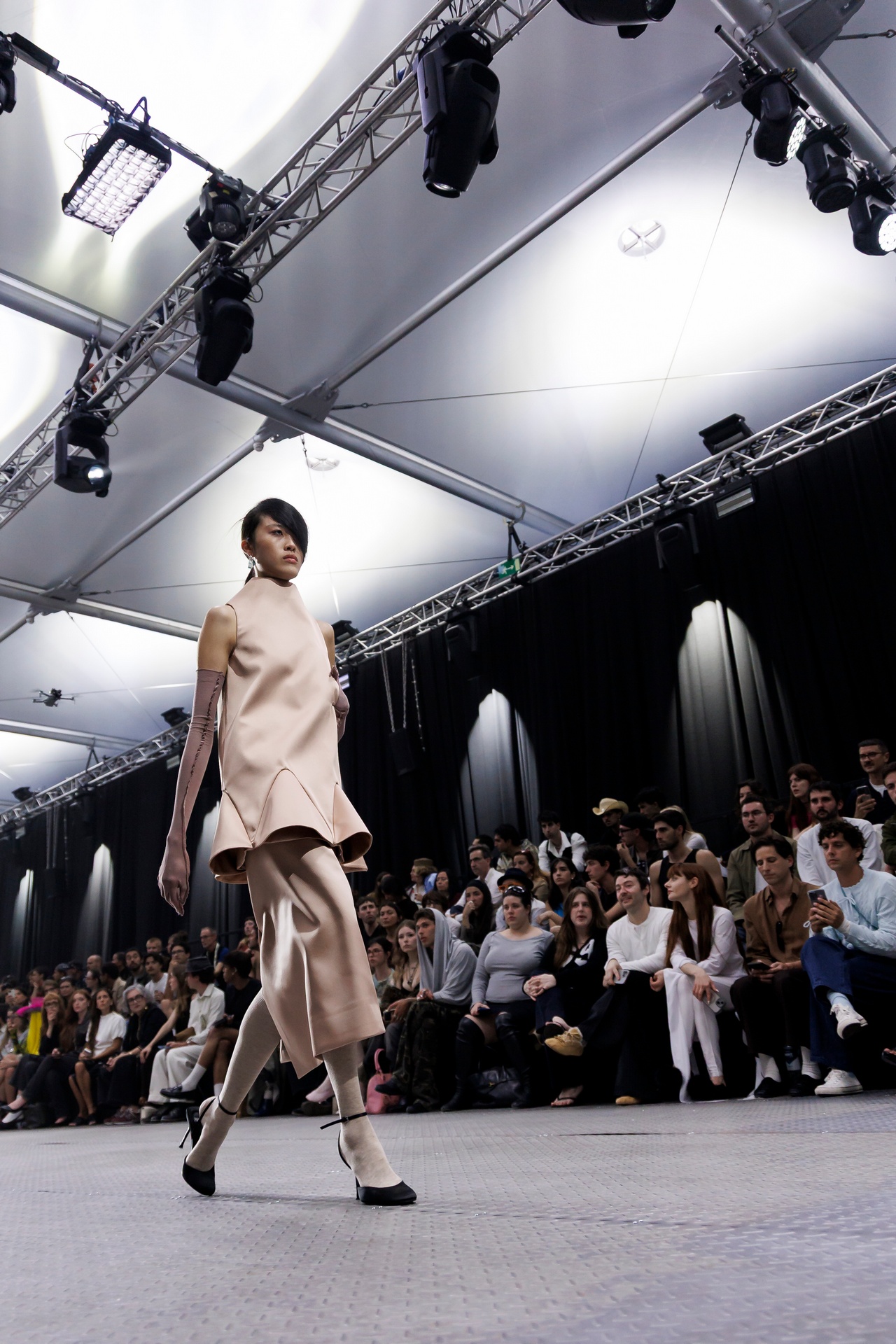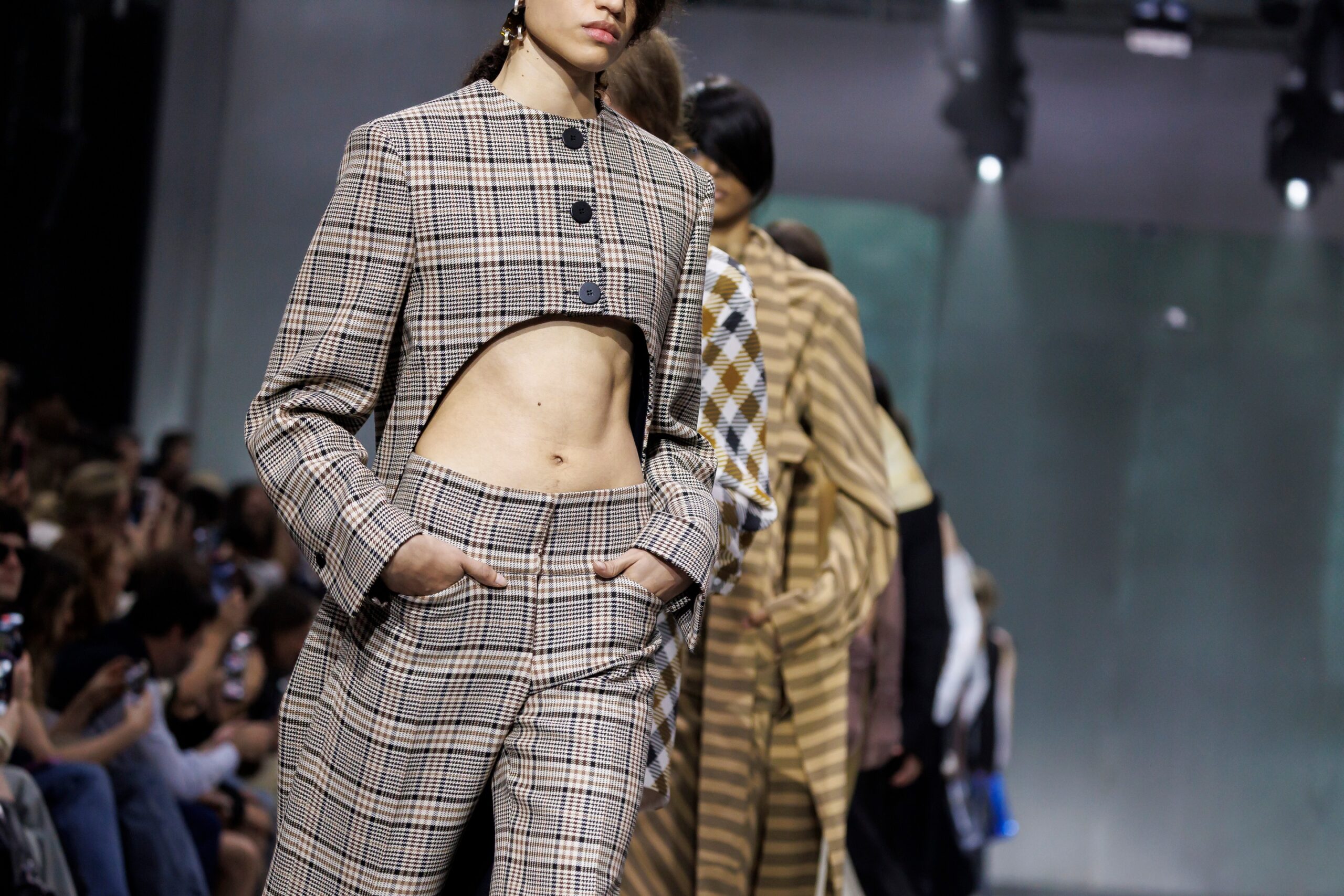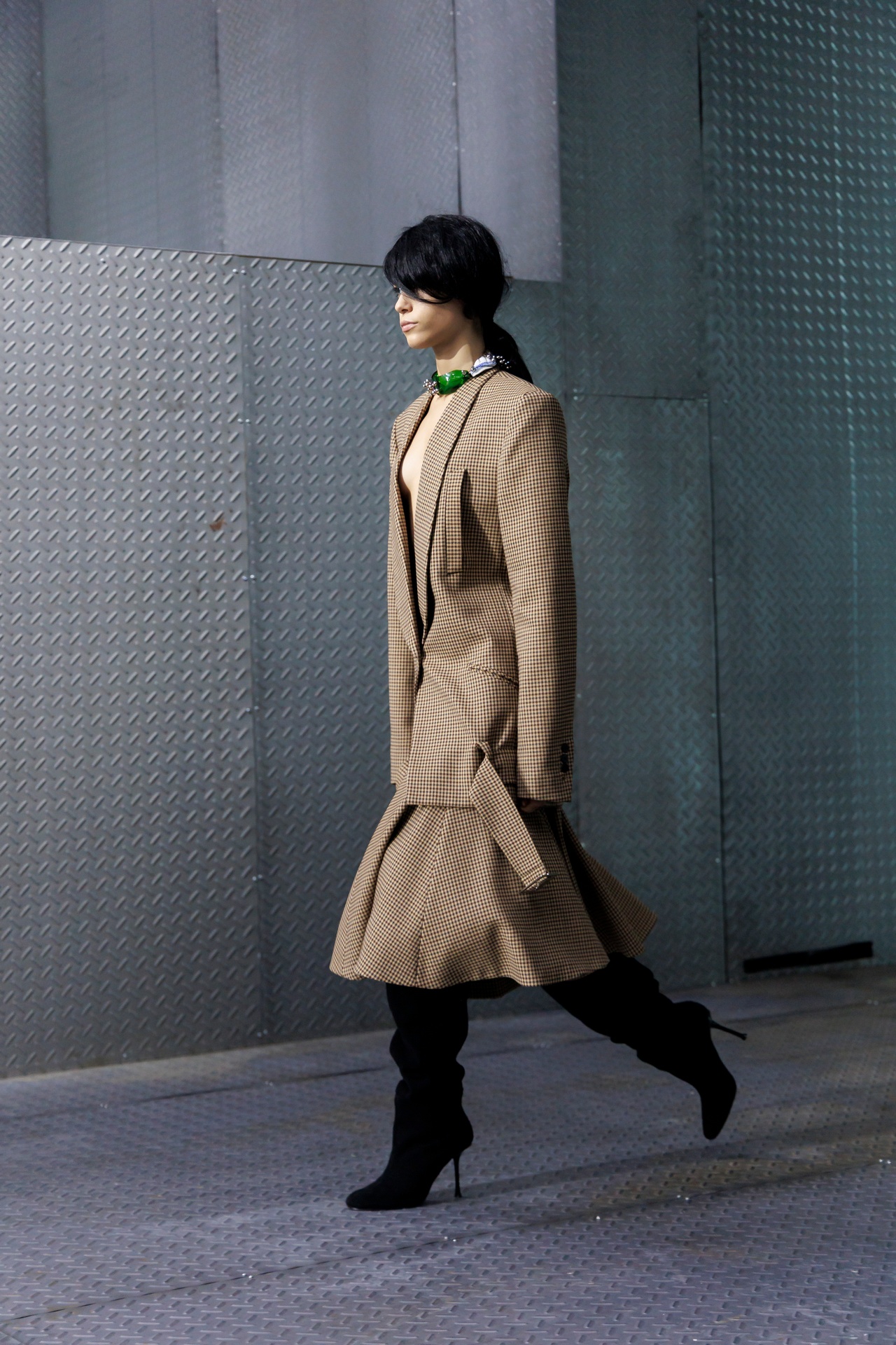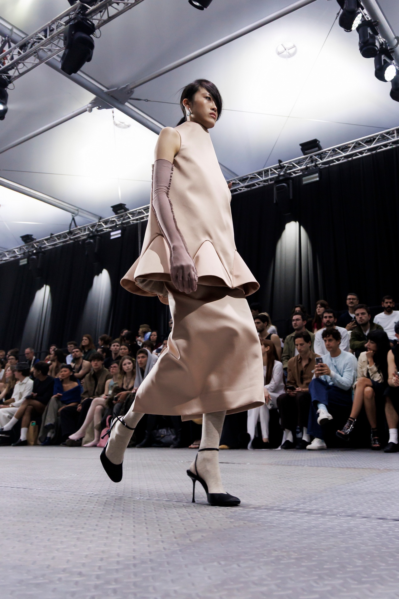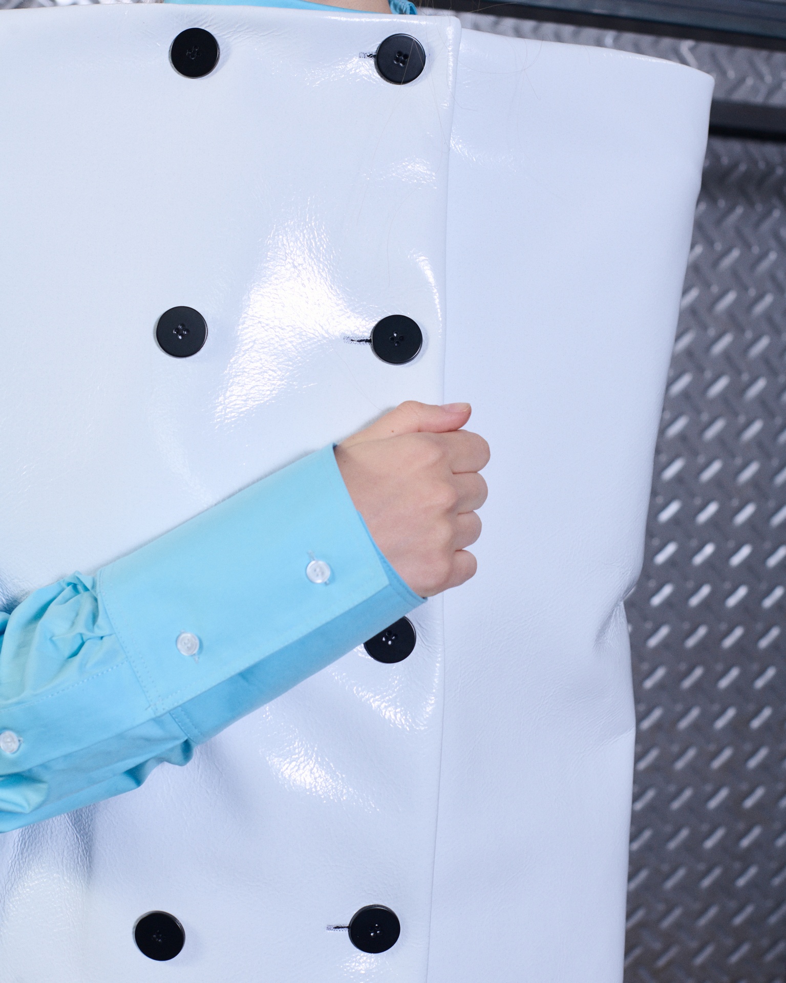 The formal intersects with the unfinished; solidity coexists with vulnerability. In this context, the tuxedo becomes a key element: it sheds its traditional solemnity and integrates into a contemporary language where formality softens and becomes expression. A subtle nod to the 1960s introduces refined silhouettes and a restrained femininity, reinterpreted from a present perspective, free from nostalgia. Collapse does not seek to resolve contradiction, but to inhabit it and turn it into its essence.