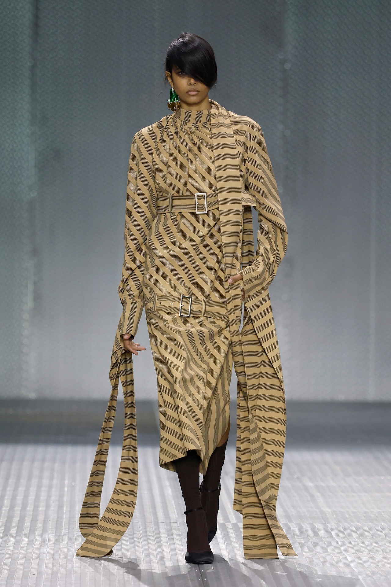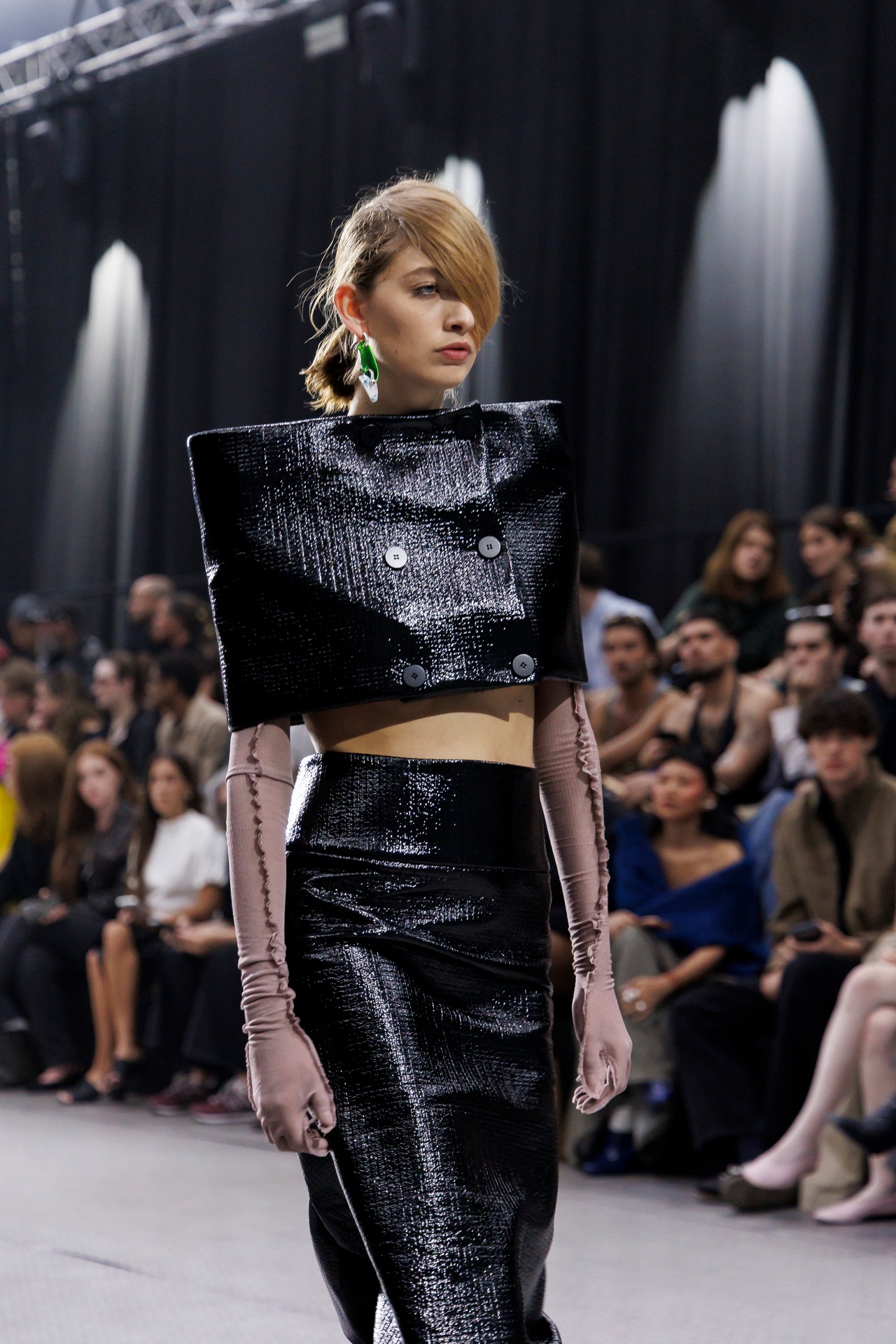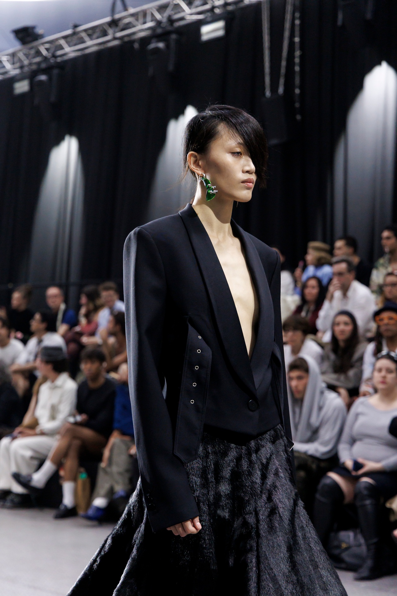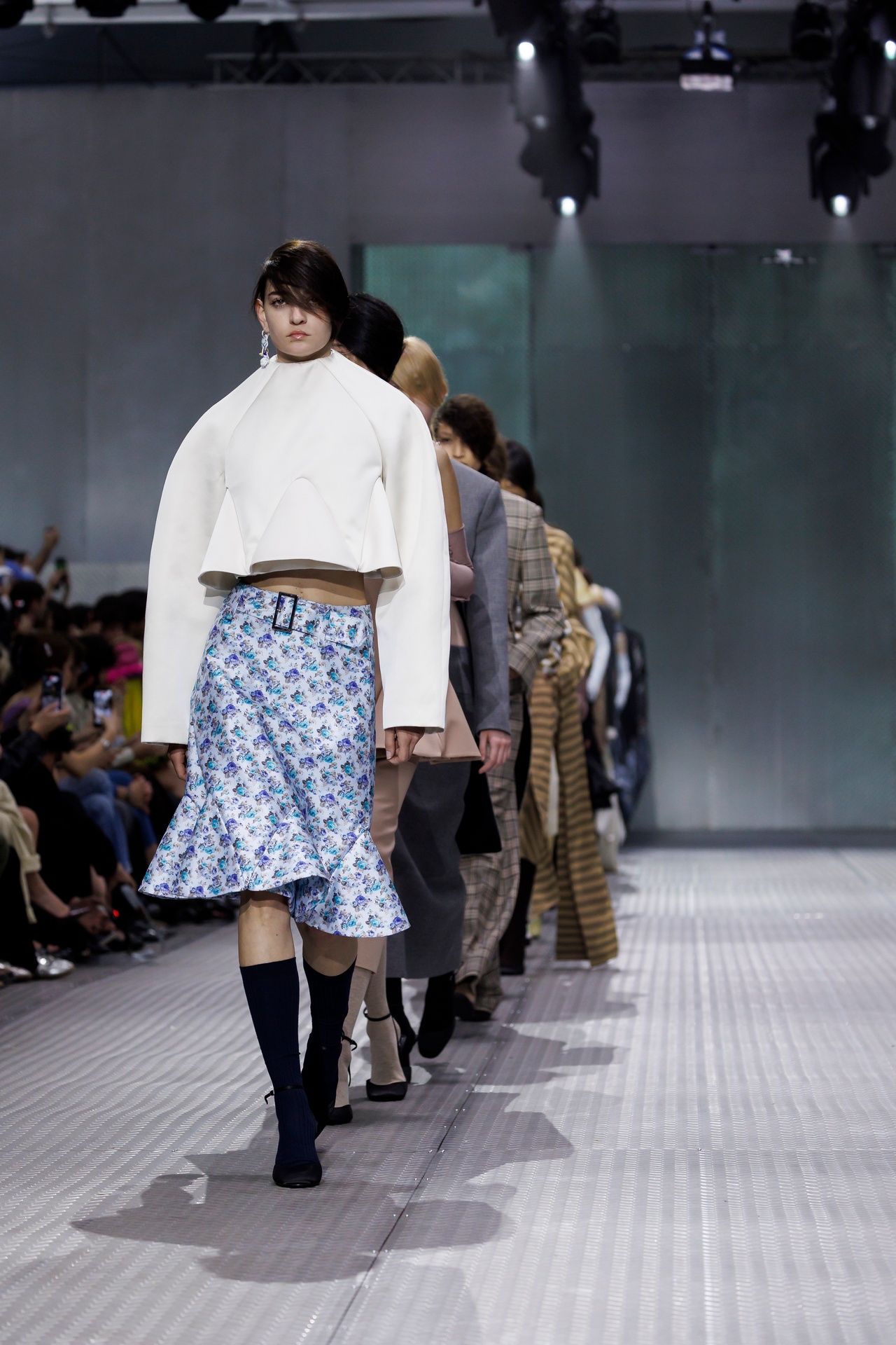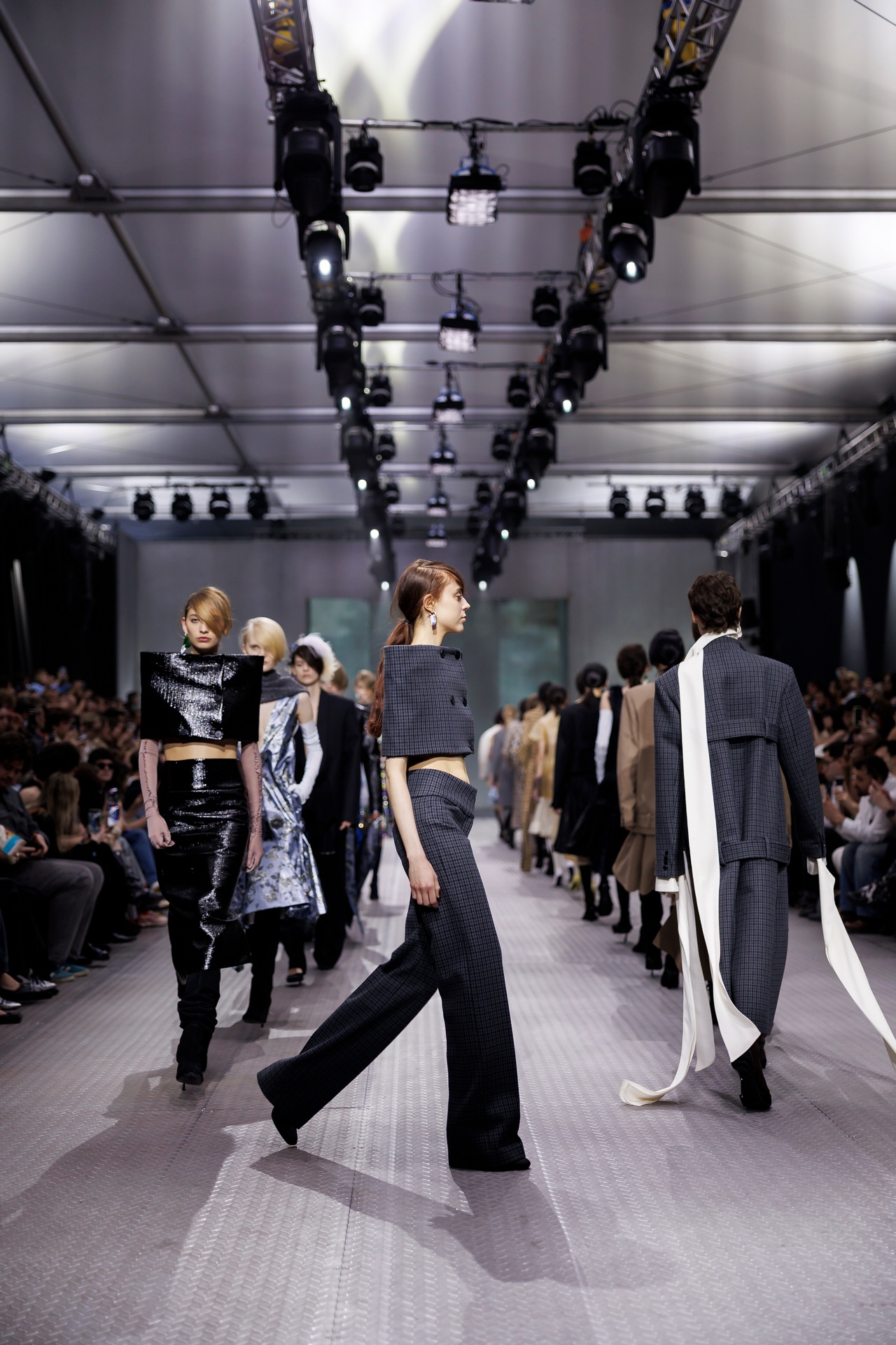 The formal intersects with the unfinished; solidity coexists with vulnerability. In this context, the tuxedo becomes a key element: it sheds its traditional solemnity and integrates into a contemporary language where formality softens and becomes expression. A subtle nod to the 1960s introduces refined silhouettes and a restrained femininity, reinterpreted from a present perspective, free from nostalgia. Collapse does not seek to resolve contradiction, but to inhabit it and turn it into its essence.