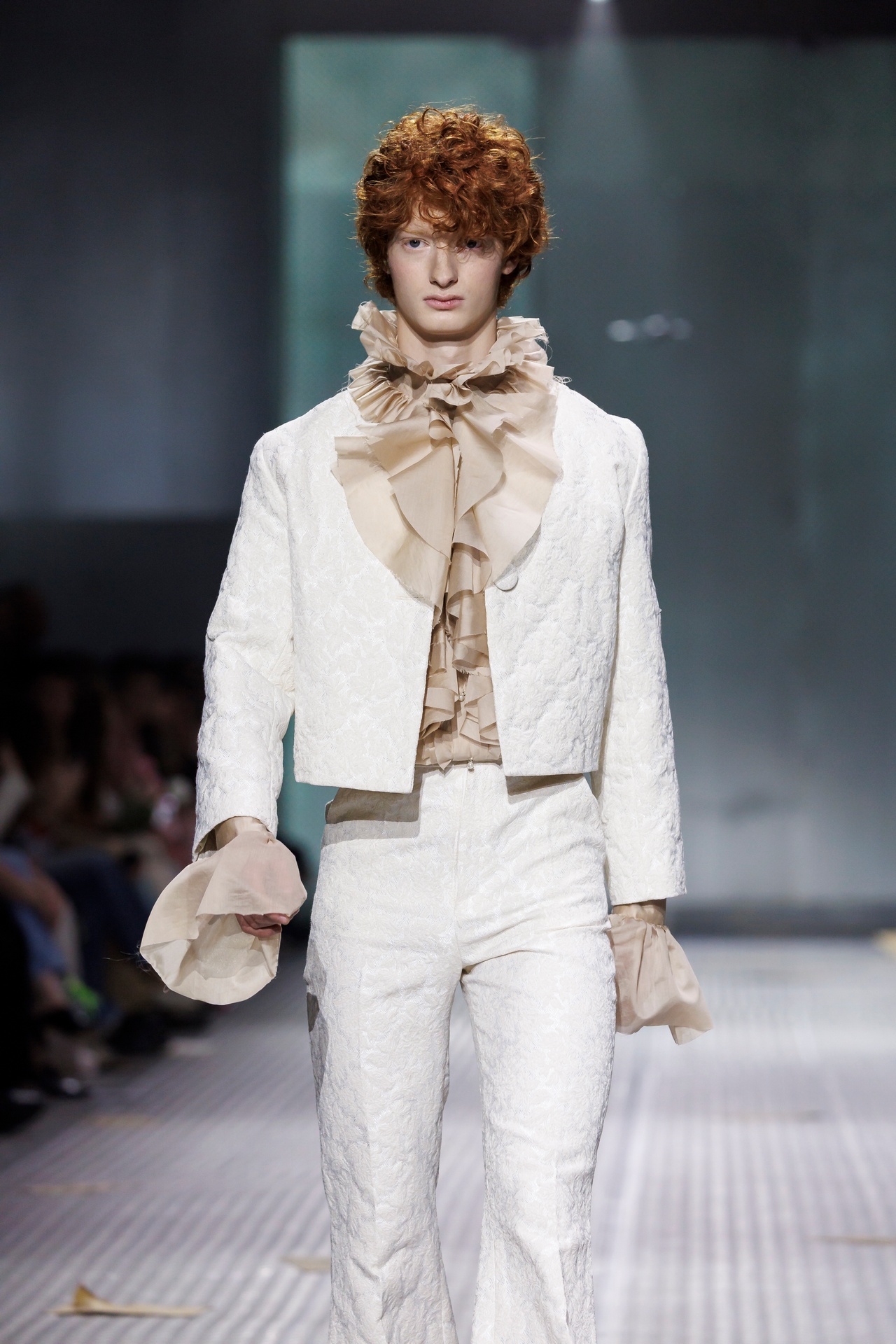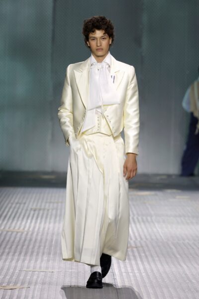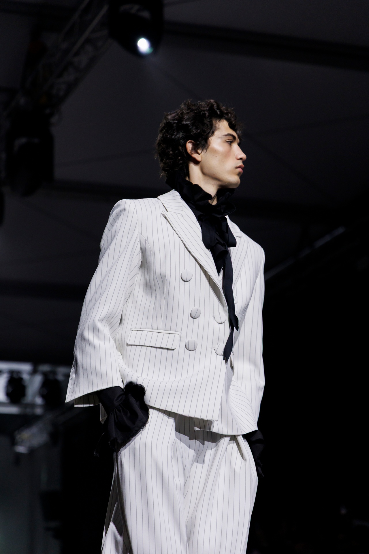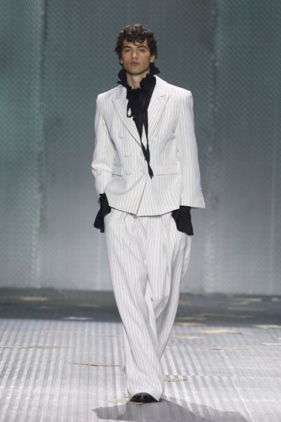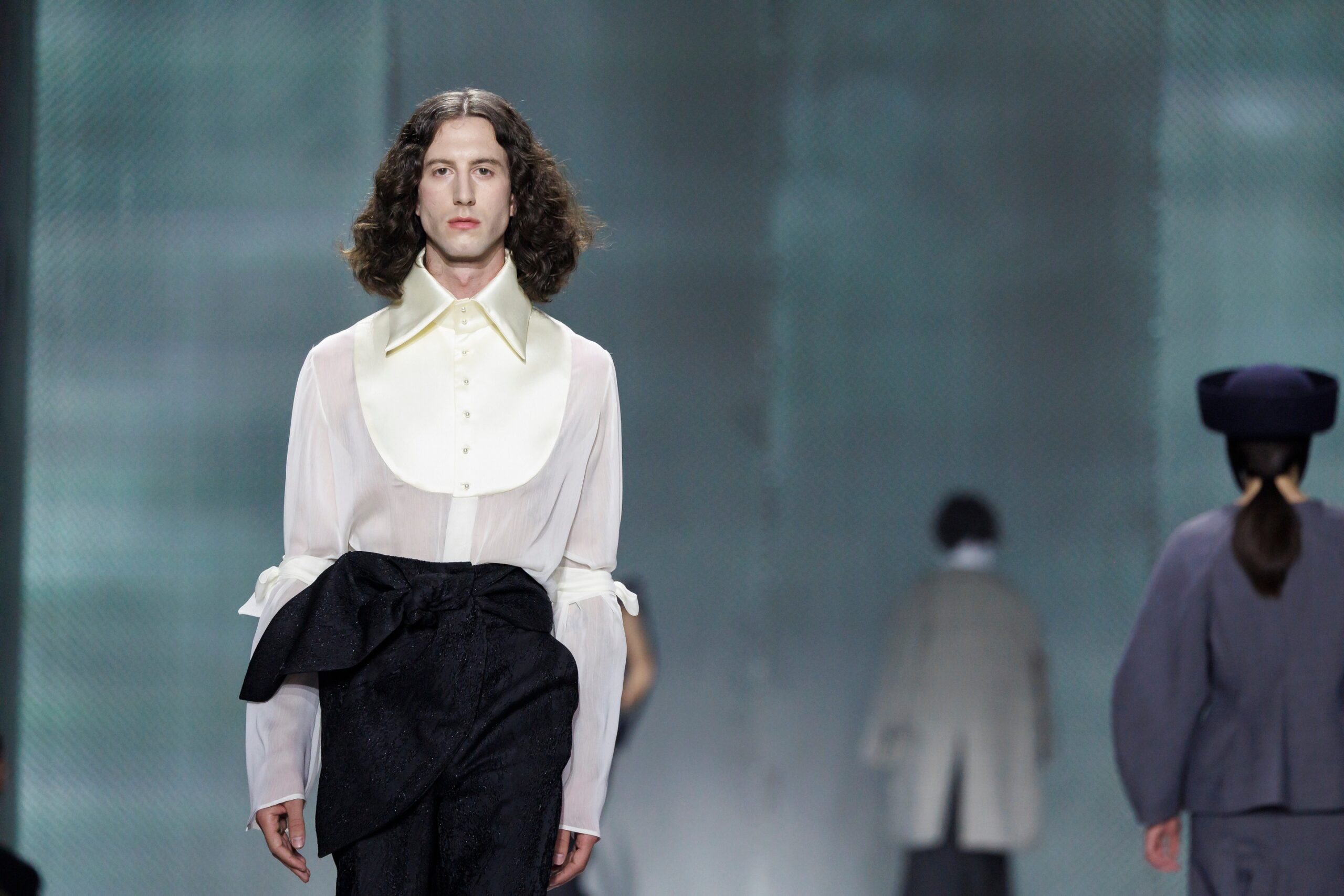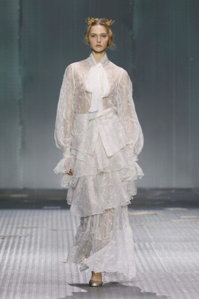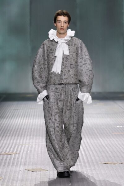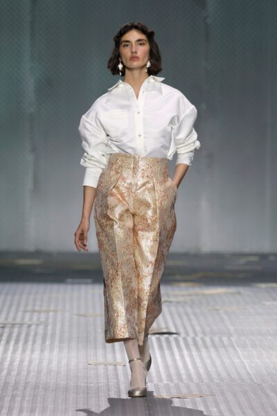 Les Muses de l’Empereur nace del drama el dolor y la pasión de las grandes historias de amor que han marcado la historia. Inspirada en Napoleón y Josefina, Enrique VIII o Ana Bolena, explora un amor intenso, trágico y decisivo, reflejado en cartas, gestos y batallas que cambiaron el destino de imperios y corazones. Cada prenda es un relato: trajes de batalla y vestidos de gala se transforman en piezas contemporáneas donde la fuerza estructural convive con tejidos suaves y fluidos. La colección equilibra magistralmente looks masculinos y femeninos, convirtiéndose en la propuesta más compleja y ambiciosa de Benavente hasta la fecha. Cortes, capas y siluetas evocan armaduras y ceremonias históricas, mientras que lanas, sedas y tejidos ligeros aportan movimiento y sensualidad. La tradición se encuentra con la modernidad, la técnica con la emoción, la historia con la interpretación contemporánea. Es una colección que habla de amor y poder, de pasión y fragilidad, de historia y memoria, transformando cada look en un acto teatral que trasciende la pasarela. Con ella, Benavente reafirma su visión de la moda como narración, arte y emoción, donde cada pieza es un homenaje a la intensidad de los sentimientos humanos.