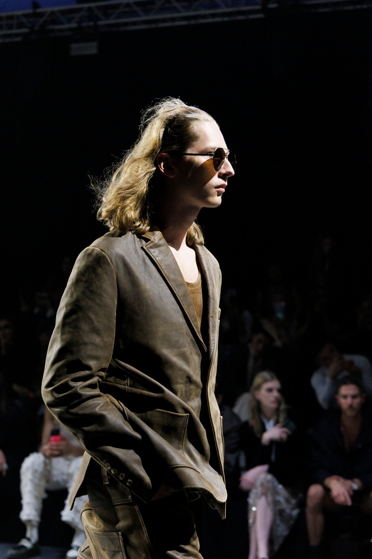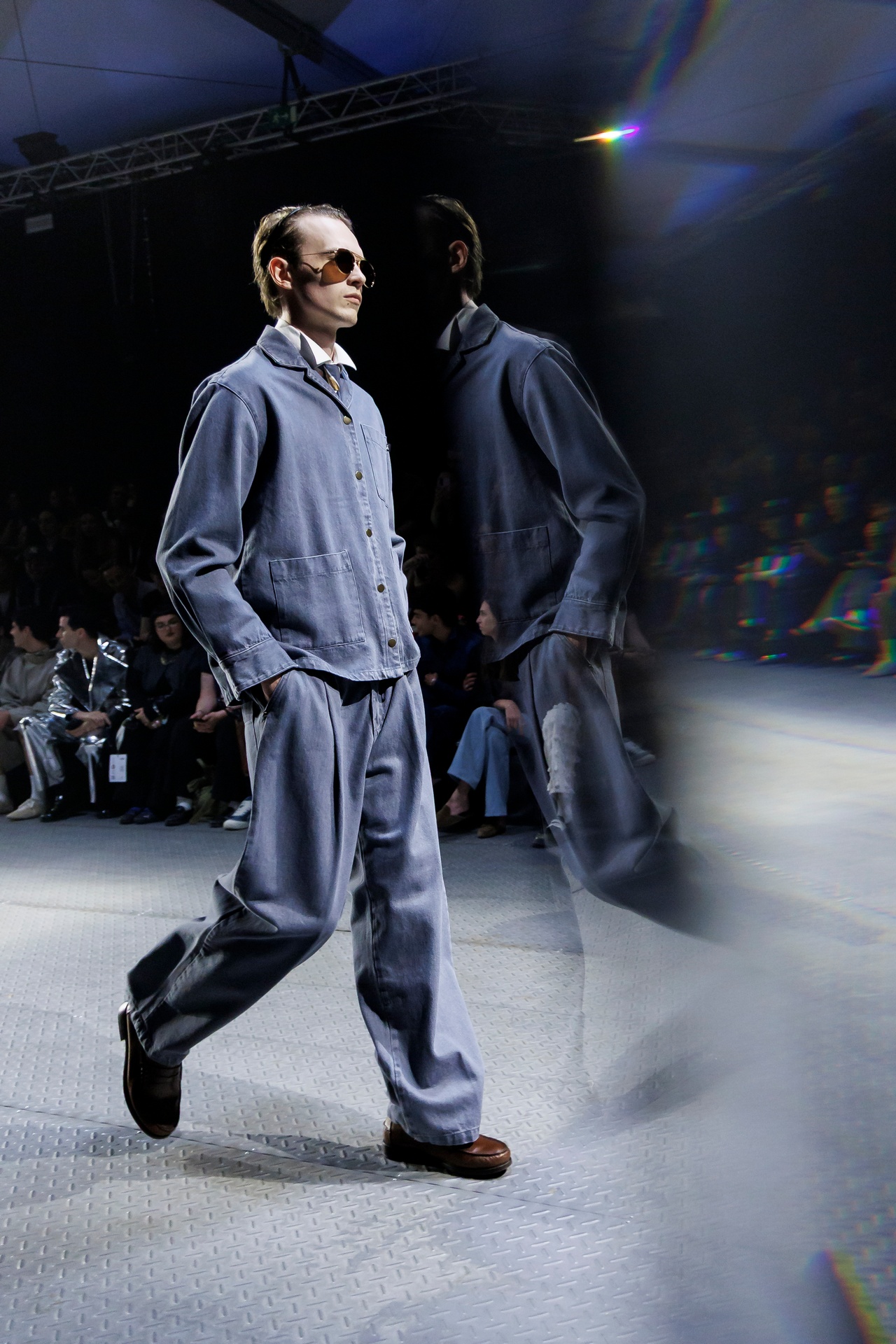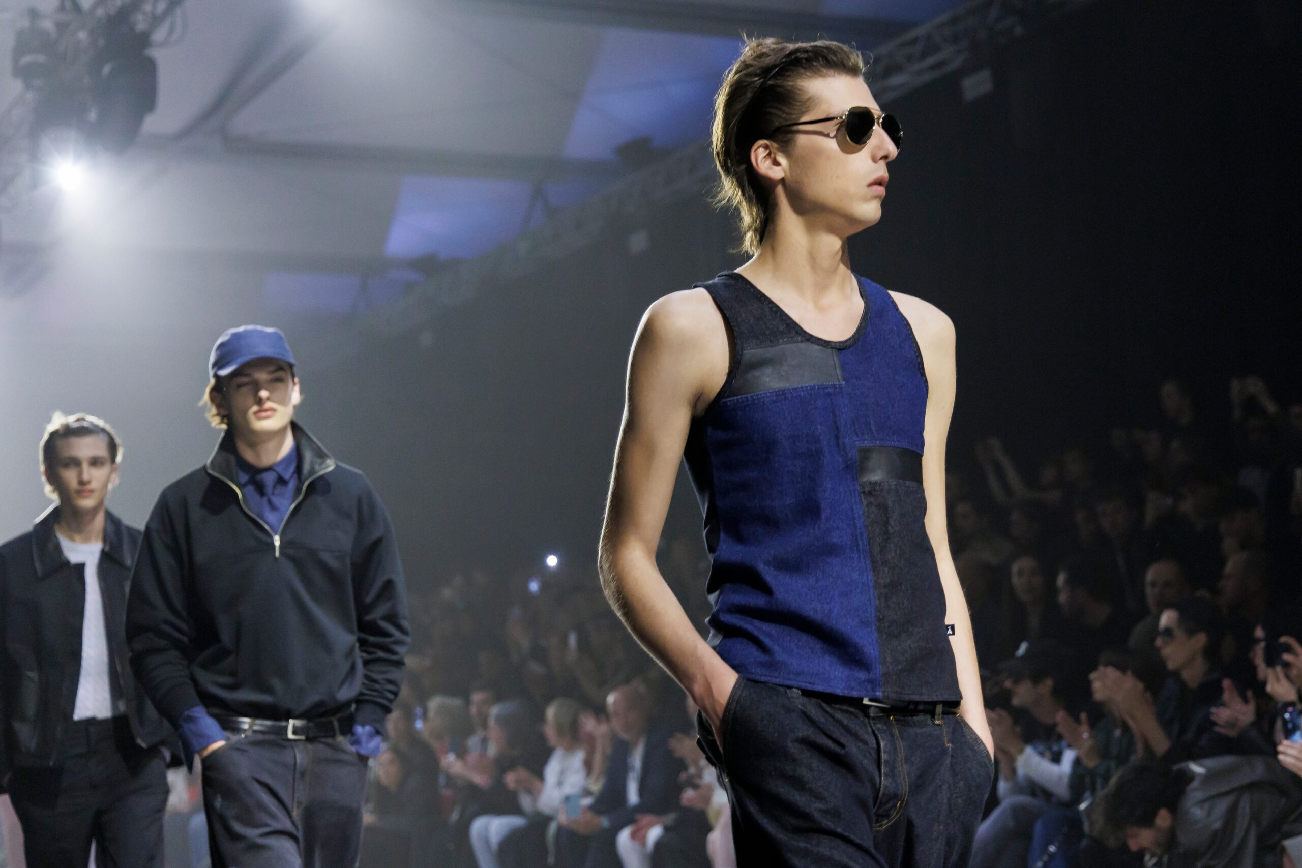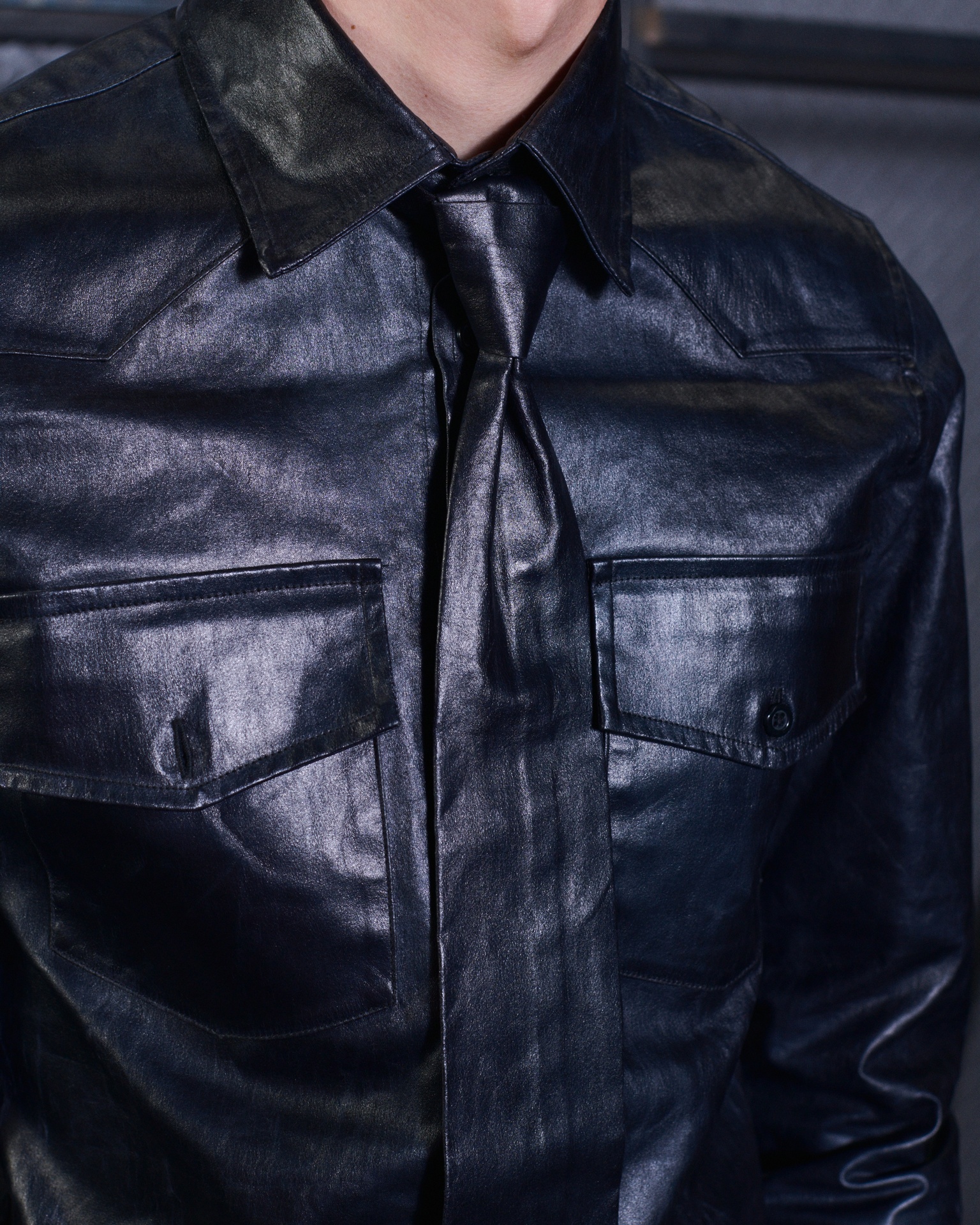 Las prendas se construyen a través de la composición. Los paneles se cruzan entre la sastrería y el denim, el cuero se encuentra con la lana y las superficies se organizan con precisión gráfica. Las costuras trazan líneas deliberadas sobre el cuerpo, convirtiendo el ensamblaje en lenguaje visual. El resultado no es nostálgico ni ornamental, sino controlado y arquitectónico.