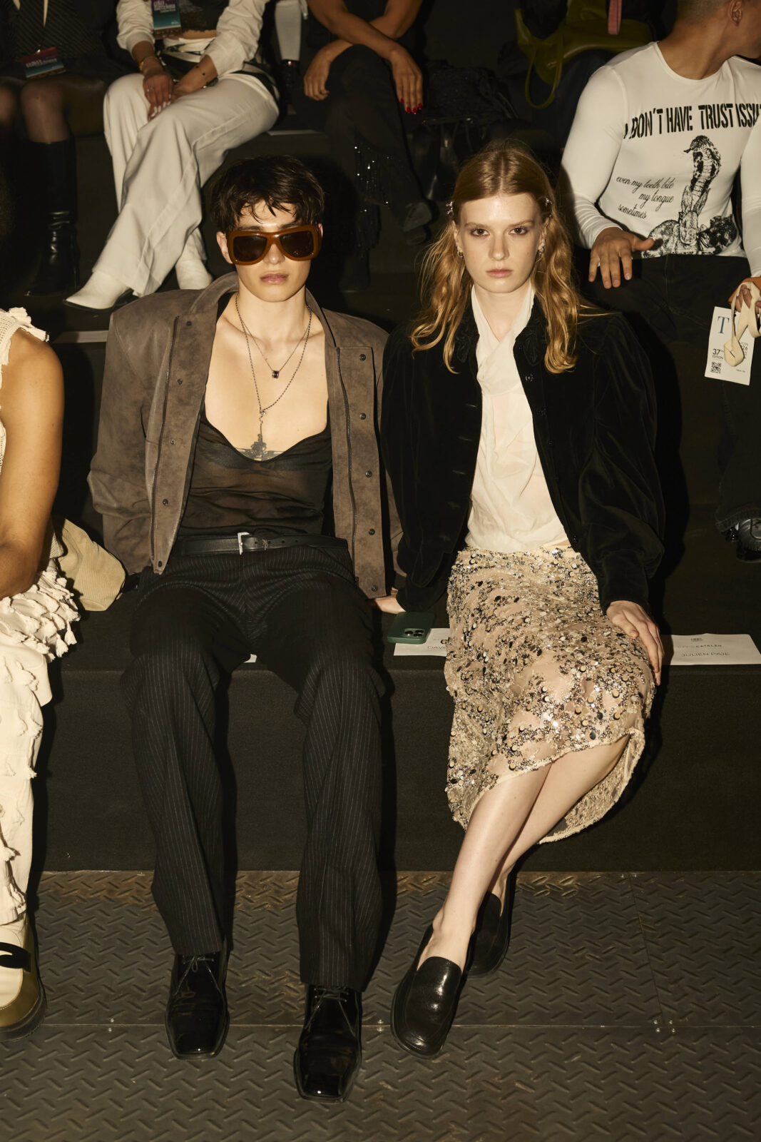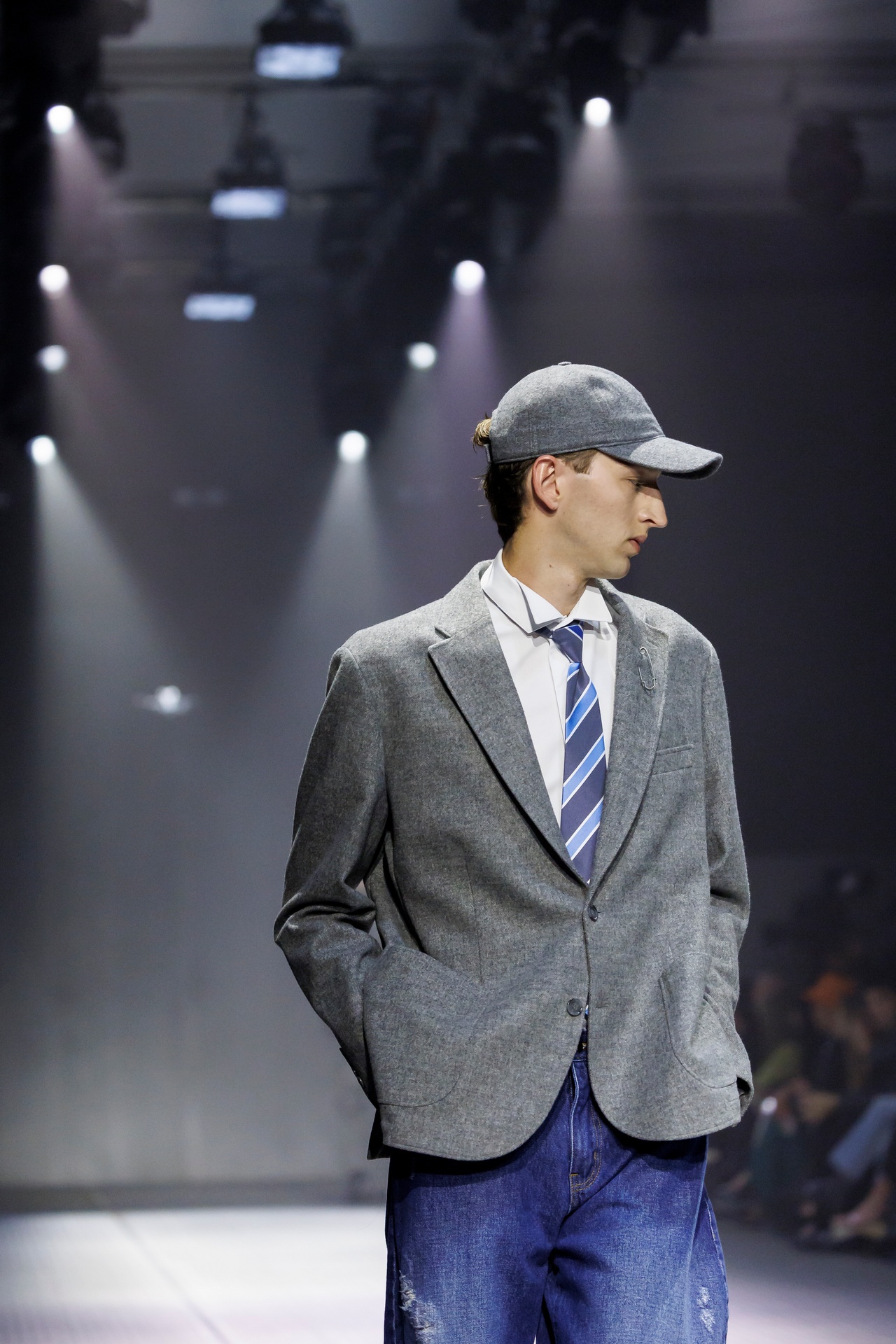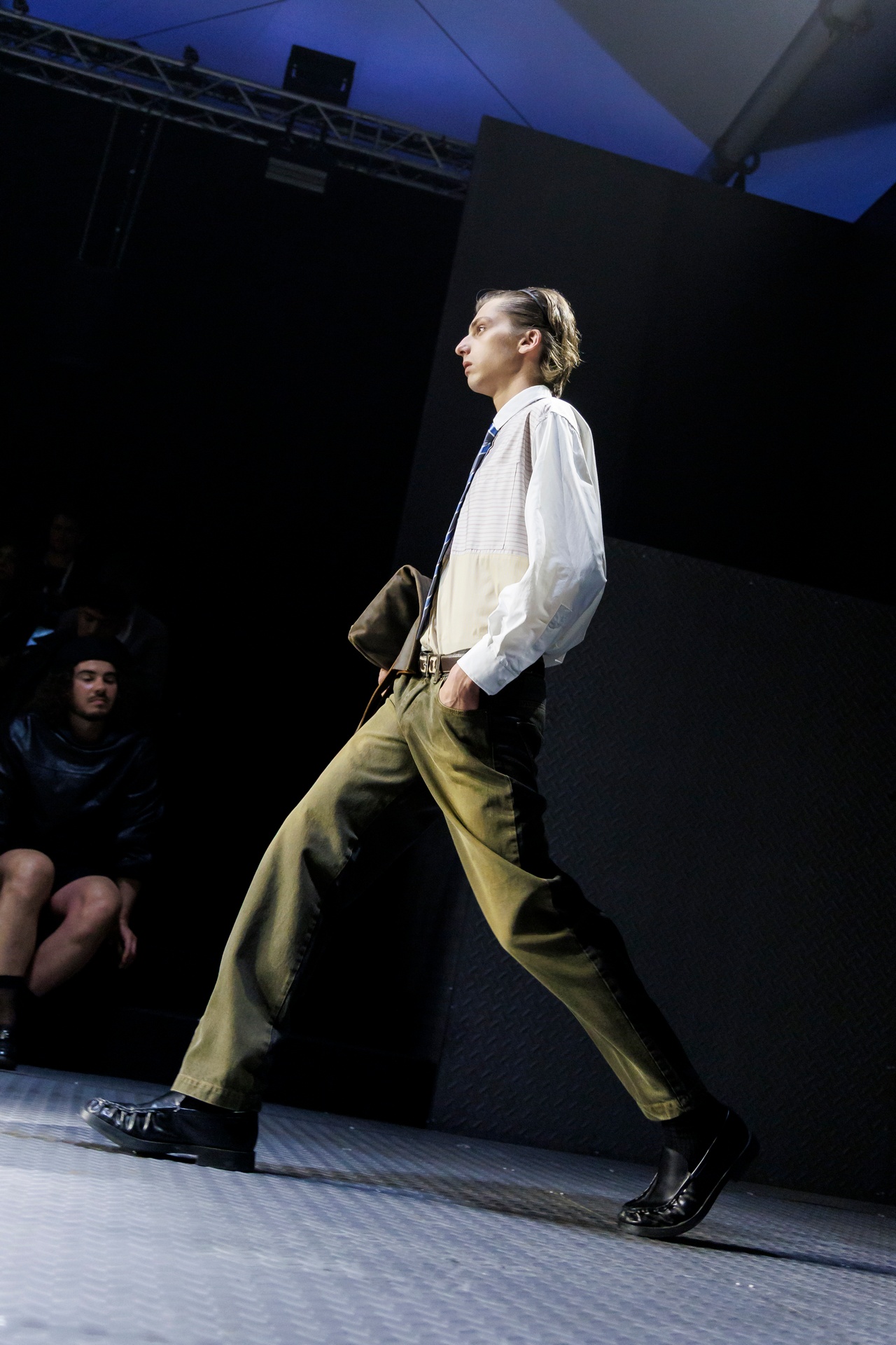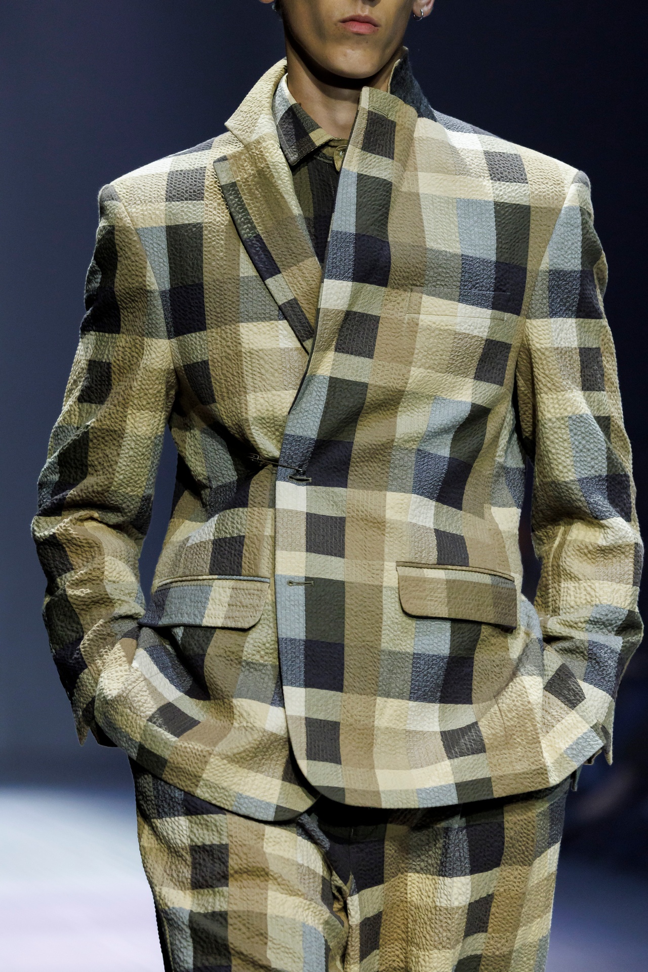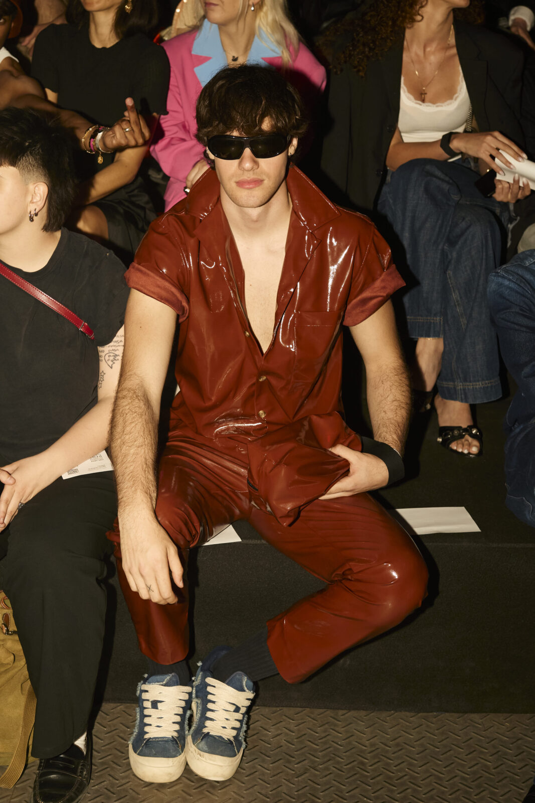 Las prendas se construyen a través de la composición. Los paneles se cruzan entre la sastrería y el denim, el cuero se encuentra con la lana y las superficies se organizan con precisión gráfica. Las costuras trazan líneas deliberadas sobre el cuerpo, convirtiendo el ensamblaje en lenguaje visual. El resultado no es nostálgico ni ornamental, sino controlado y arquitectónico.