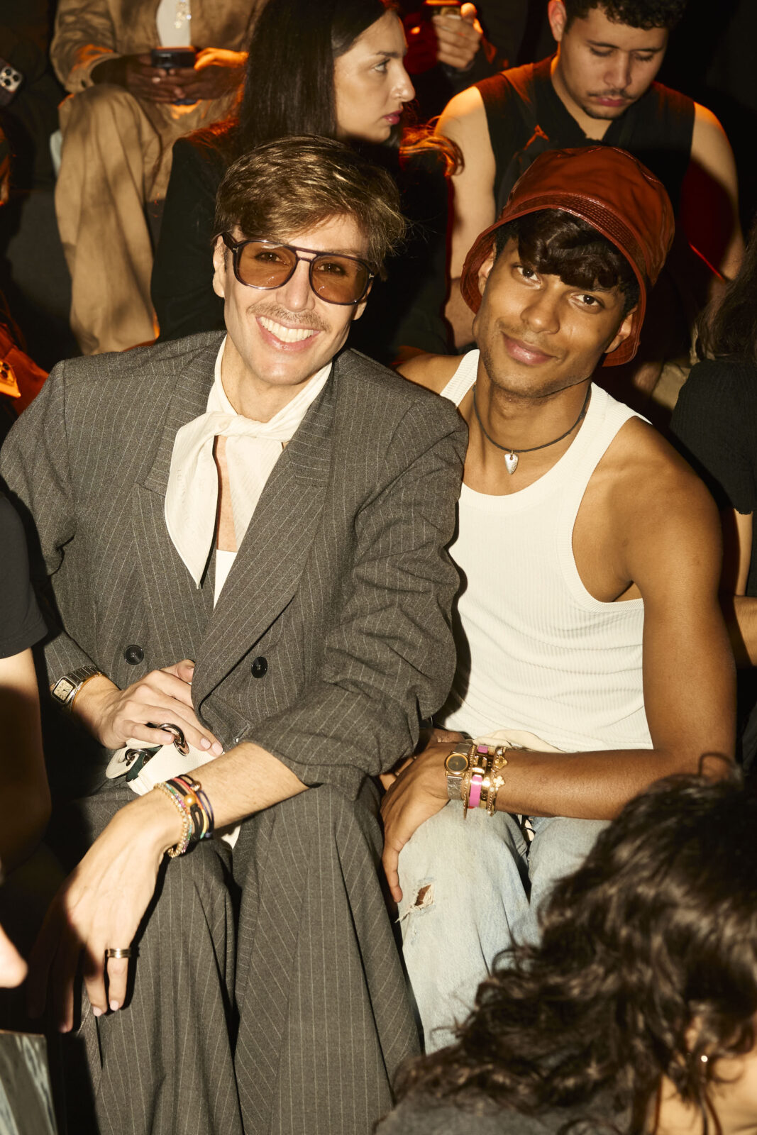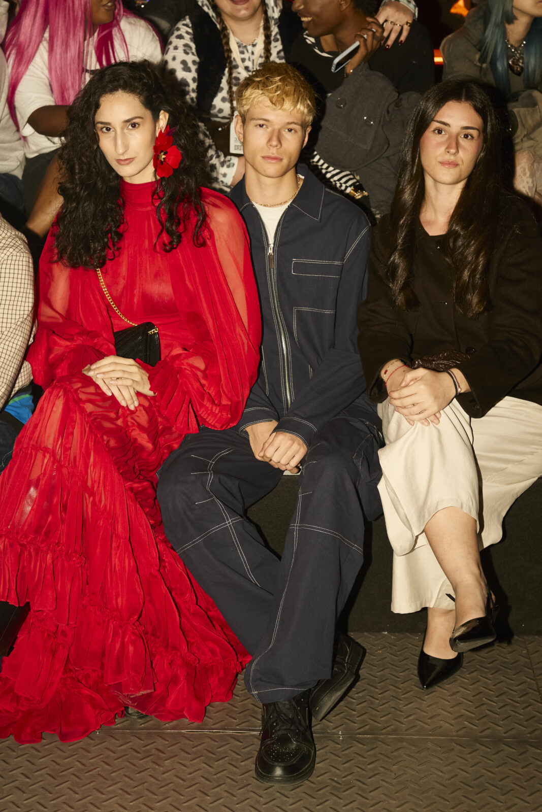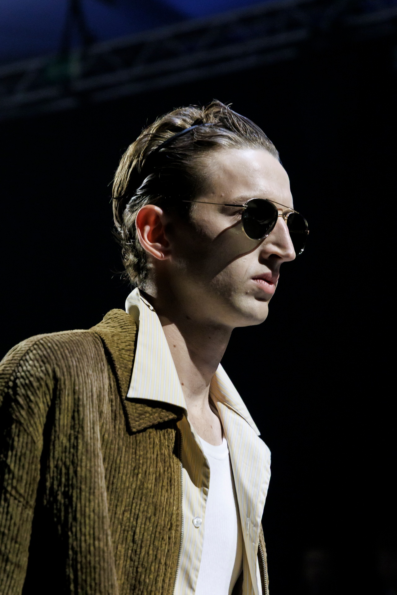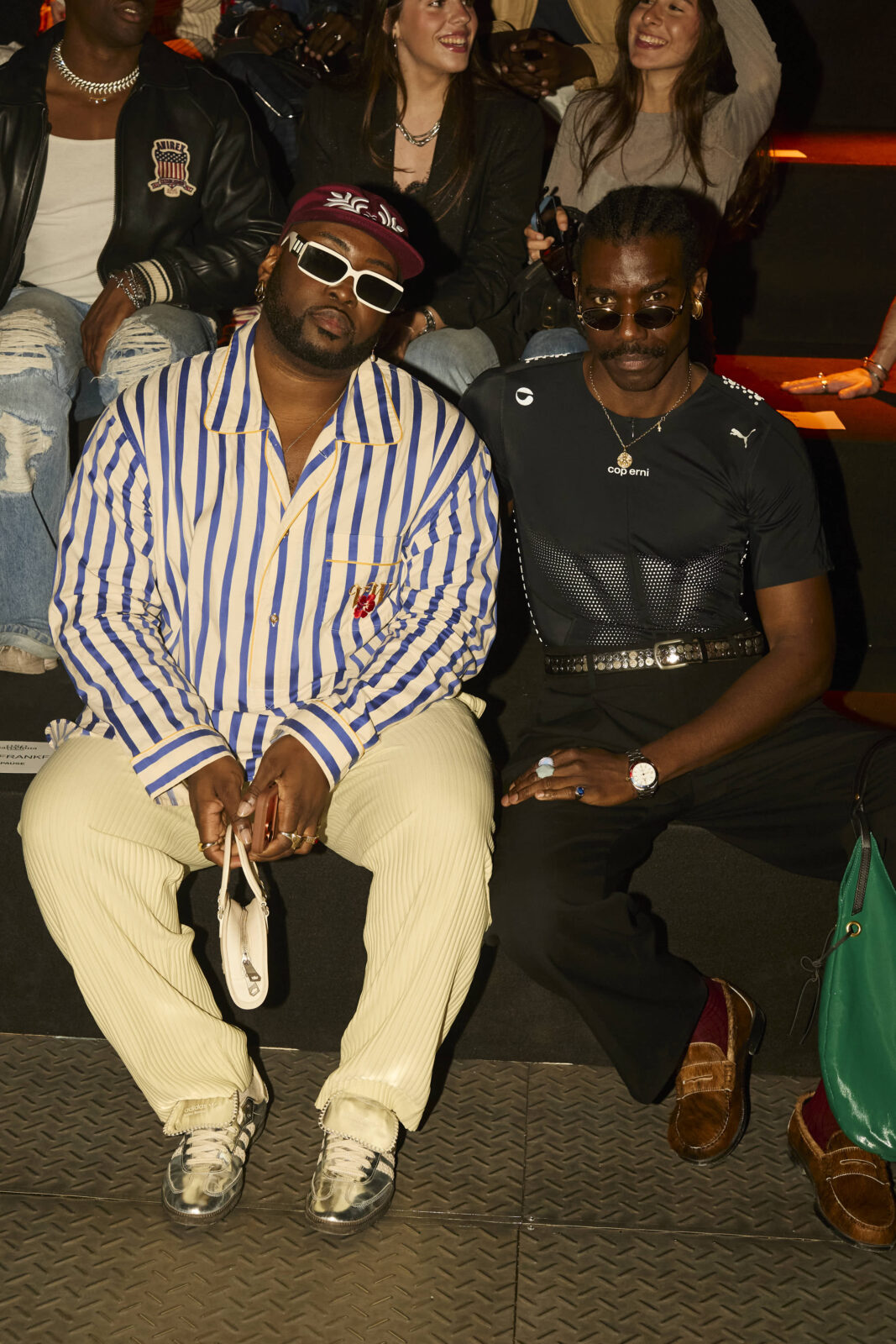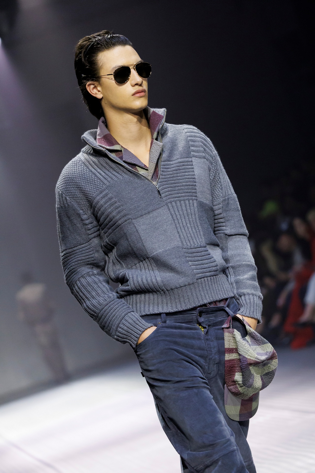 Las siluetas son sólidas y contundentes. El volumen se sostiene con intención. Las prendas de abrigo estructuran la figura, mientras los pantalones caen amplios y con peso. La superposición no es exceso, sino sistema, permitiendo que las piezas se articulen y se adapten. La paleta se mantiene contenida, moviéndose entre marrones, camel, burdeos, marino y gris, priorizando la profundidad y la textura frente al adorno.