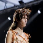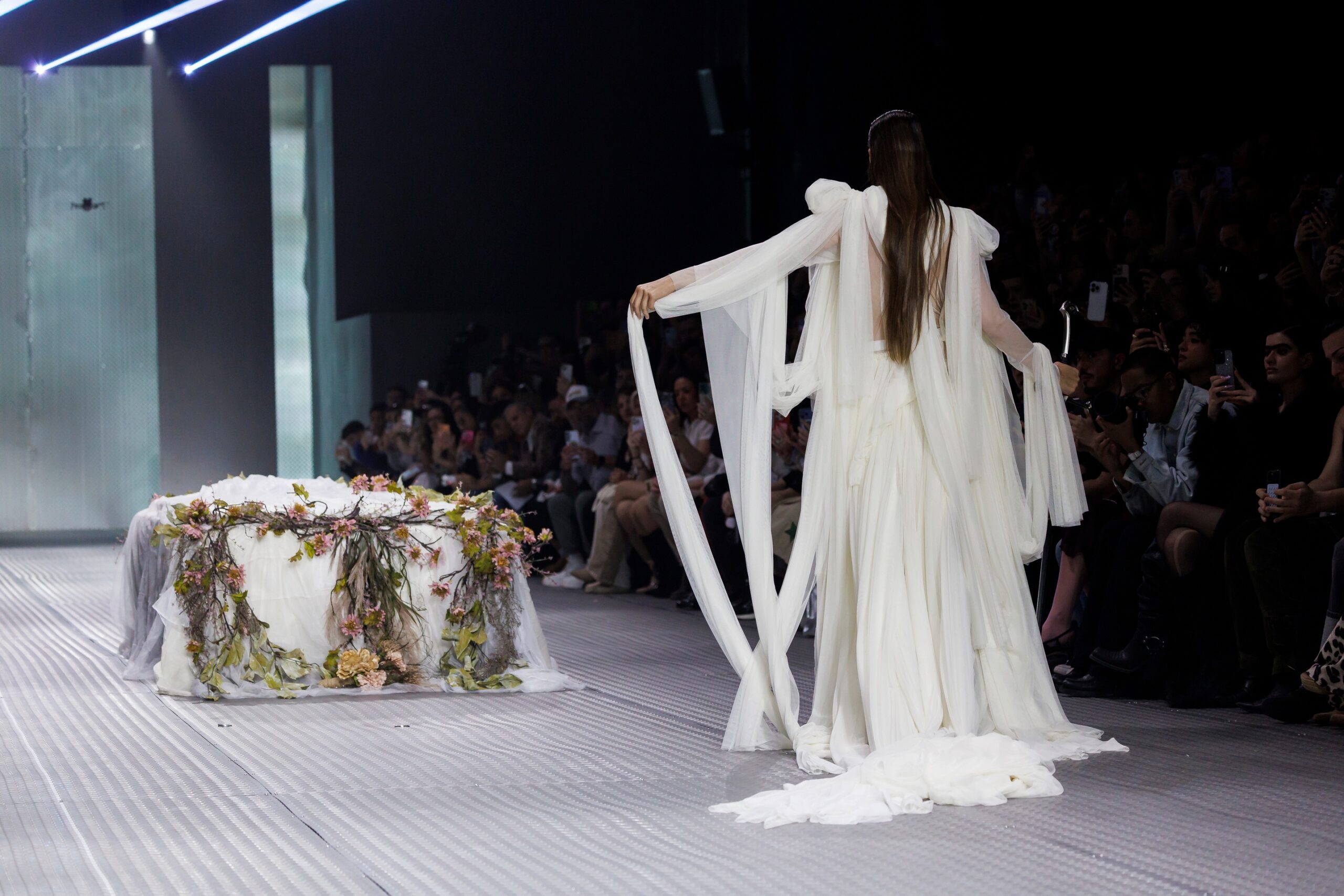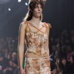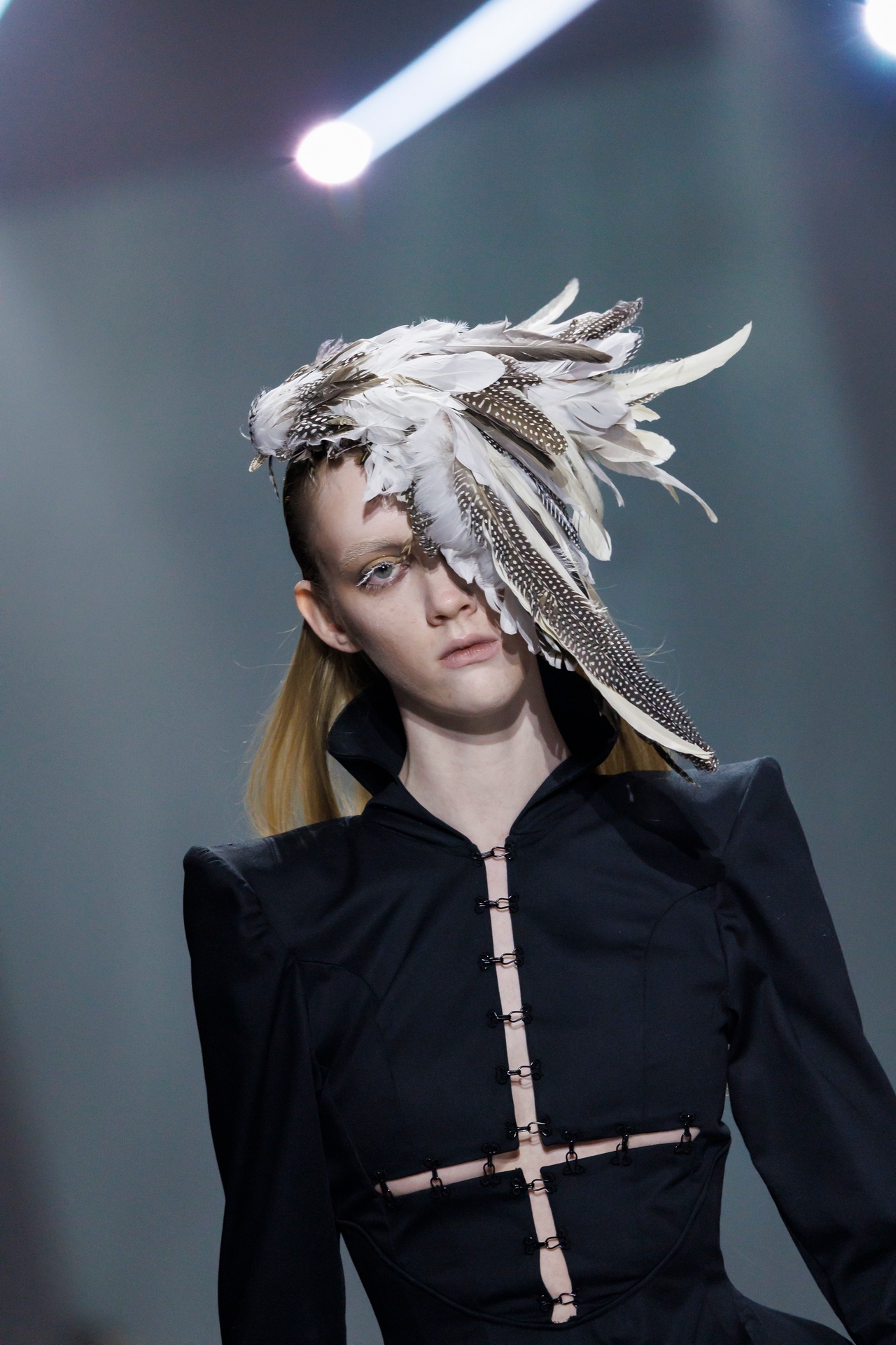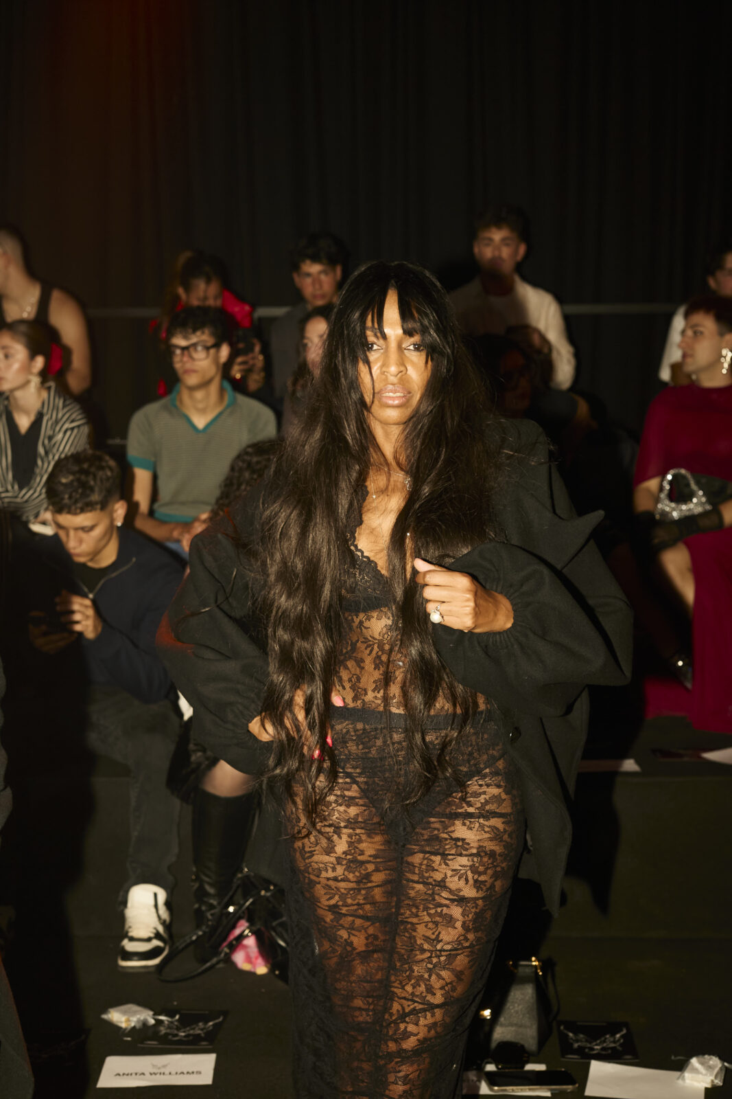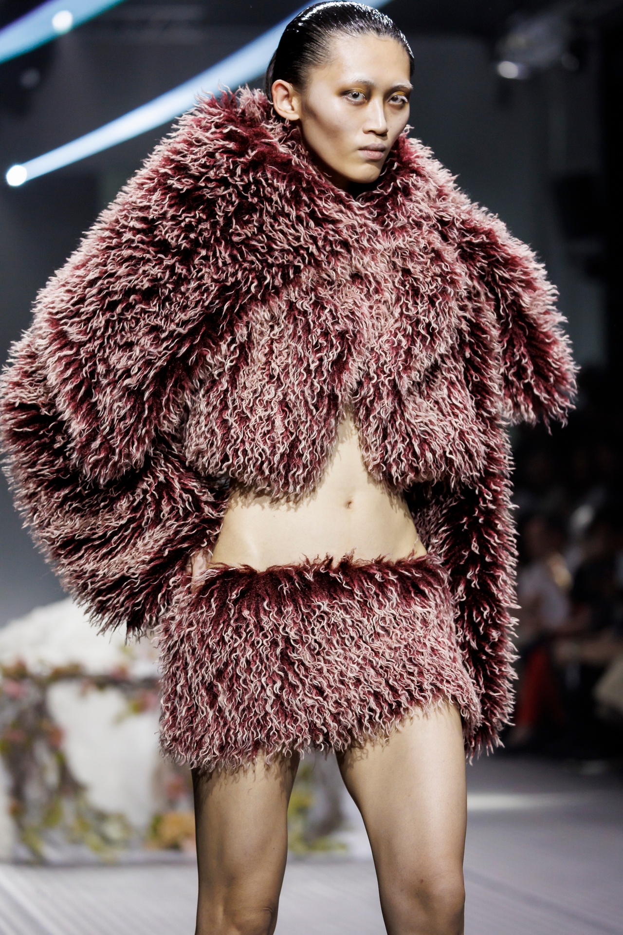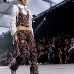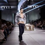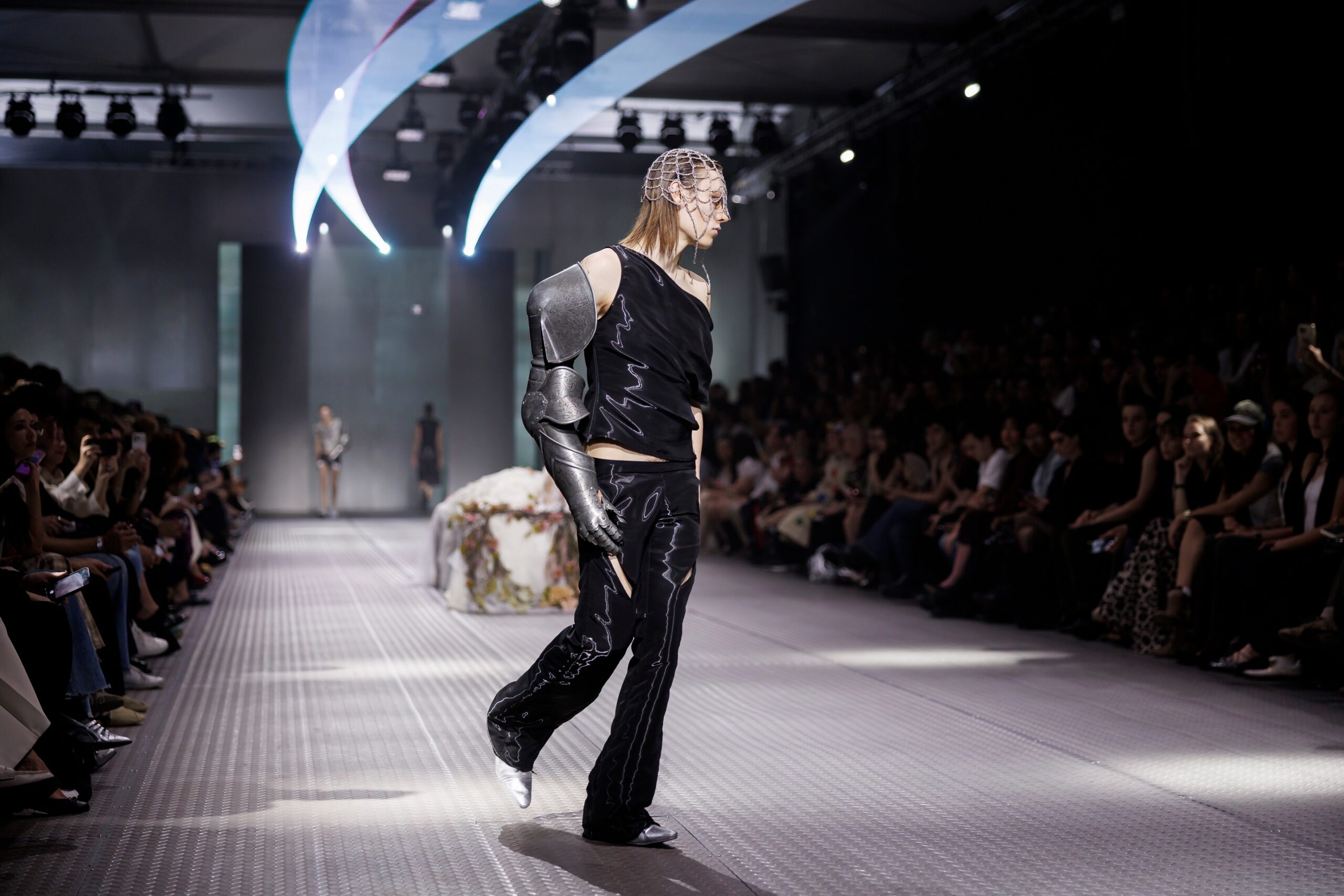 La propuesta habita un territorio entre lo espiritual y lo estructural, entre la luz metálica y la sombra del fuego. A través de materiales como organza, cuero sintético, pelo y encaje quemado, la colección aborda la idea de regeneración: el cuerpo que se quema, muta y renace. Cada textura cumple una función narrativa —estructura, ligereza, memoria abrasada, protección— construyendo un lenguaje visual de resistencia y transformación. La paleta cromática, del gris perla al negro carbón con reflejos plateados y pulsos de rojo, refuerza la tensión entre vulnerabilidad, poder y fortaleza interior.