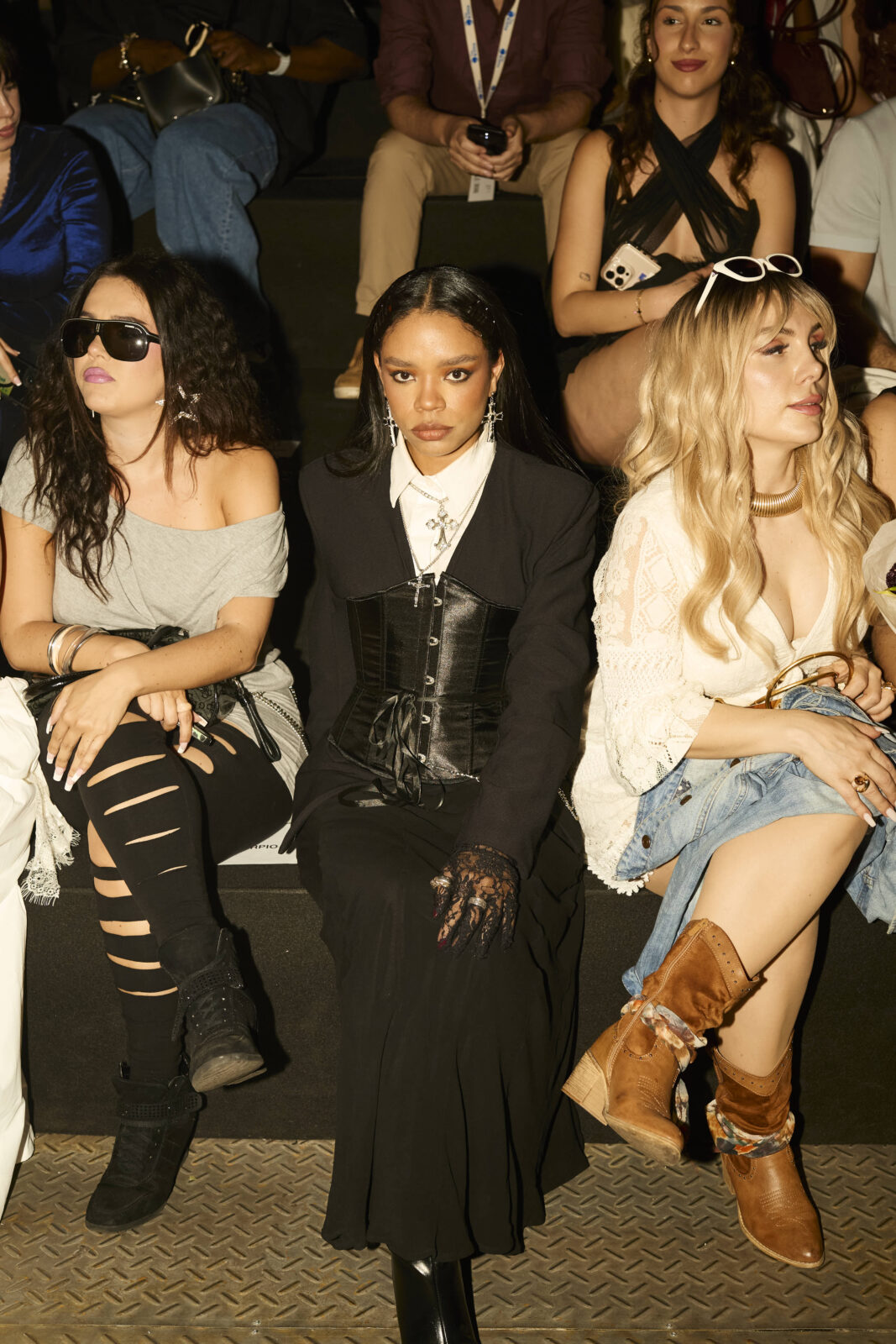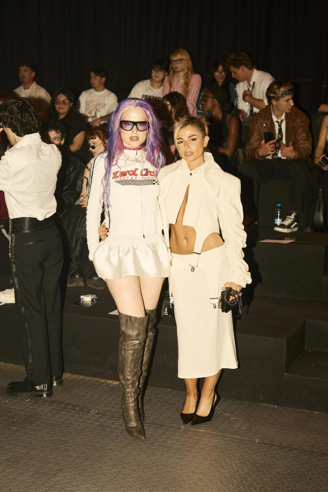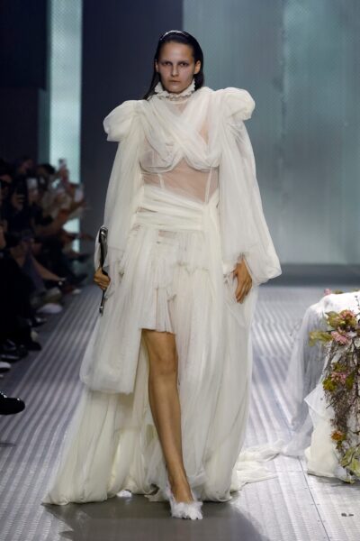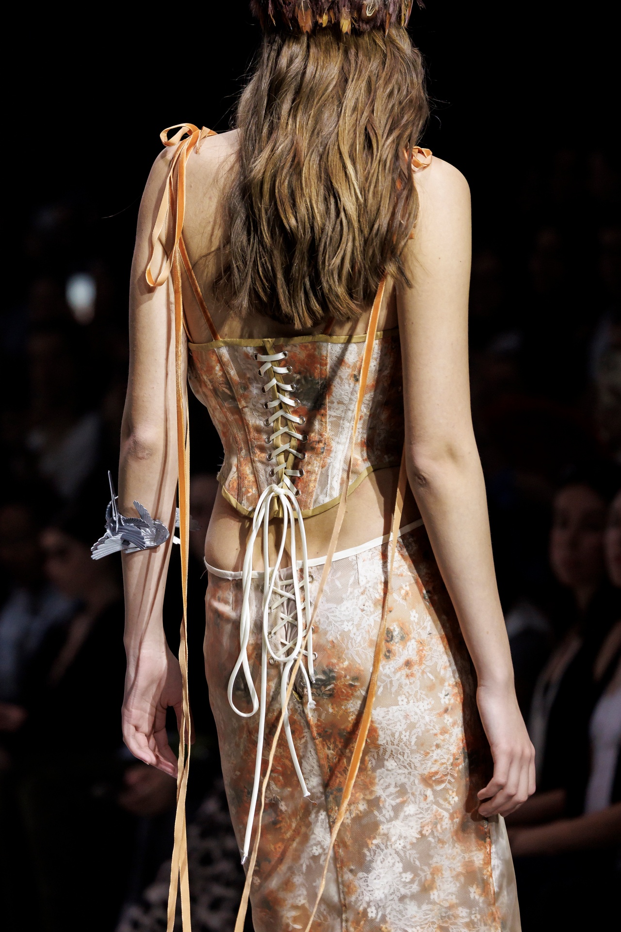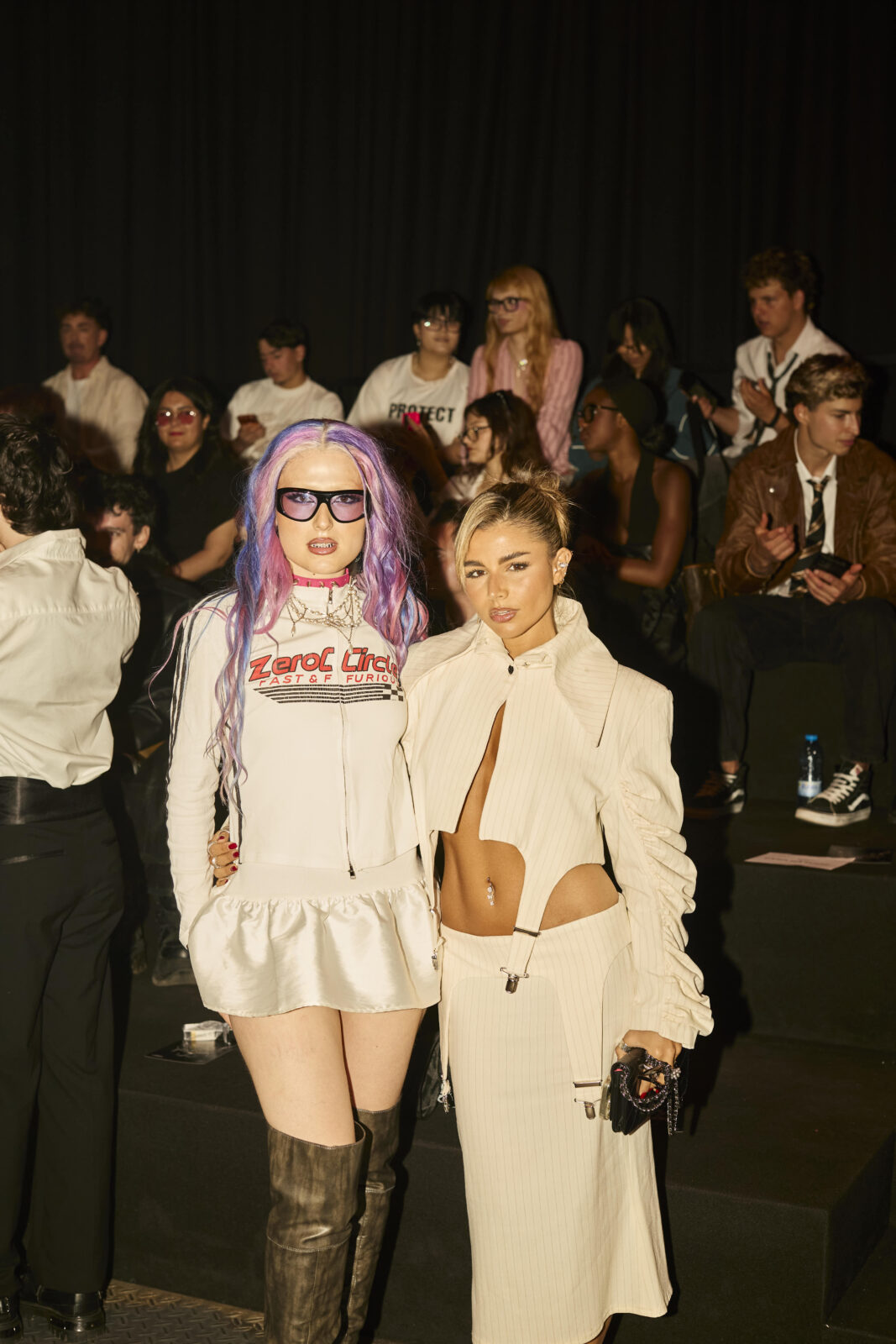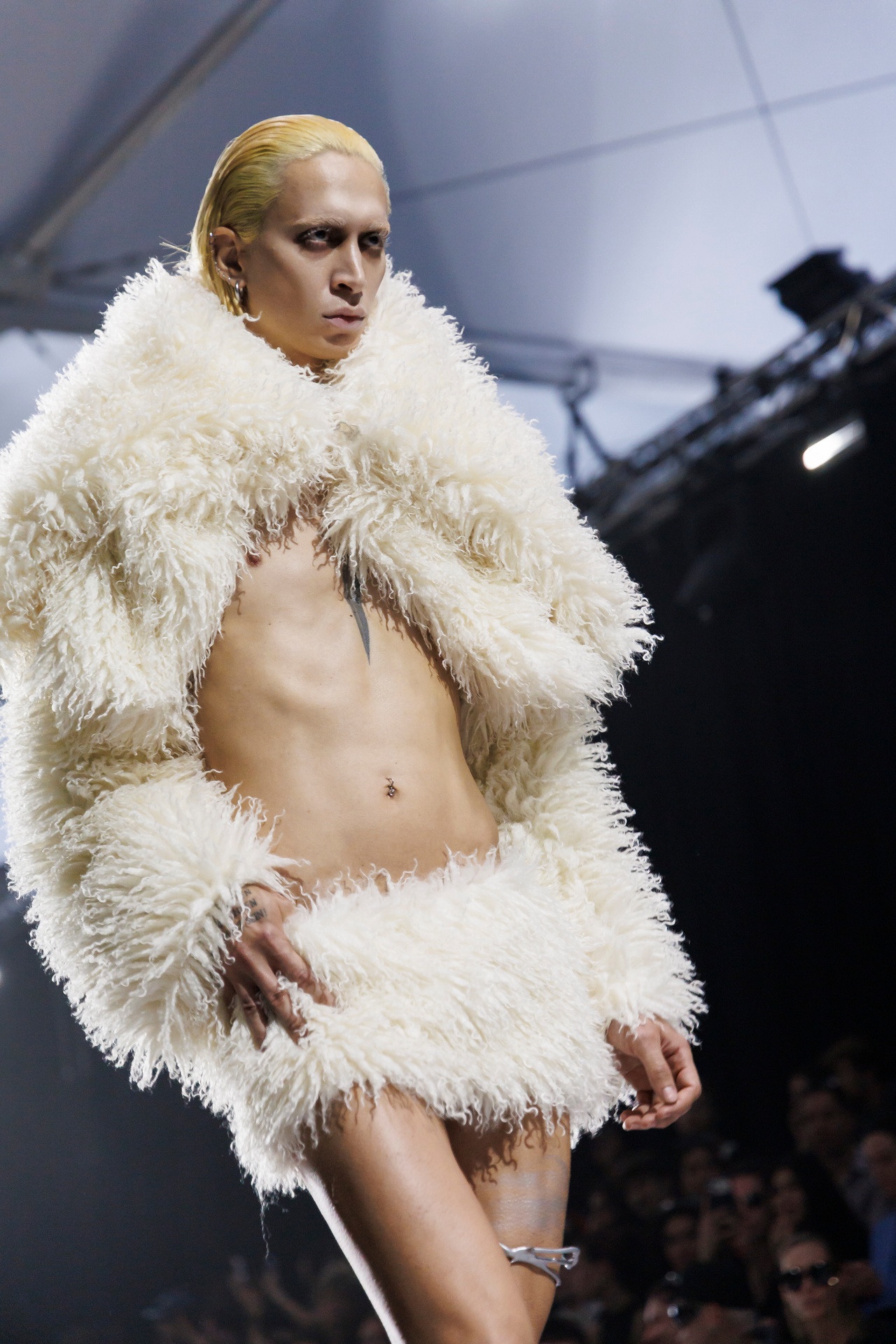 La propuesta habita un territorio entre lo espiritual y lo estructural, entre la luz metálica y la sombra del fuego. A través de materiales como organza, cuero sintético, pelo y encaje quemado, la colección aborda la idea de regeneración: el cuerpo que se quema, muta y renace. Cada textura cumple una función narrativa —estructura, ligereza, memoria abrasada, protección— construyendo un lenguaje visual de resistencia y transformación. La paleta cromática, del gris perla al negro carbón con reflejos plateados y pulsos de rojo, refuerza la tensión entre vulnerabilidad, poder y fortaleza interior.