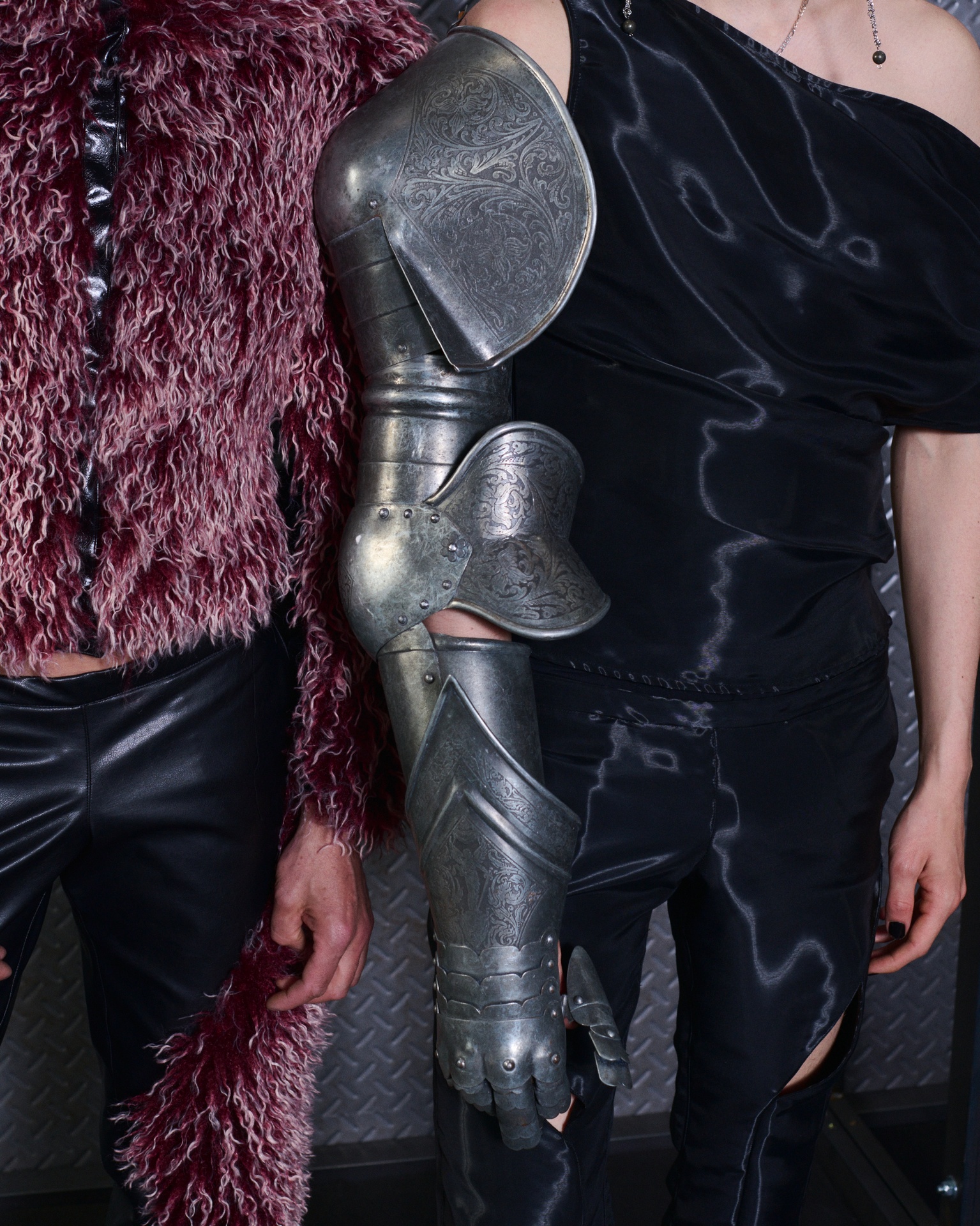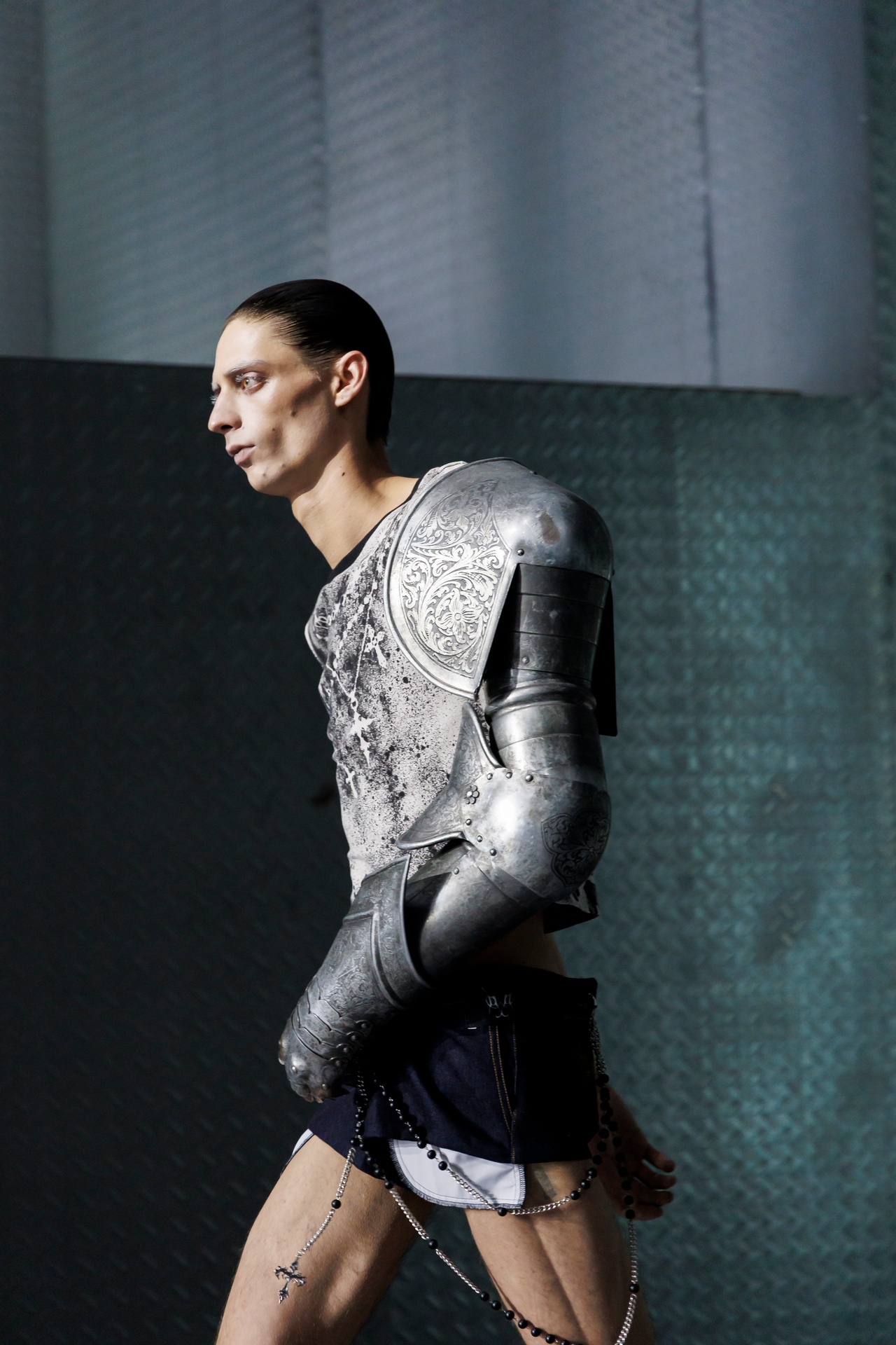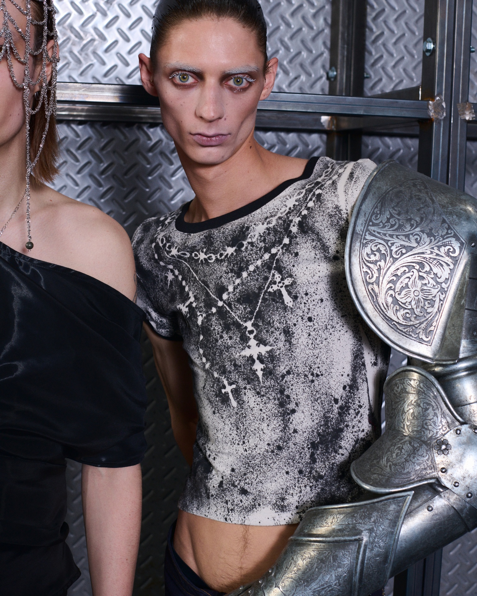 SANCTA MACHINA es una exploración estética y simbólica sobre la fuerza interior entendida como identidad profunda. La colección nace de un vínculo íntimo con la figura de Juana de Arco, surgido cuando el diseñador, con solo nueve años, vio por primera vez su estatua en Orleans. Aquella figura erguida y luminosa marcó silenciosamente su imaginario y, con el tiempo, se transformó en el deseo de rendirle un homenaje propio. Aunque su figura ha sido reinterpretada en numerosas ocasiones, SANCTA MACHINA responde a un impulso personal que por fin encuentra forma.