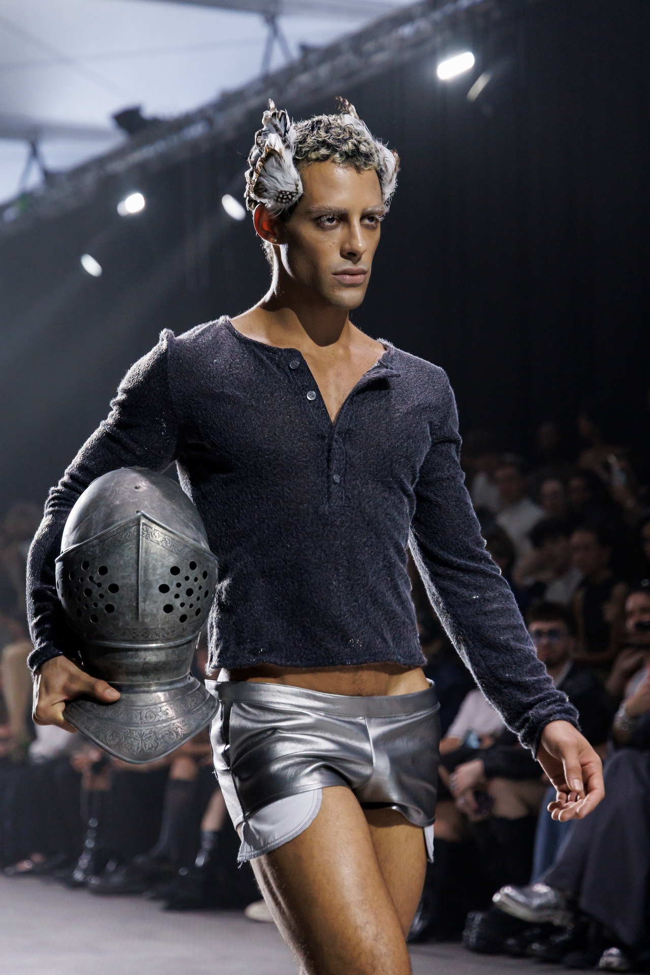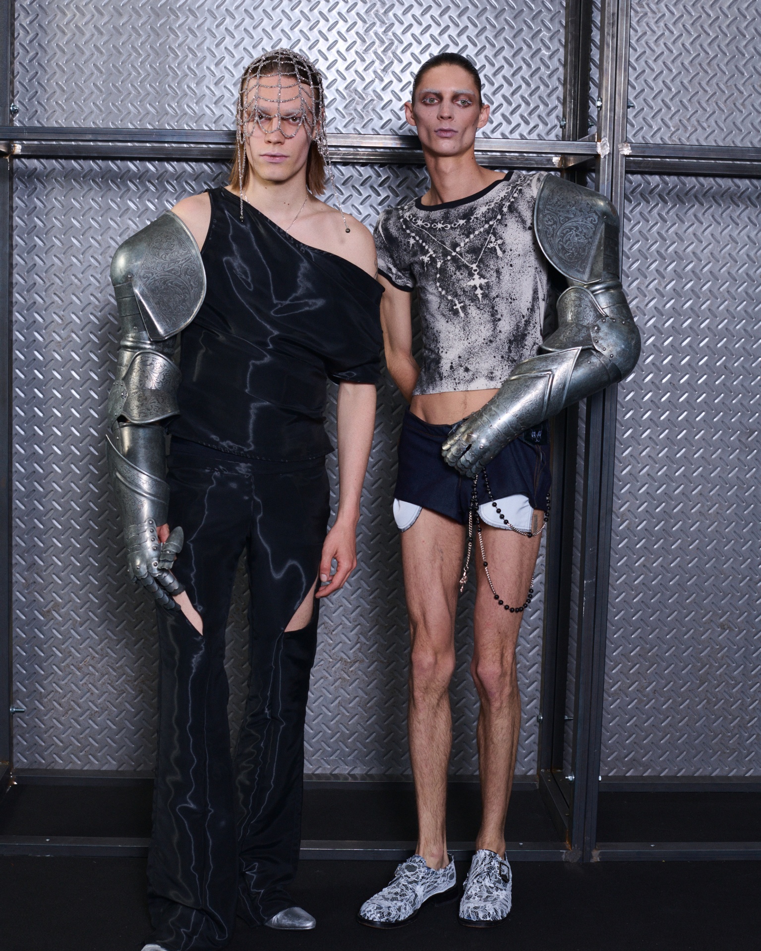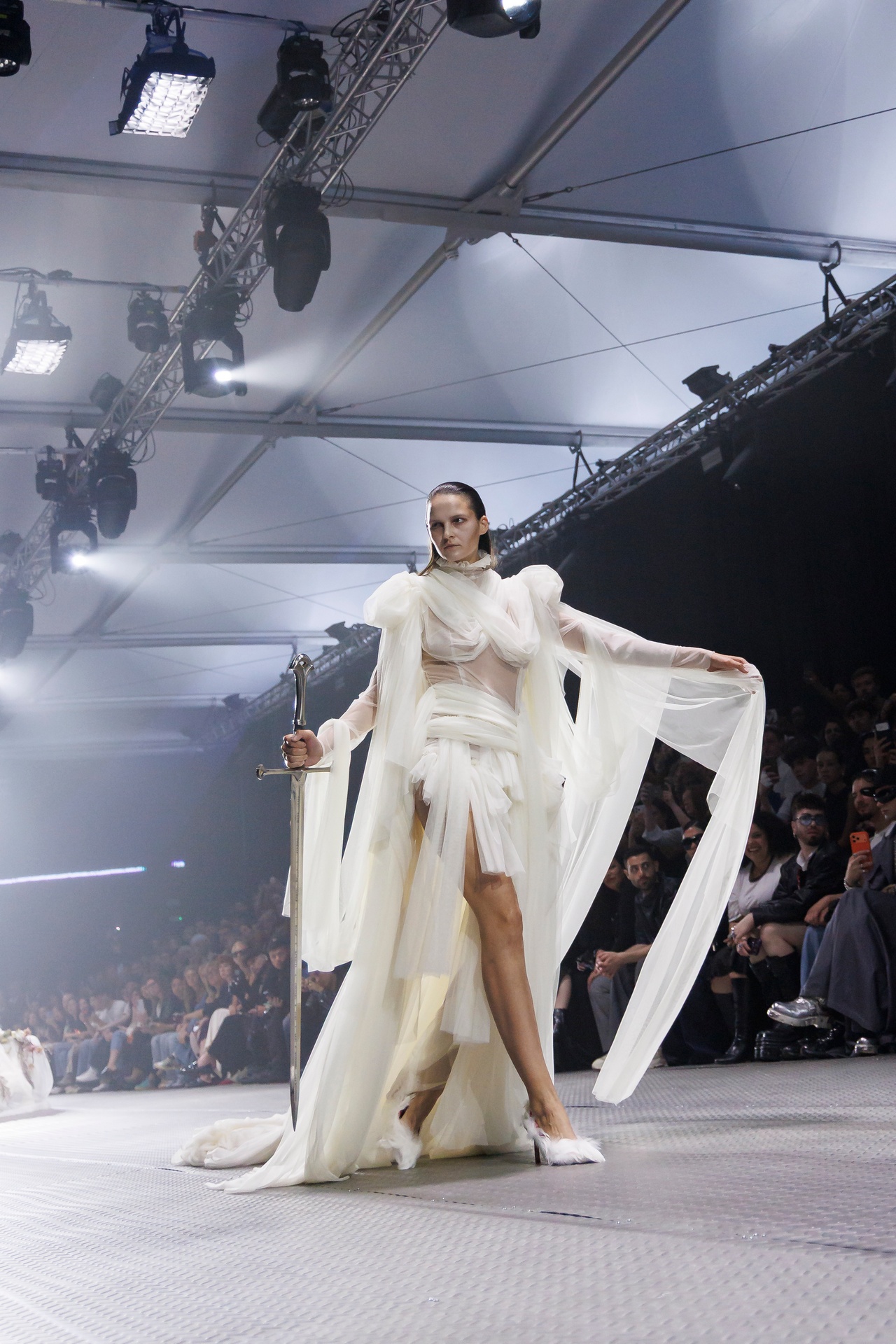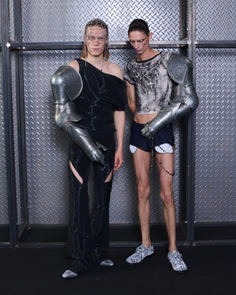 SANCTA MACHINA es una exploración estética y simbólica sobre la fuerza interior entendida como identidad profunda. La colección nace de un vínculo íntimo con la figura de Juana de Arco, surgido cuando el diseñador, con solo nueve años, vio por primera vez su estatua en Orleans. Aquella figura erguida y luminosa marcó silenciosamente su imaginario y, con el tiempo, se transformó en el deseo de rendirle un homenaje propio. Aunque su figura ha sido reinterpretada en numerosas ocasiones, SANCTA MACHINA responde a un impulso personal que por fin encuentra forma.