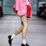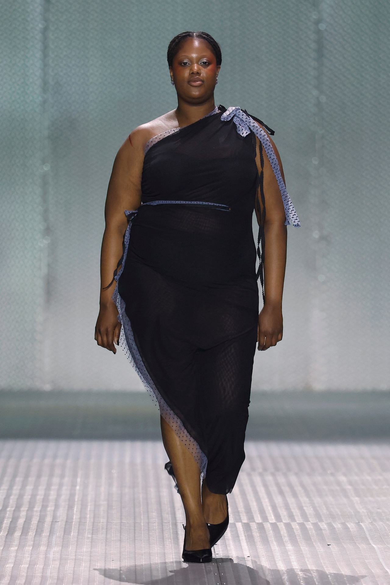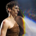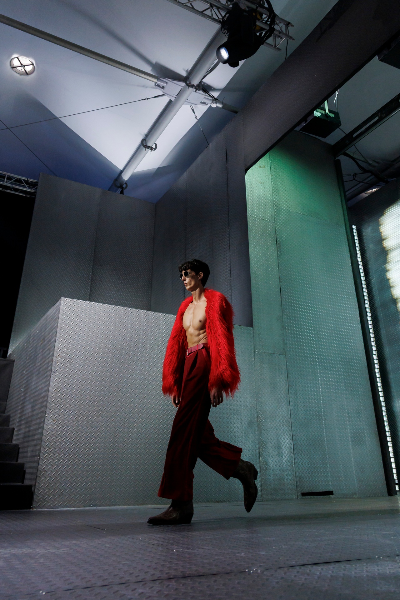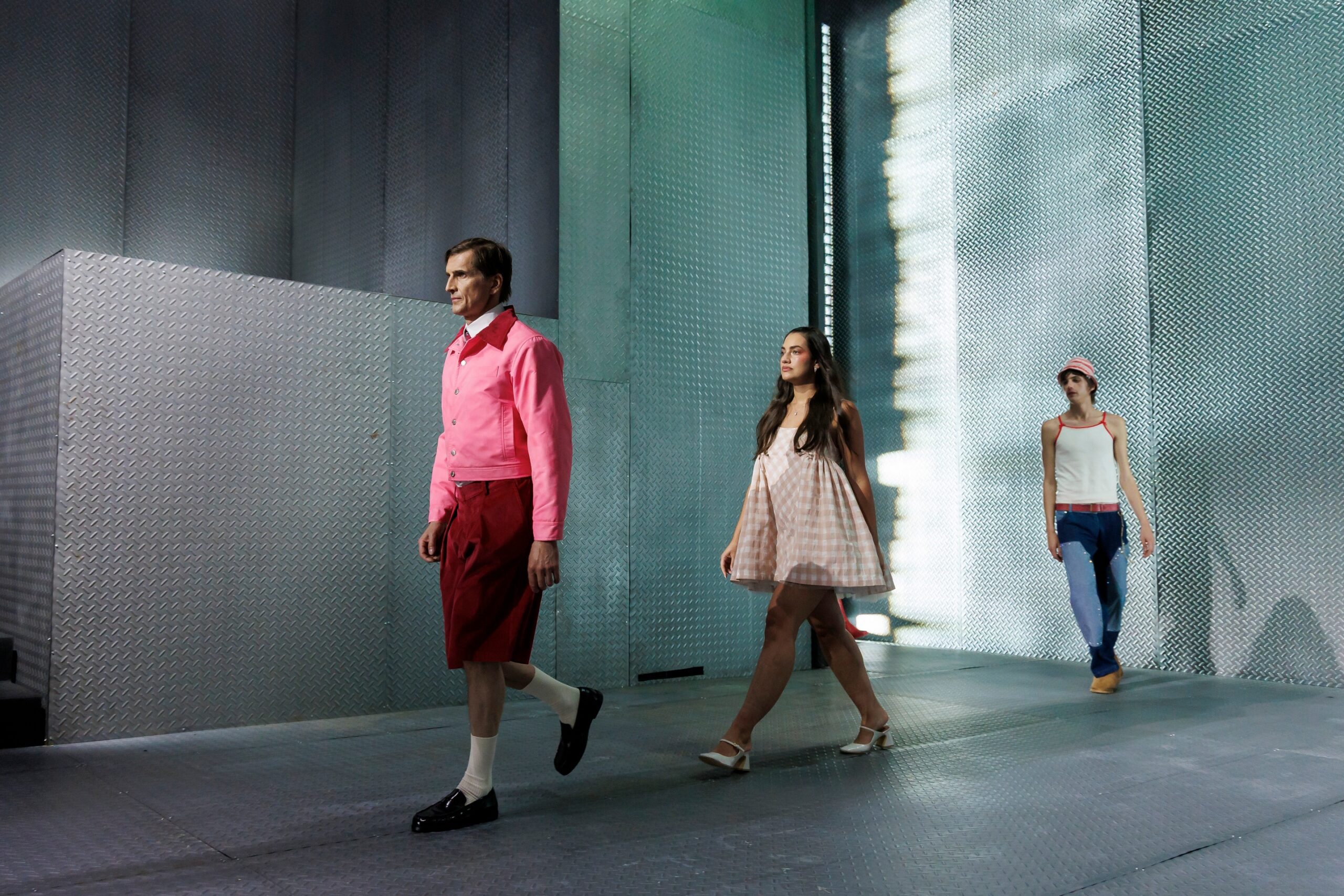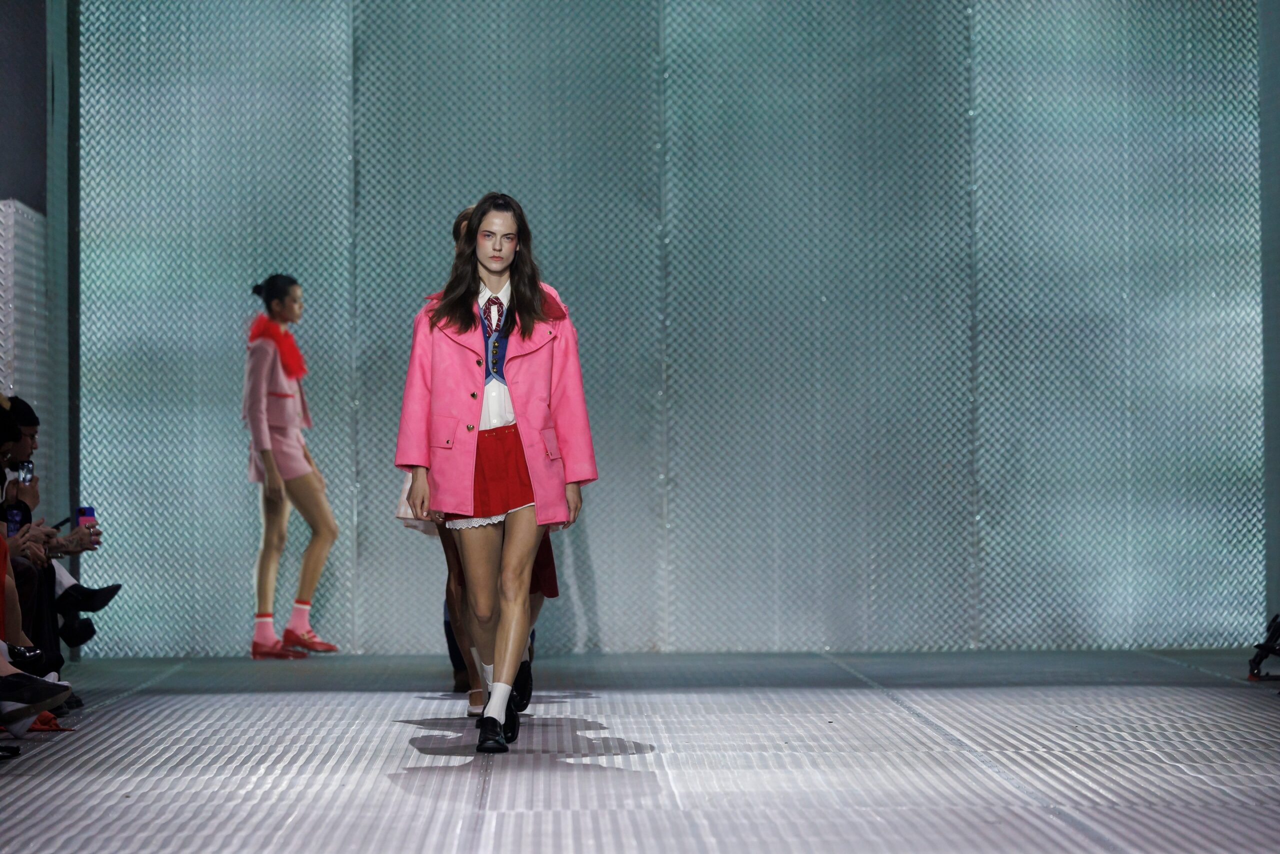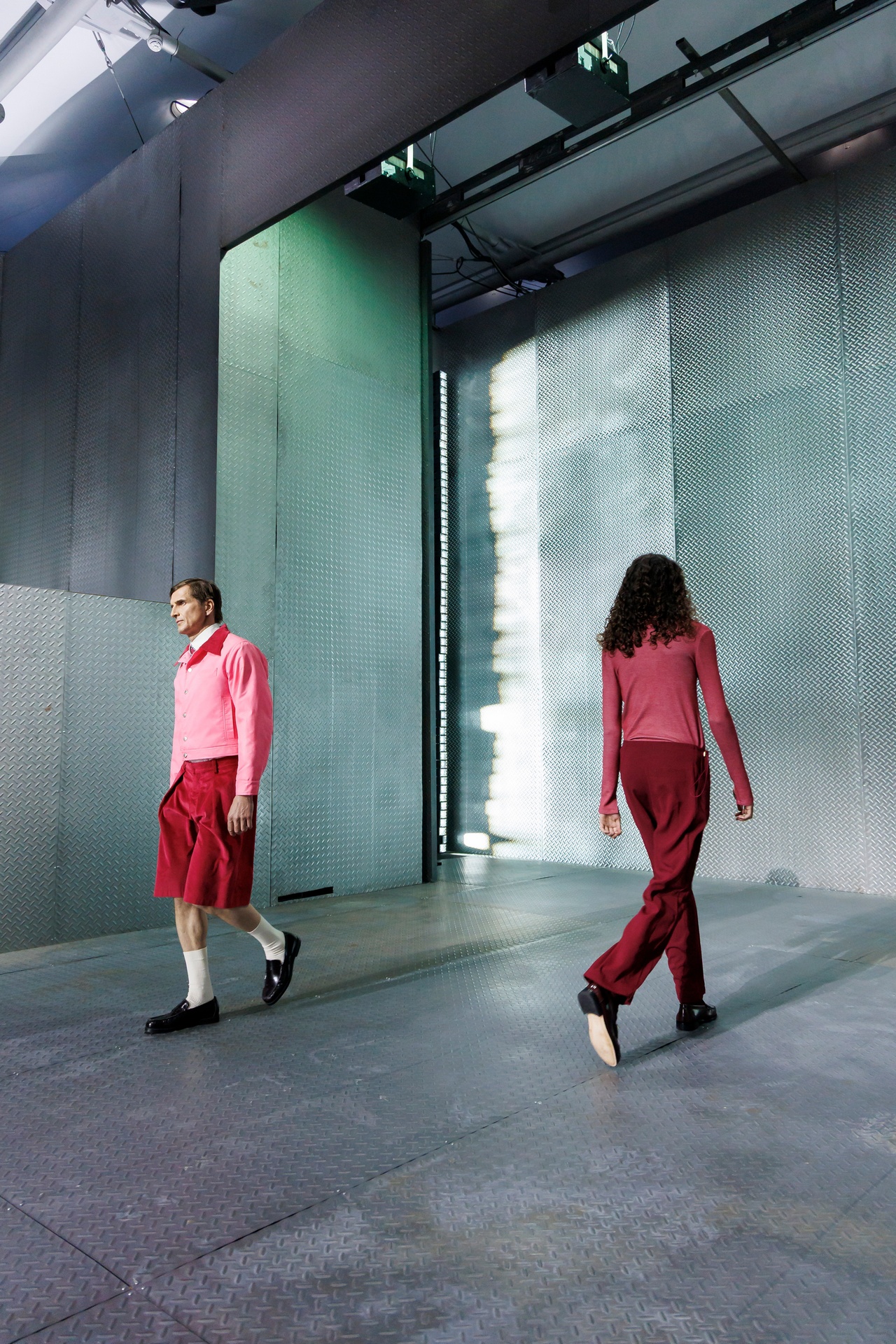 Estas referencias se materializan en siluetas versátiles, pensadas tanto para prendas femeninas como masculinas, desdibujando los límites de género. La colección combina sargas plisadas mediante costuras, popelines en vichy y algodones para el día, mientras que chantilly, tules, pieles artificiales con plumas y gasas aportan ligereza y teatralidad nocturna. La paleta gira en torno a rosas y rojos granate, con acentos marrones y azules. Volúmenes marcados en faldas y hombros, lazos constantes, volantes y puntillas equilibran inocencia y sensualidad, construyendo una estética donde vulnerabilidad y poder coexisten.