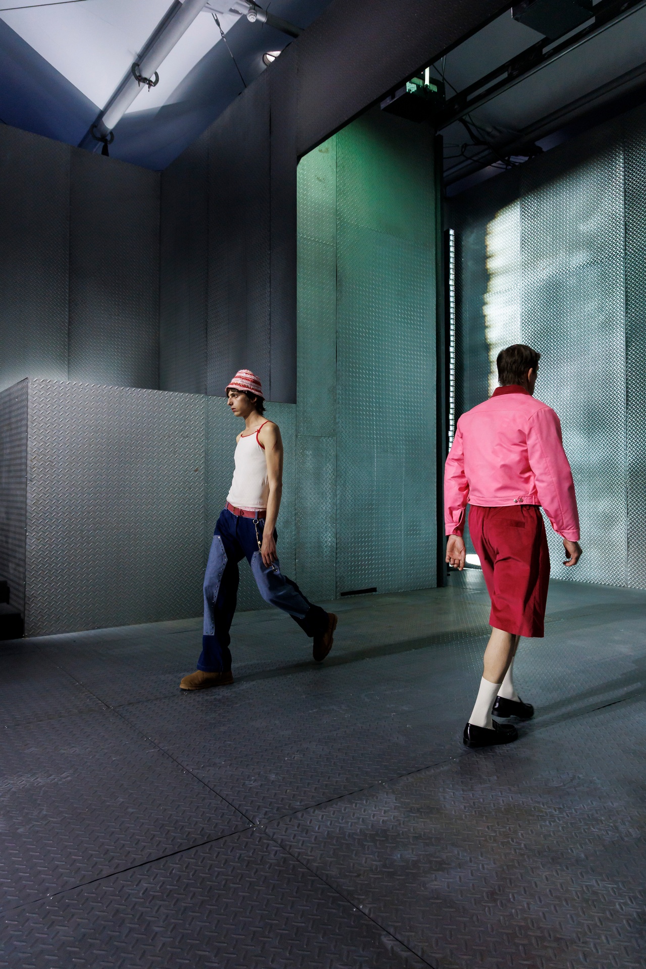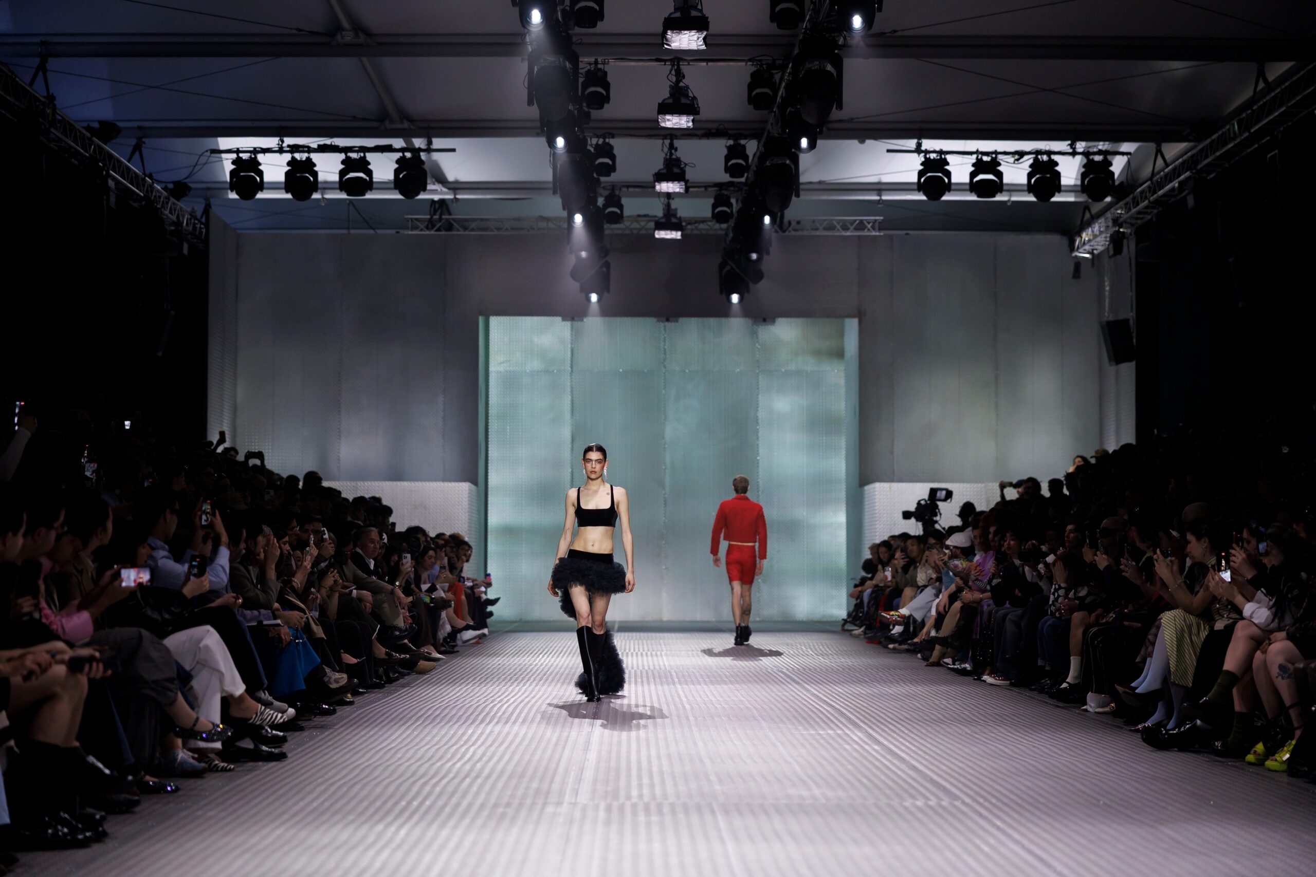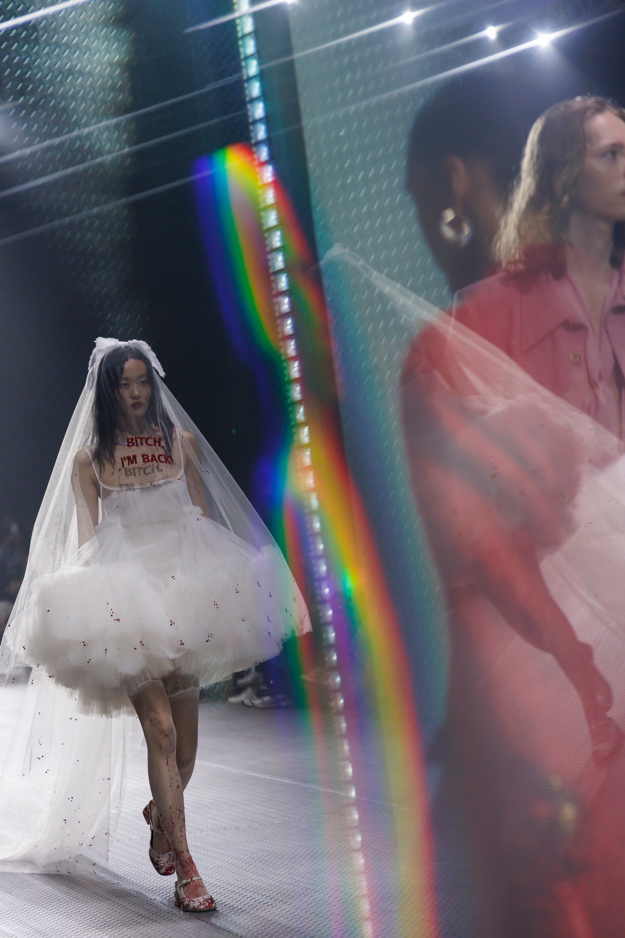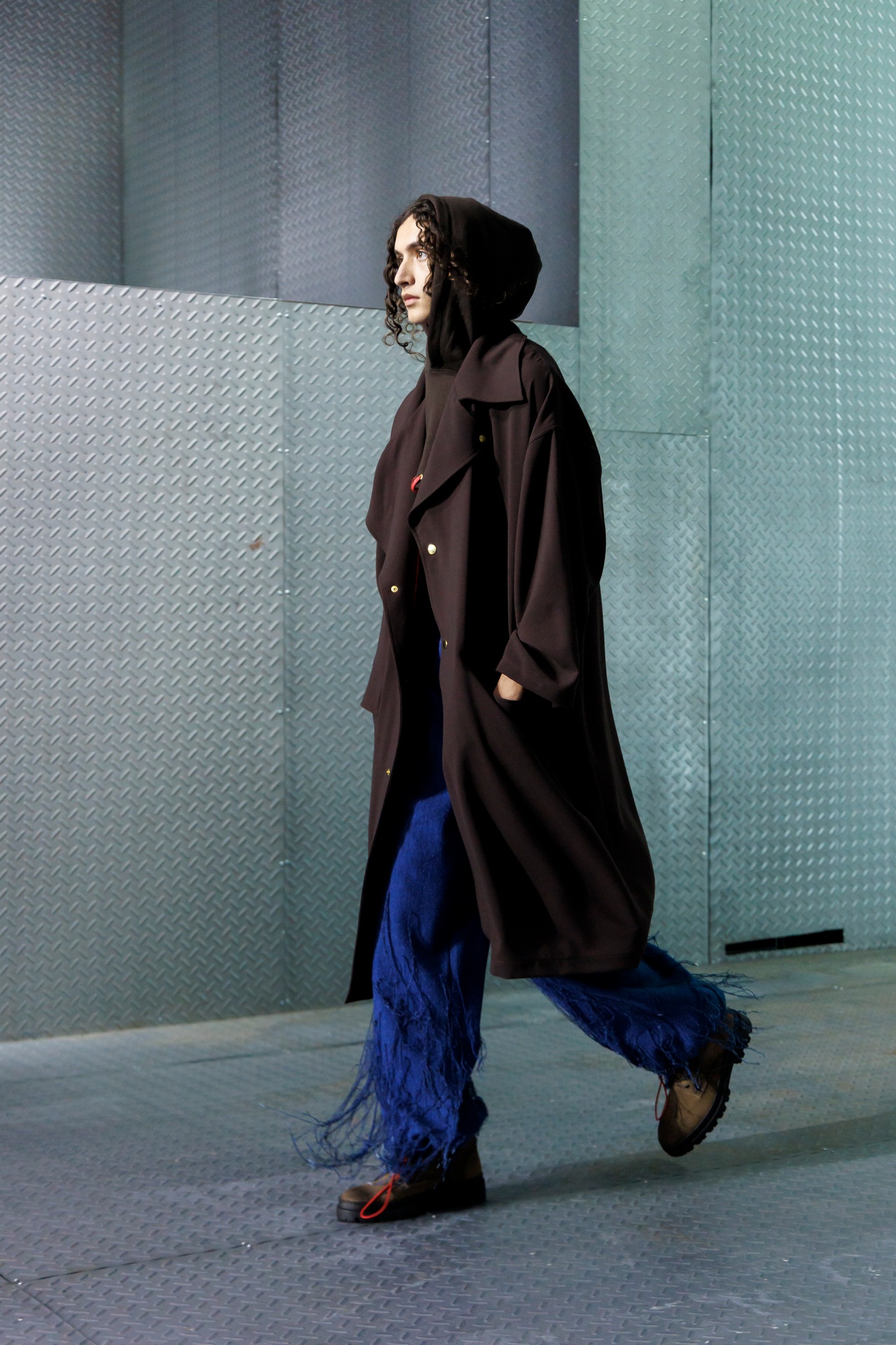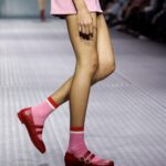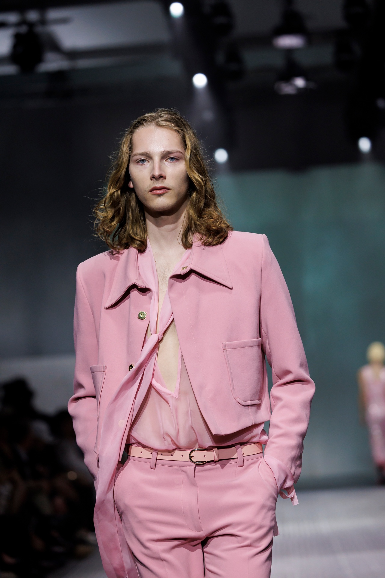 Estas referencias se materializan en siluetas versátiles, pensadas tanto para prendas femeninas como masculinas, desdibujando los límites de género. La colección combina sargas plisadas mediante costuras, popelines en vichy y algodones para el día, mientras que chantilly, tules, pieles artificiales con plumas y gasas aportan ligereza y teatralidad nocturna. La paleta gira en torno a rosas y rojos granate, con acentos marrones y azules. Volúmenes marcados en faldas y hombros, lazos constantes, volantes y puntillas equilibran inocencia y sensualidad, construyendo una estética donde vulnerabilidad y poder coexisten.