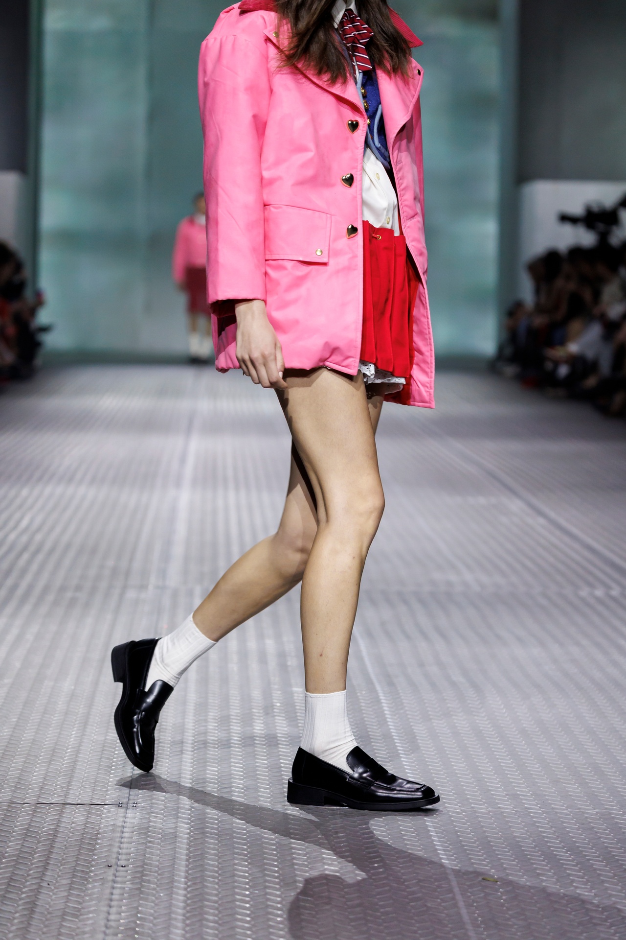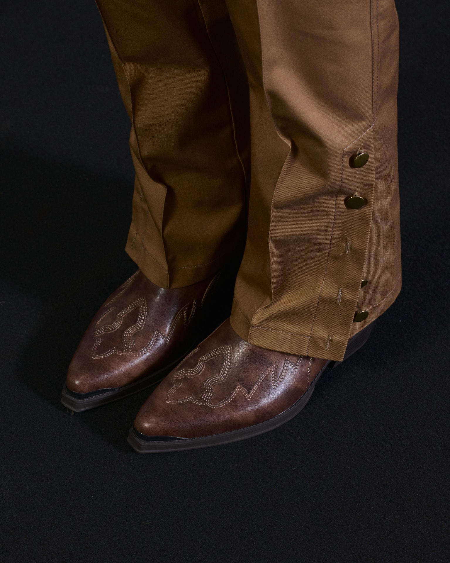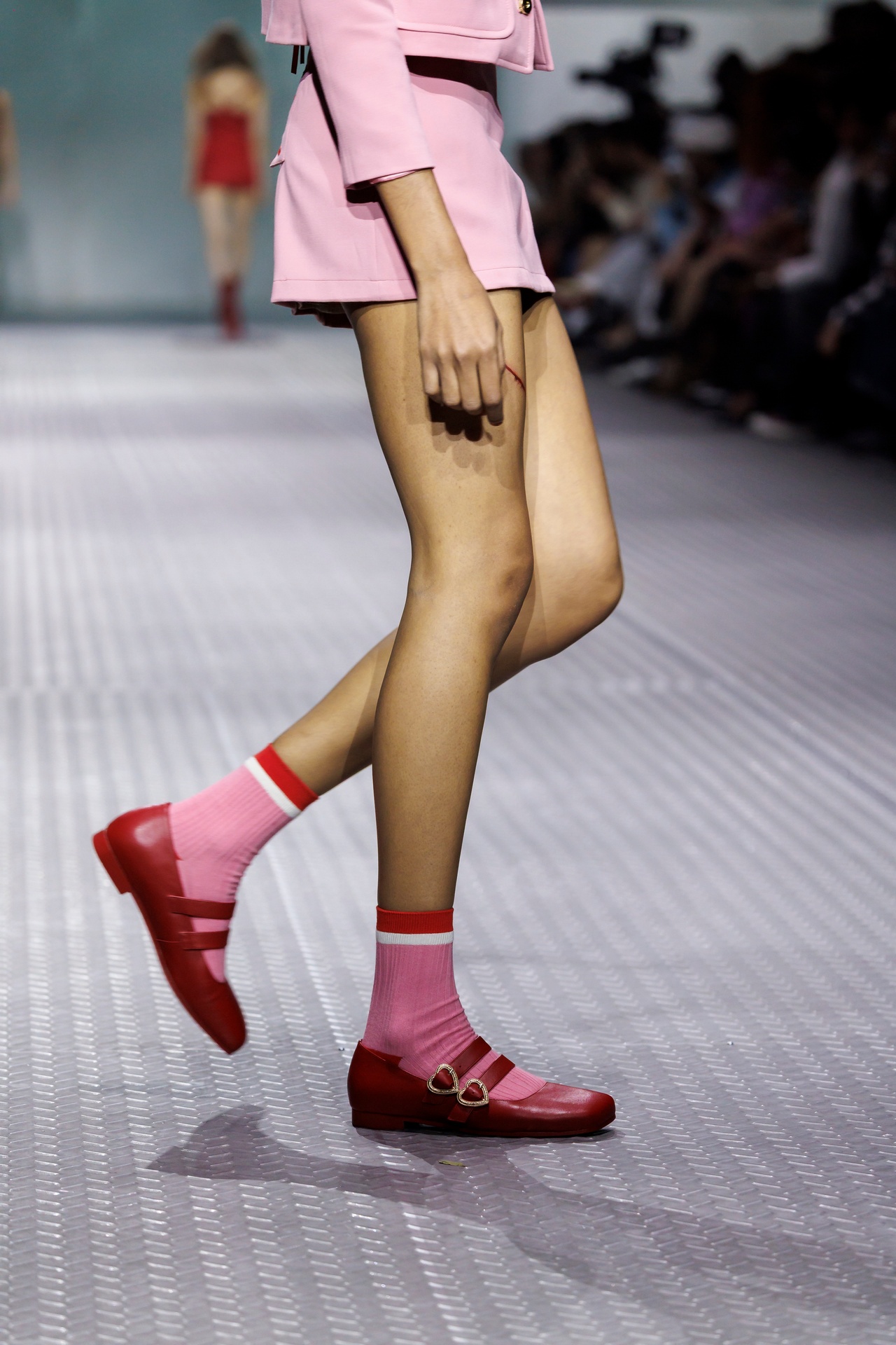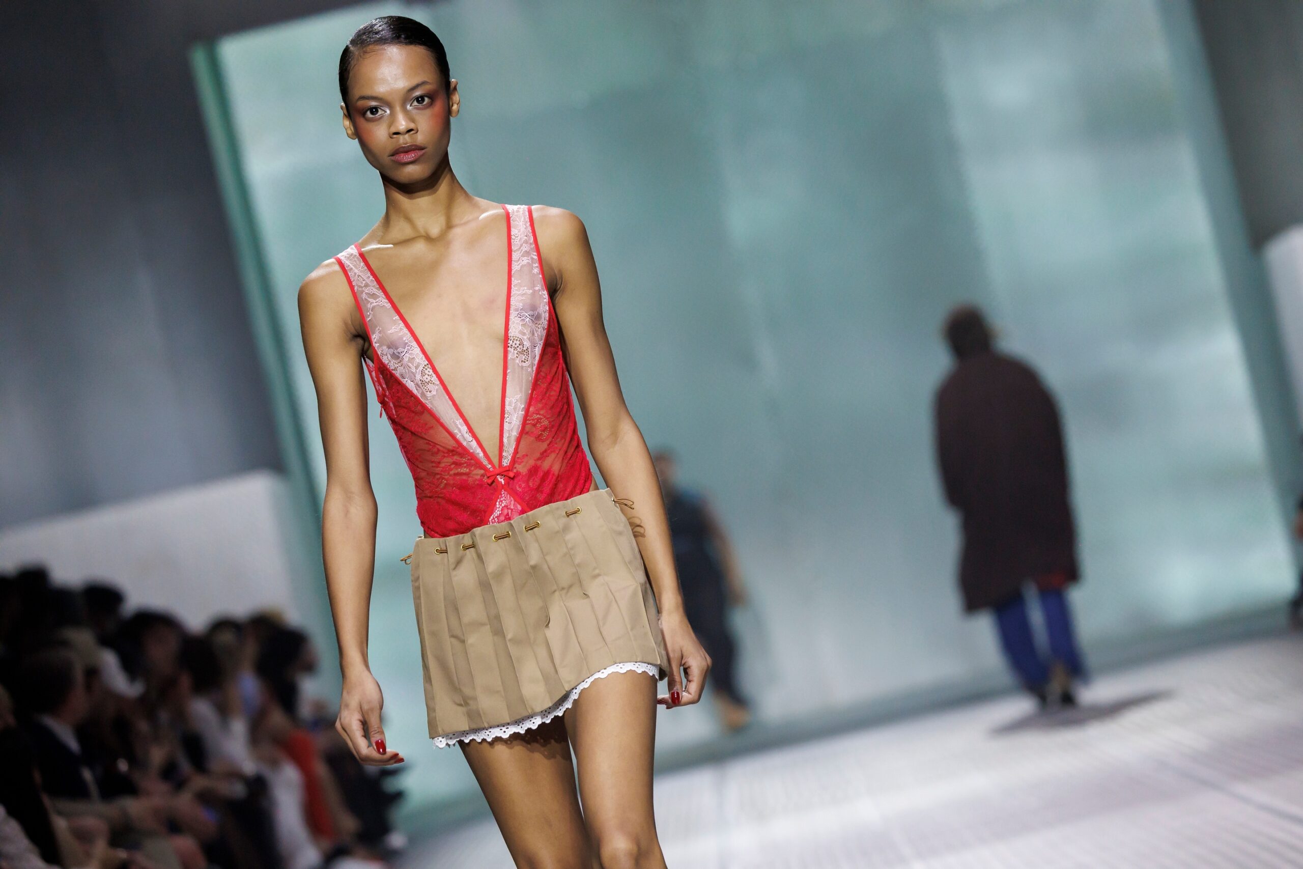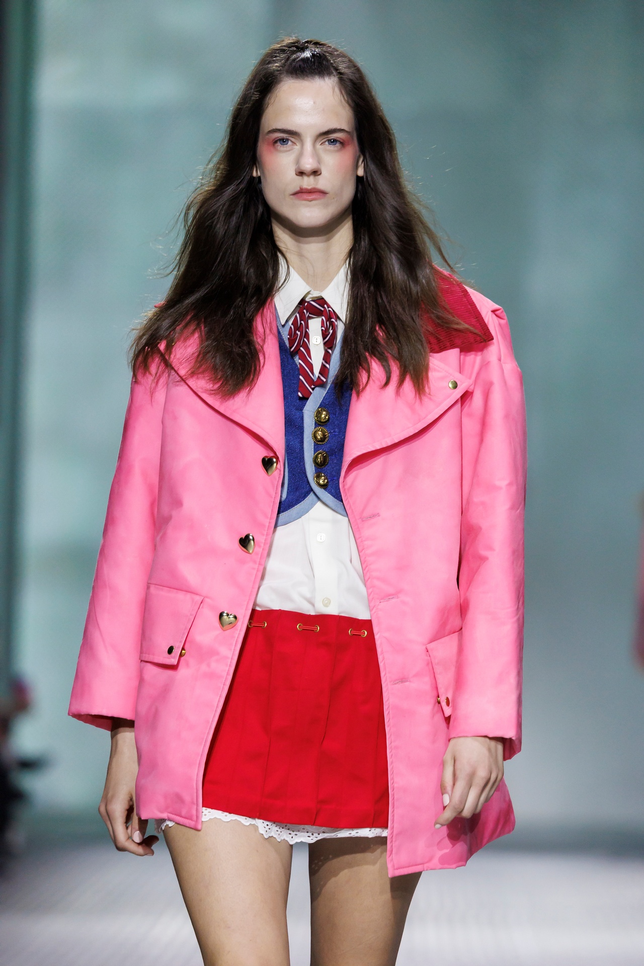 Estas referencias se materializan en siluetas versátiles, pensadas tanto para prendas femeninas como masculinas, desdibujando los límites de género. La colección combina sargas plisadas mediante costuras, popelines en vichy y algodones para el día, mientras que chantilly, tules, pieles artificiales con plumas y gasas aportan ligereza y teatralidad nocturna. La paleta gira en torno a rosas y rojos granate, con acentos marrones y azules. Volúmenes marcados en faldas y hombros, lazos constantes, volantes y puntillas equilibran inocencia y sensualidad, construyendo una estética donde vulnerabilidad y poder coexisten.