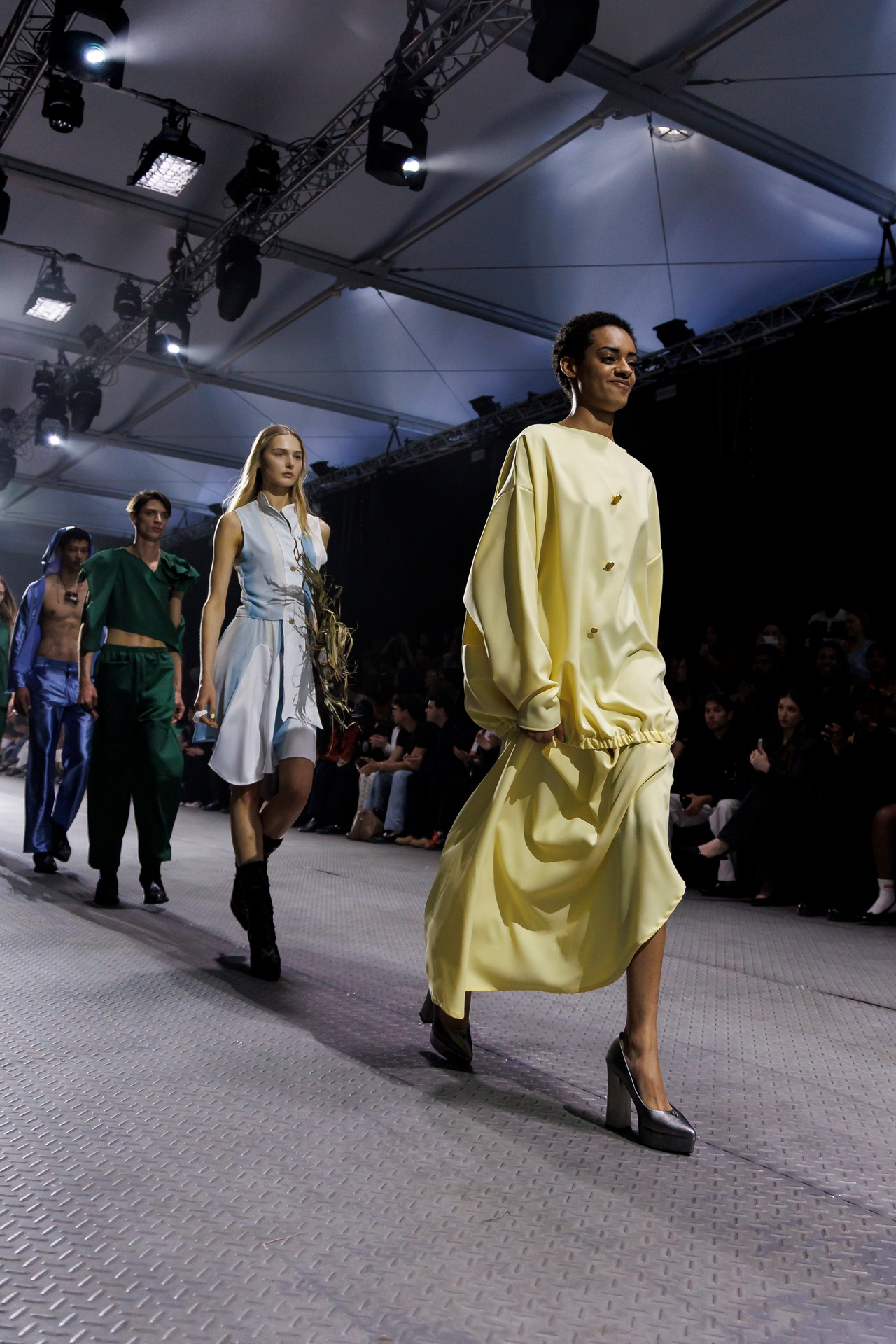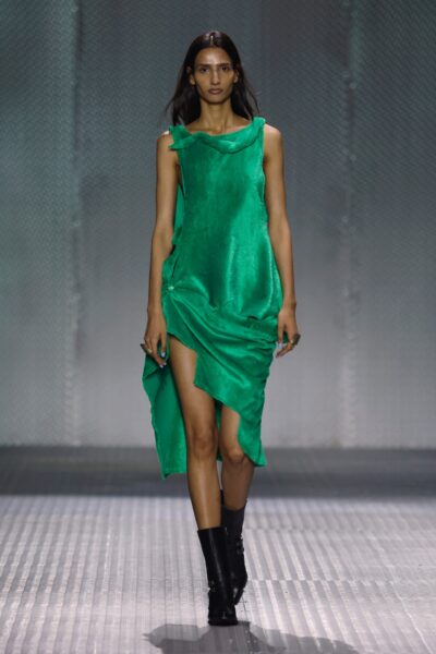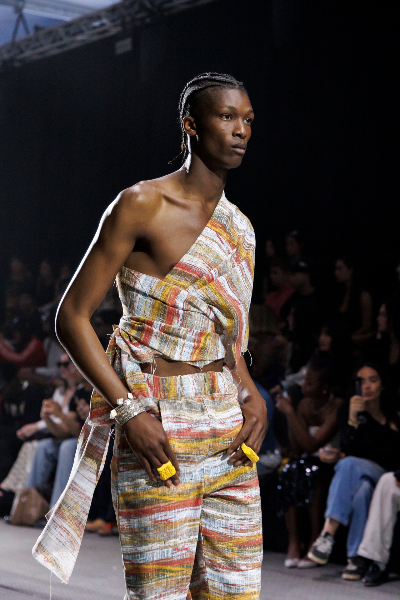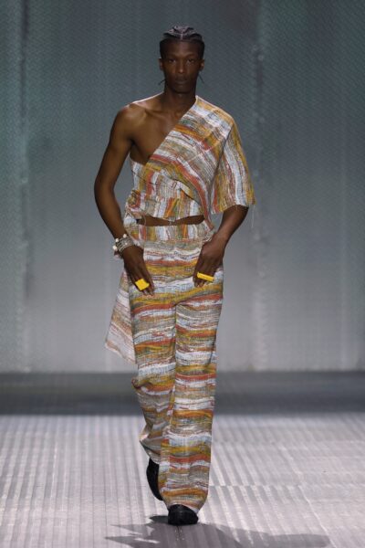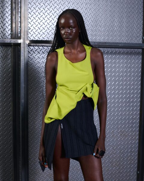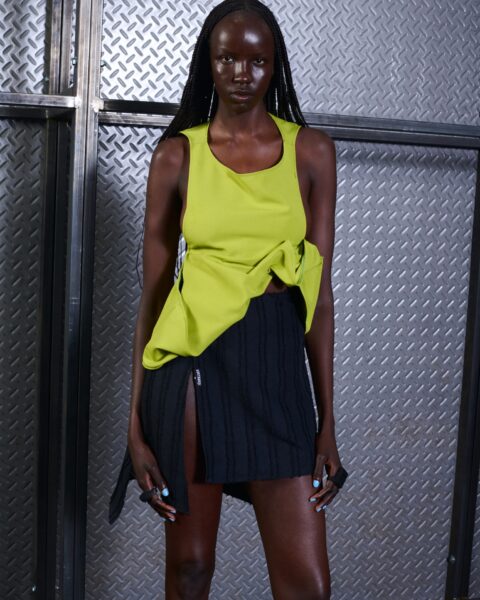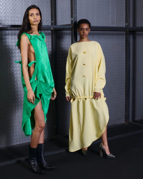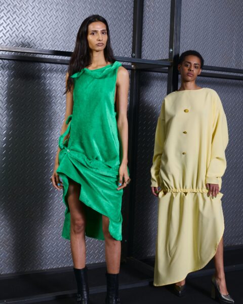 El concepto de esta colección es la exploración de la moda desde un lenguaje vivo que nos atraviesa. WOSONGLE explora la moda desde una mirada contemporánea, entendiendo el pasado cultural y ancestral como un lenguaje vivo. La colección reflexiona sobre cómo nos comunicamos con nuestro pasado cultural desde el presente y cómo lo transformamos en una expresión propia consciente. Utiliza los materiales para contar una historia de “ancestral – pasado futuro”.