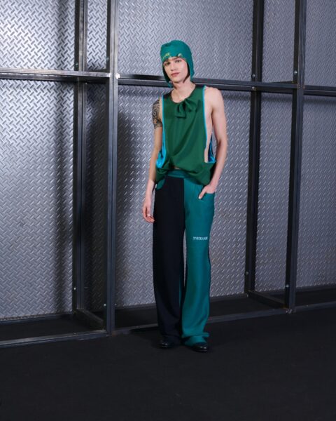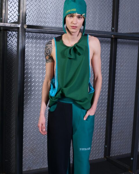Desde una perspectiva sostenible, XVSTRANGE entiende la sostenibilidad como un proceso consciente aplicado al diseño y a la producción. La marca apuesta por la reutilización de tejidos, el uso de excedentes textiles y una producción a pequeña escala, priorizando procesos manuales que reducen el impacto industrial.